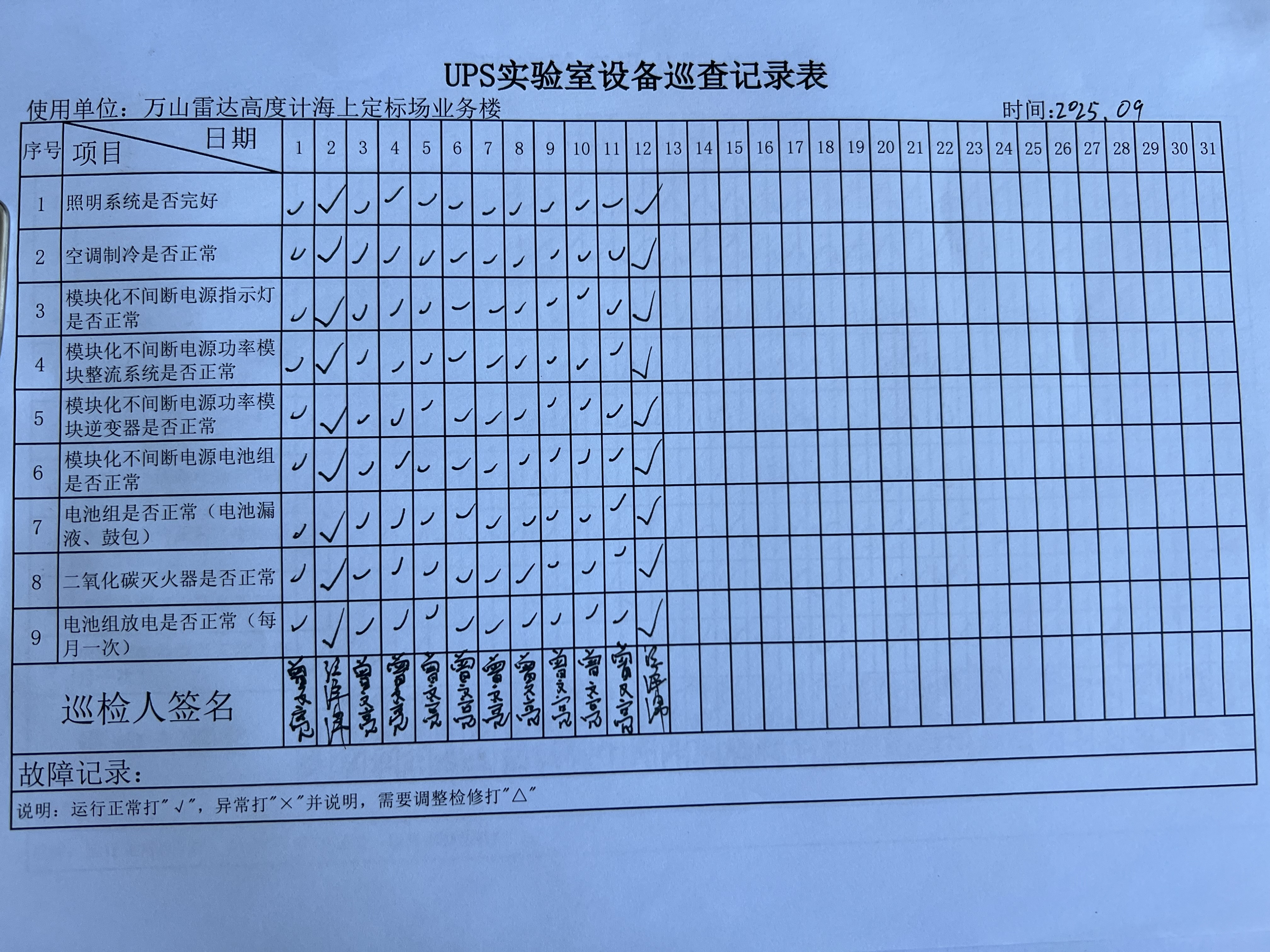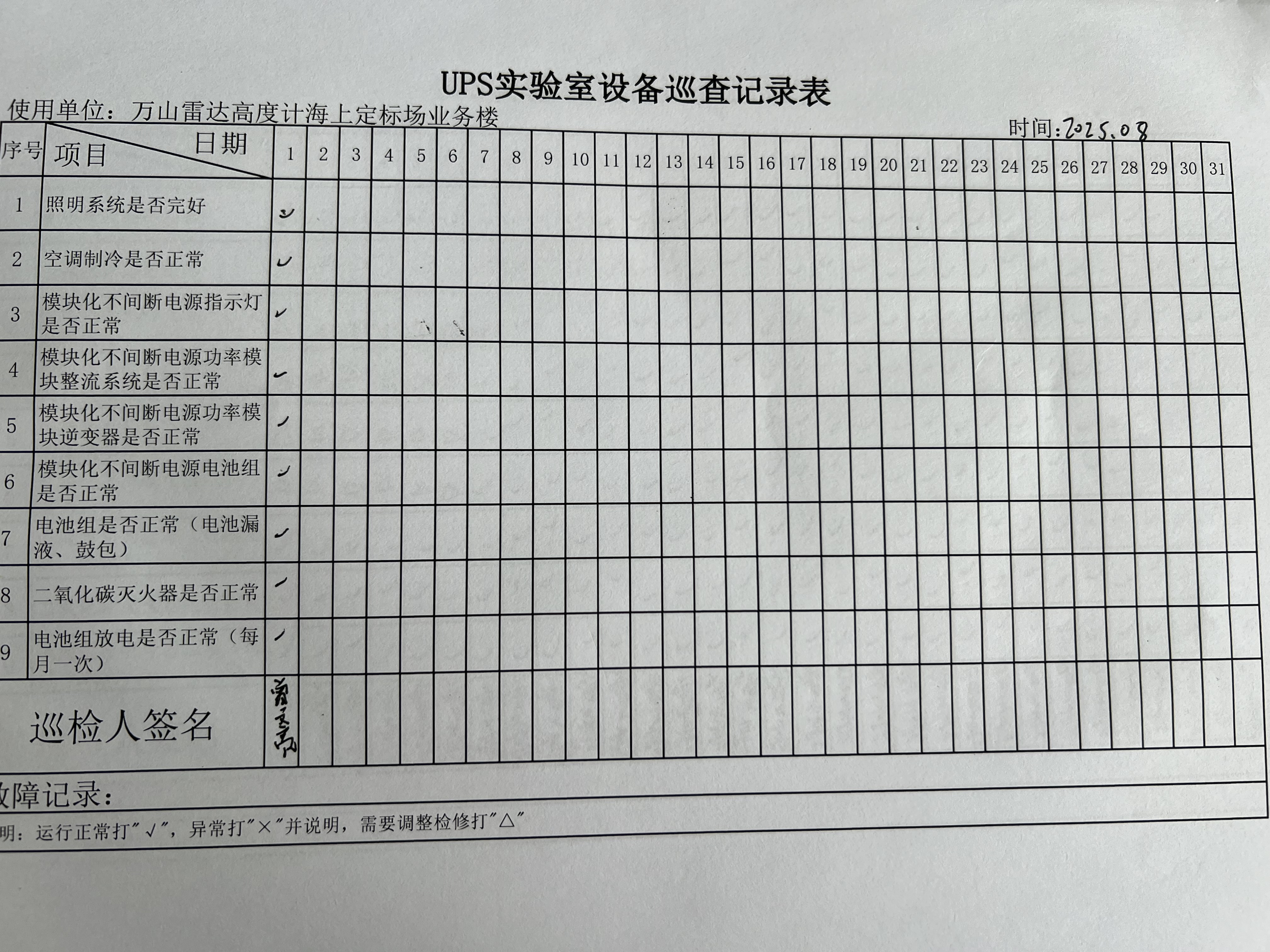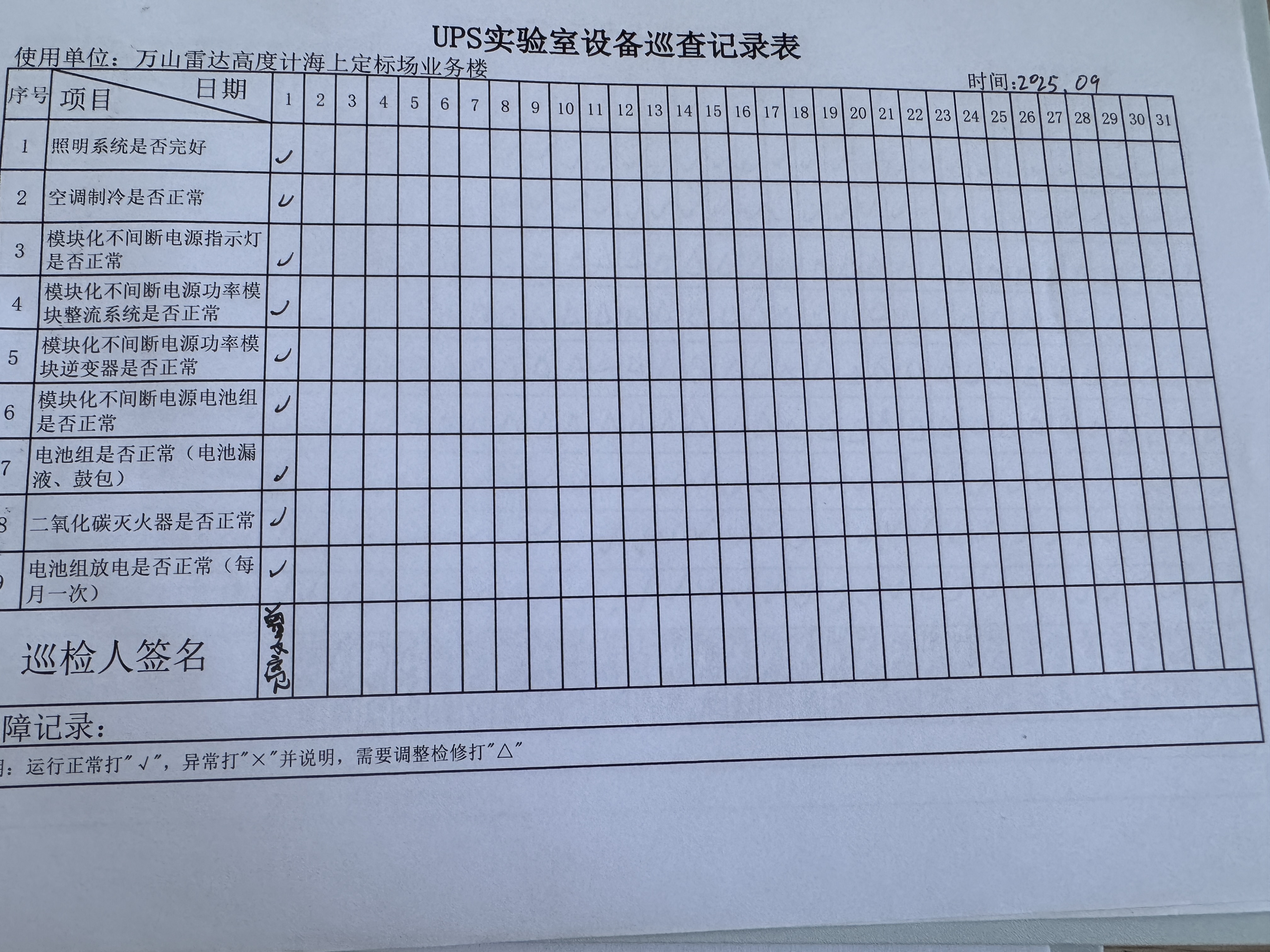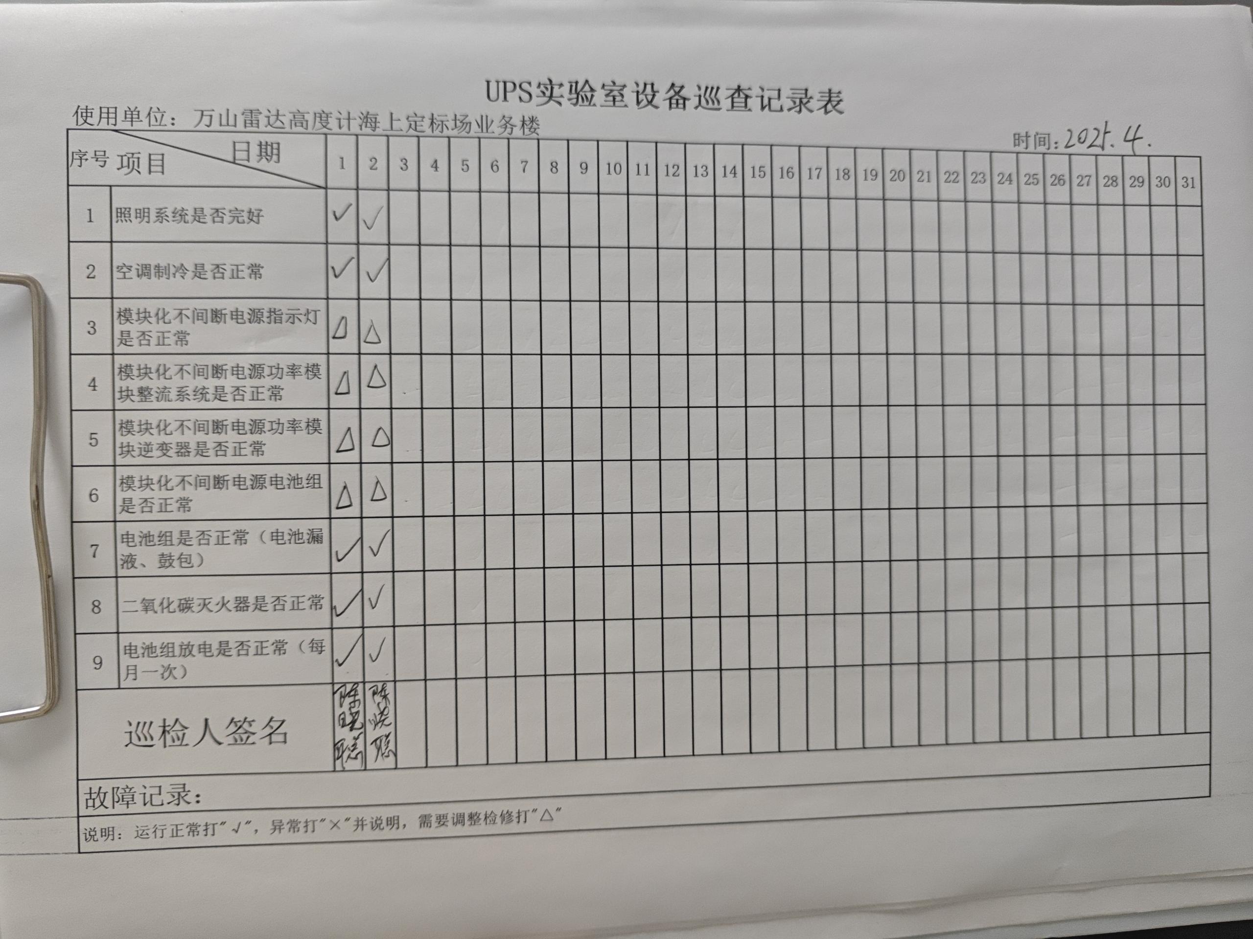 | 记录表-UPS实验室设备巡查 |