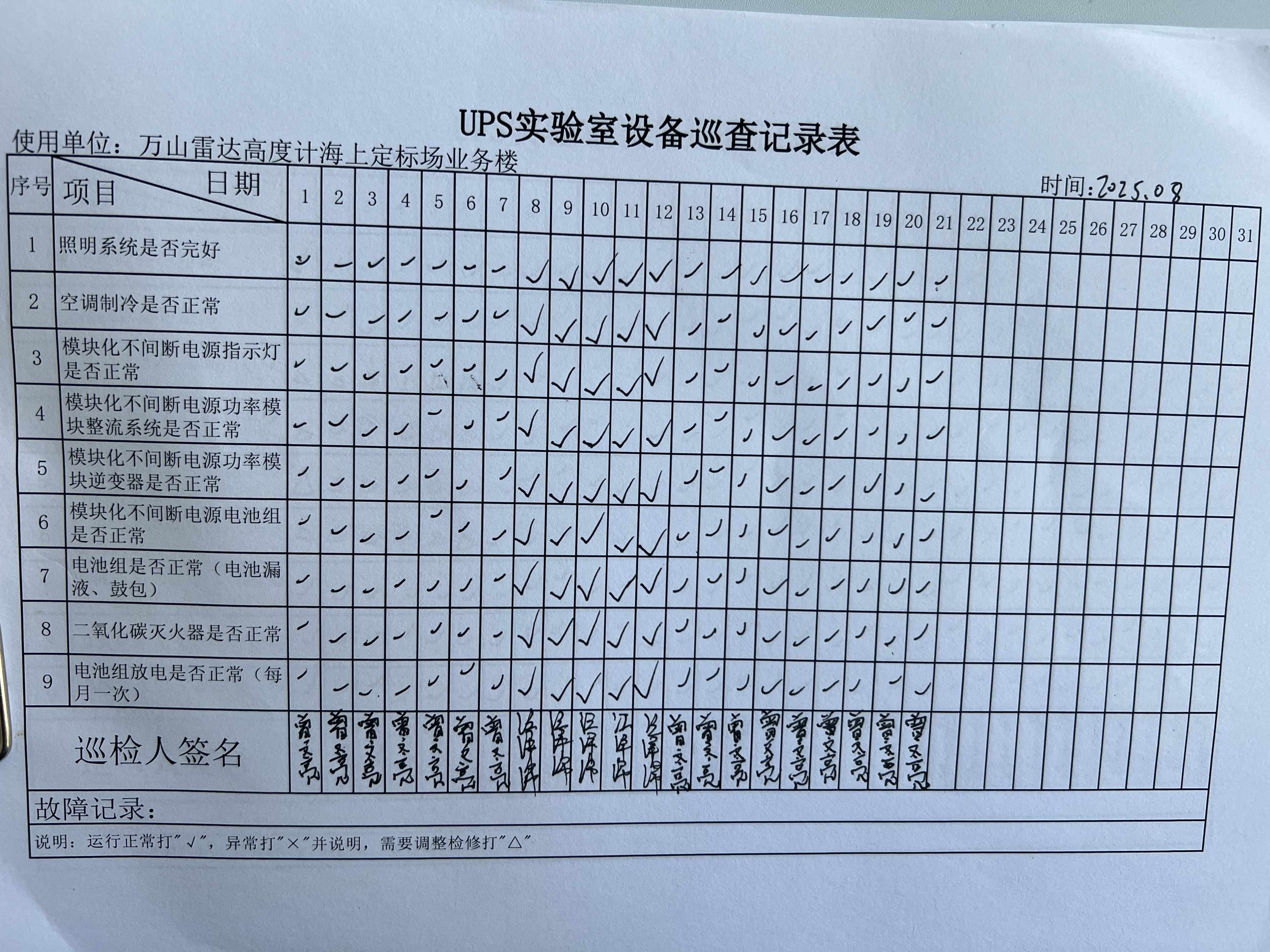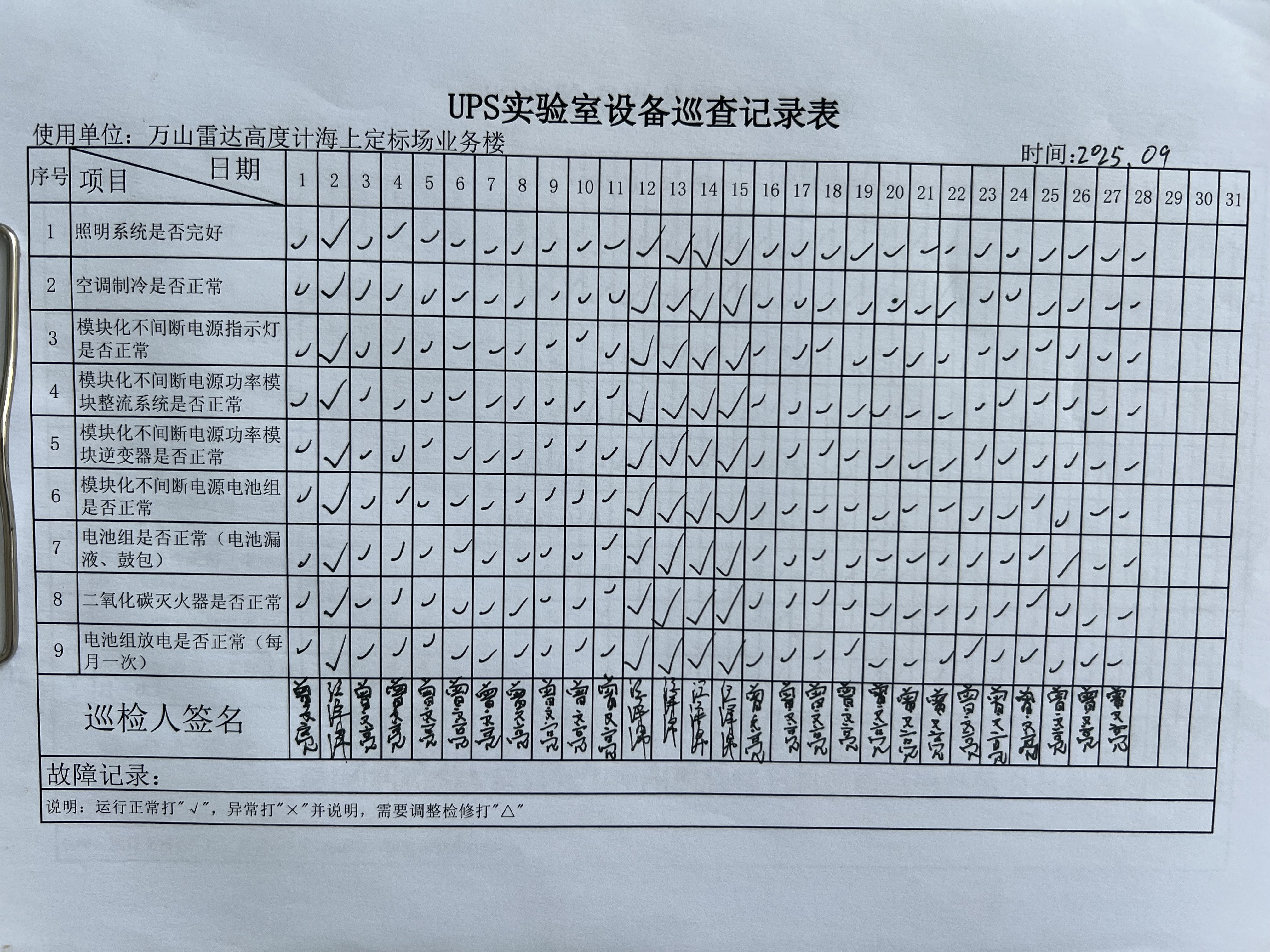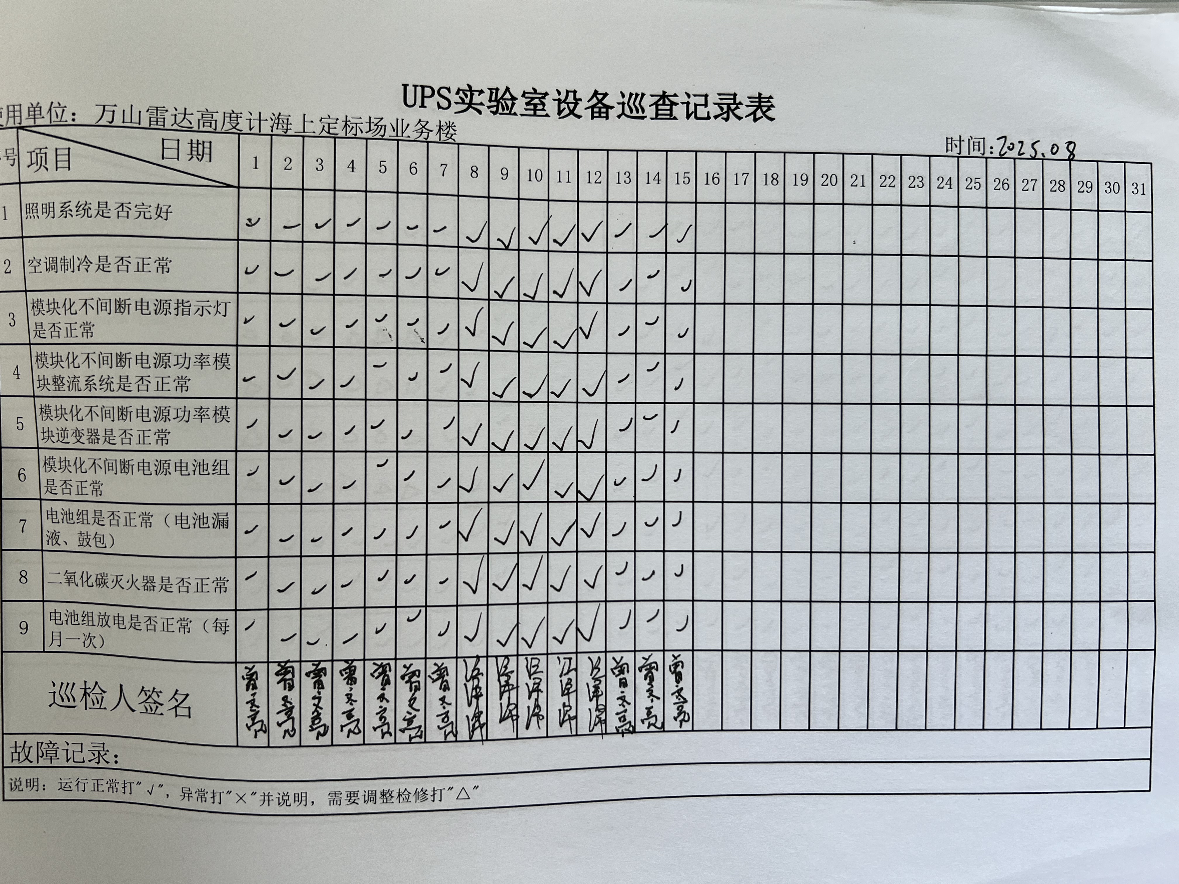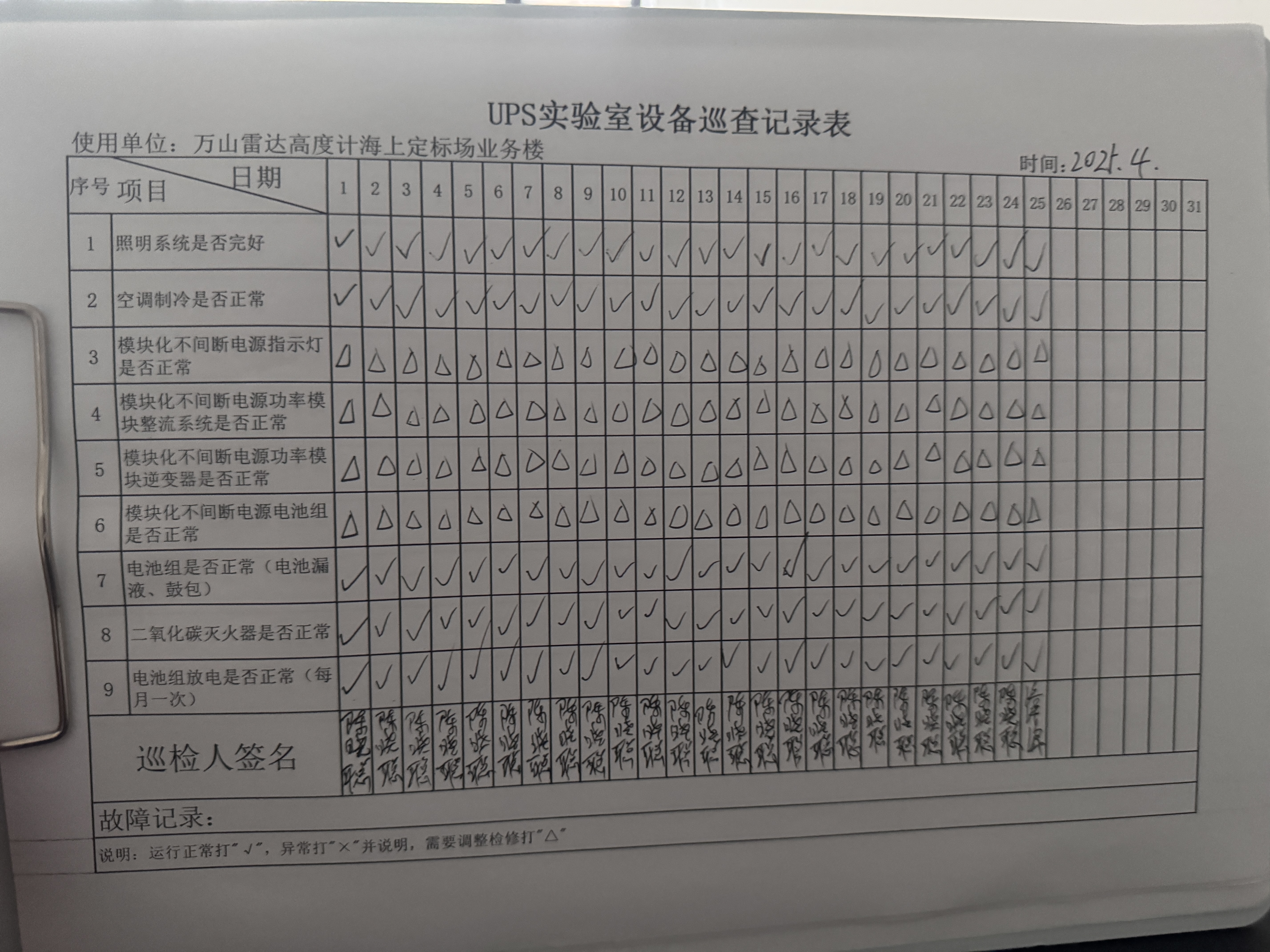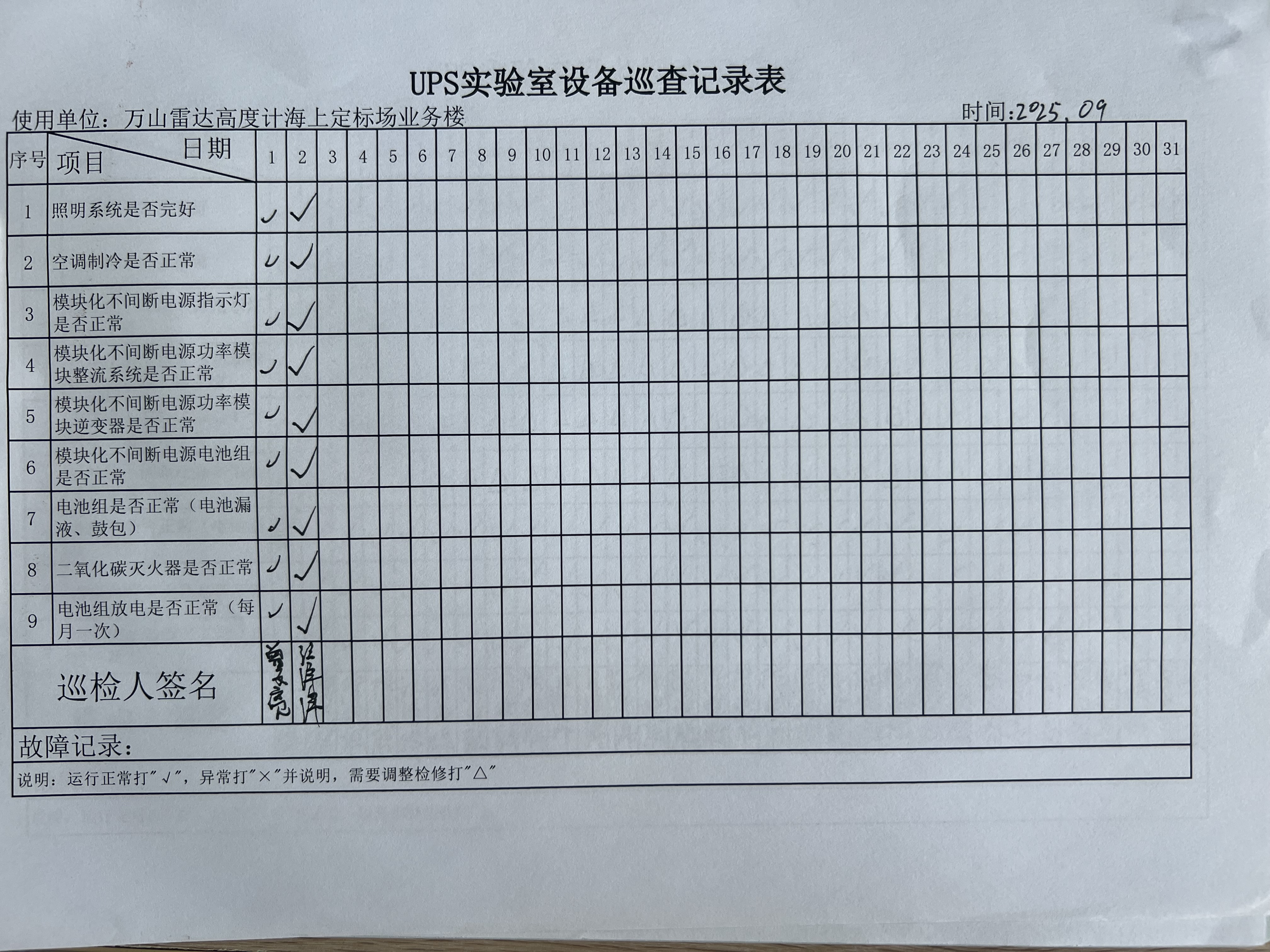 | 记录表-UPS实验室设备巡查 |