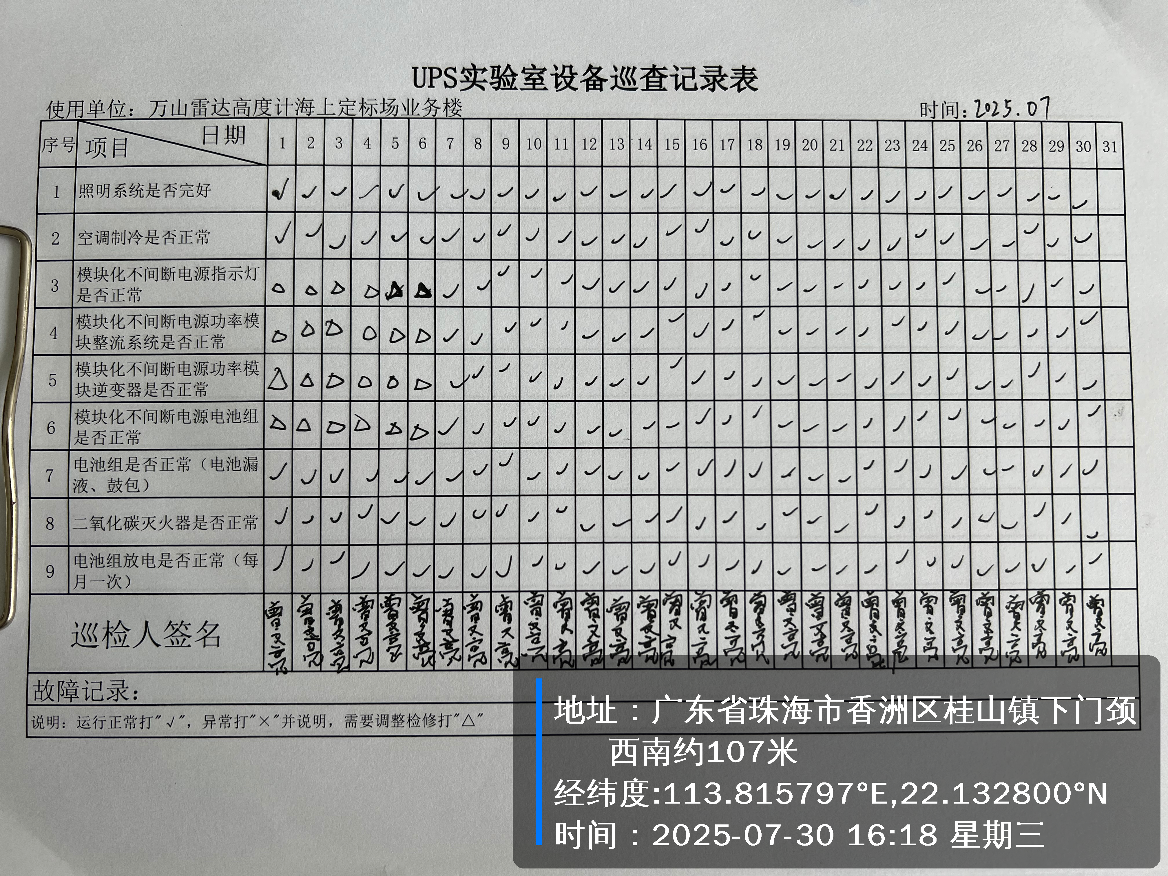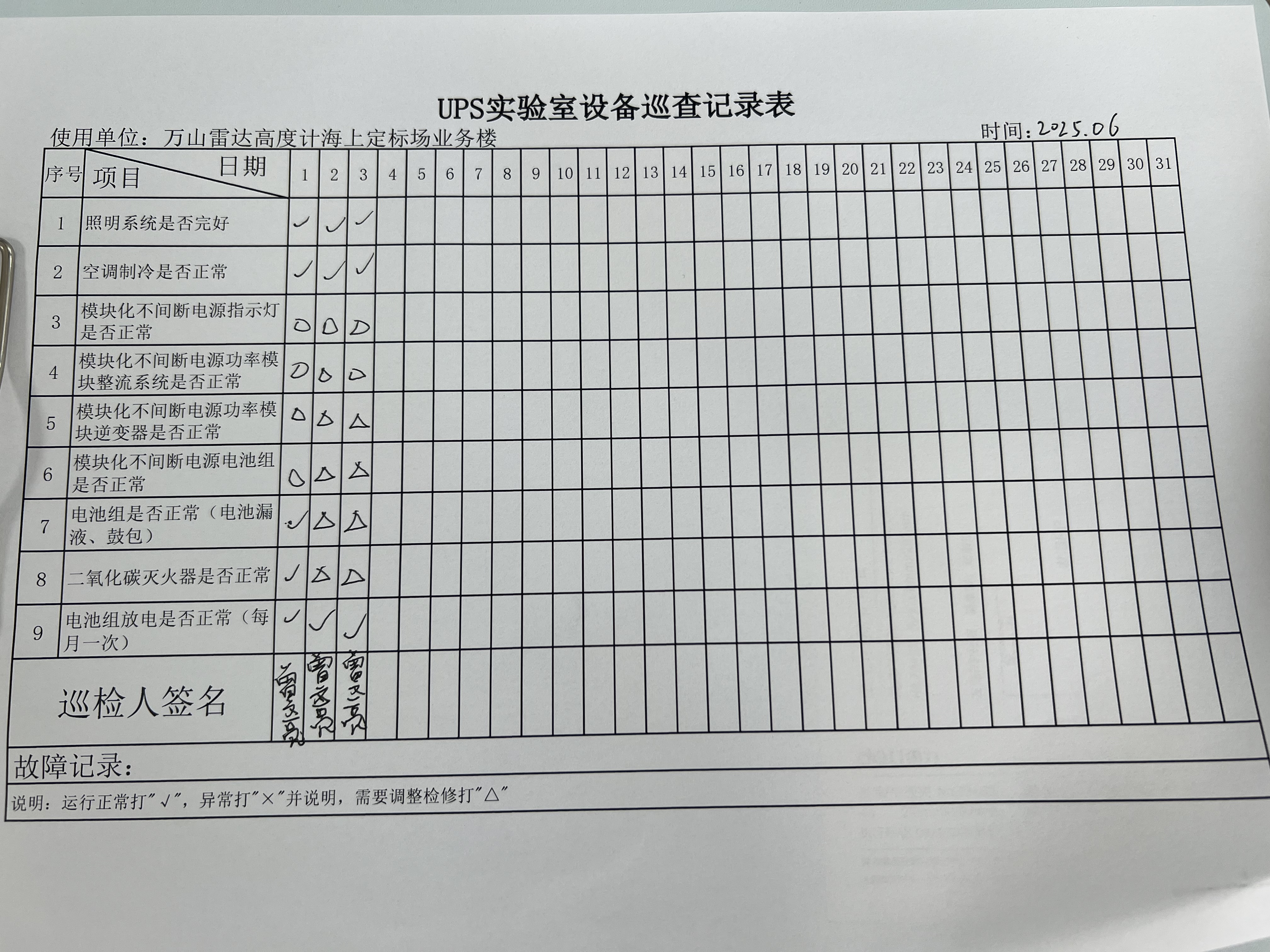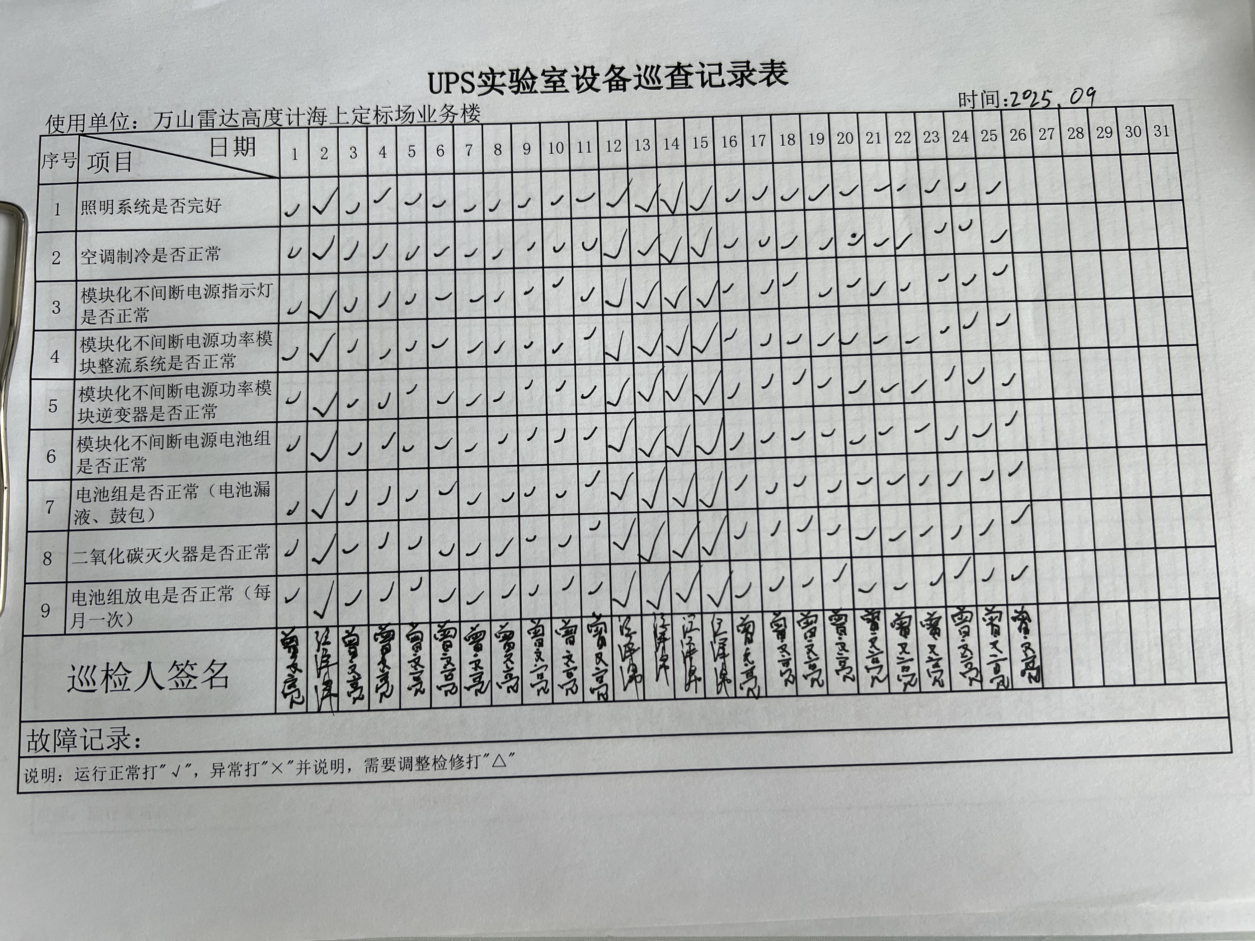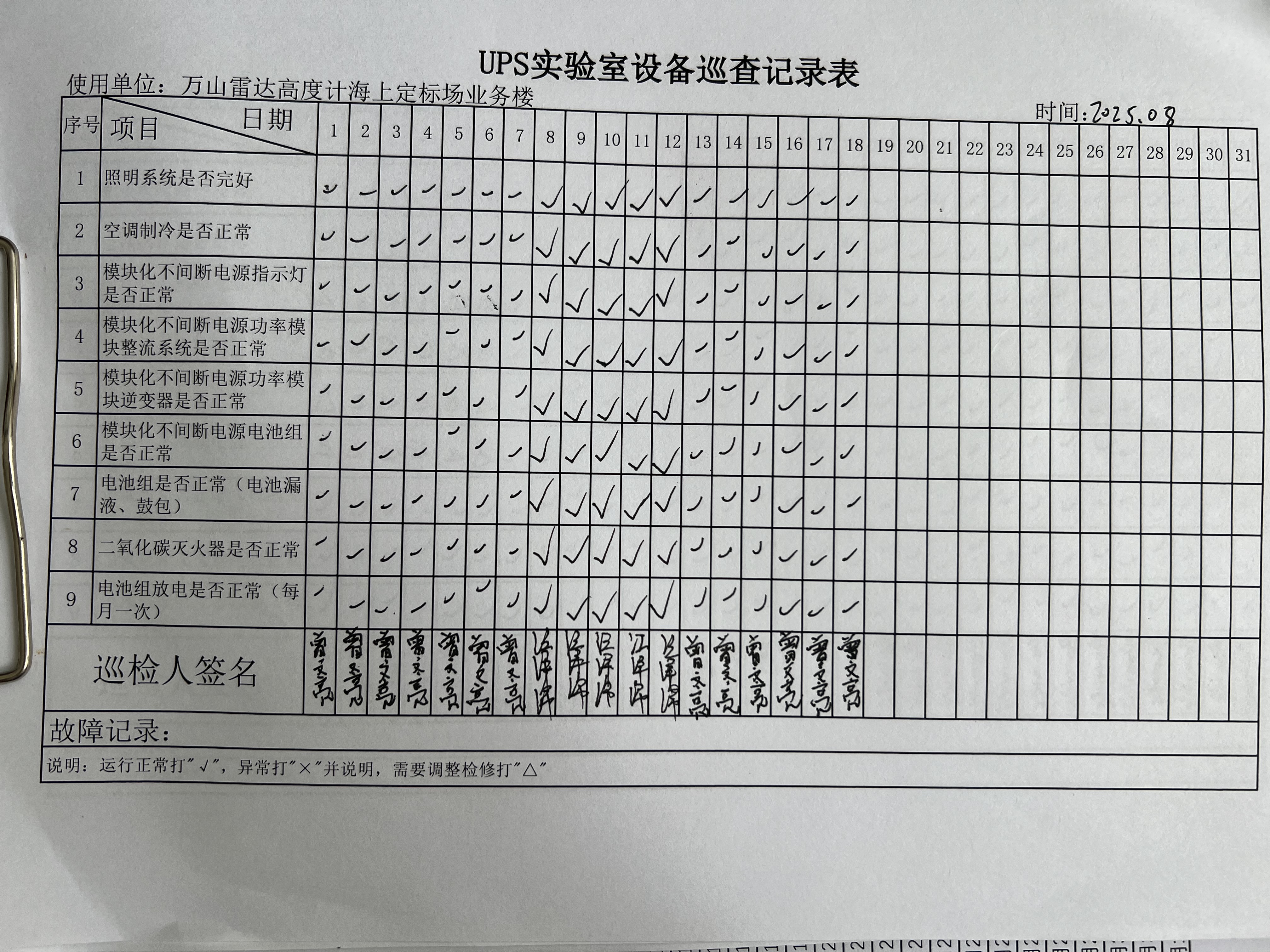 | 记录表-UPS实验室设备巡查 |