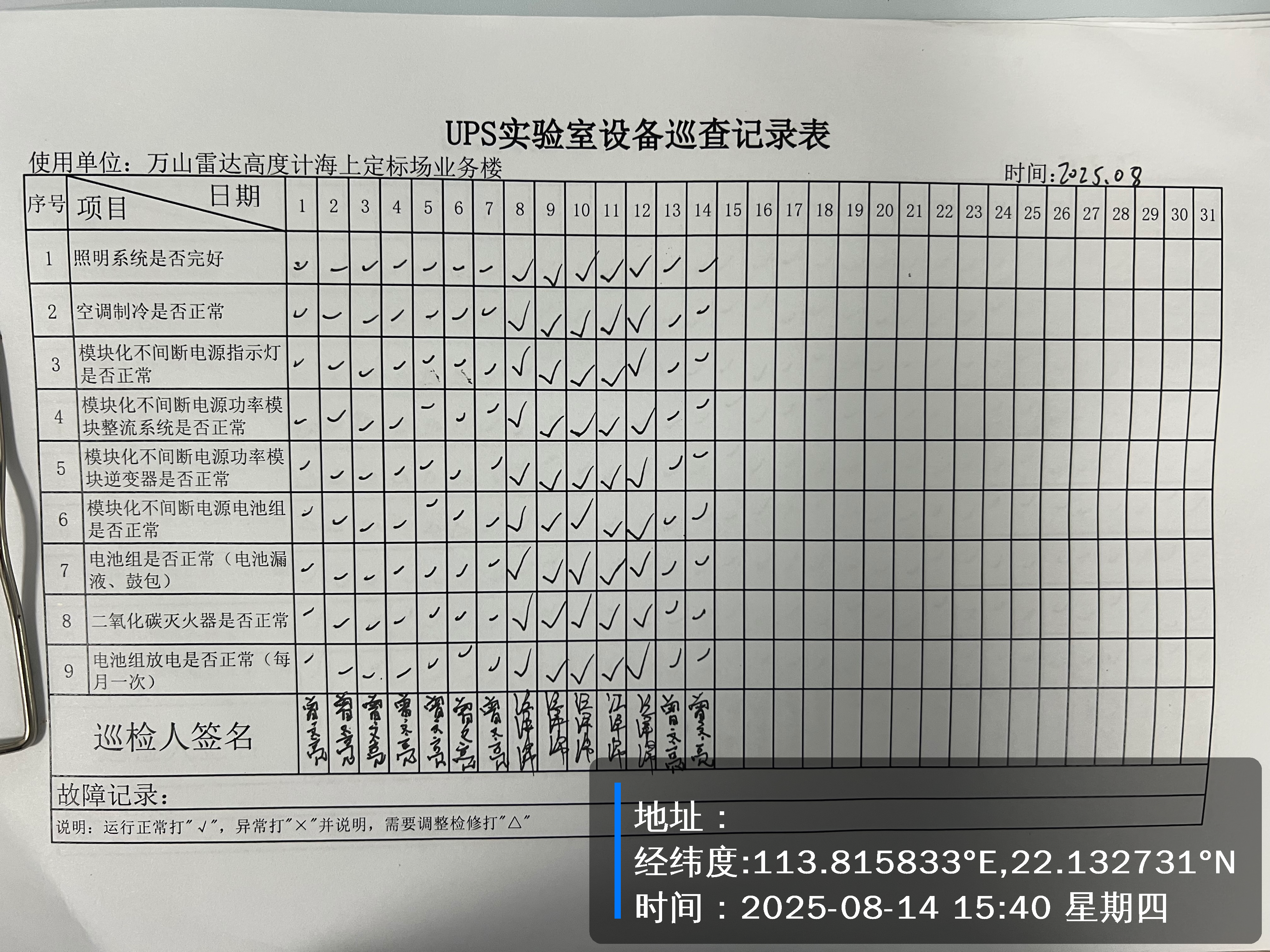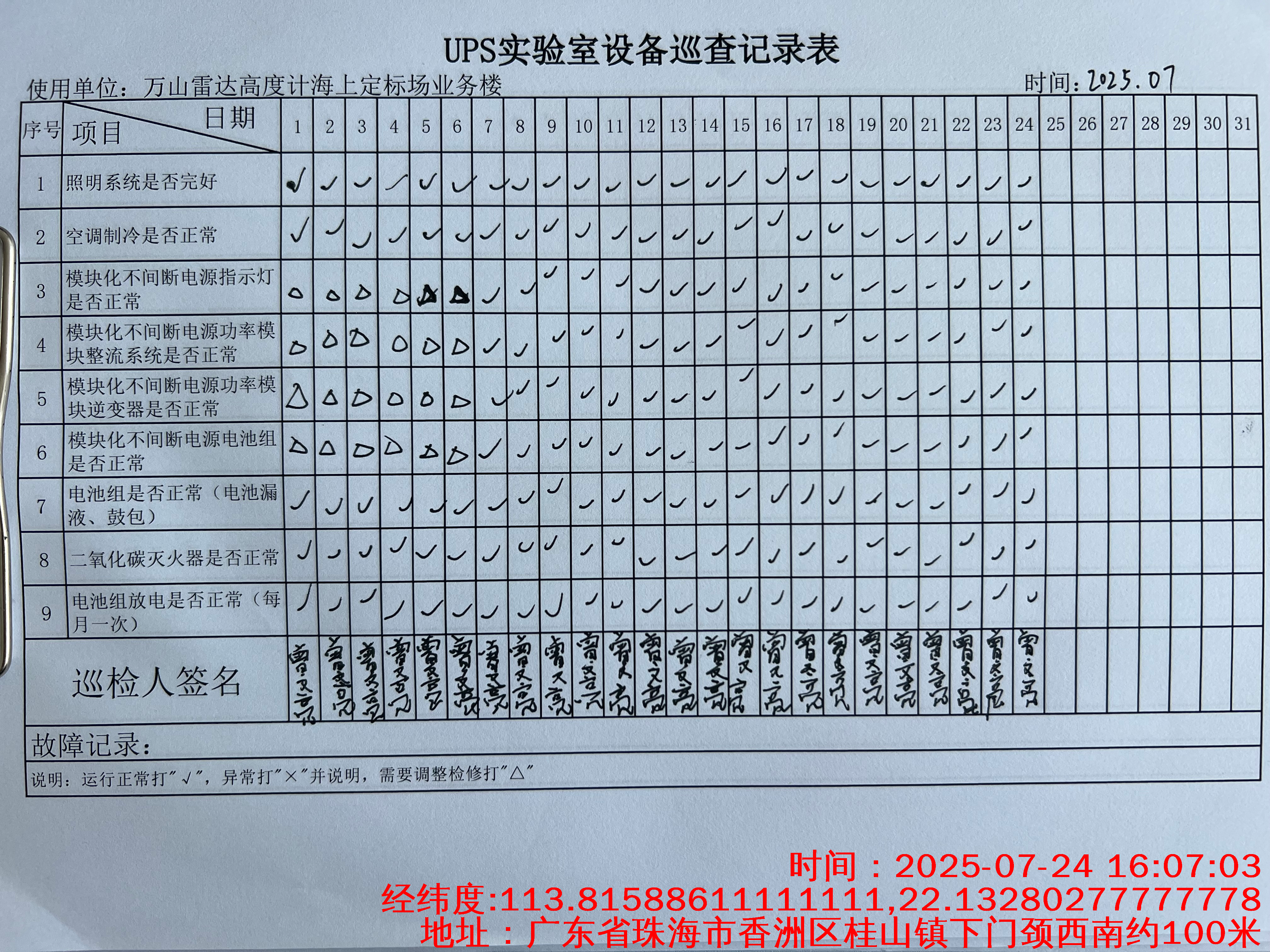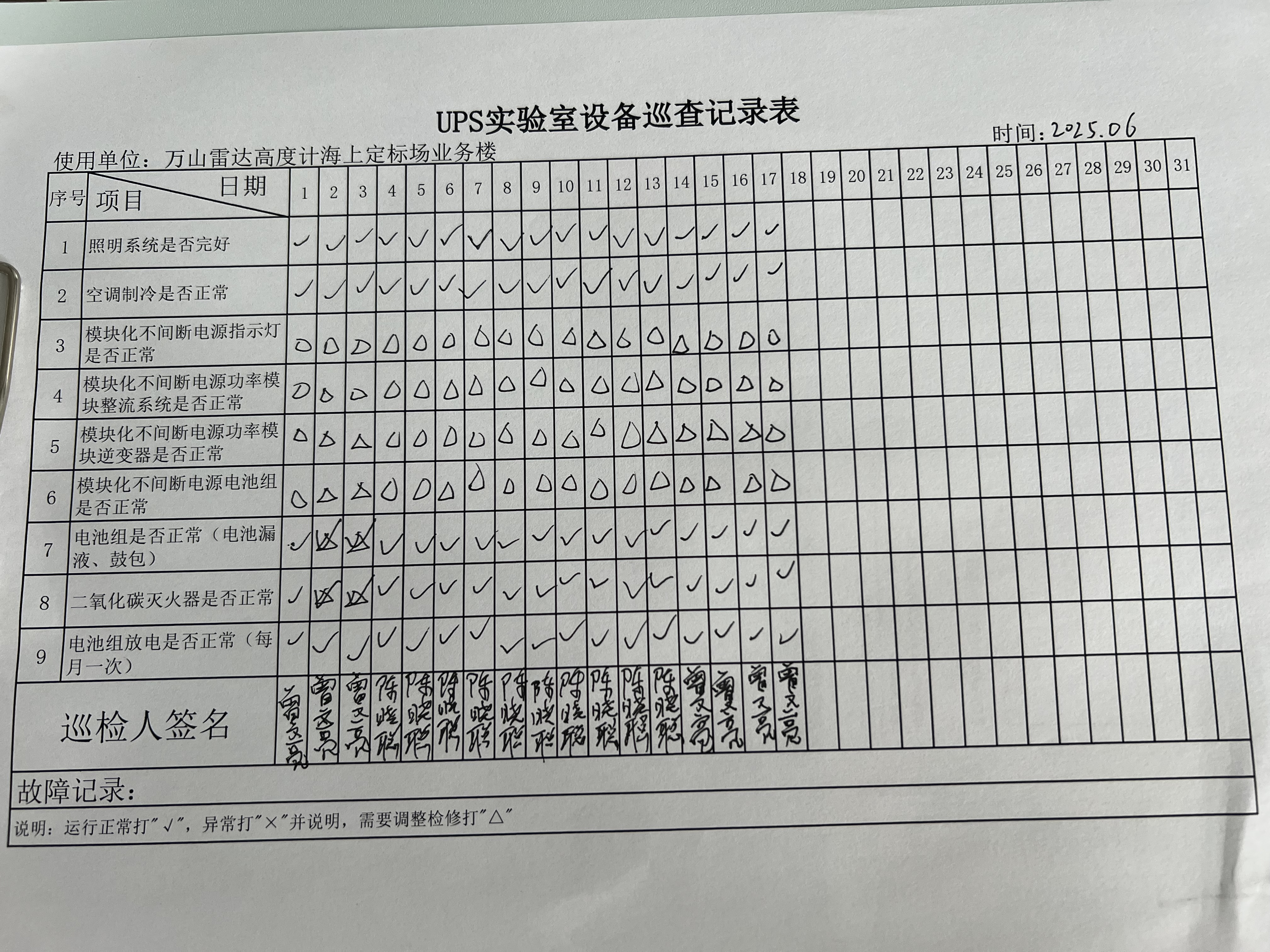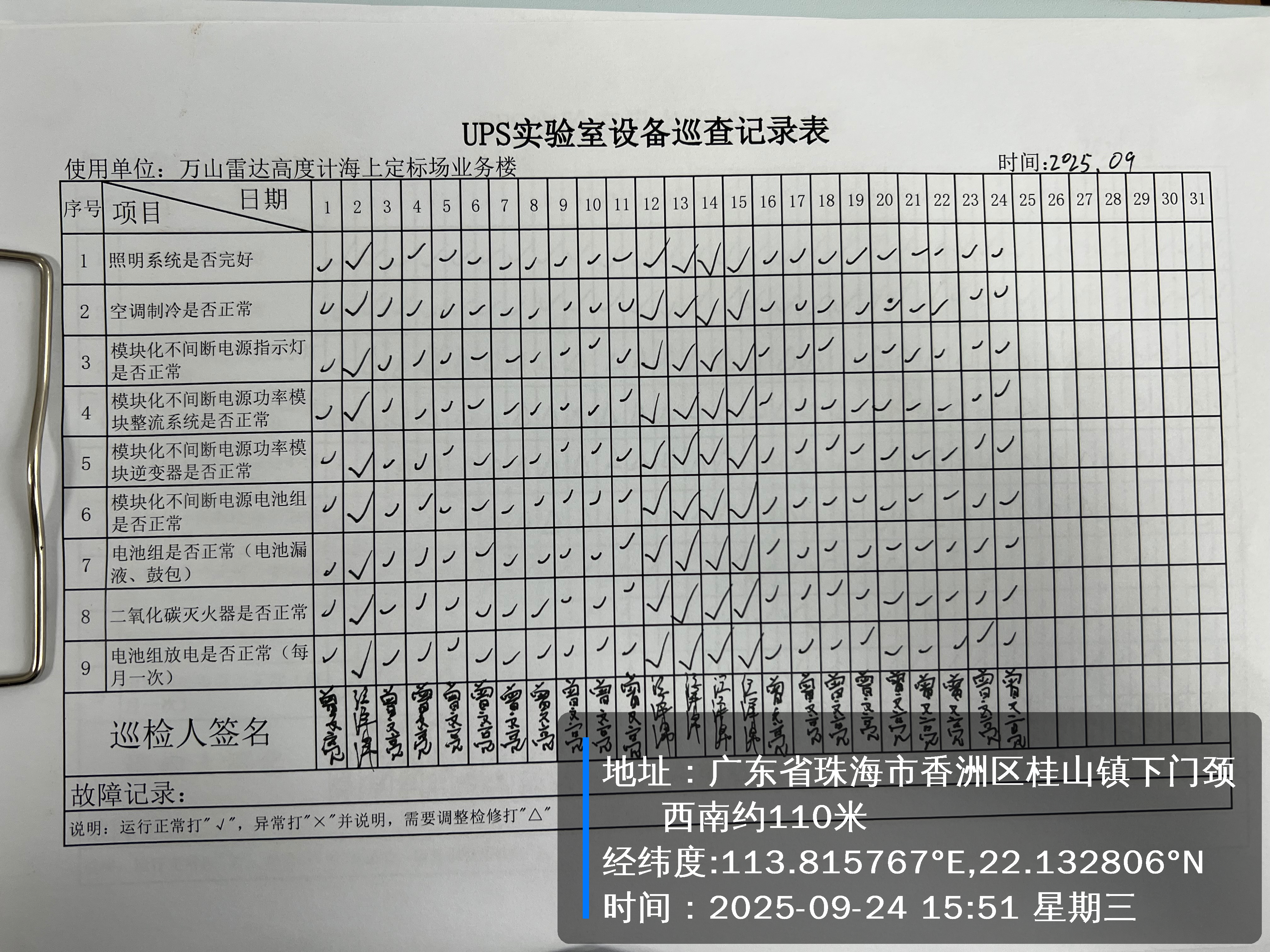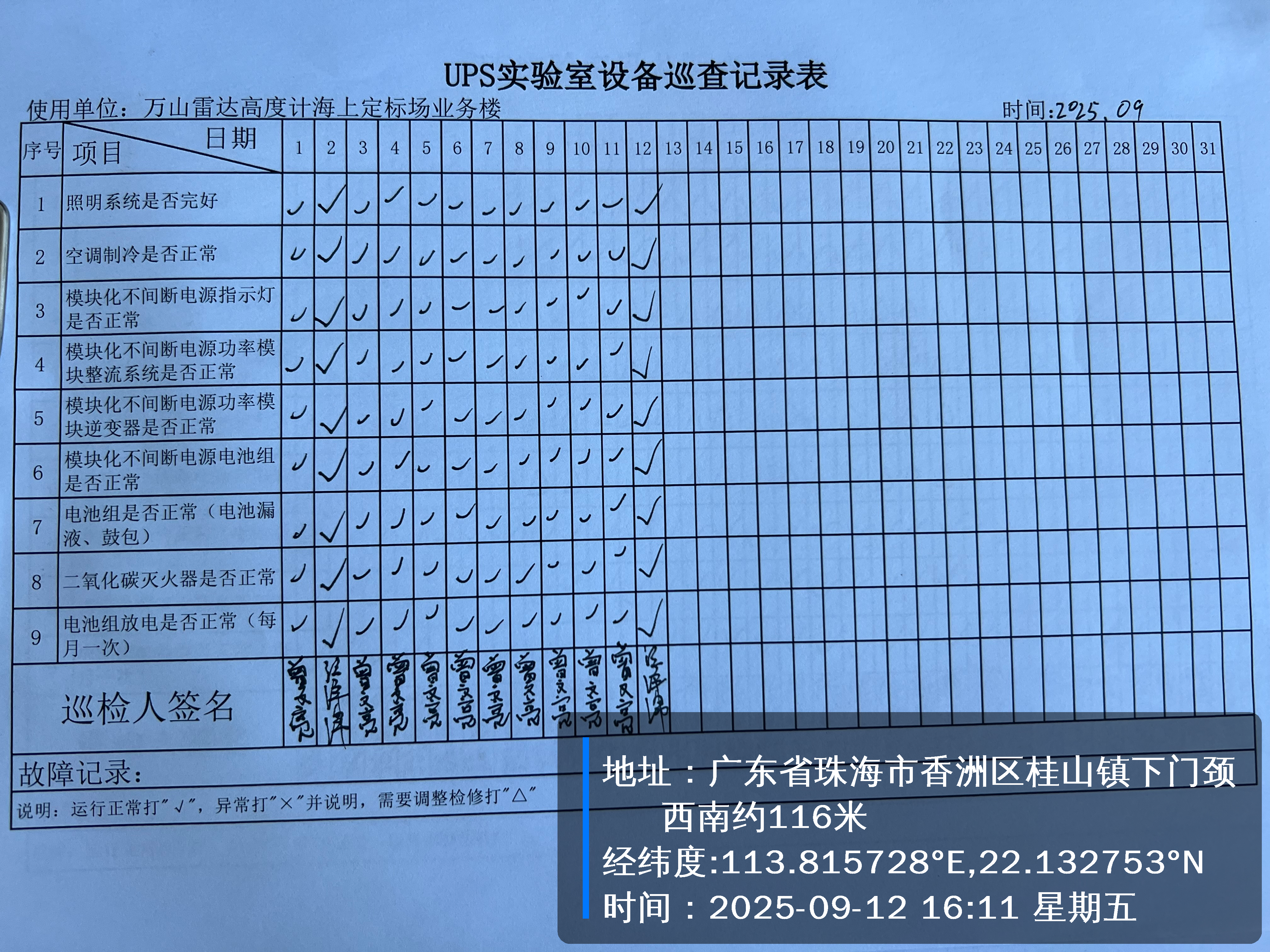 | 记录表-UPS实验室设备巡查 |