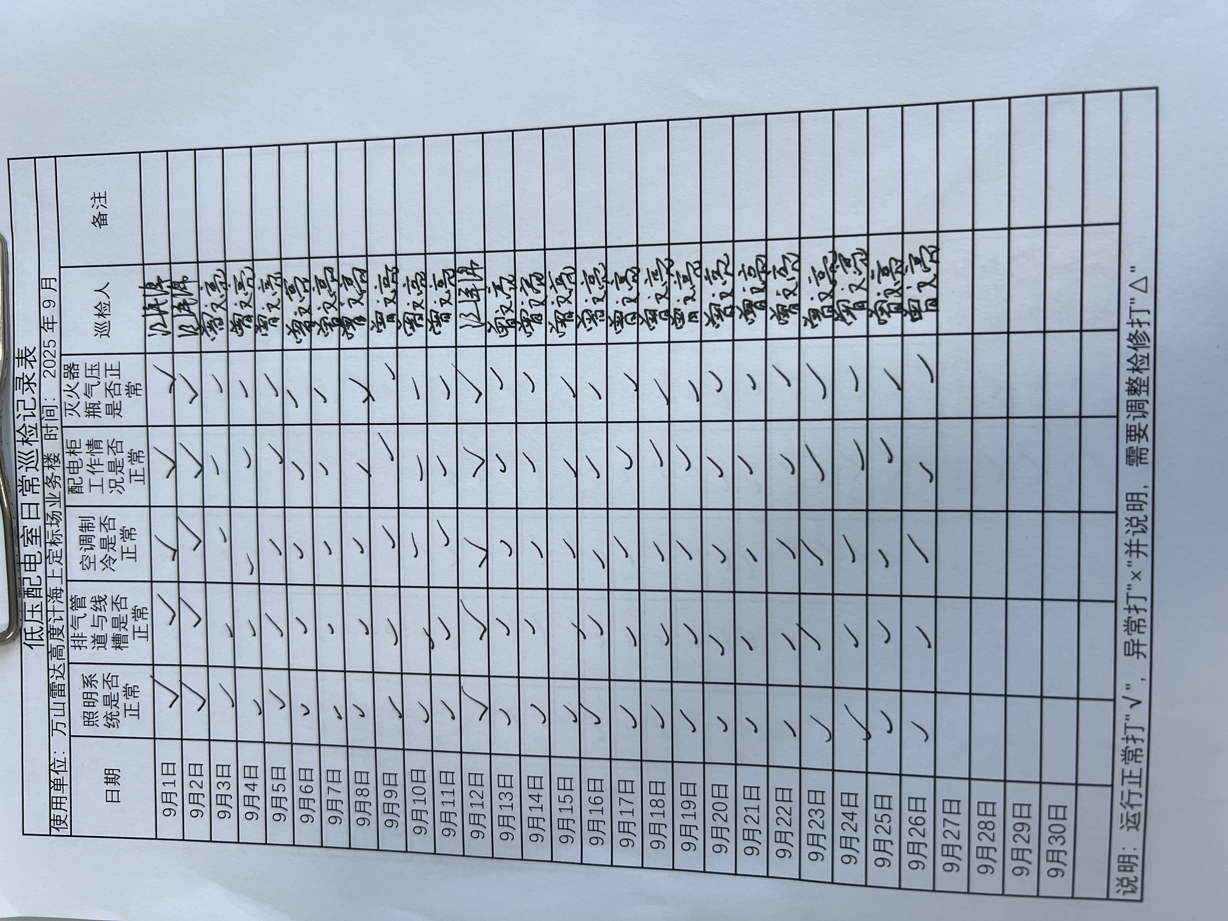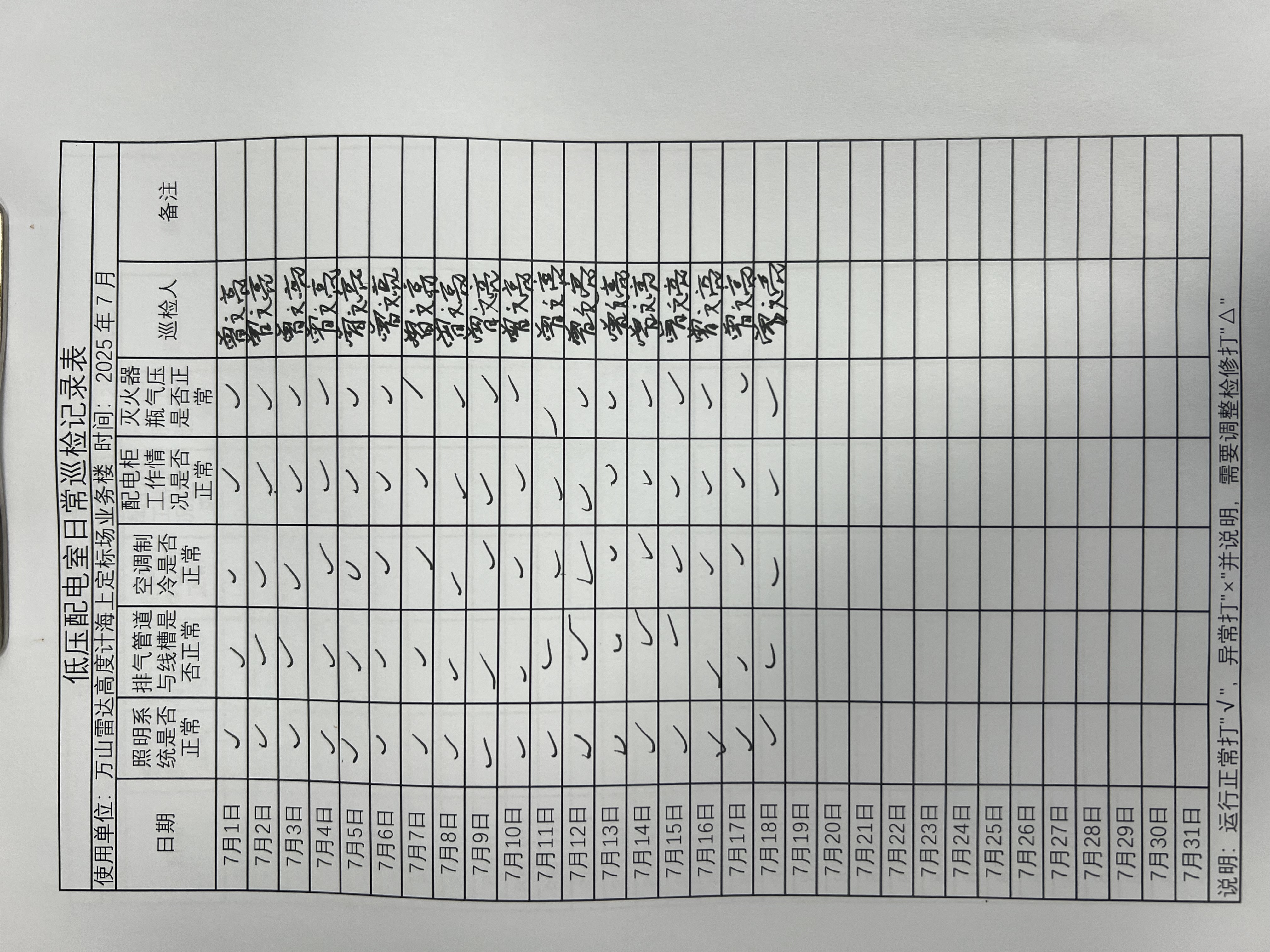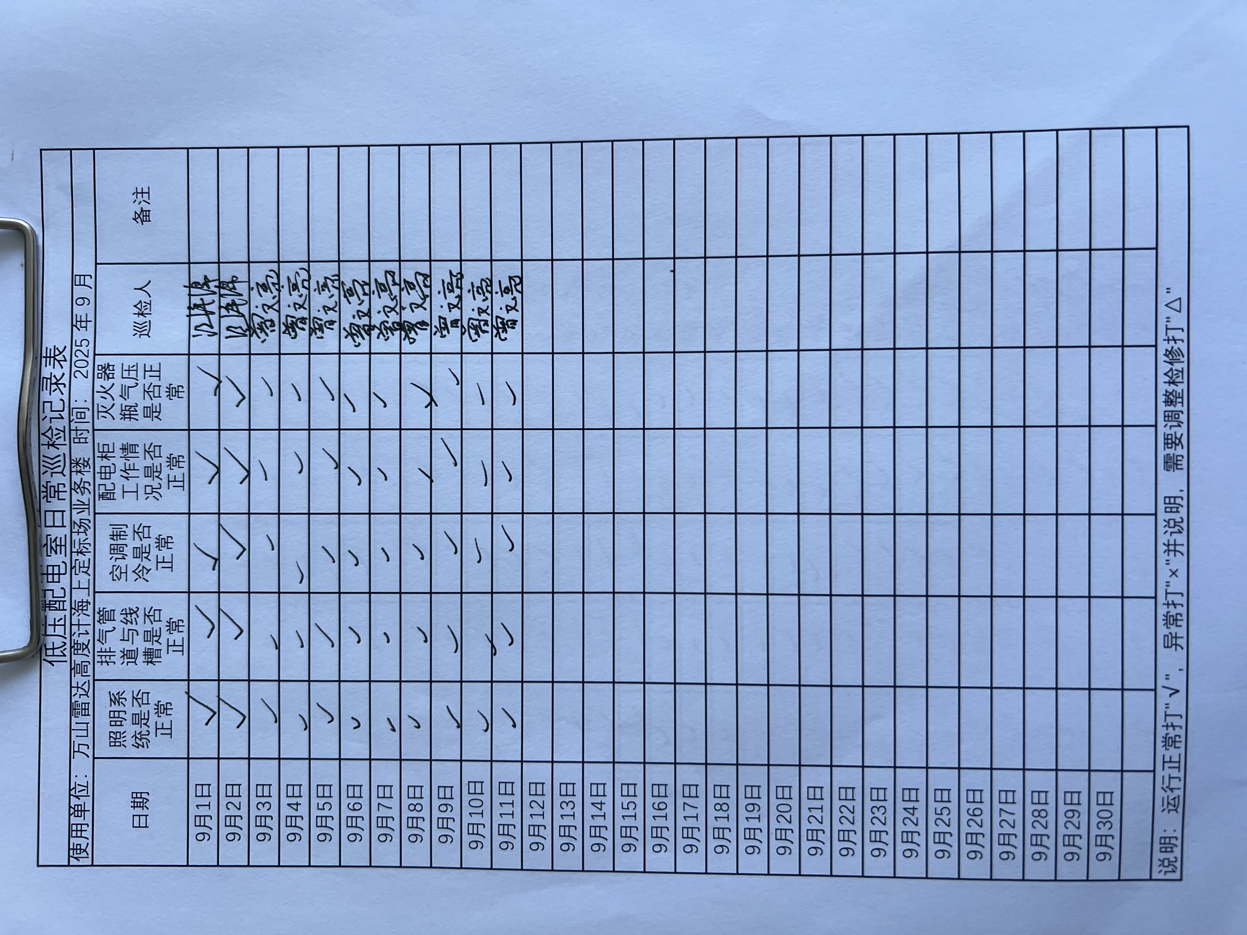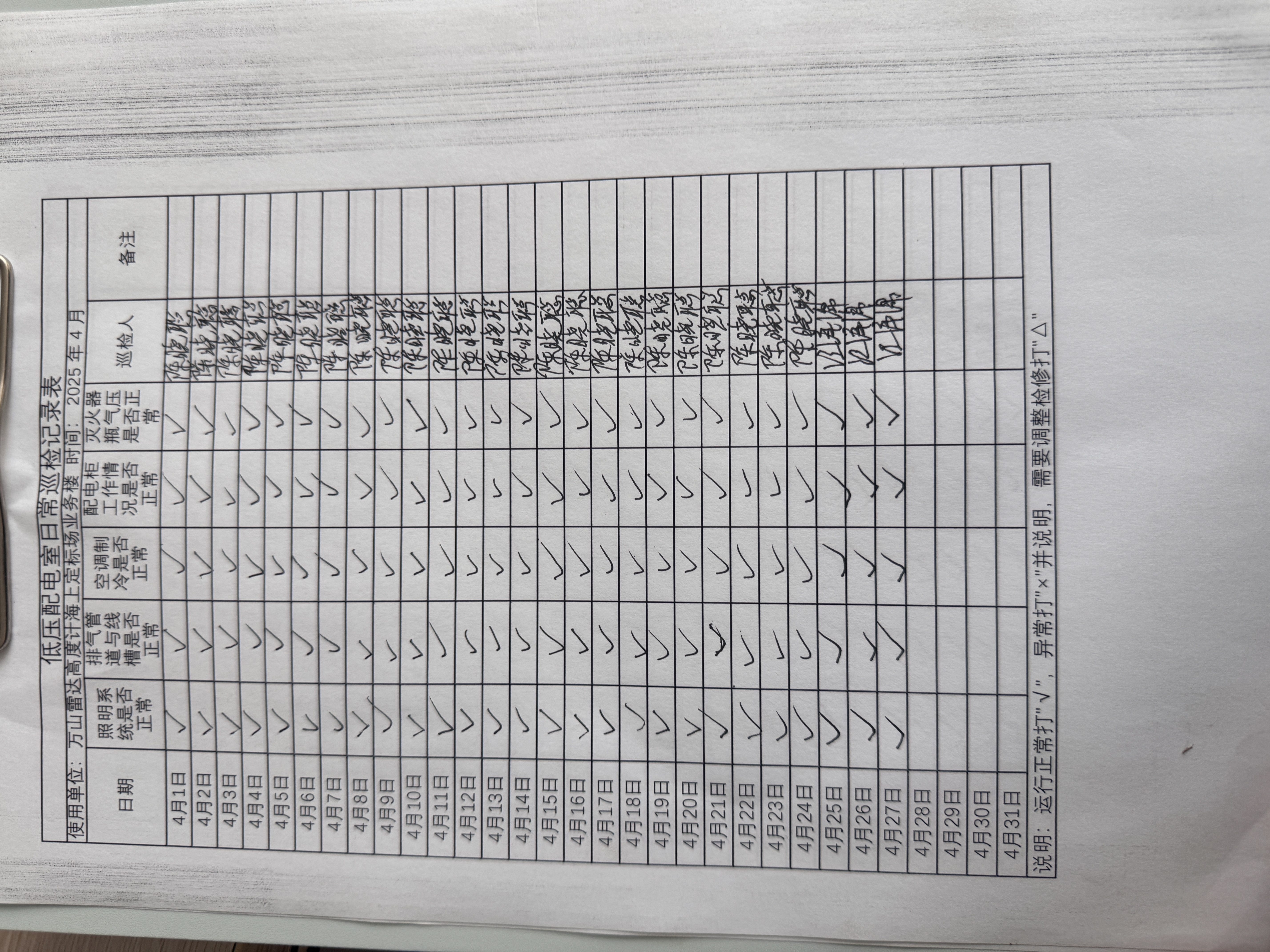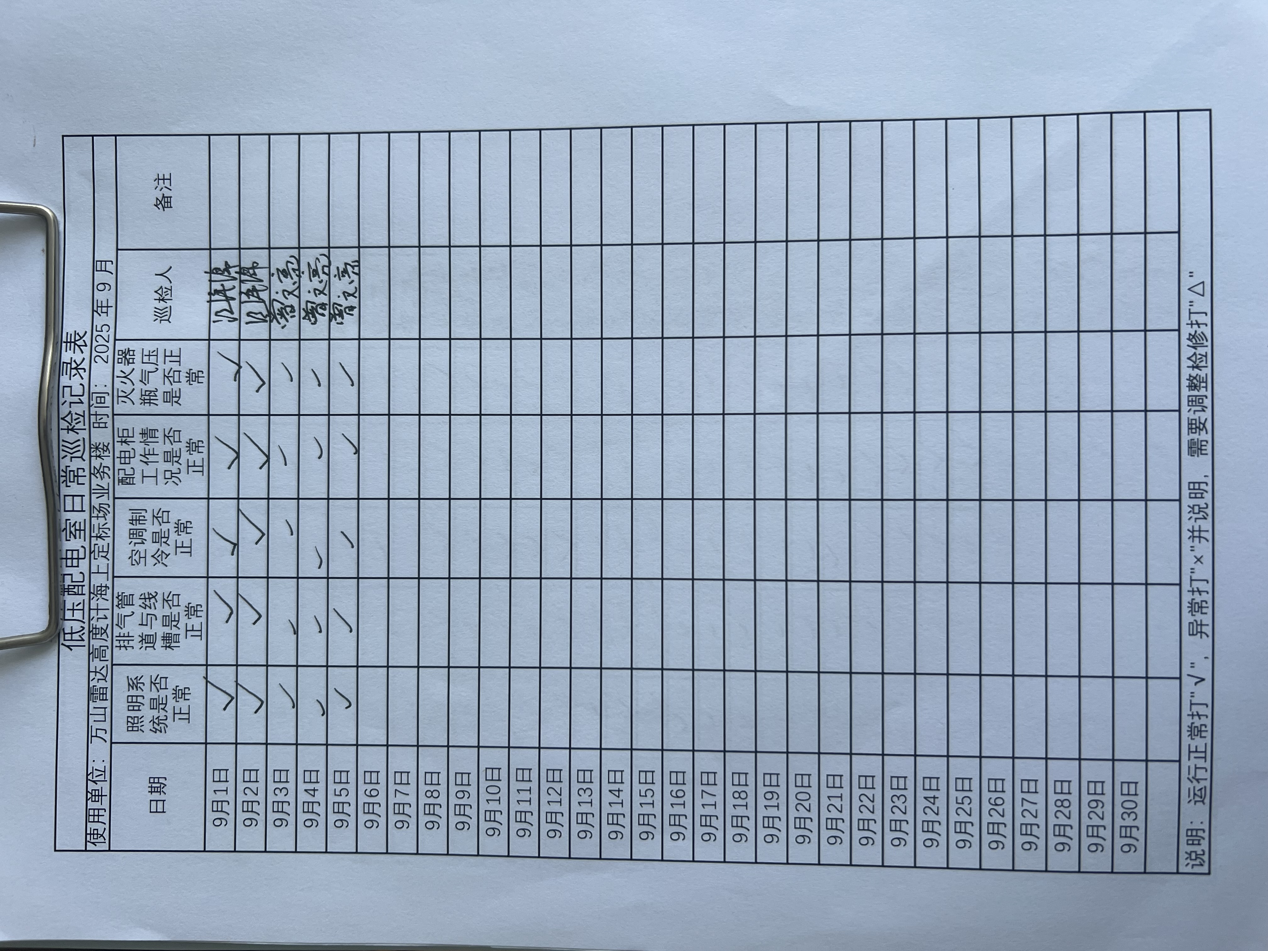 | 记录表-低压配电室日常巡检 |