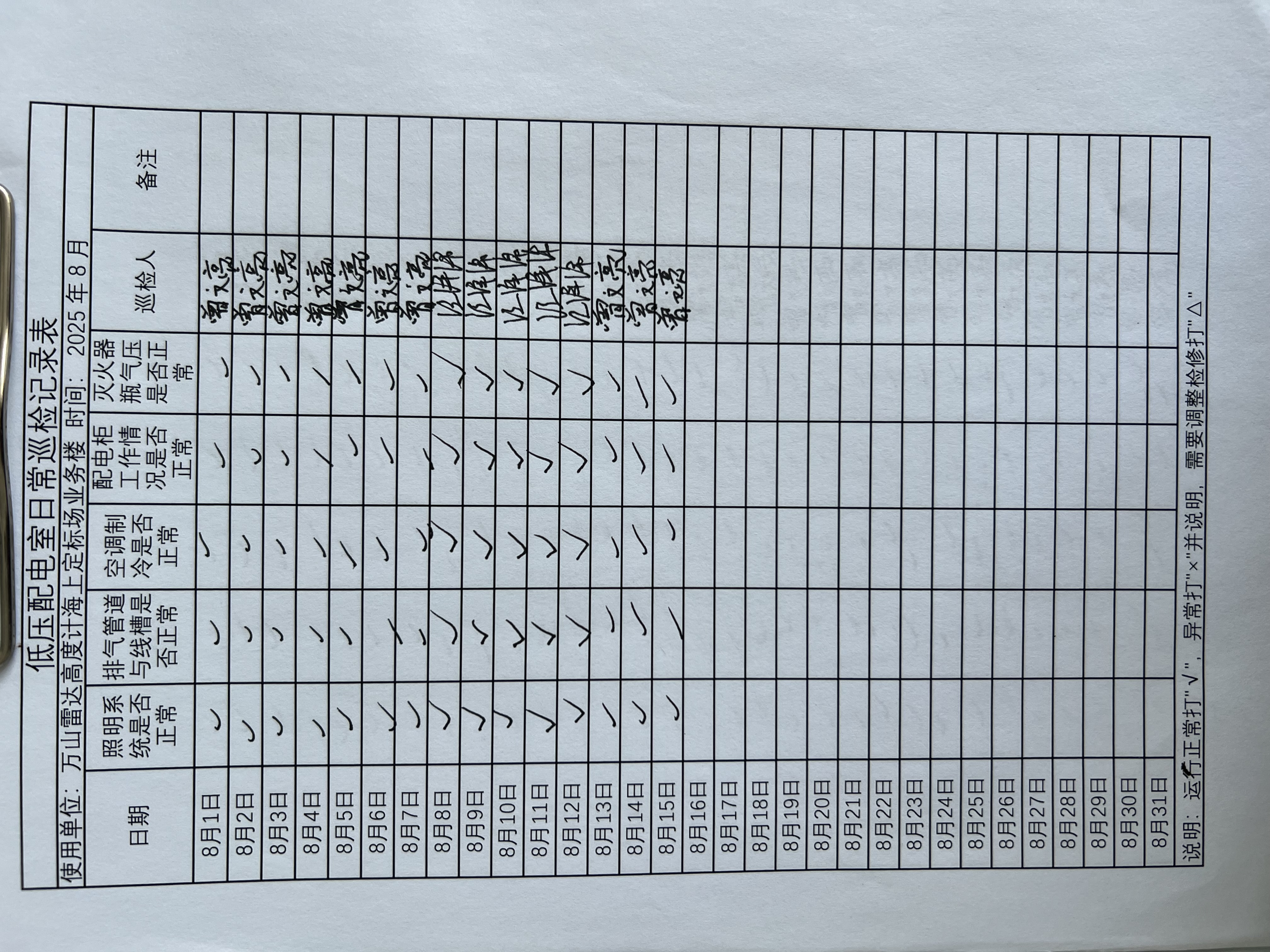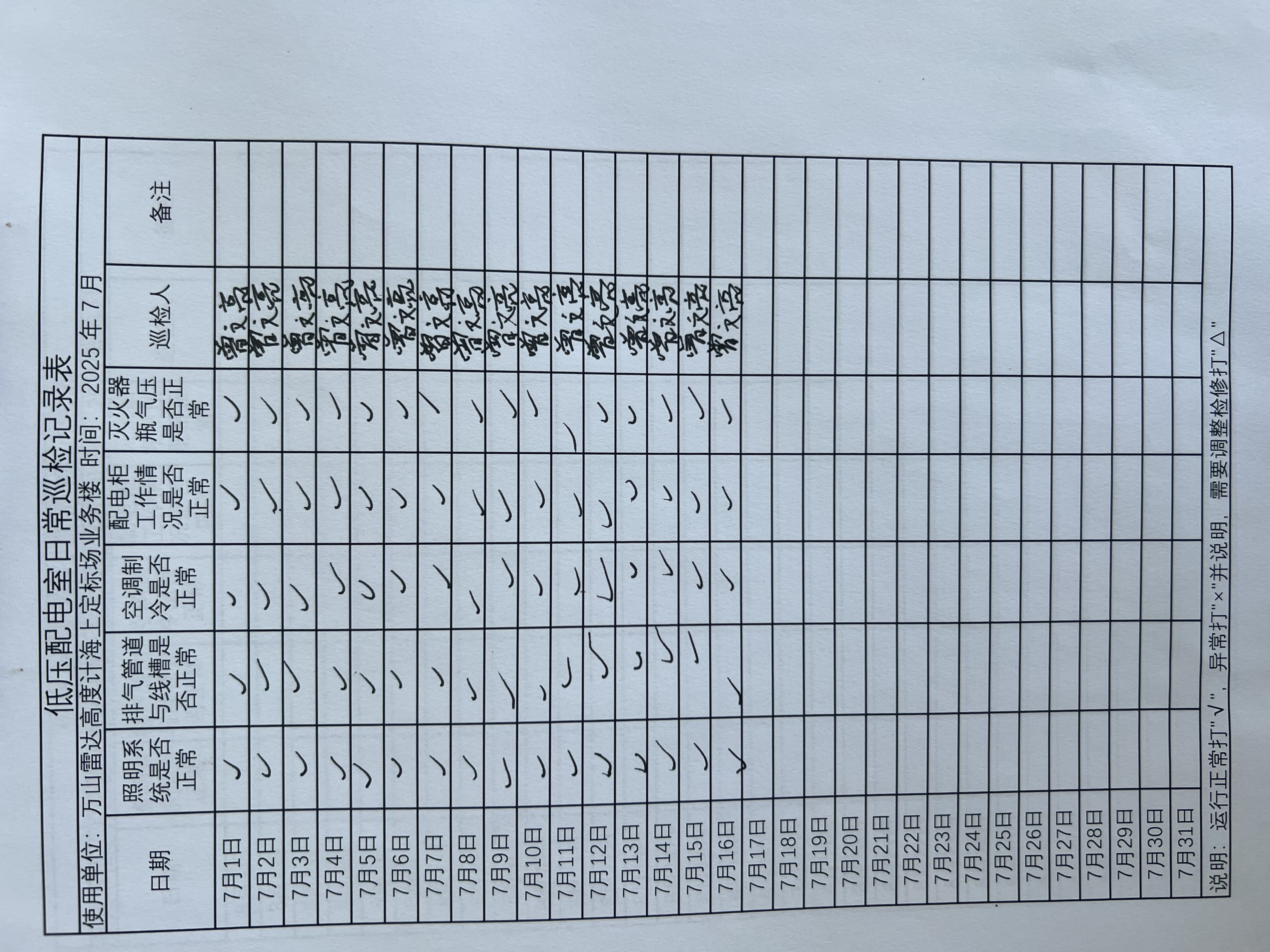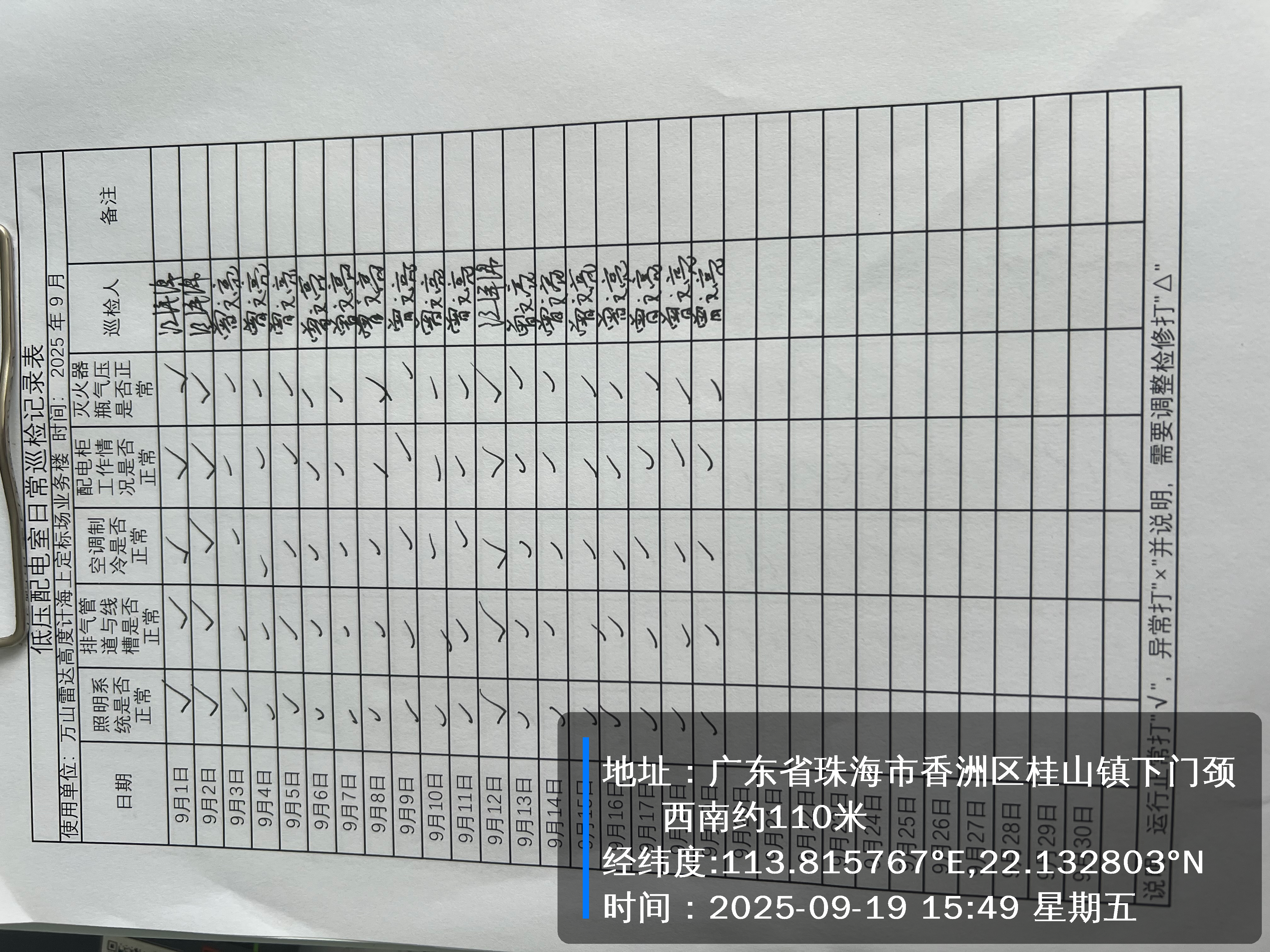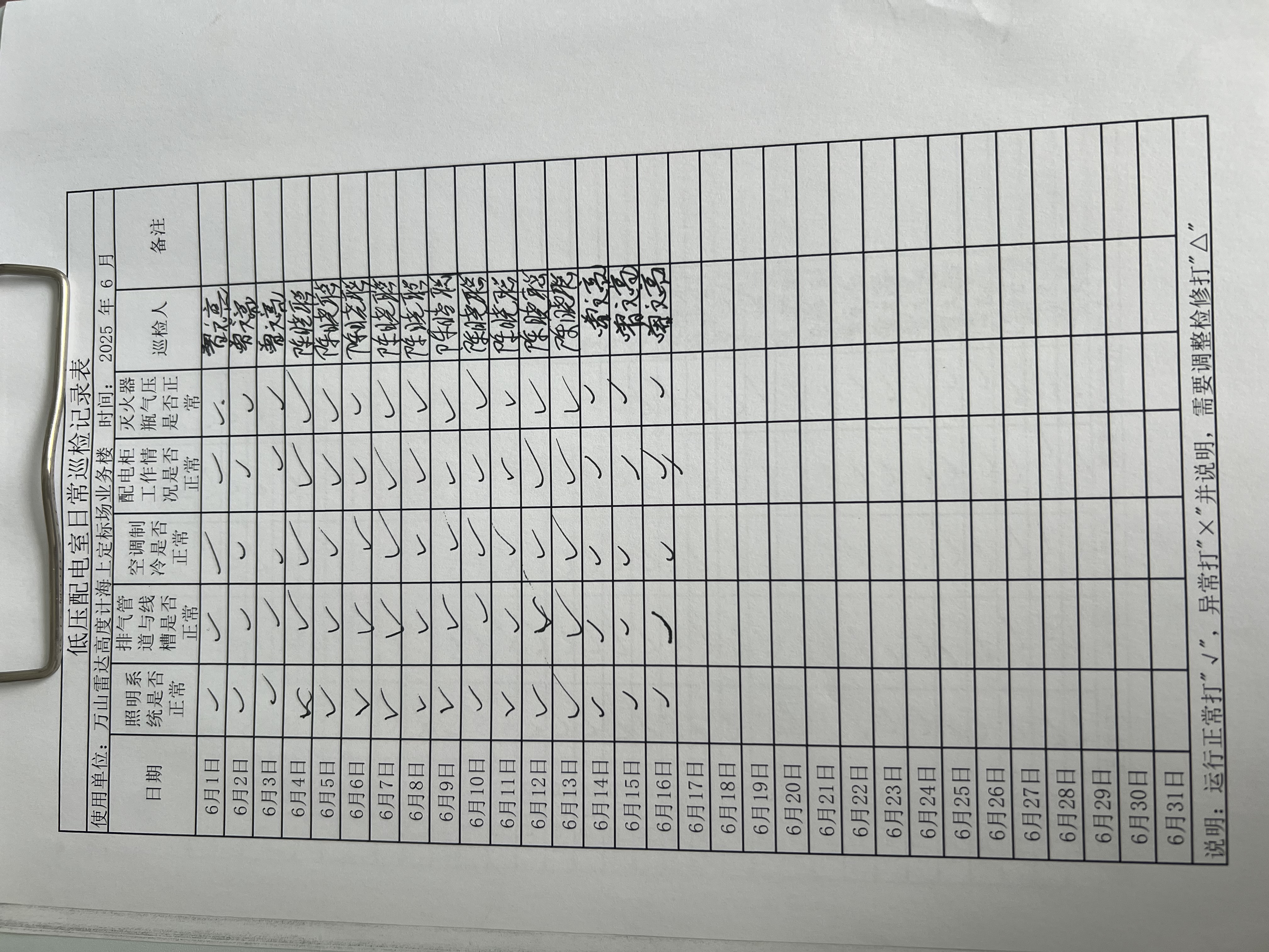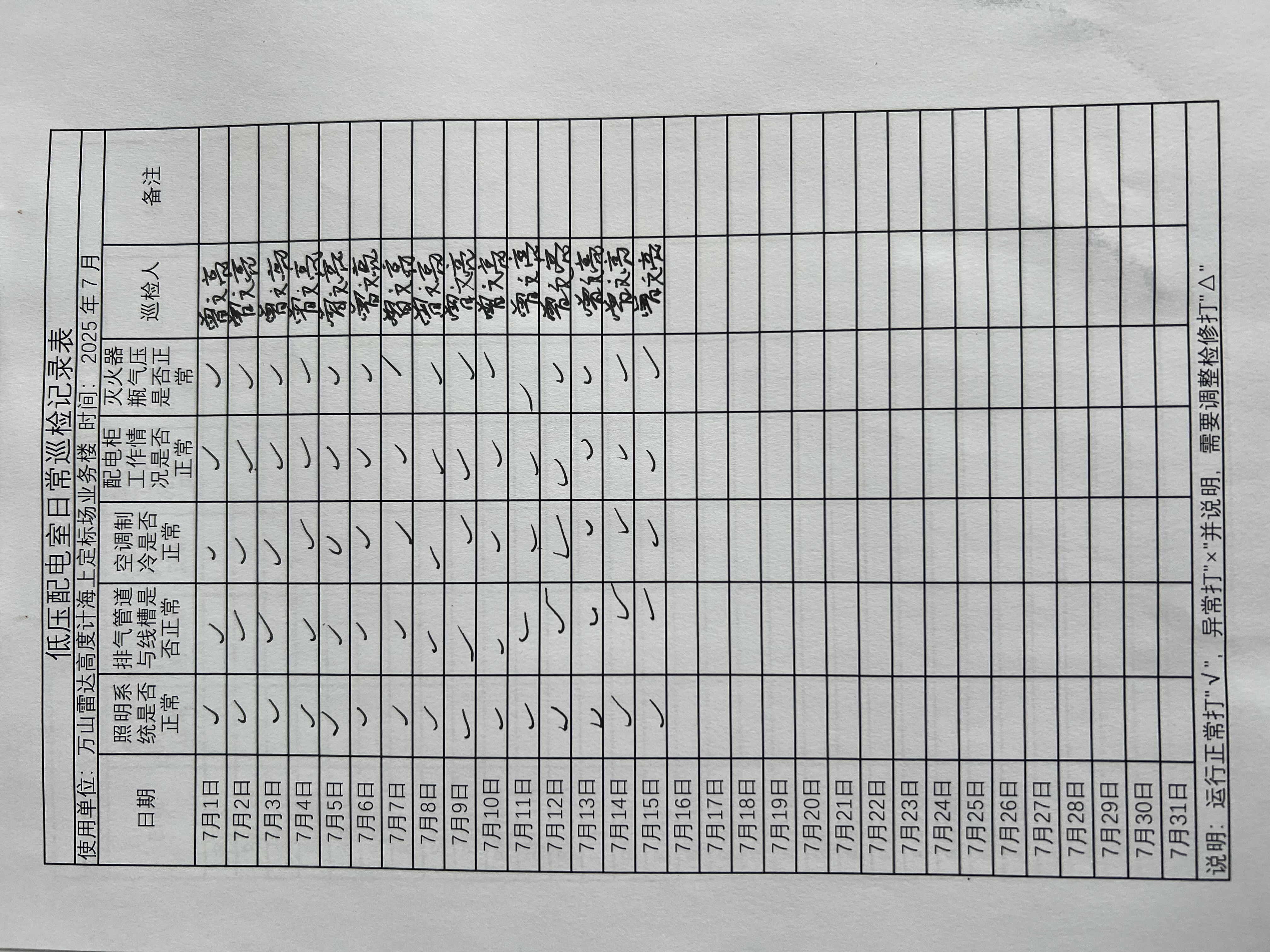 | 记录表-低压配电室日常巡检 |