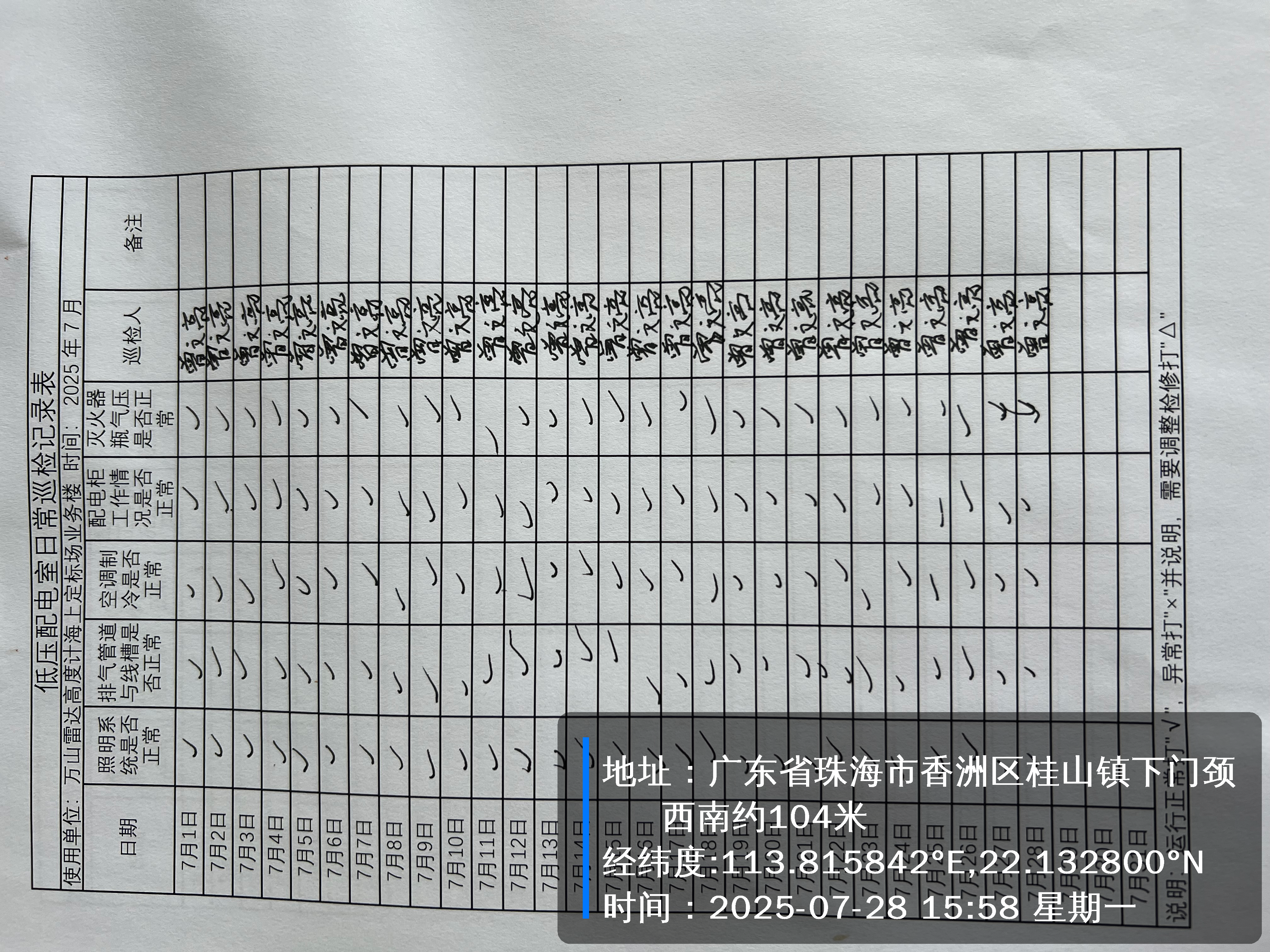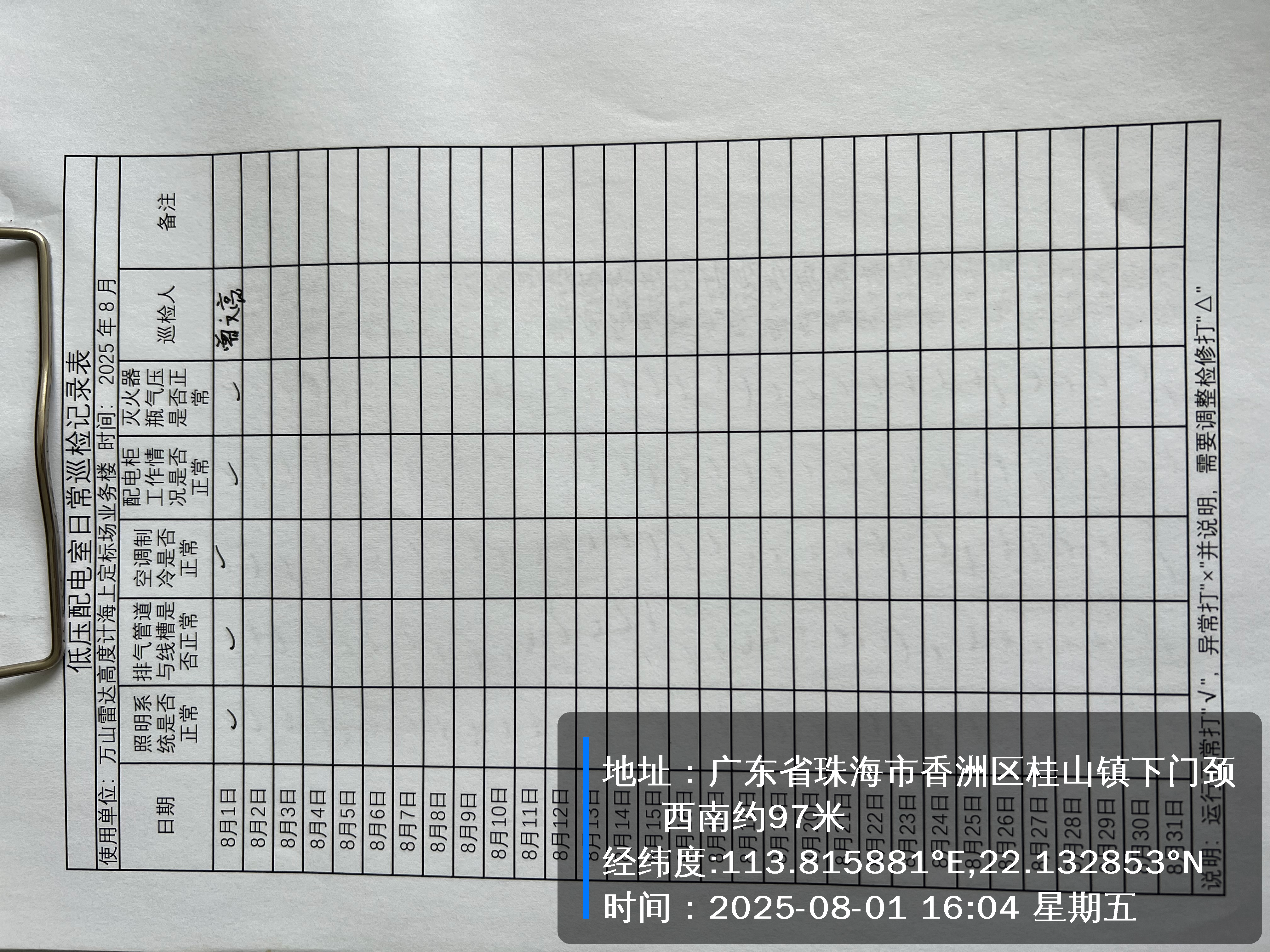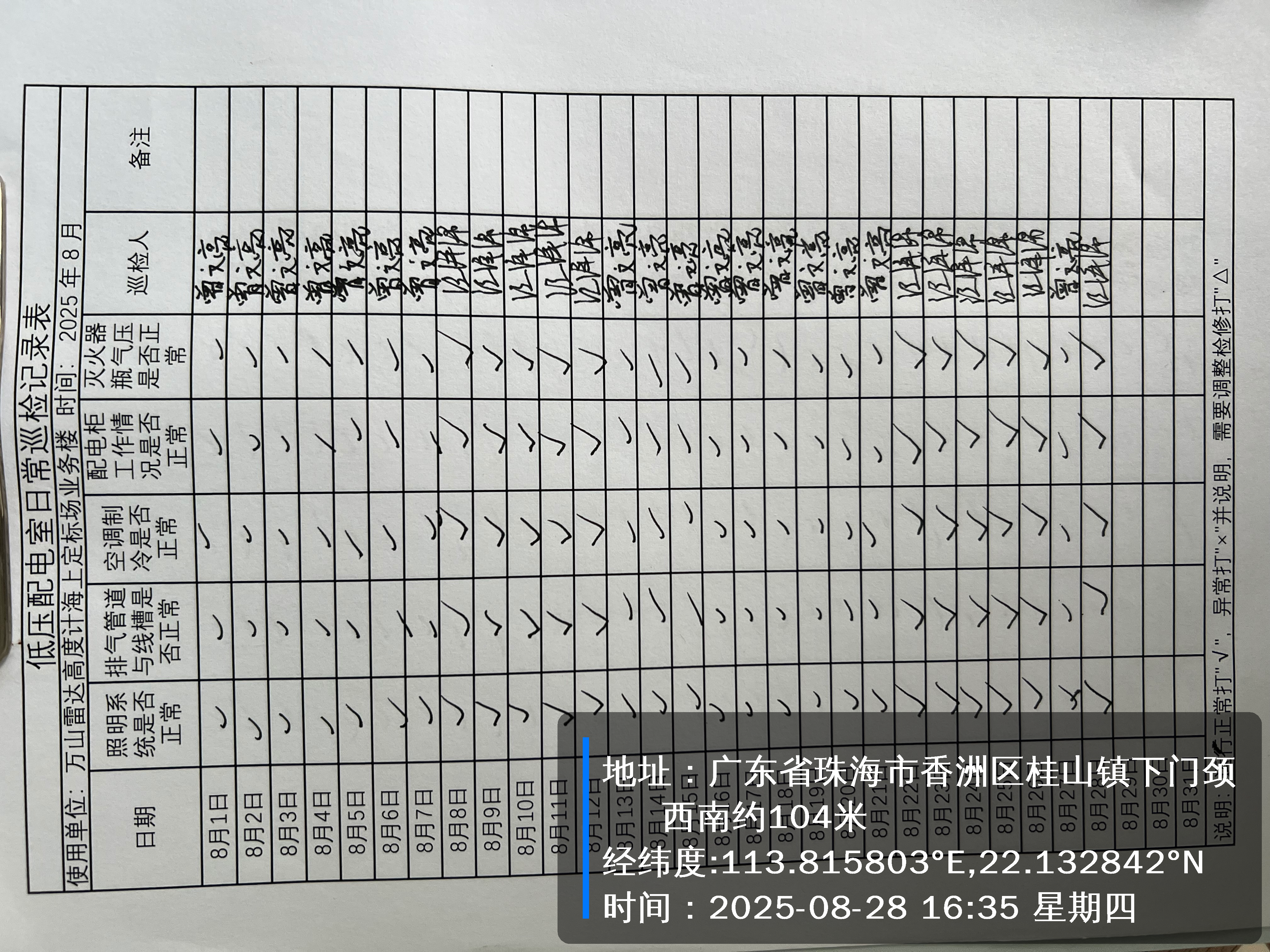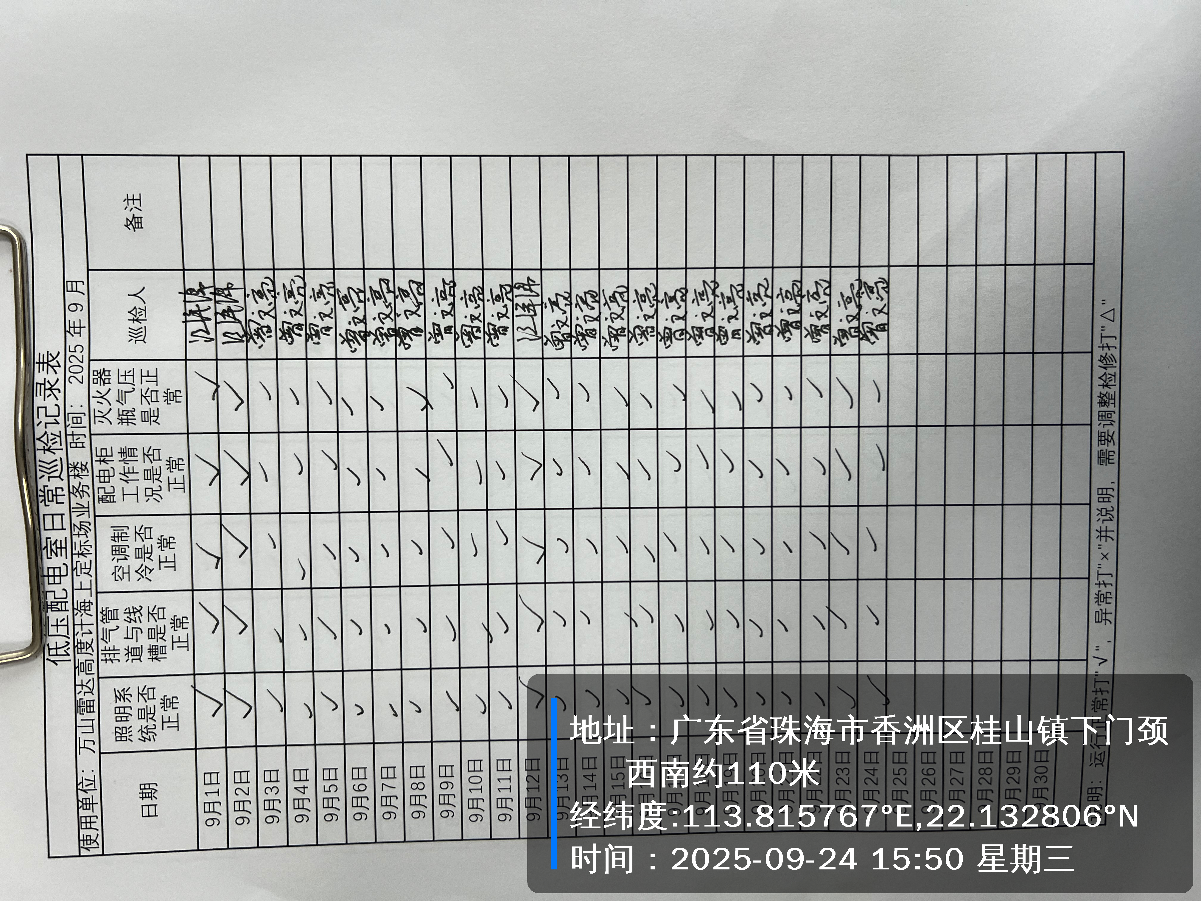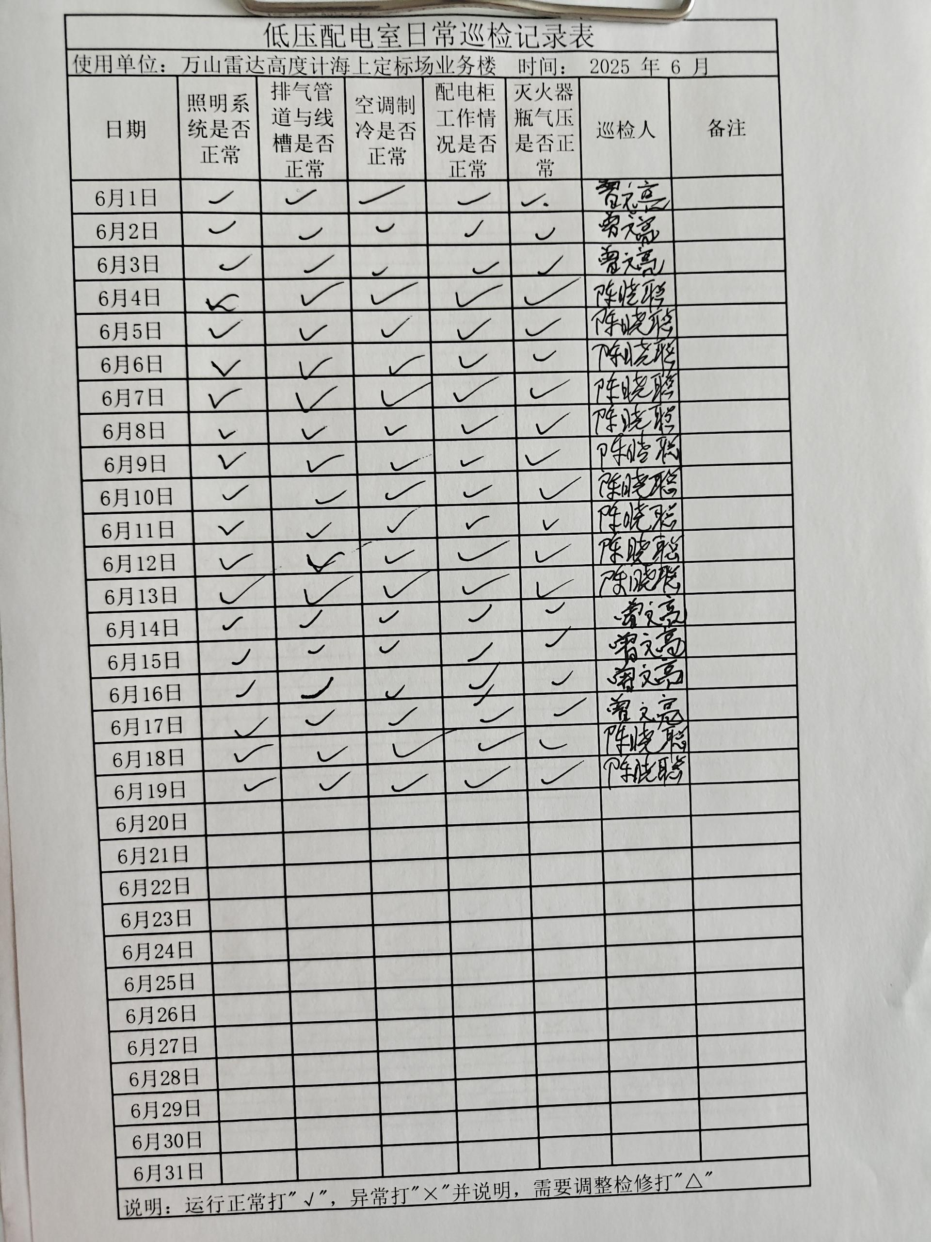 | 记录表-低压配电室日常巡检 |