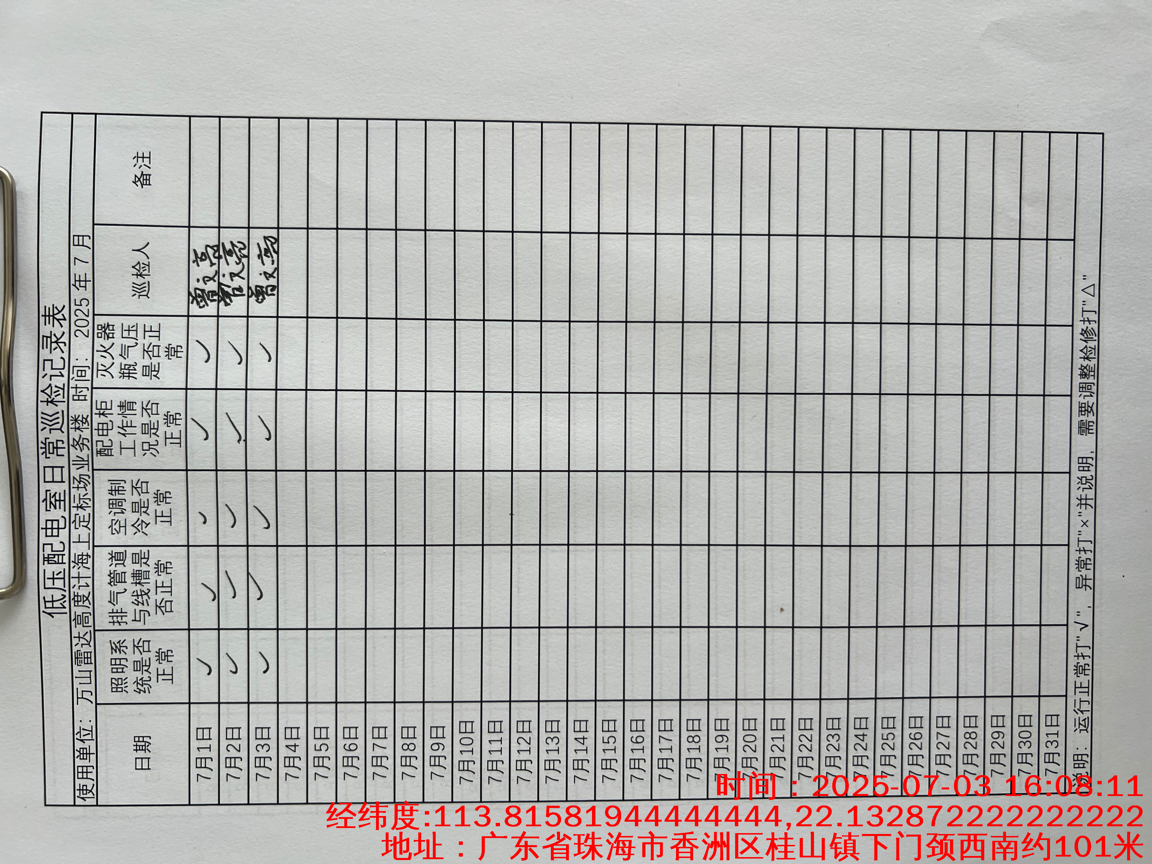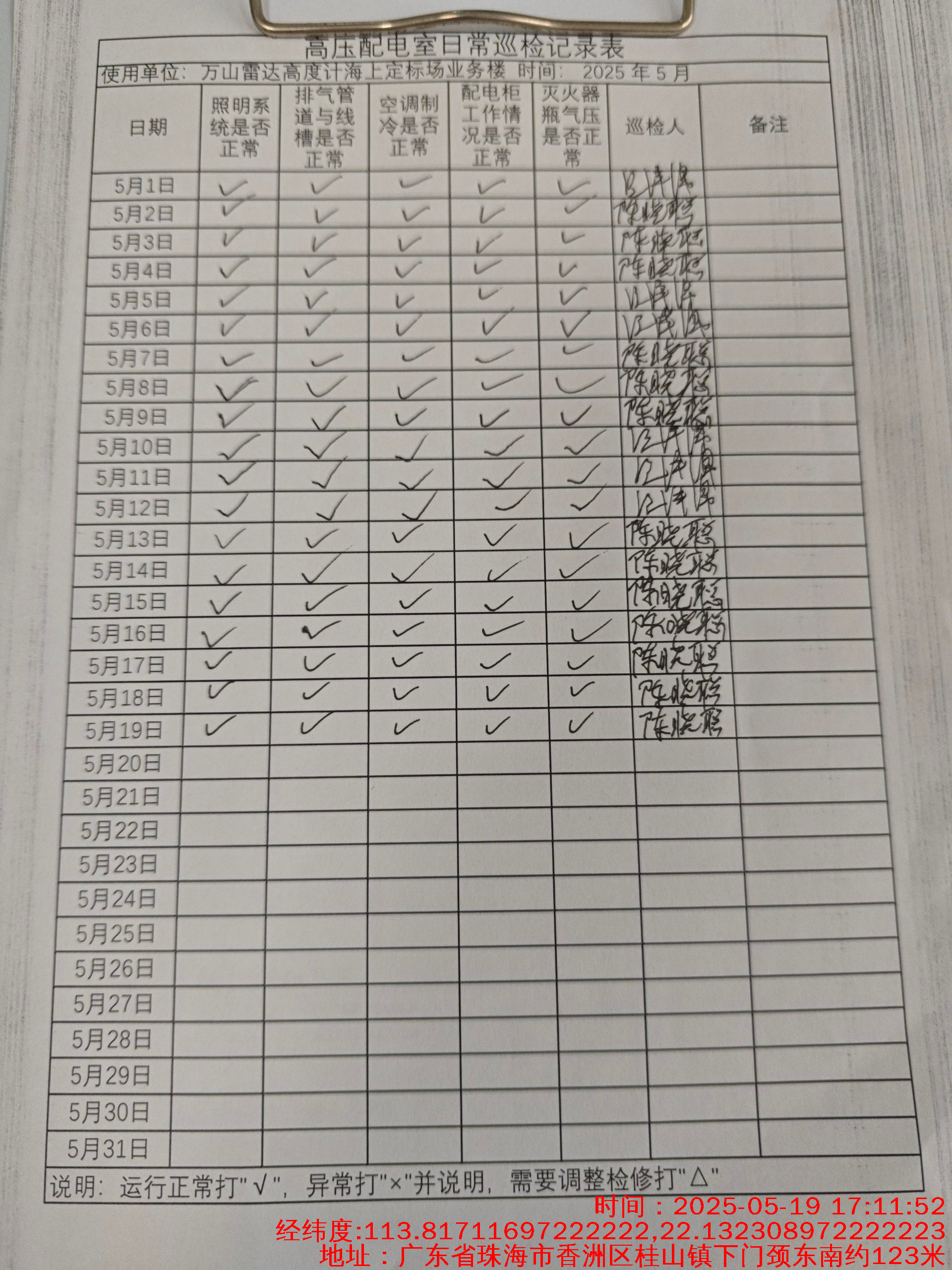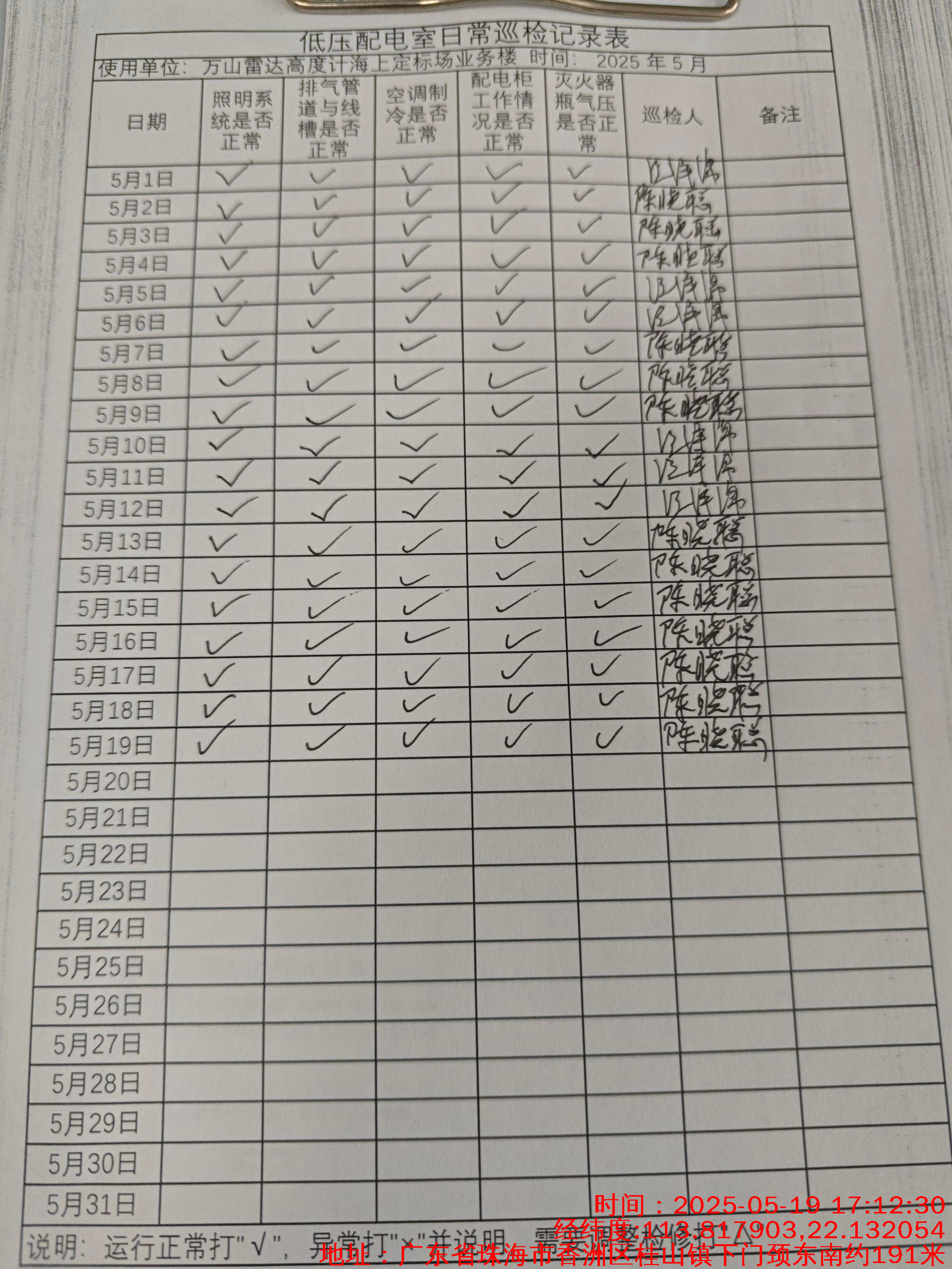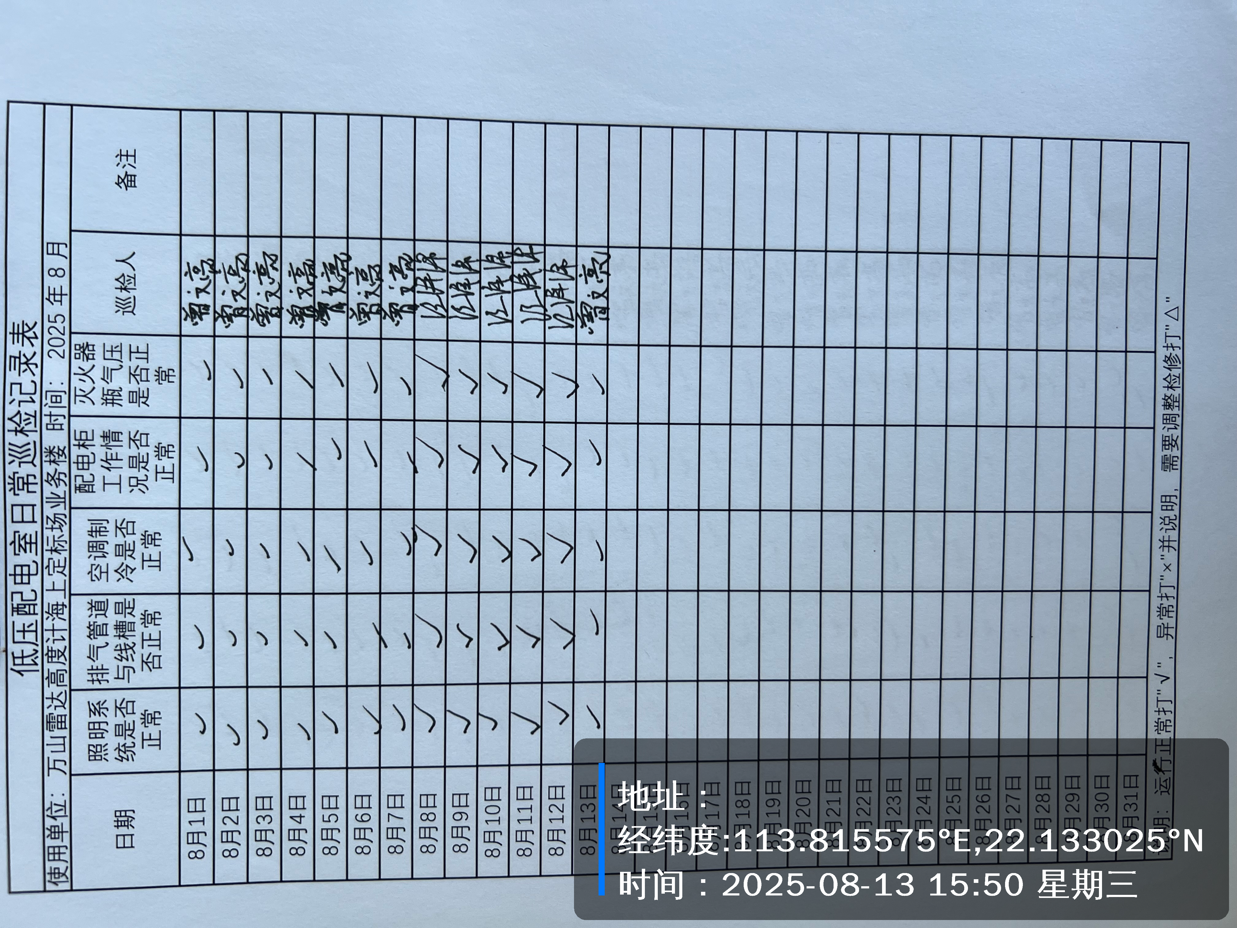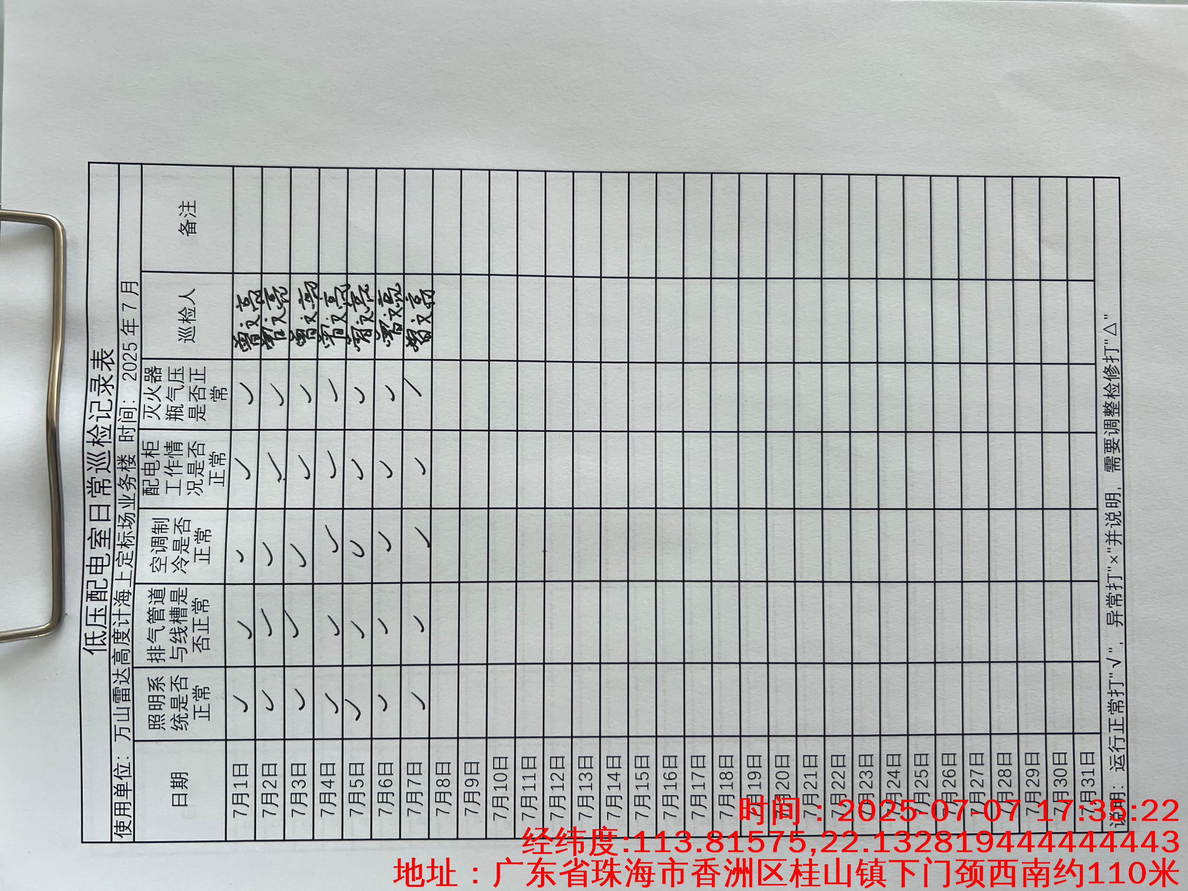 | 记录表-低压配电室日常巡检 |