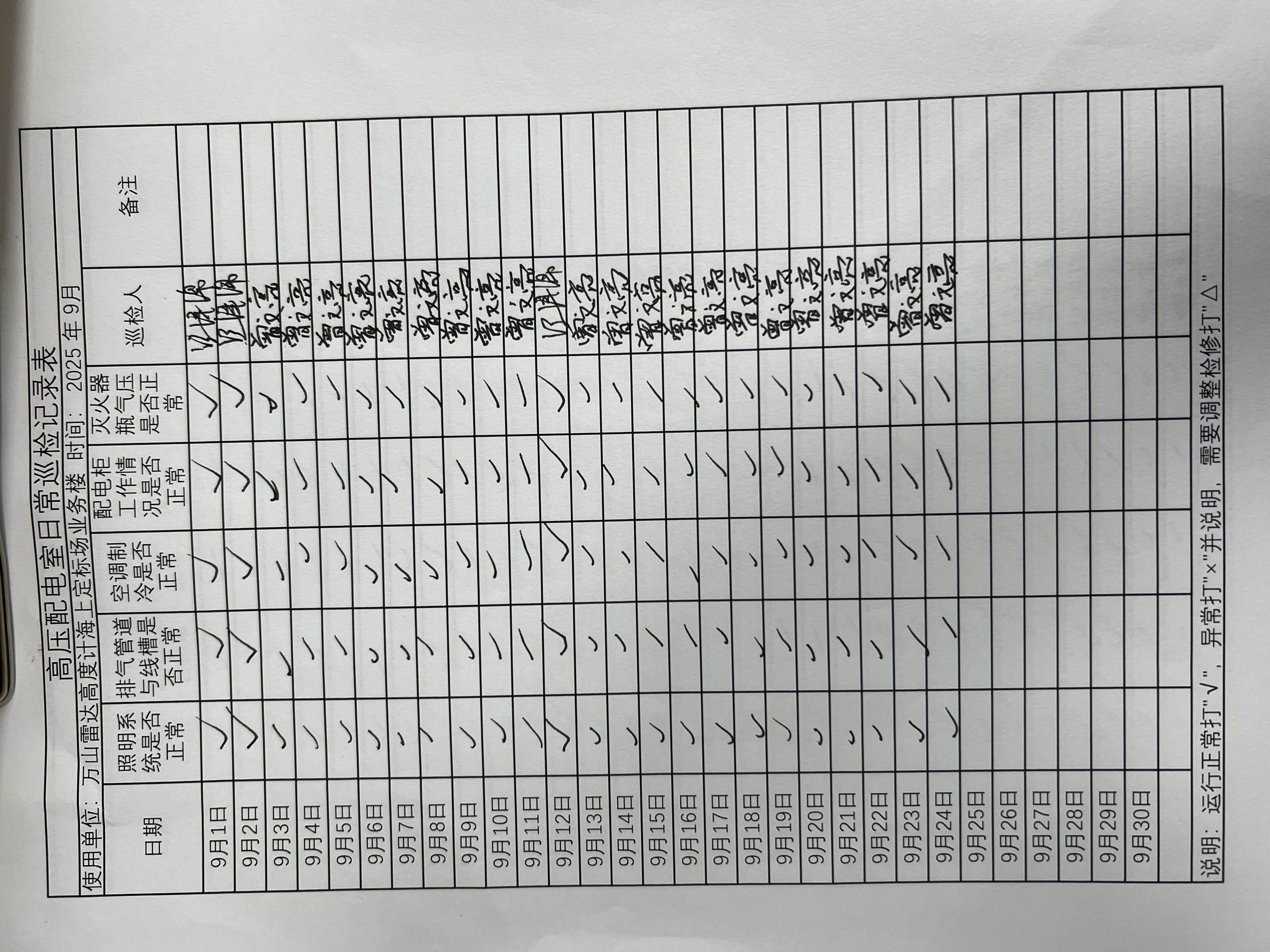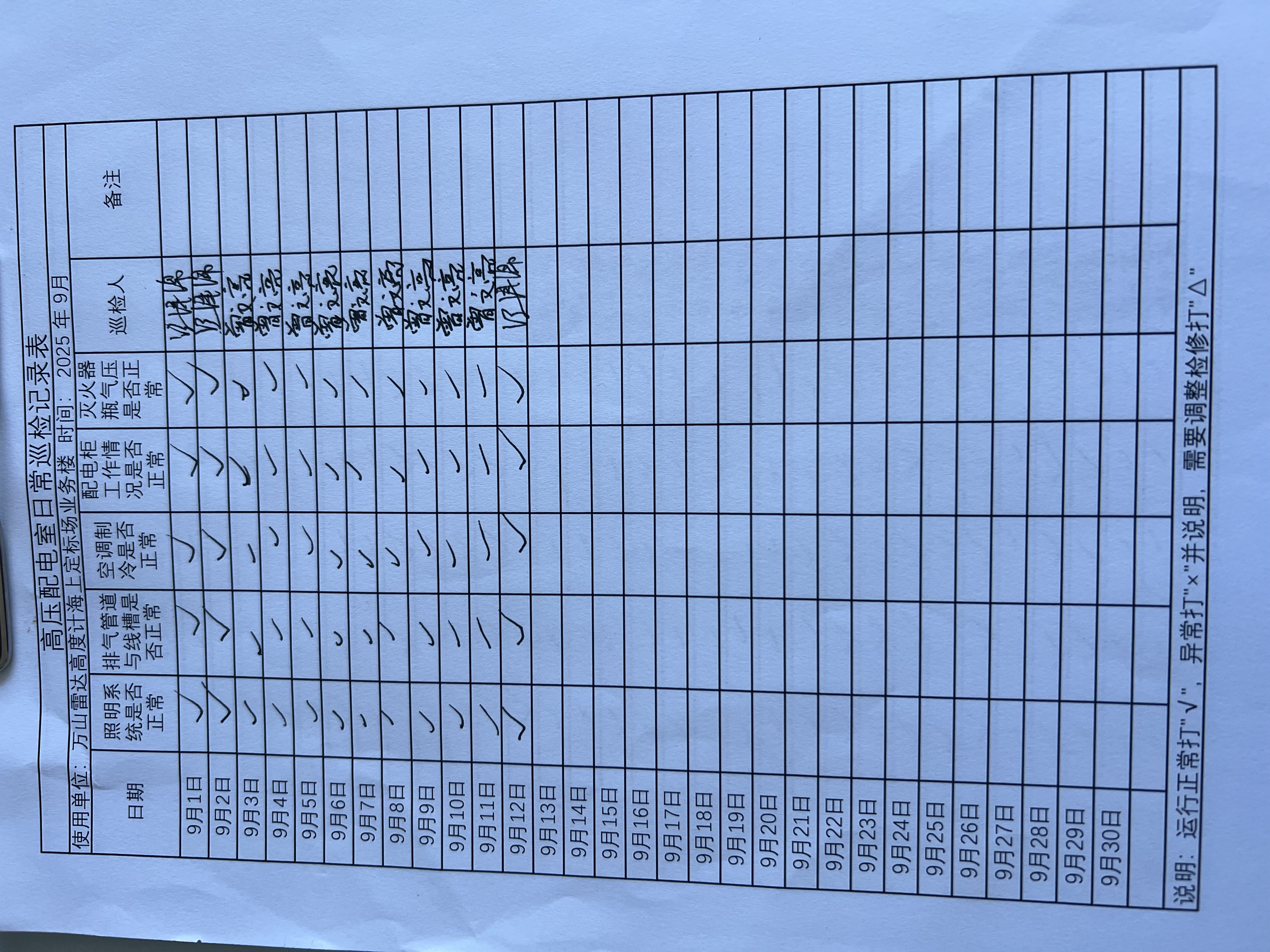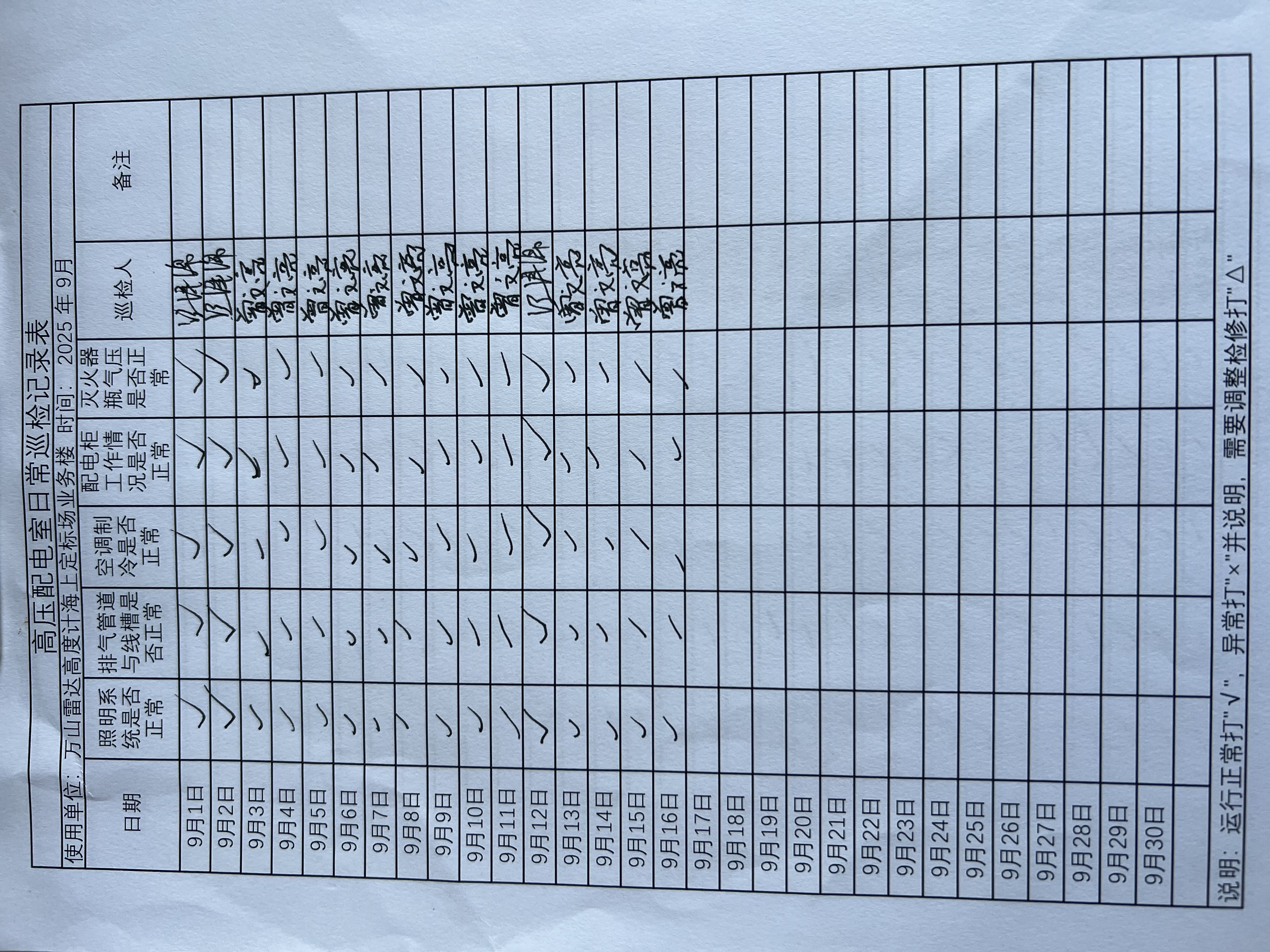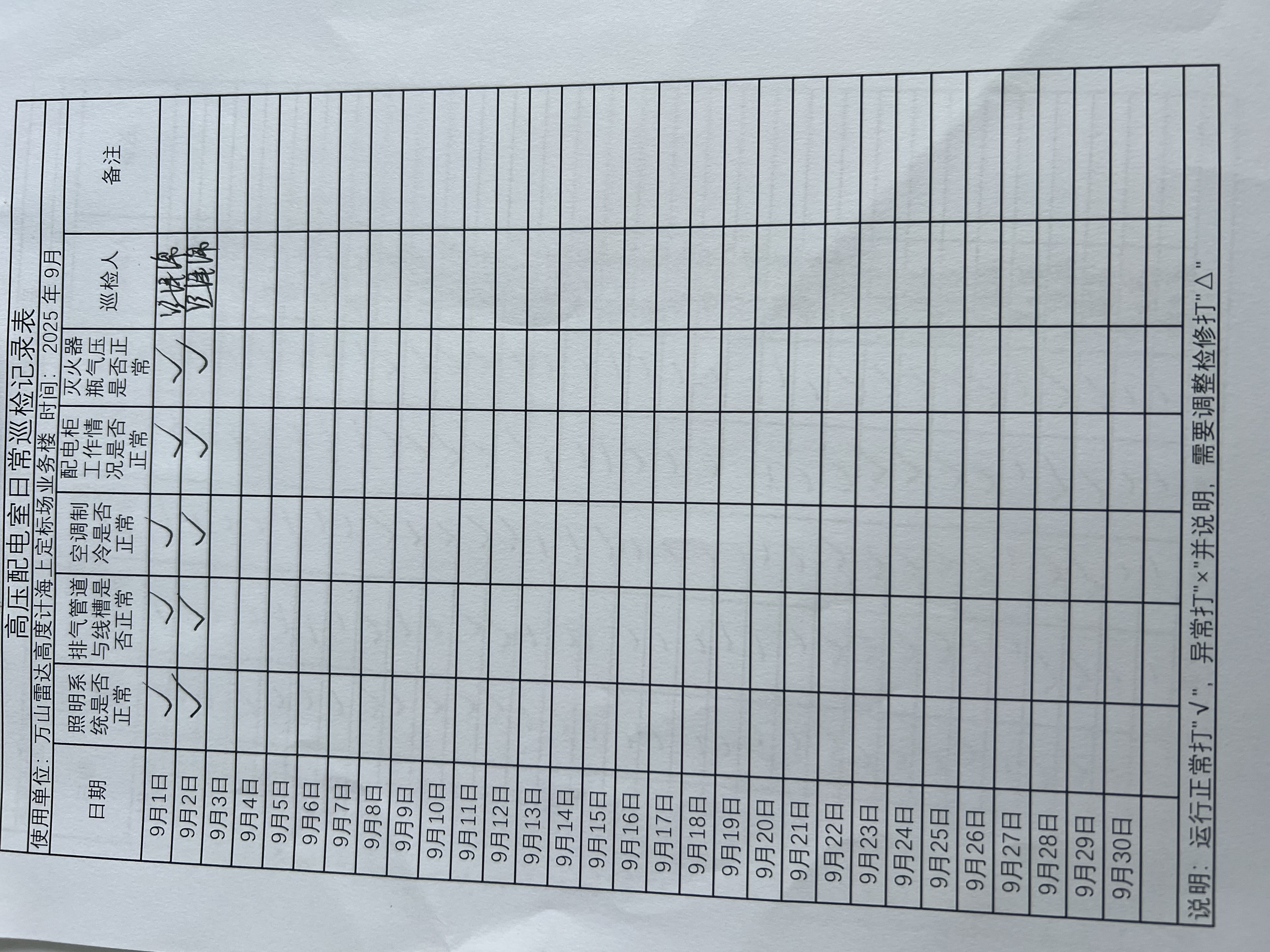| 记录表-高压配电室日常巡检 |