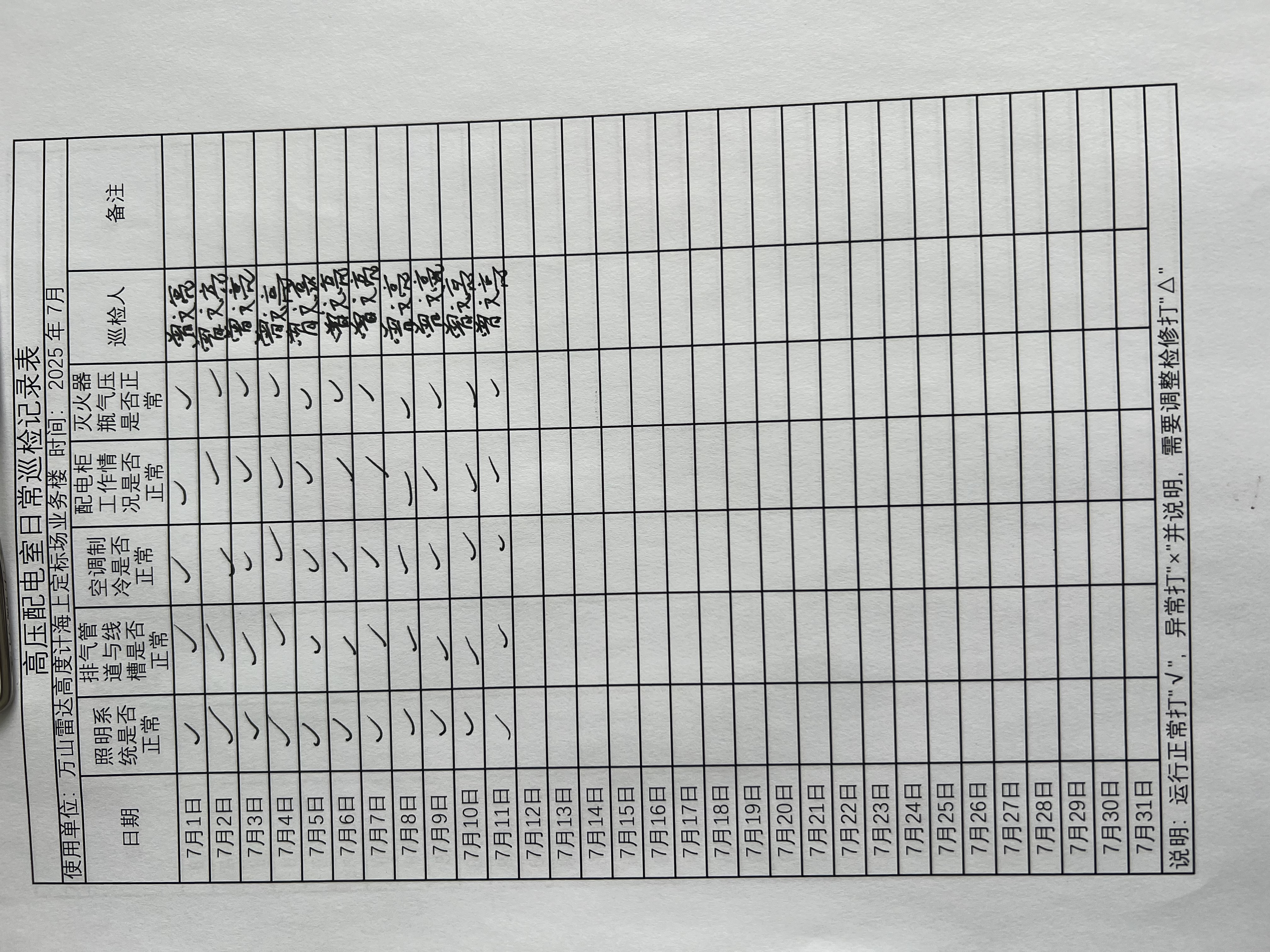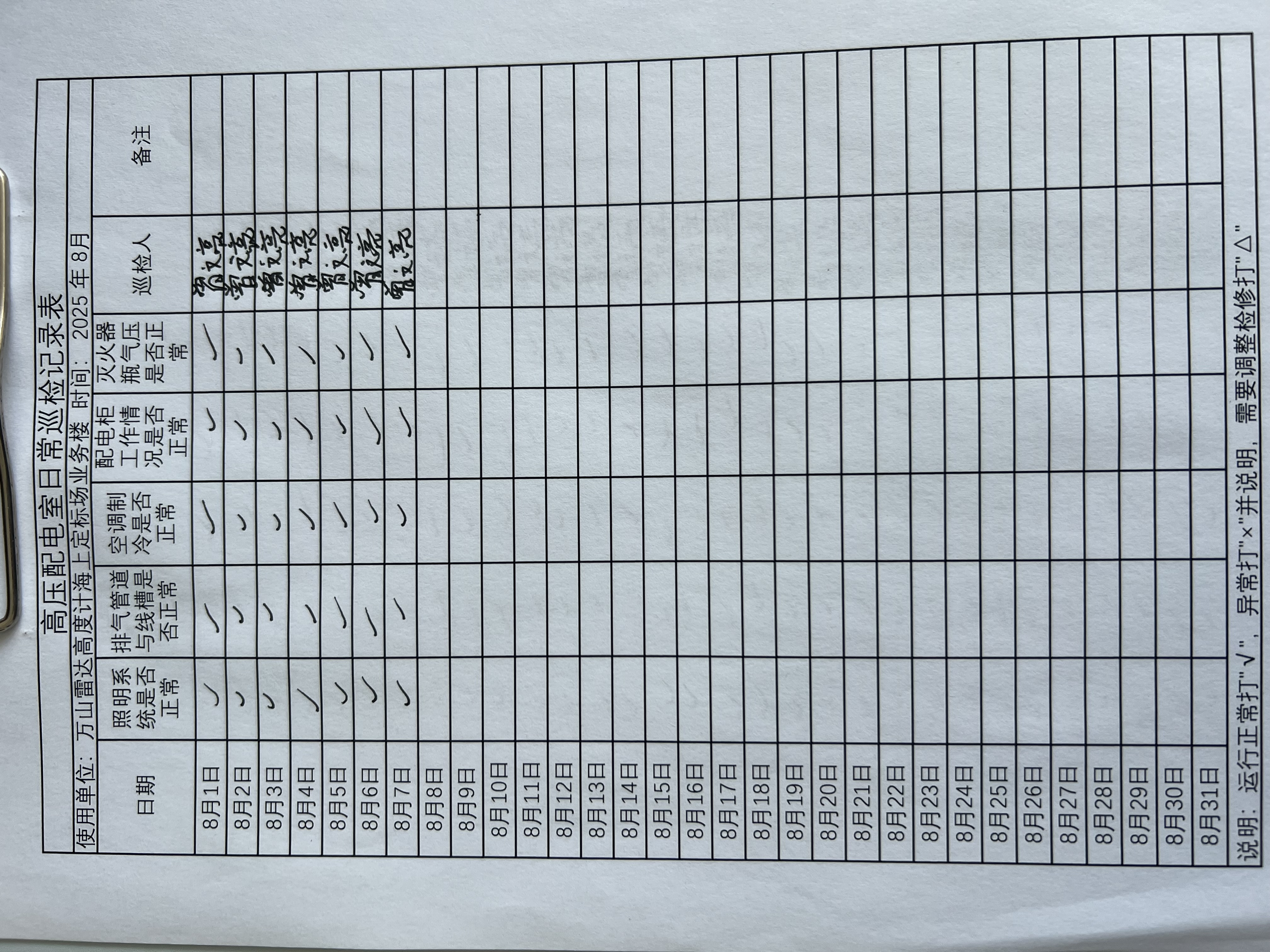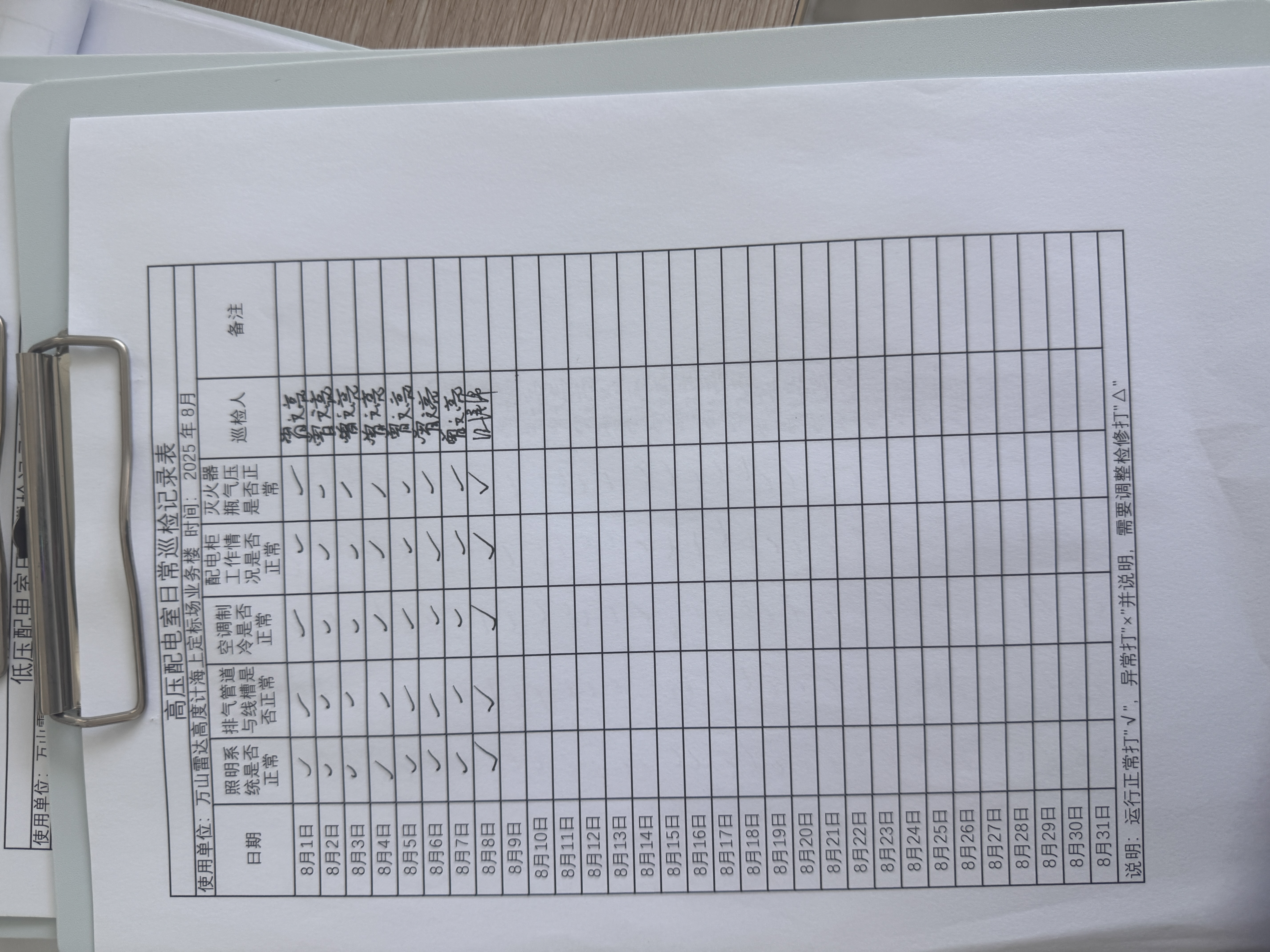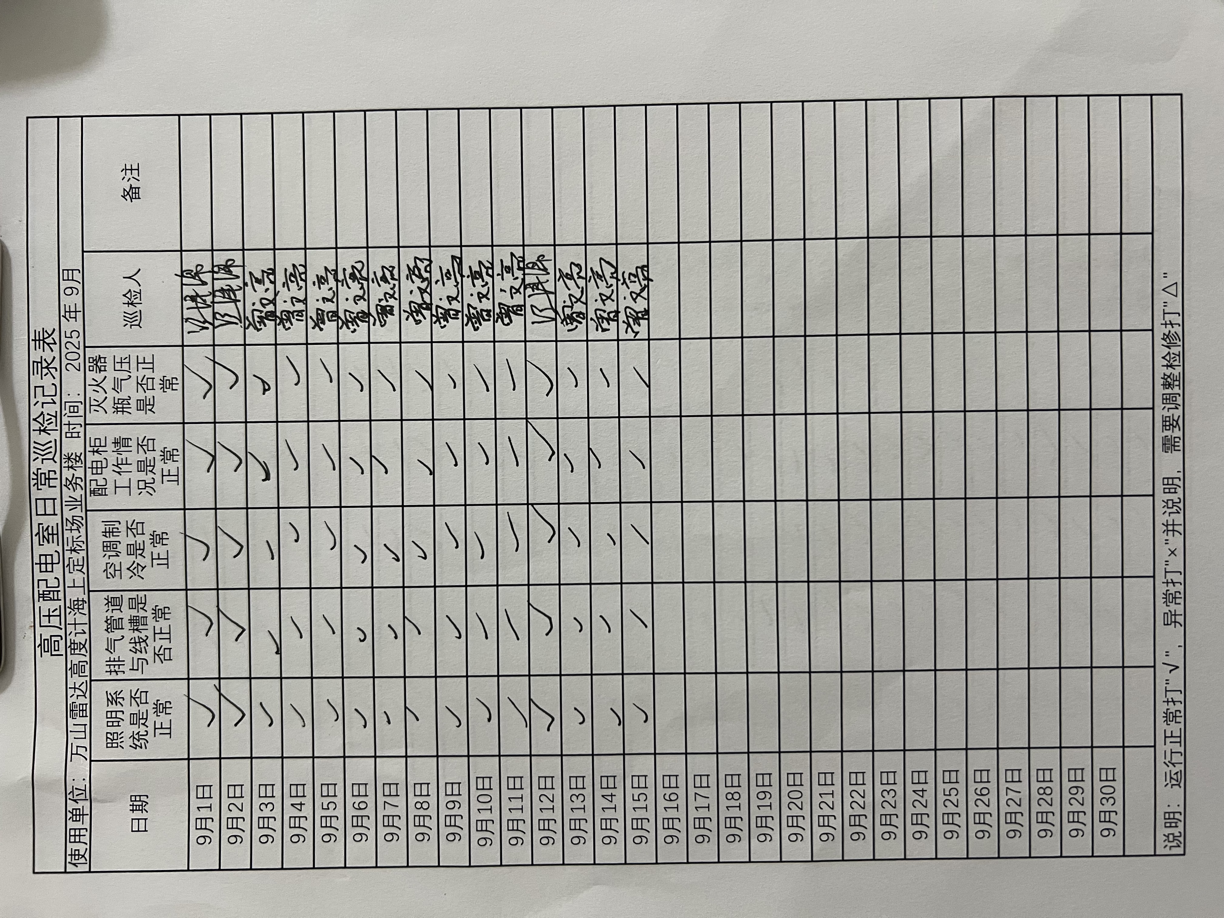 | 记录表-高压配电室日常巡检 |