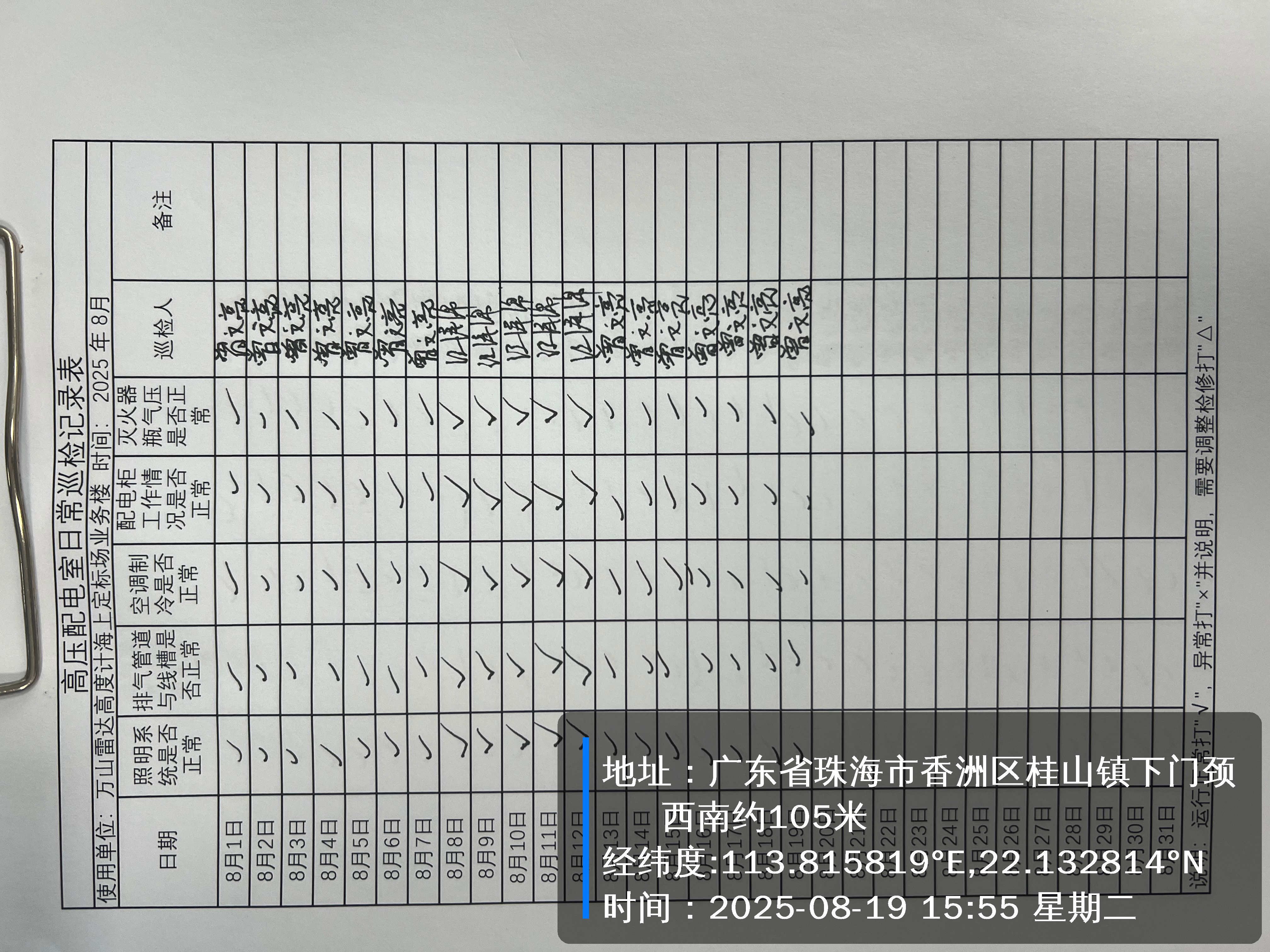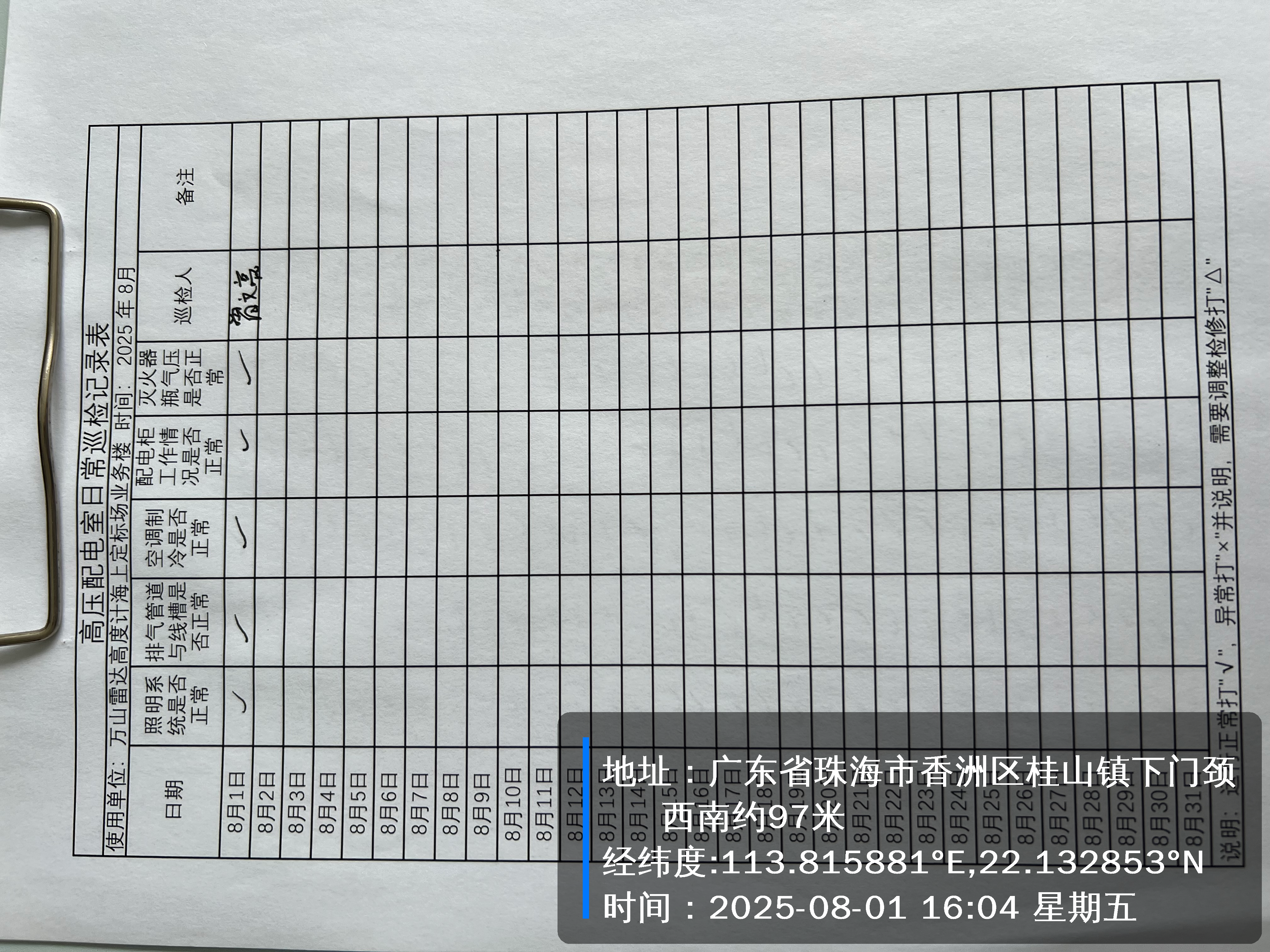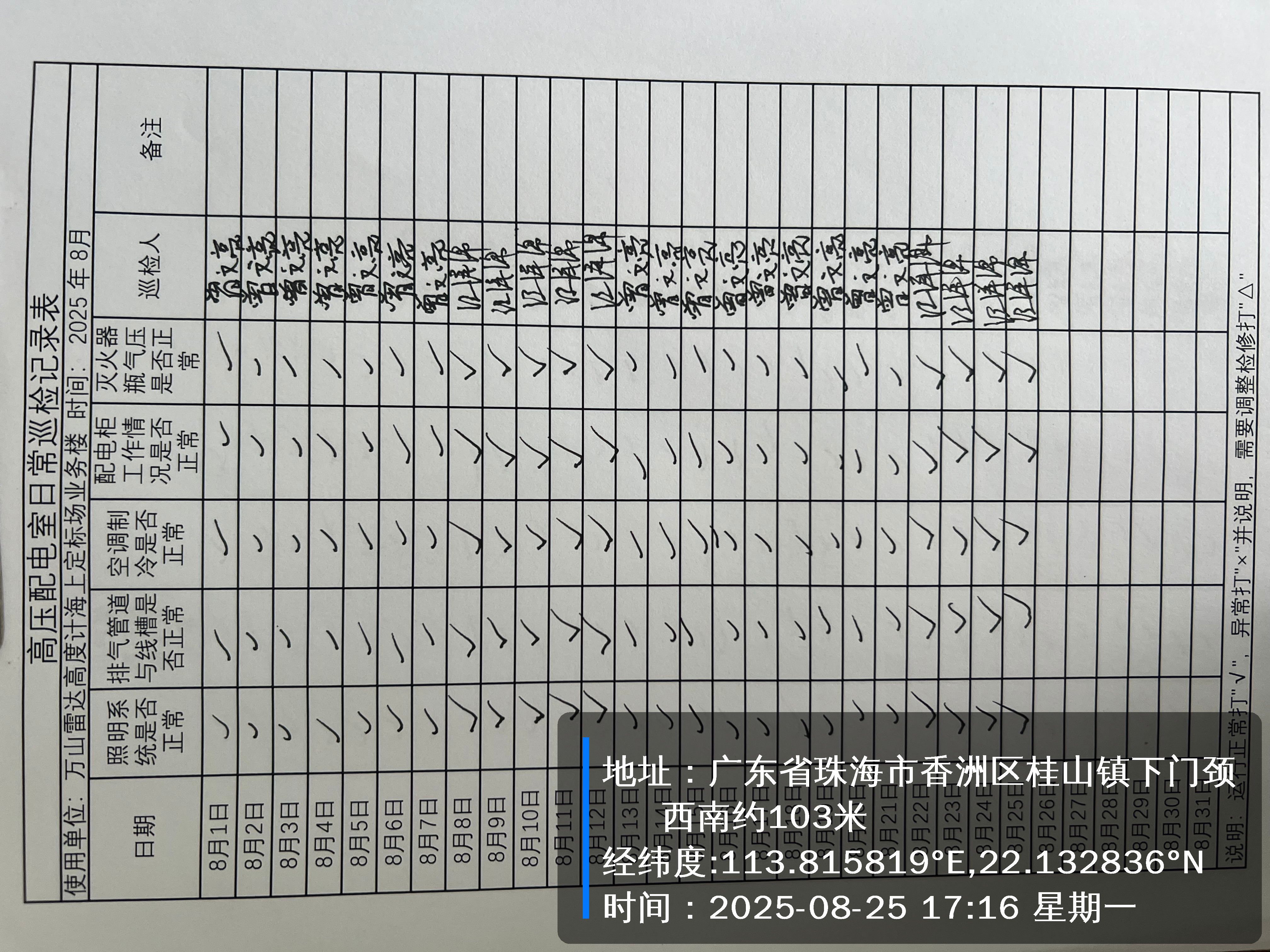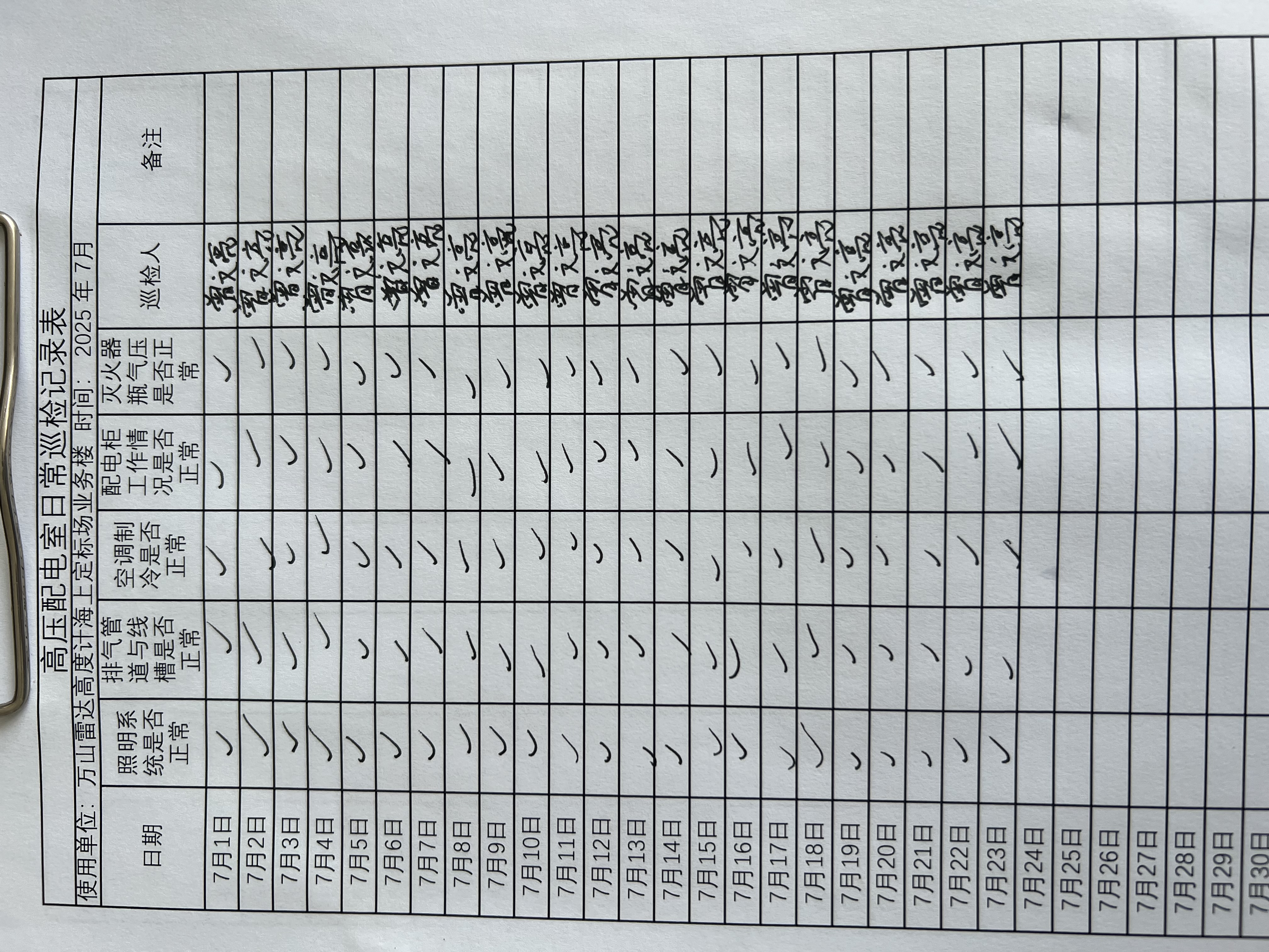 | 记录表-高压配电室日常巡检 |
