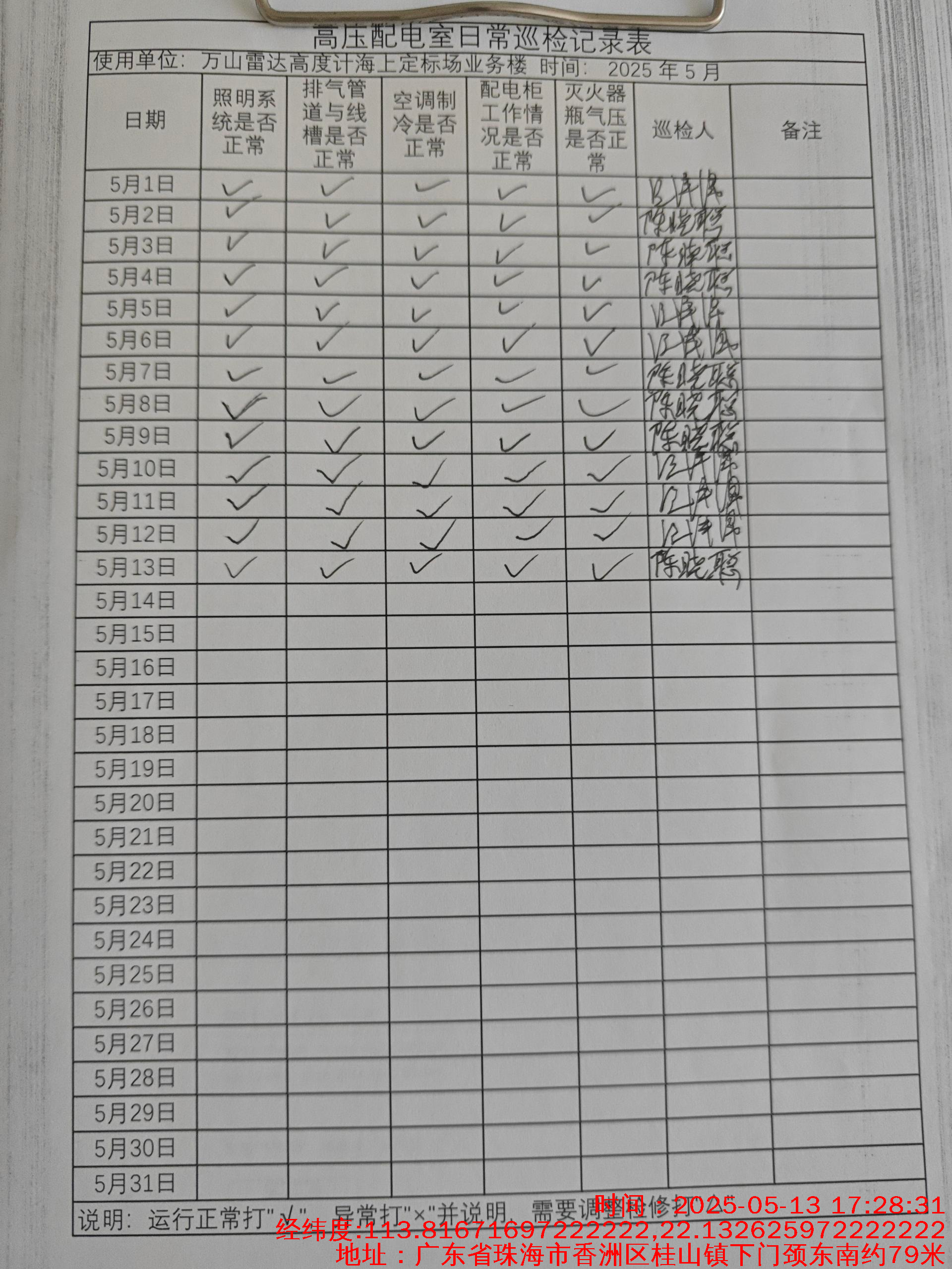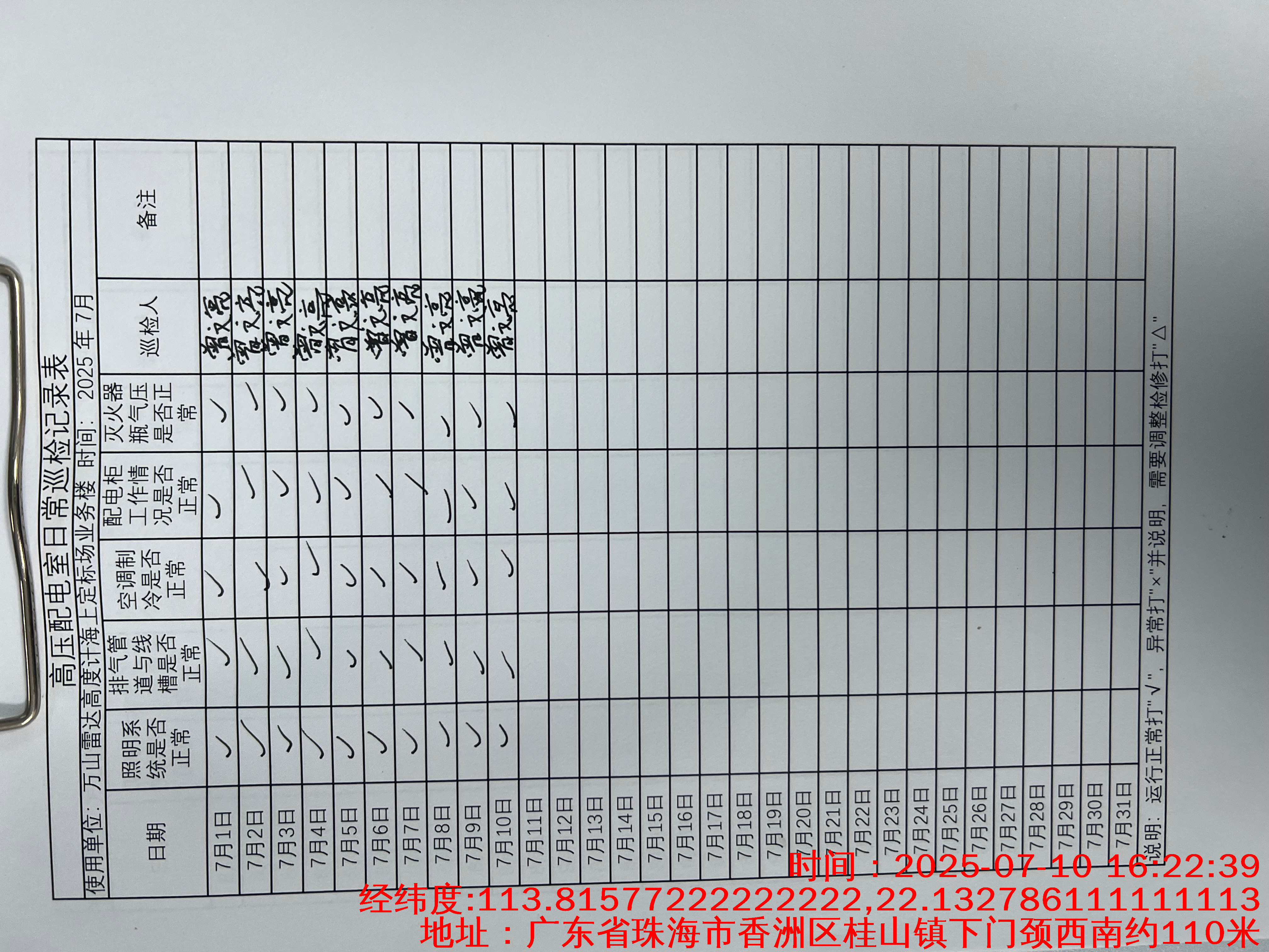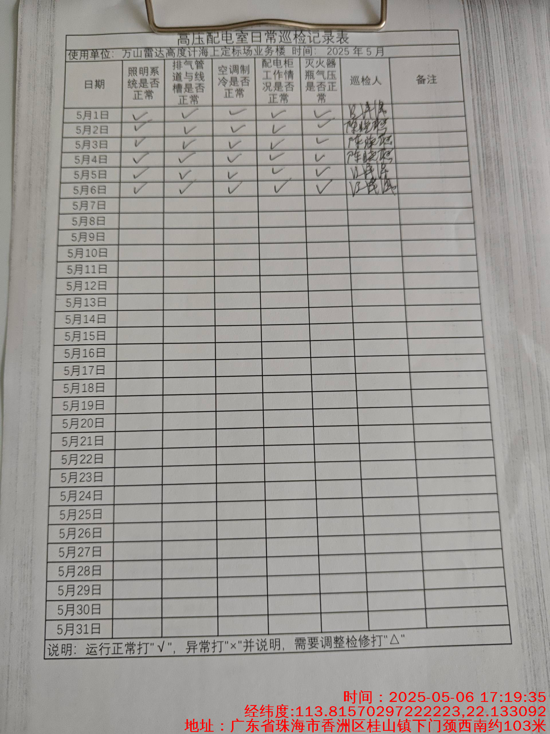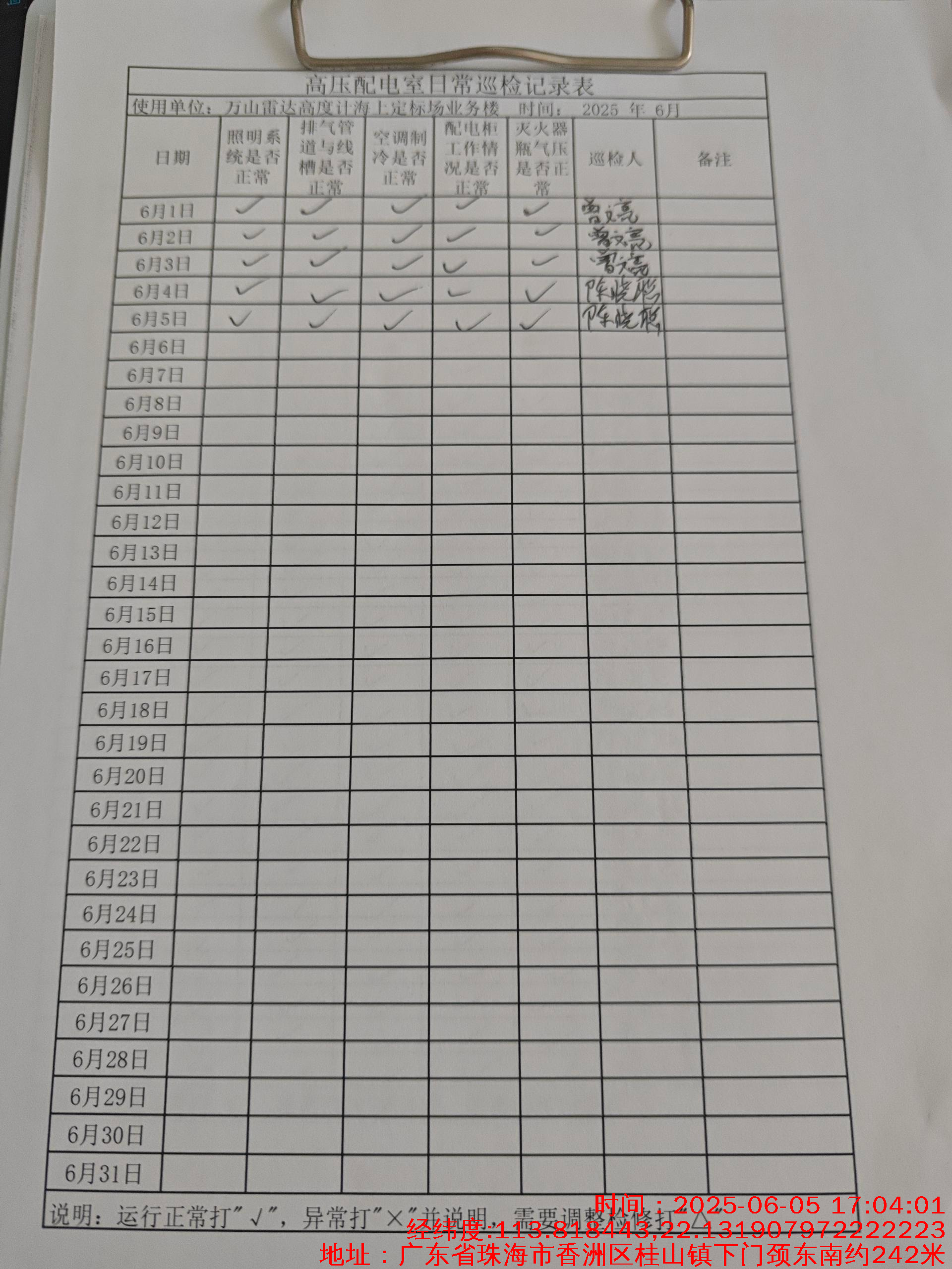 | 记录表-高压配电室日常巡检 |