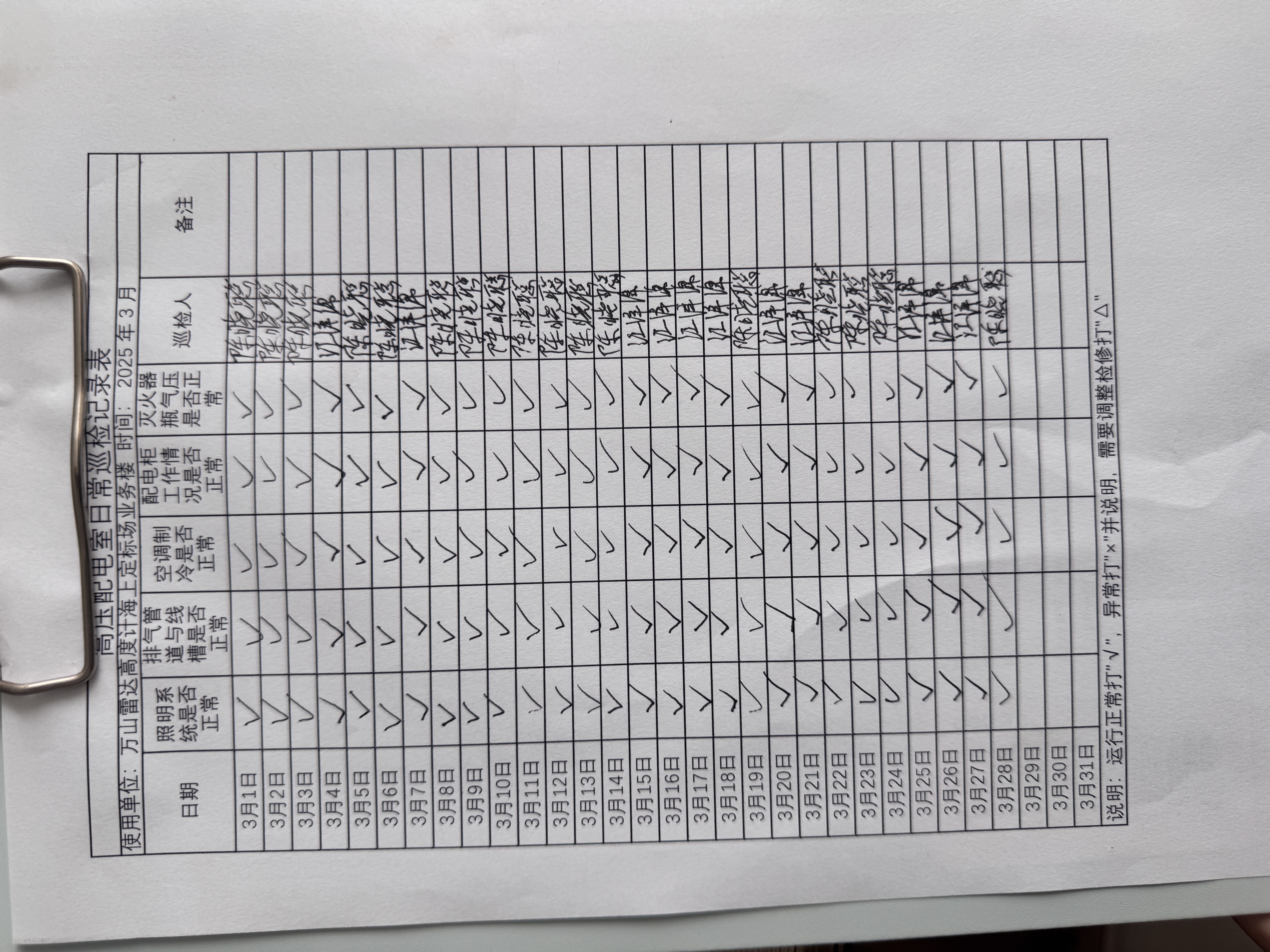 | 记录表检查-高压配电室 |