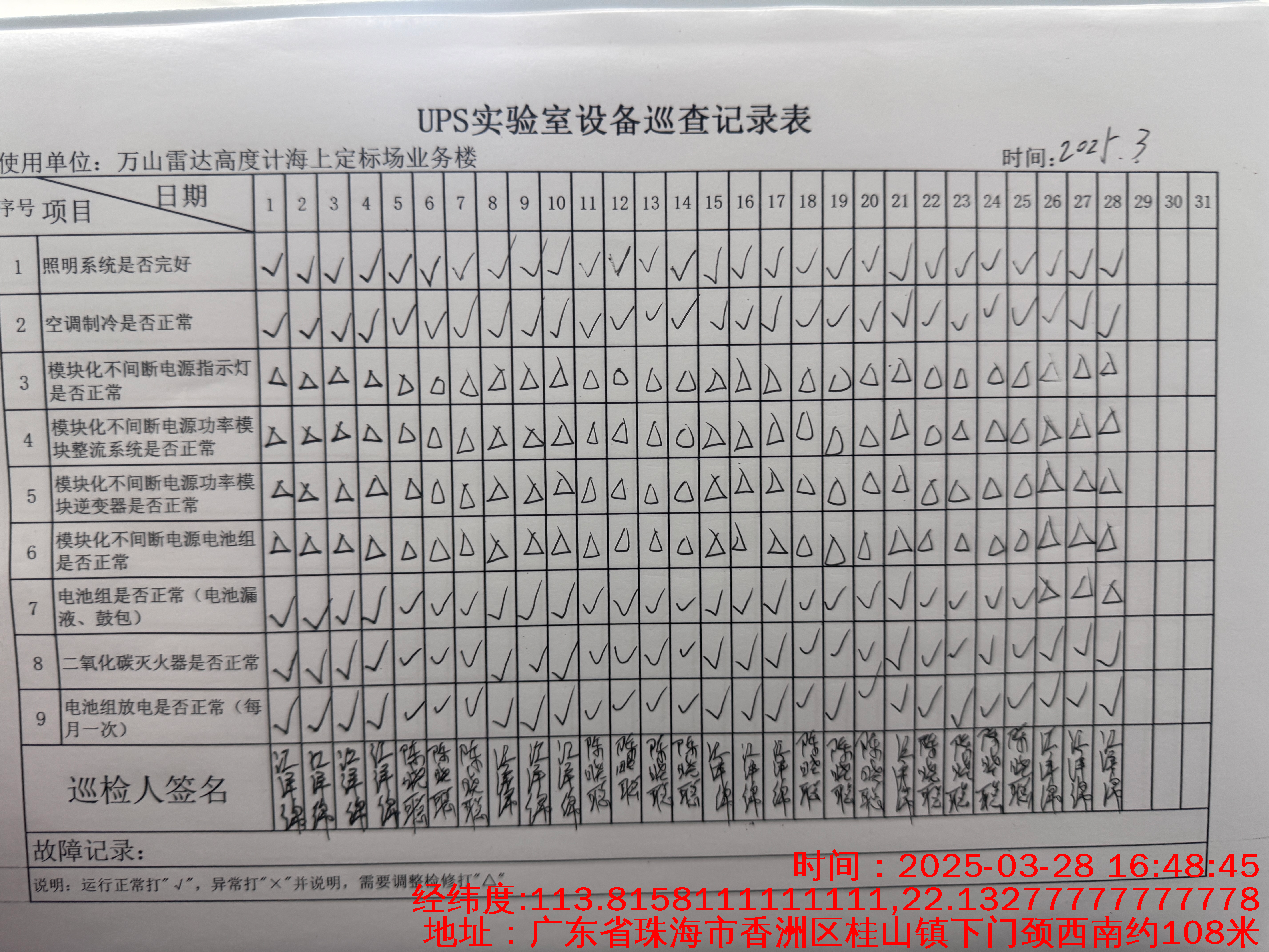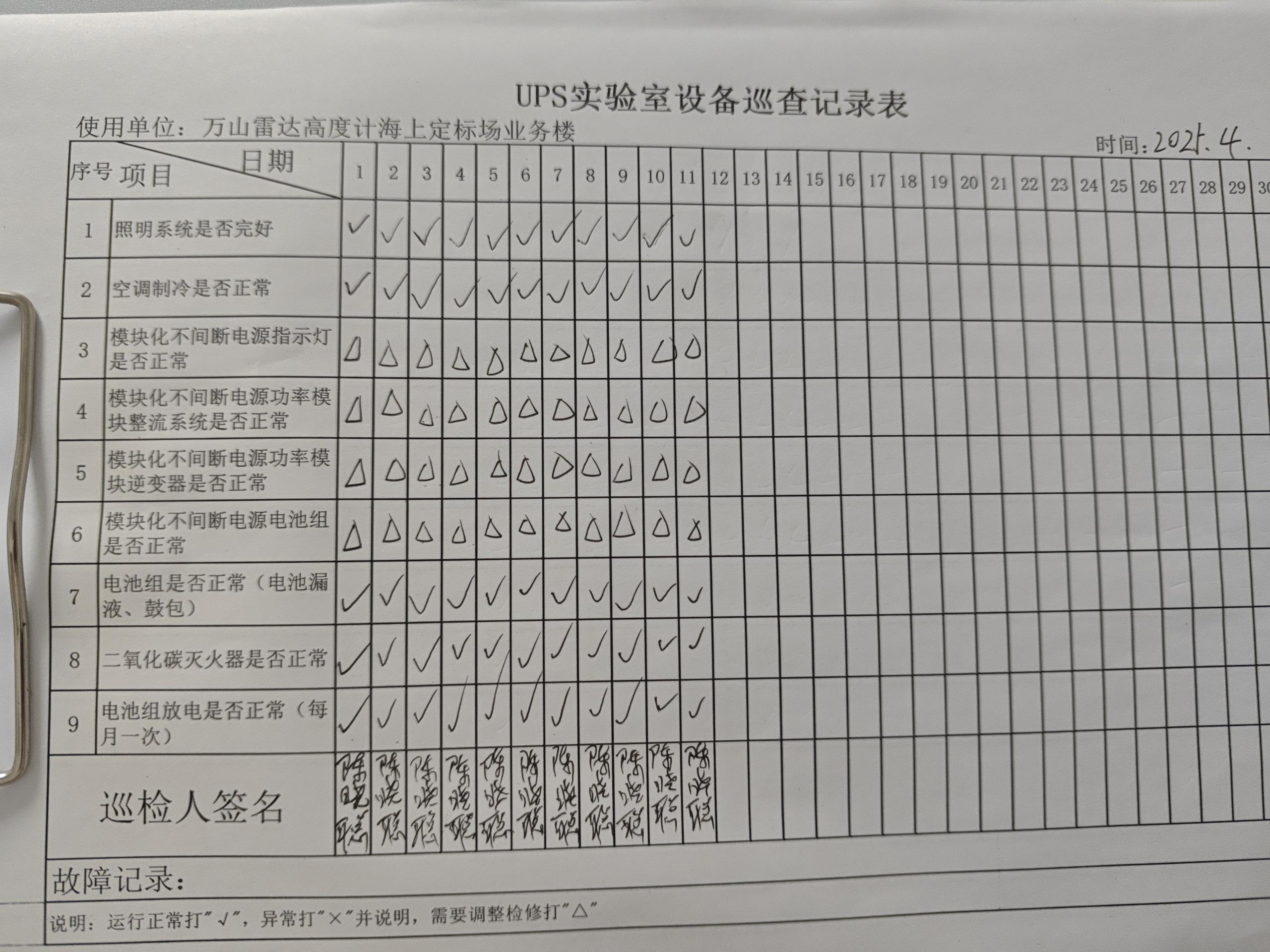 | 记录表检查-UPS 实验室设备 |