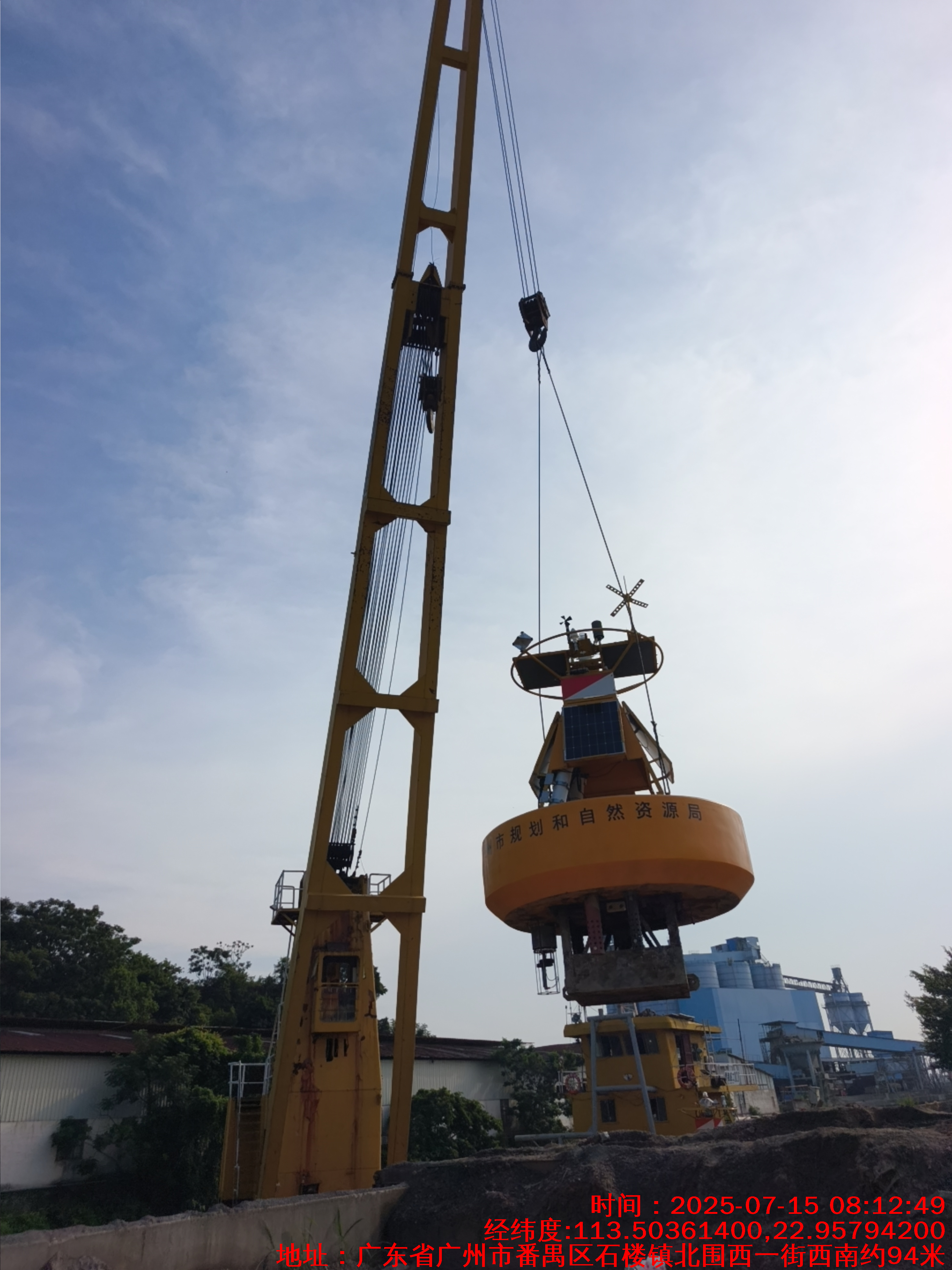 | 把旧浮标起吊装船 |