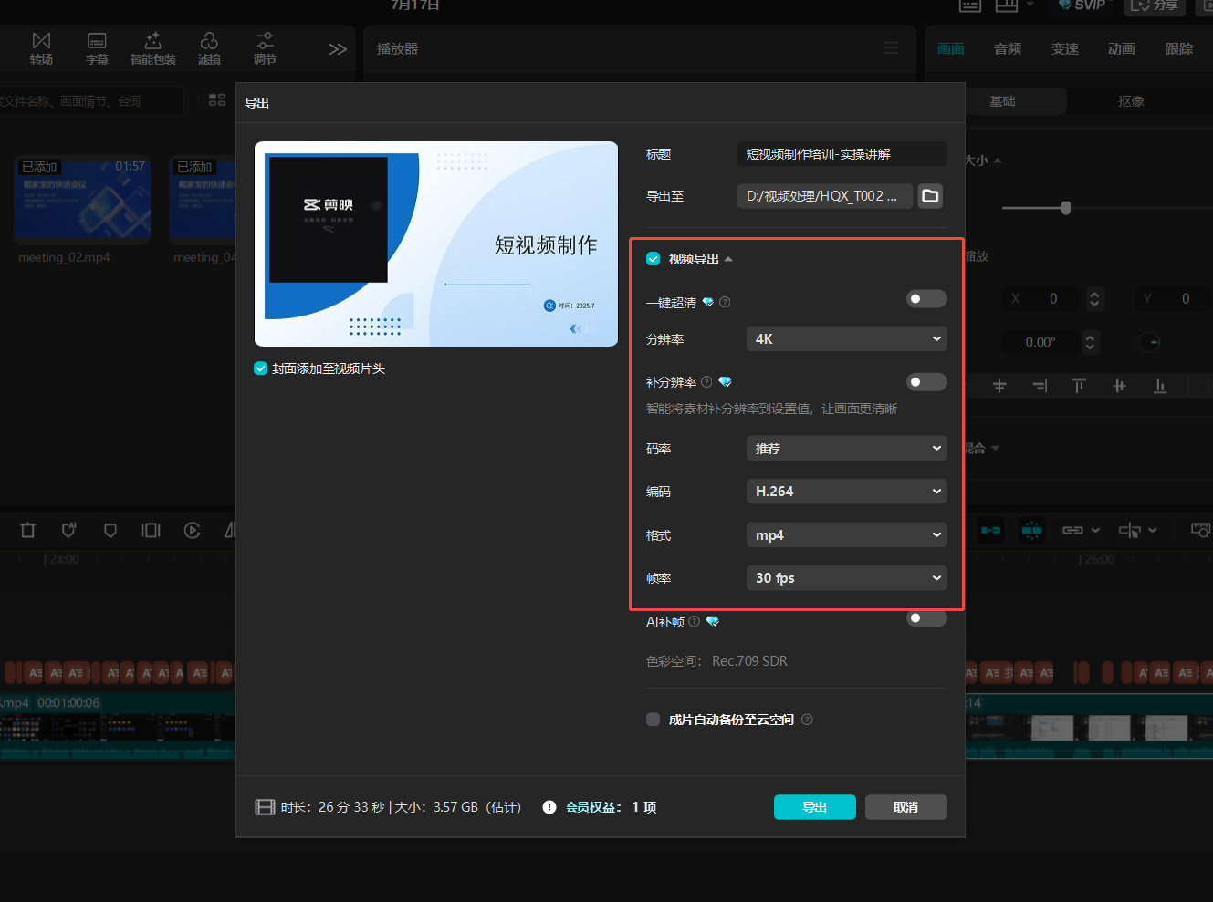 3、素材及视频保存。了解不同的存储方式,便于保护原始素材材料;学时1小时。