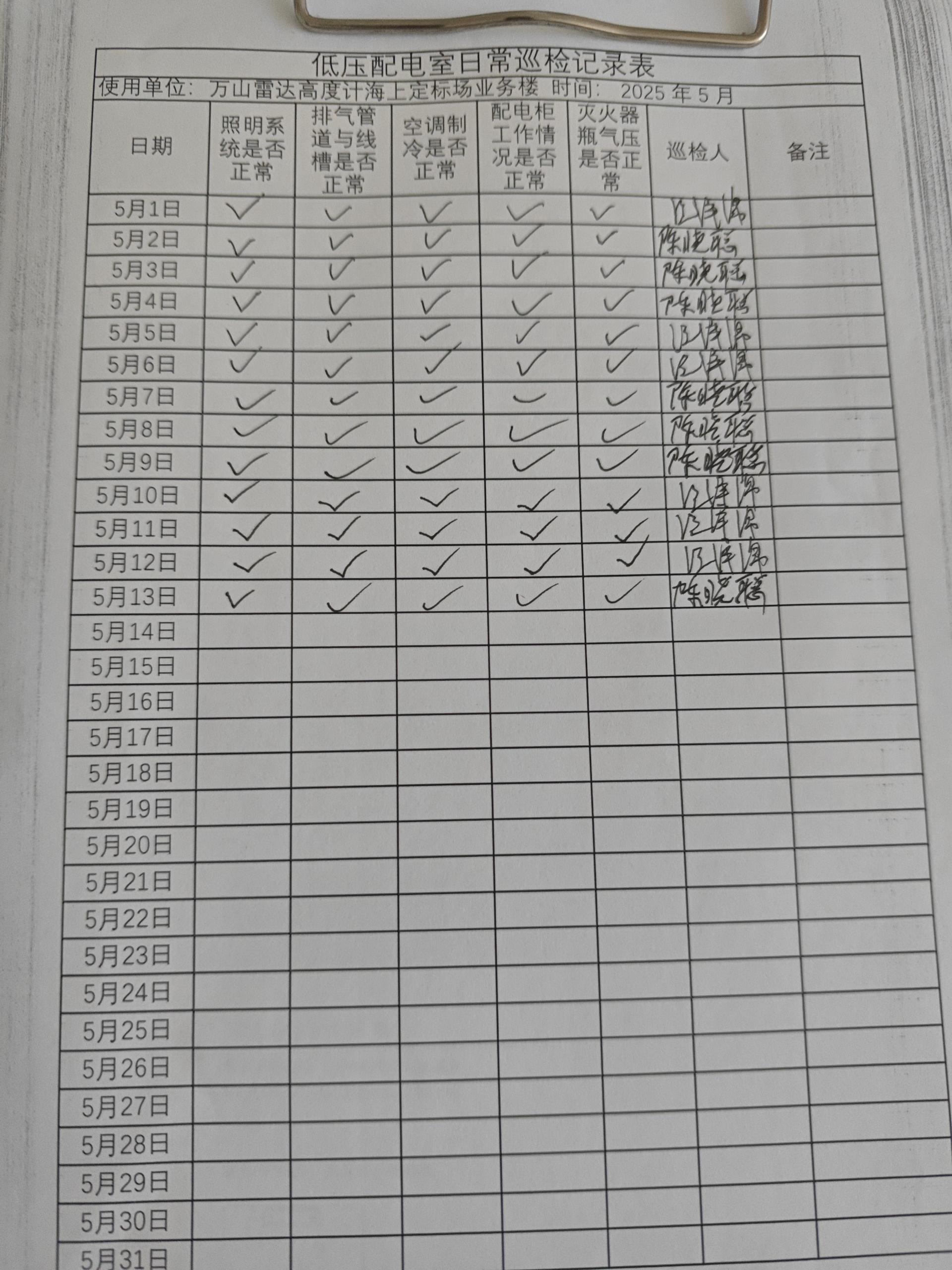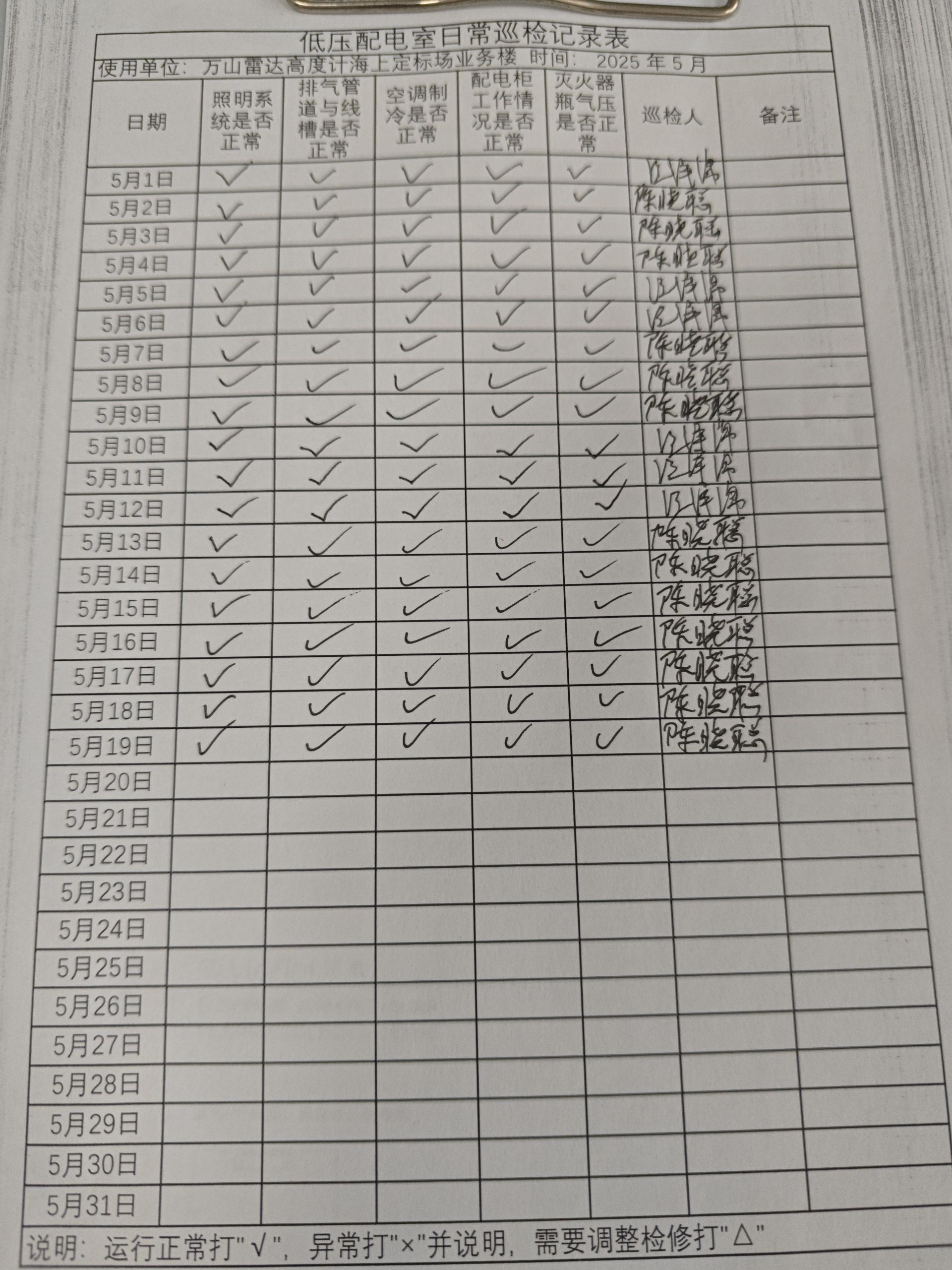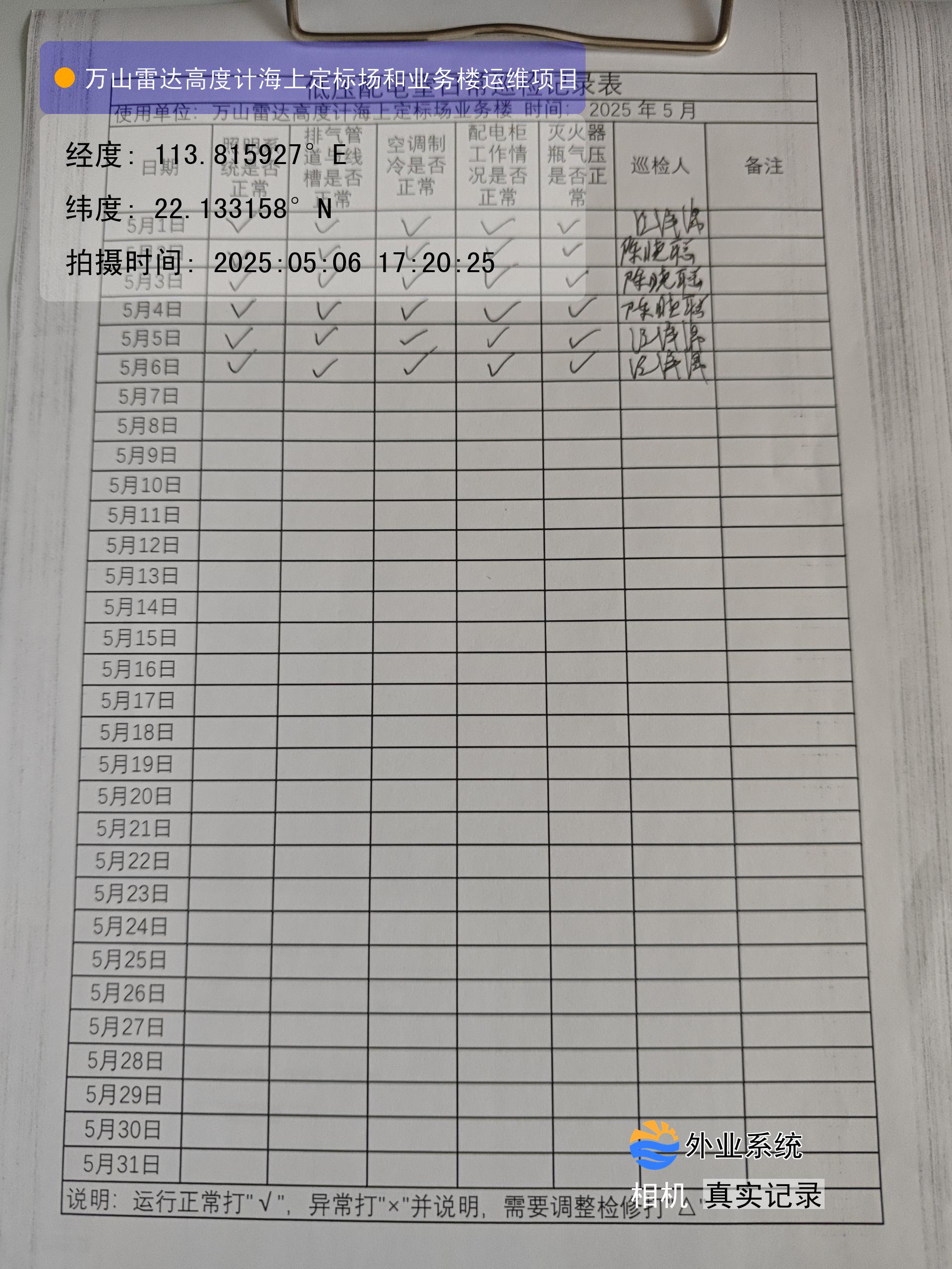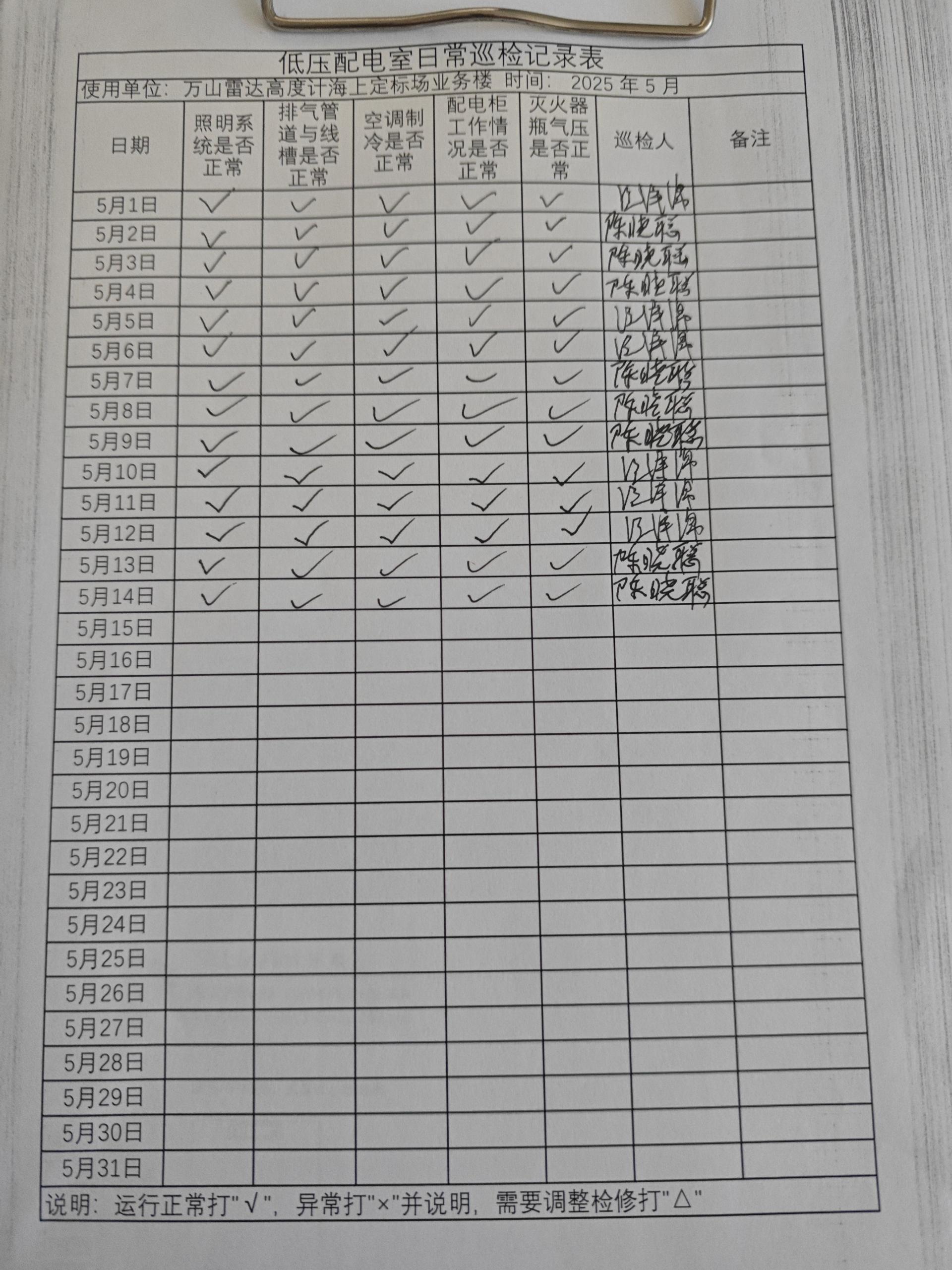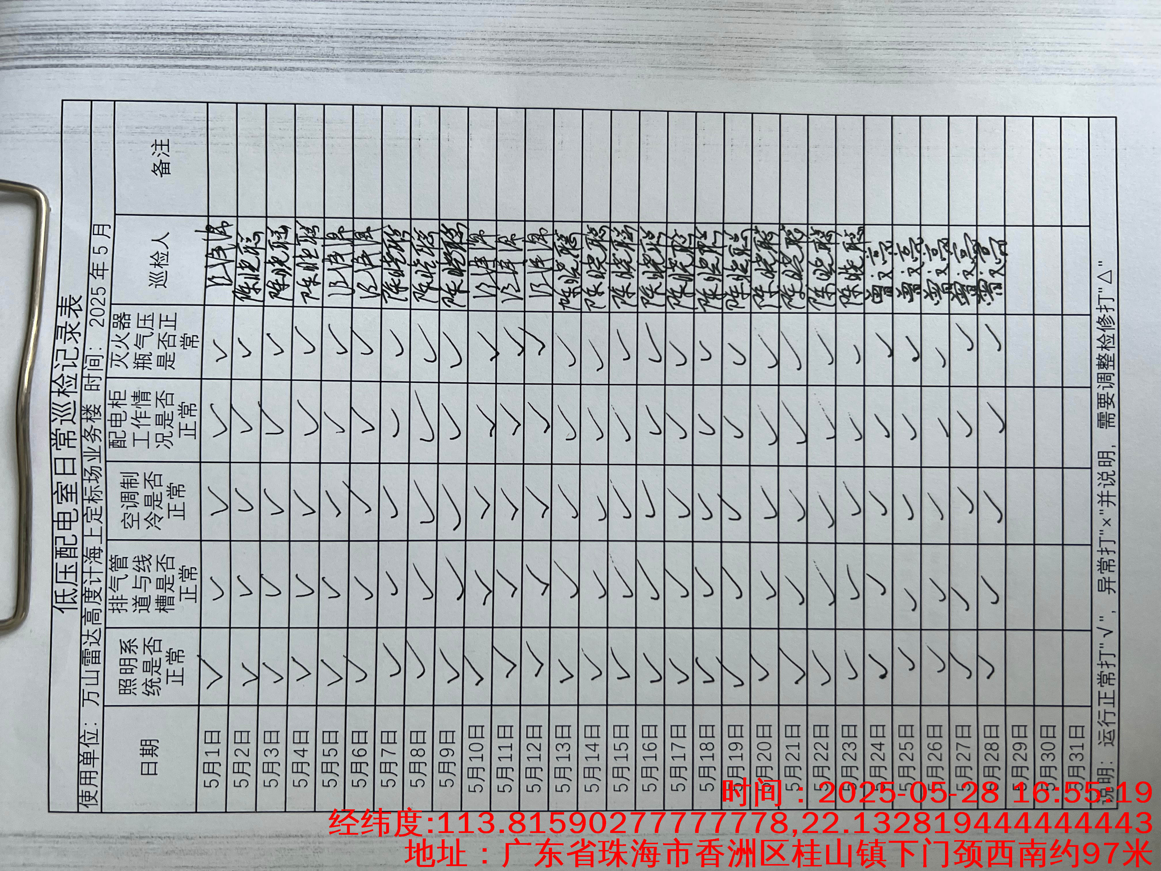 | 记录表-低压配电室日常巡检 | 原图 | 水印1 | 水印2 | 陈晓聪 | 工作照 | 2025-04-01 17:00:00 |