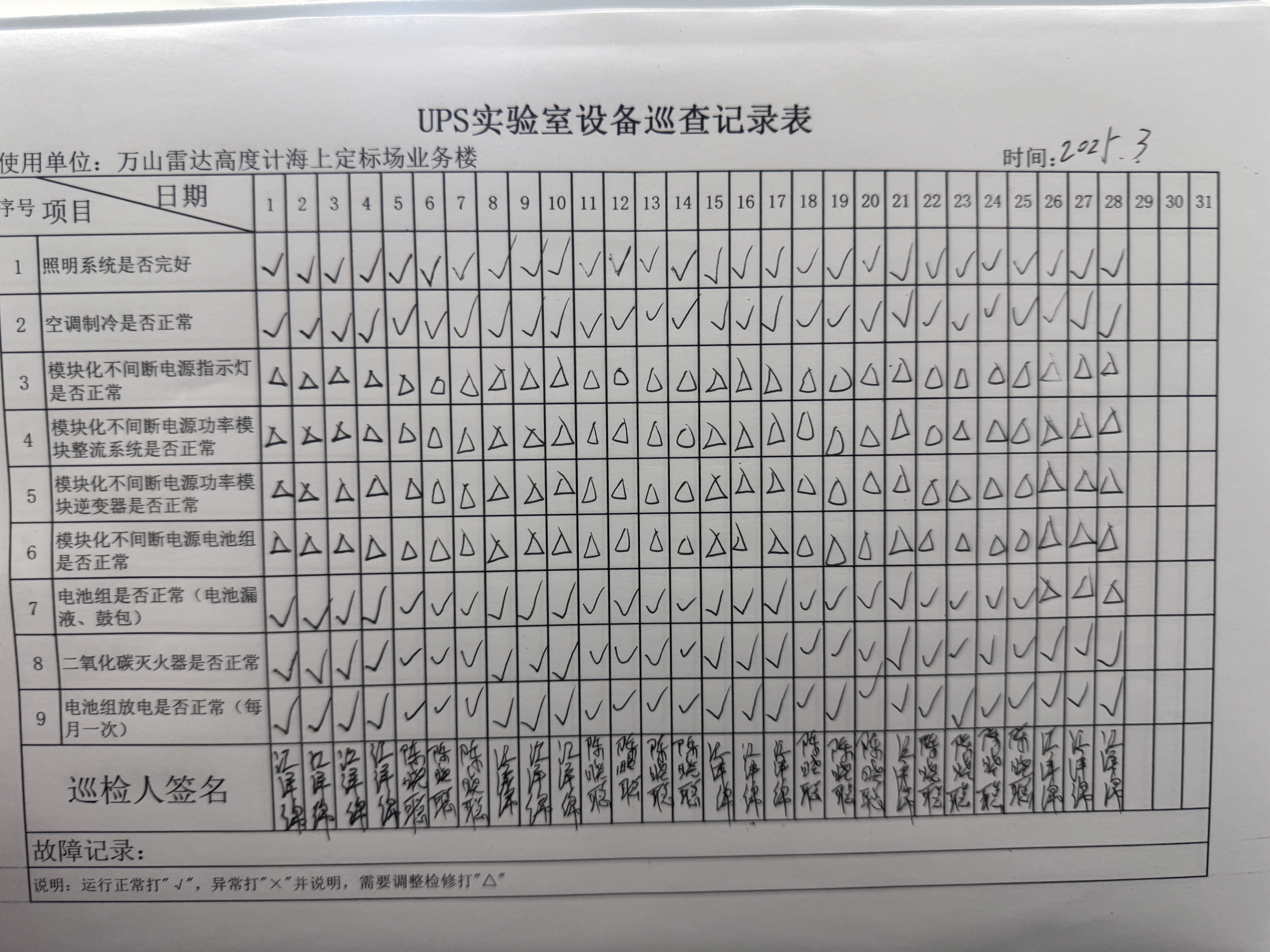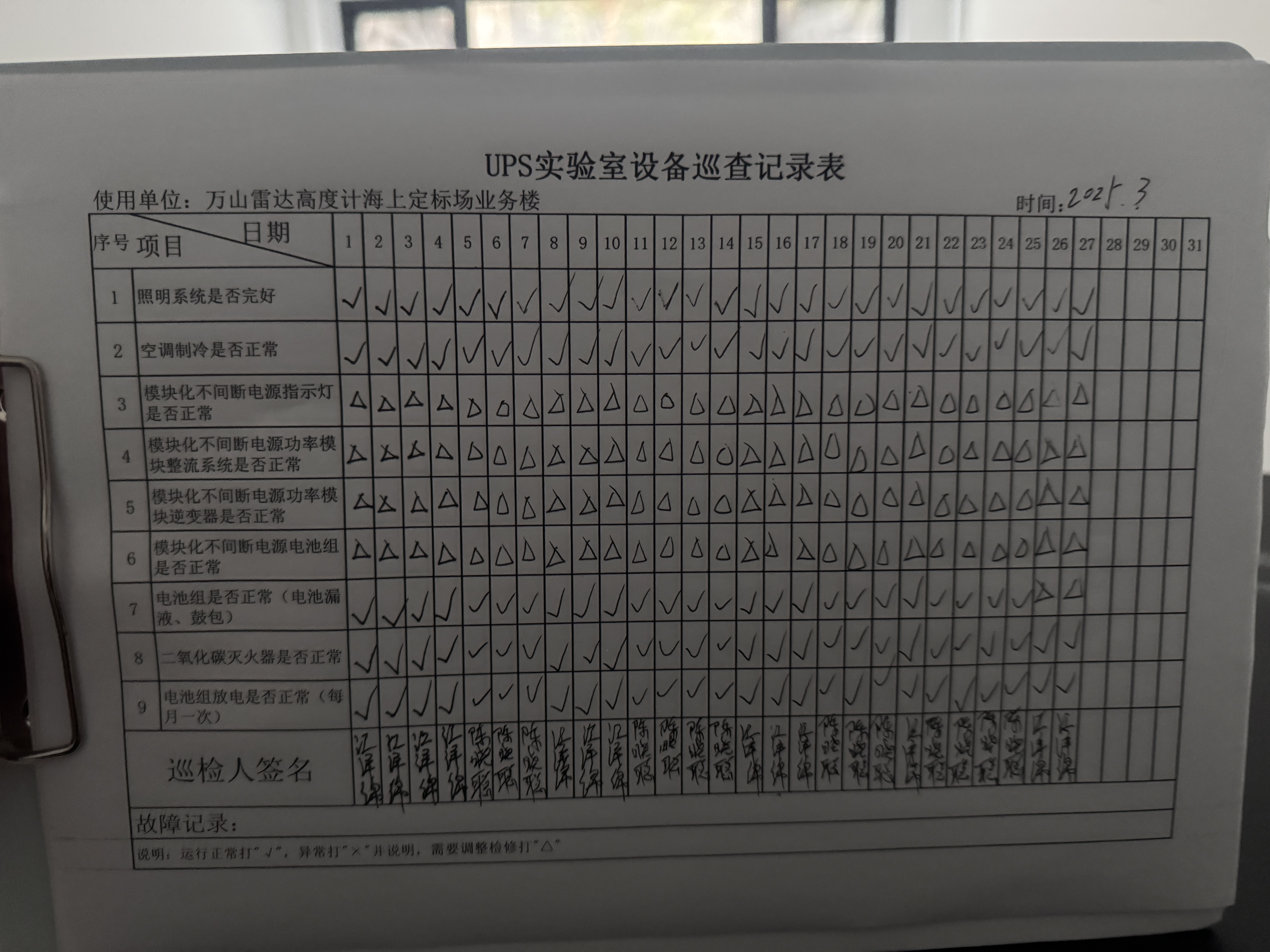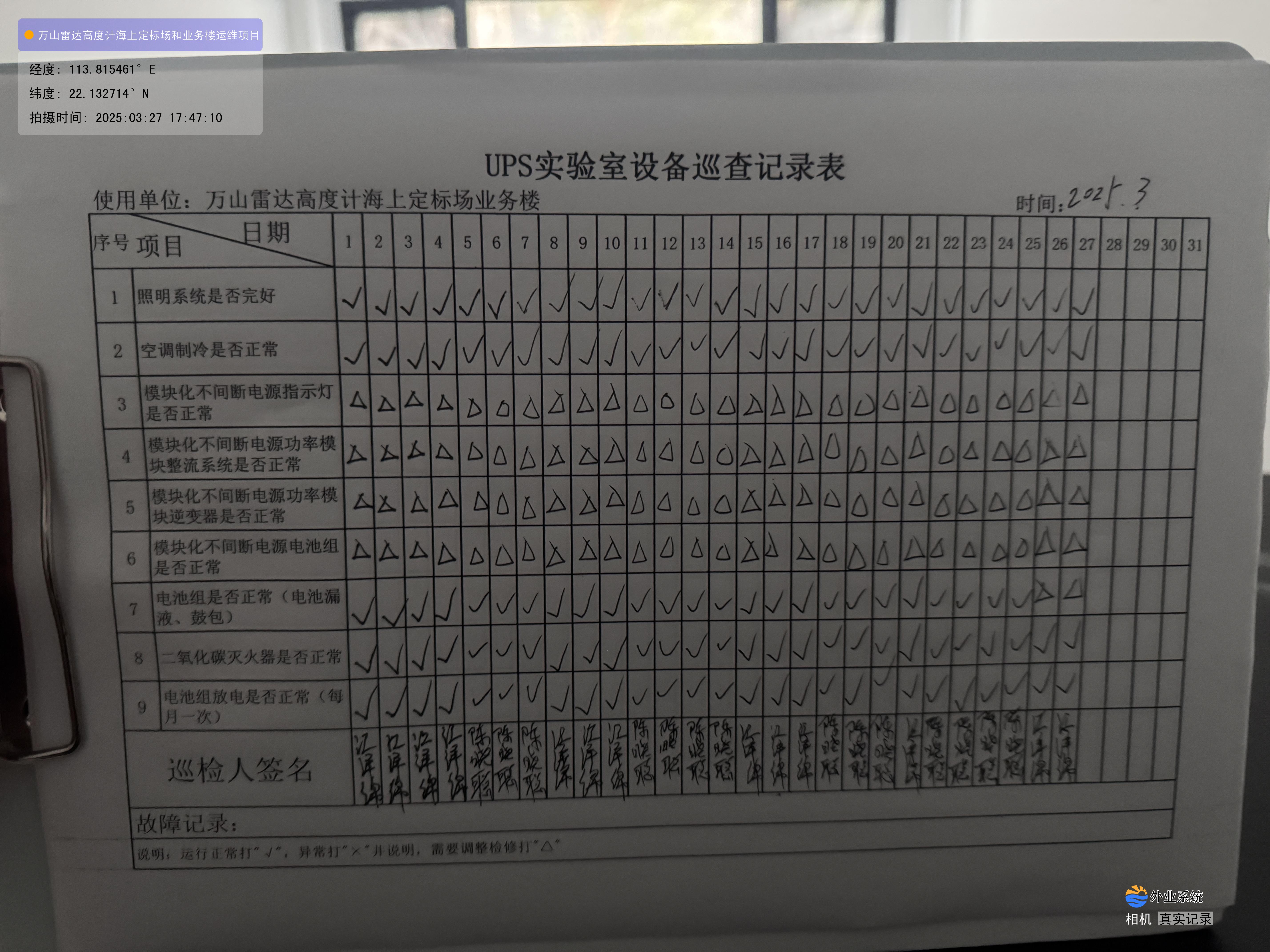 | 记录表-UPS实验室设备巡查 | 原图 | 水印1 | 水印2 | 江泽绵 | 工作照 | 2025-03-27 17:19:00 |