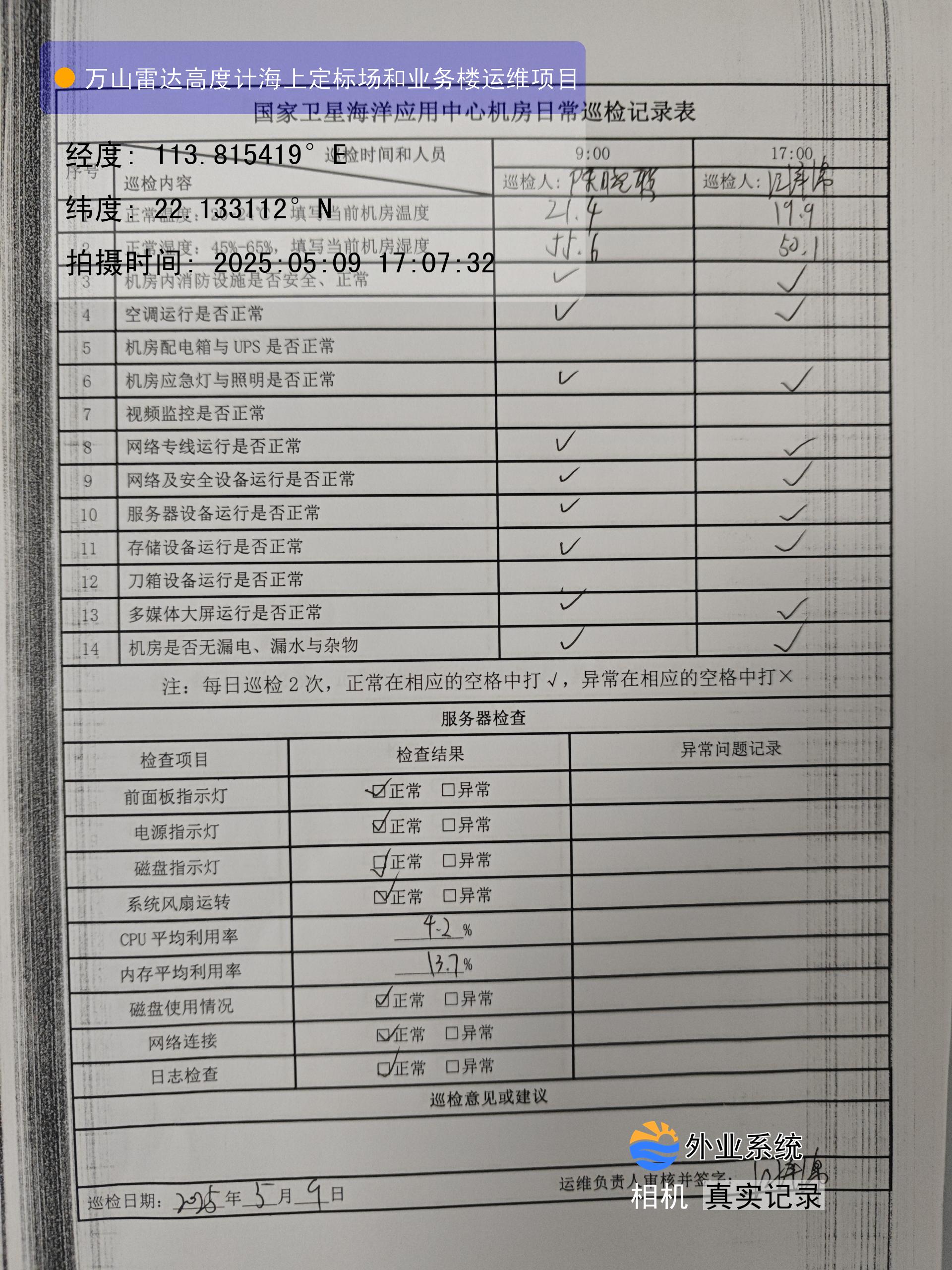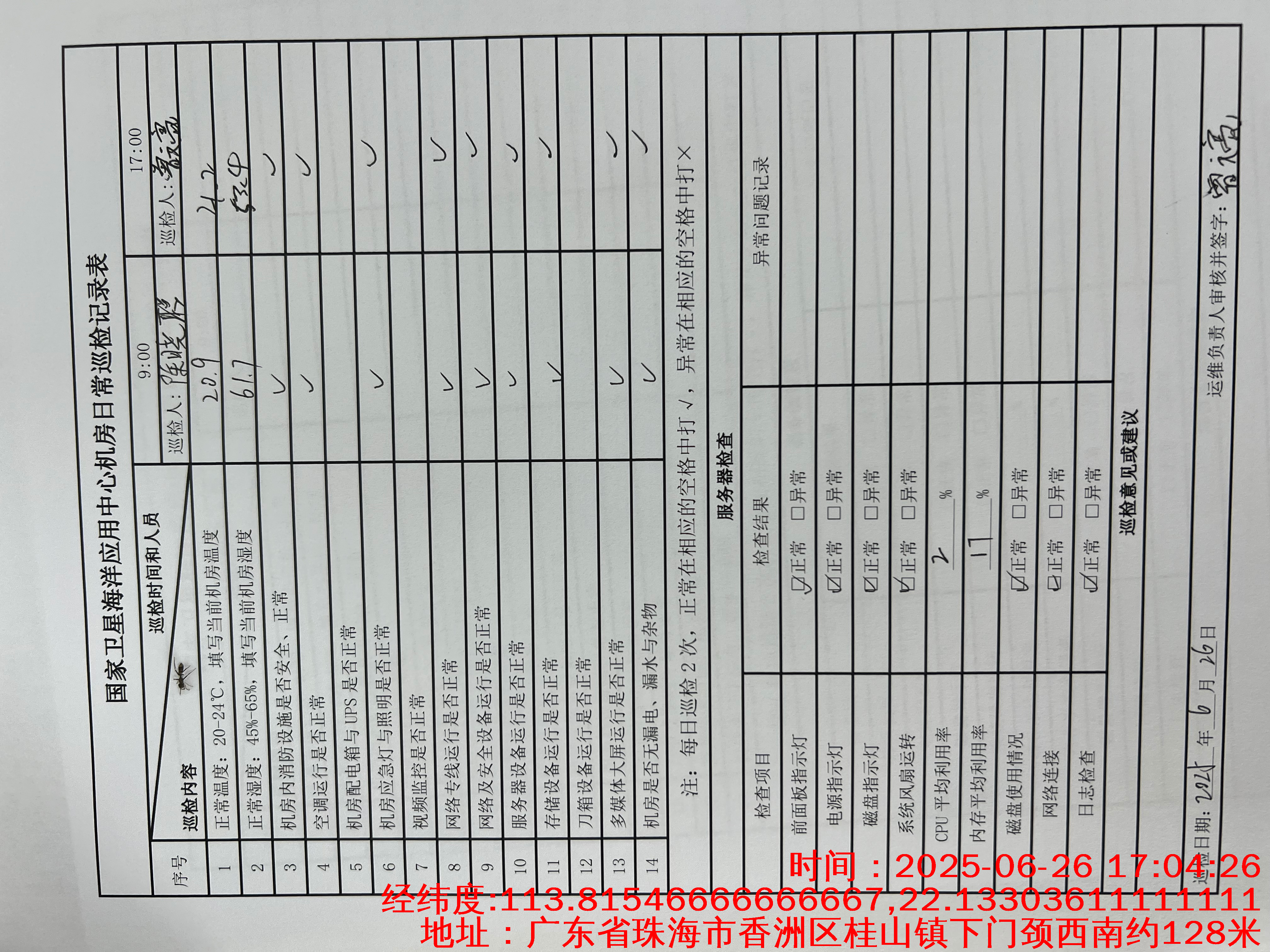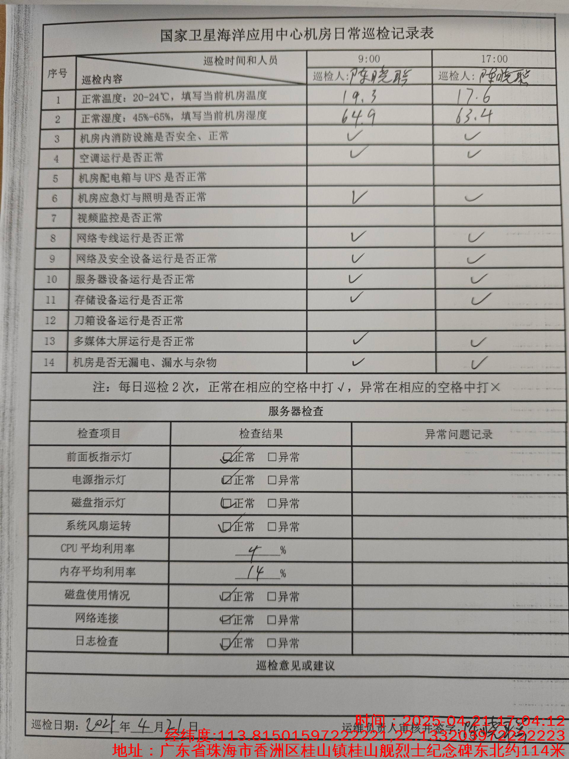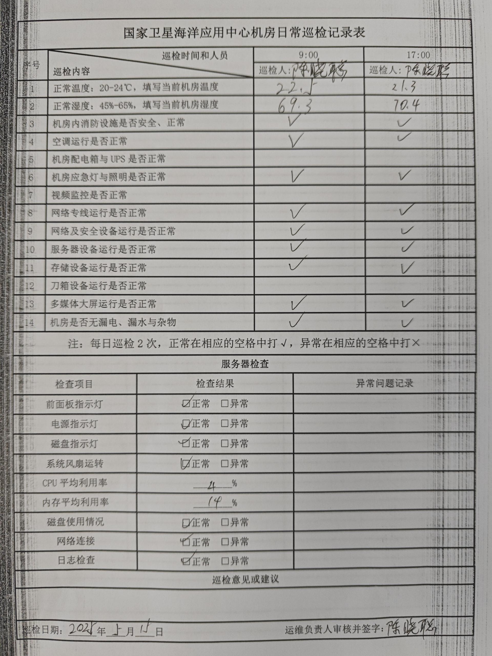 | 记录表-机房日常巡检 | 原图 | 水印1 | 水印2 | 陈晓聪 | 工作照 | 2025-04-02 17:00:00 |