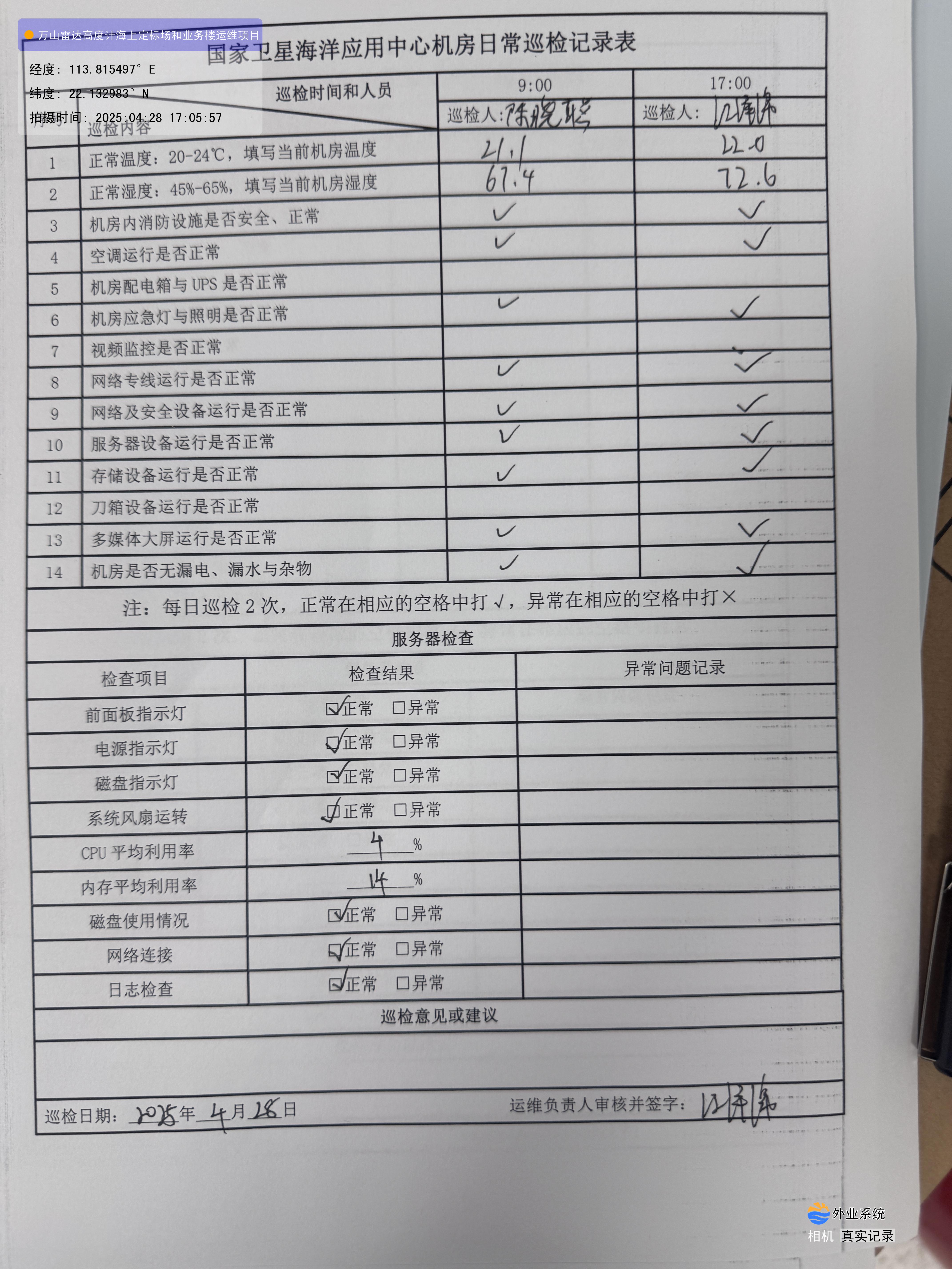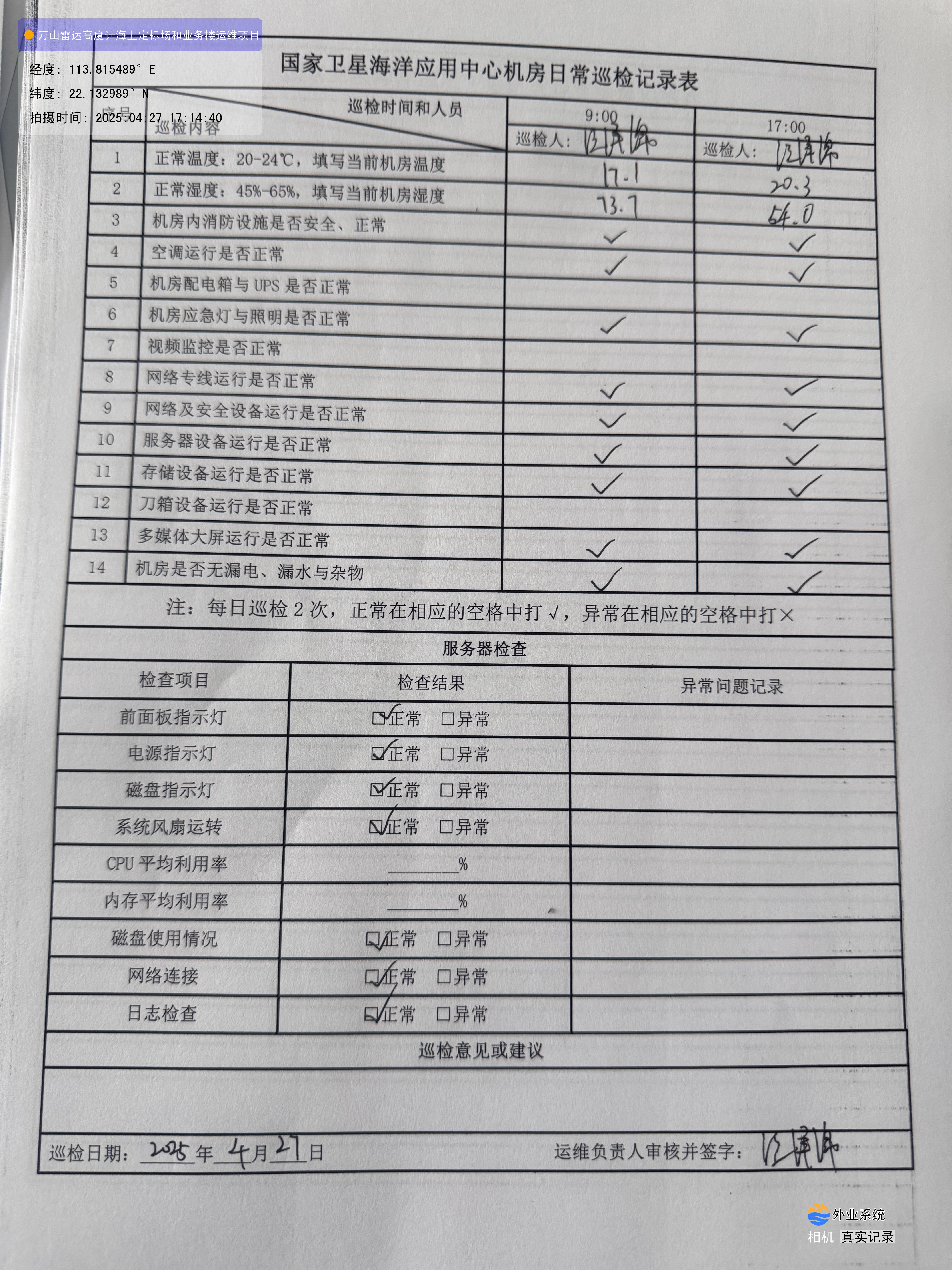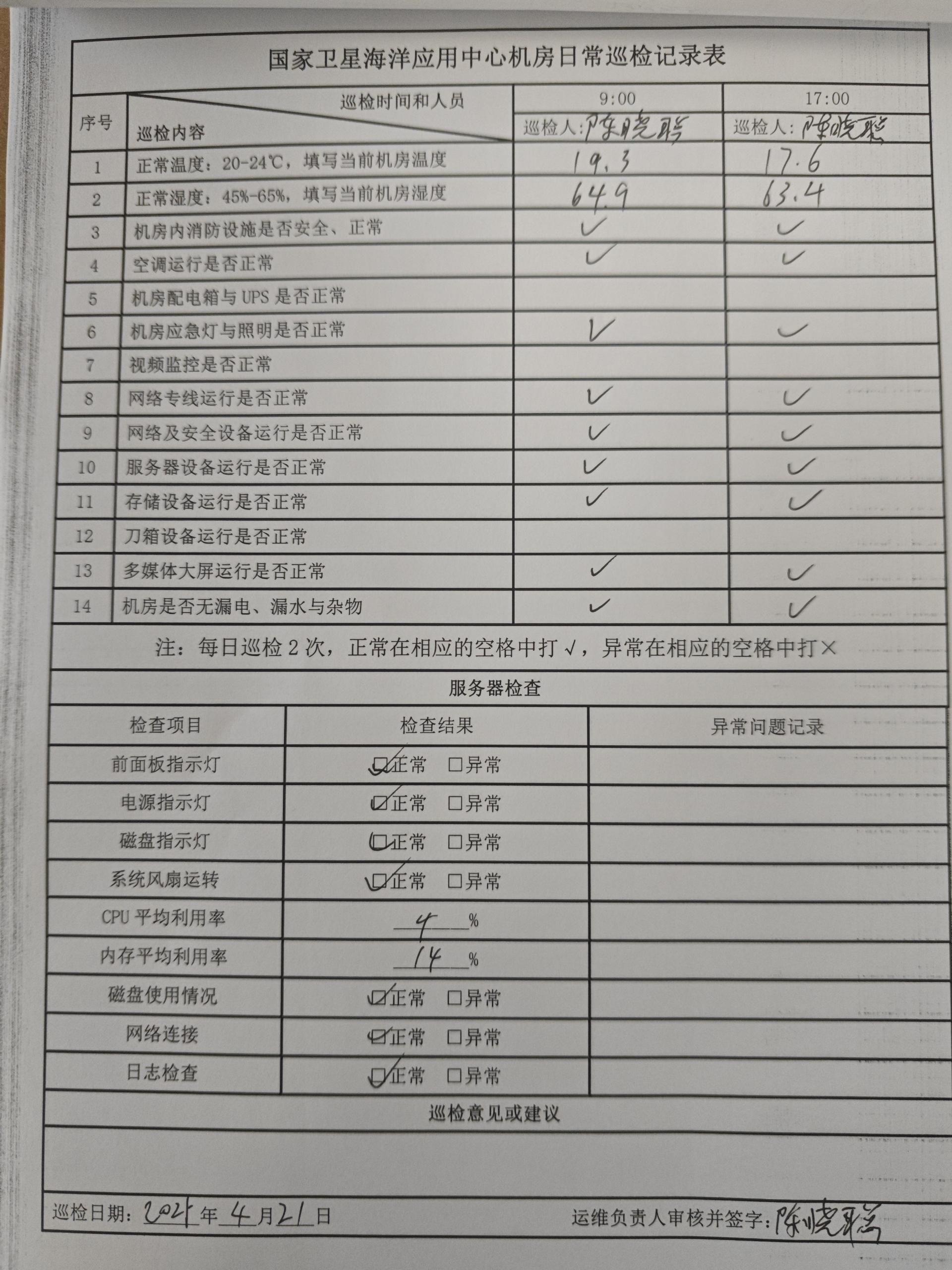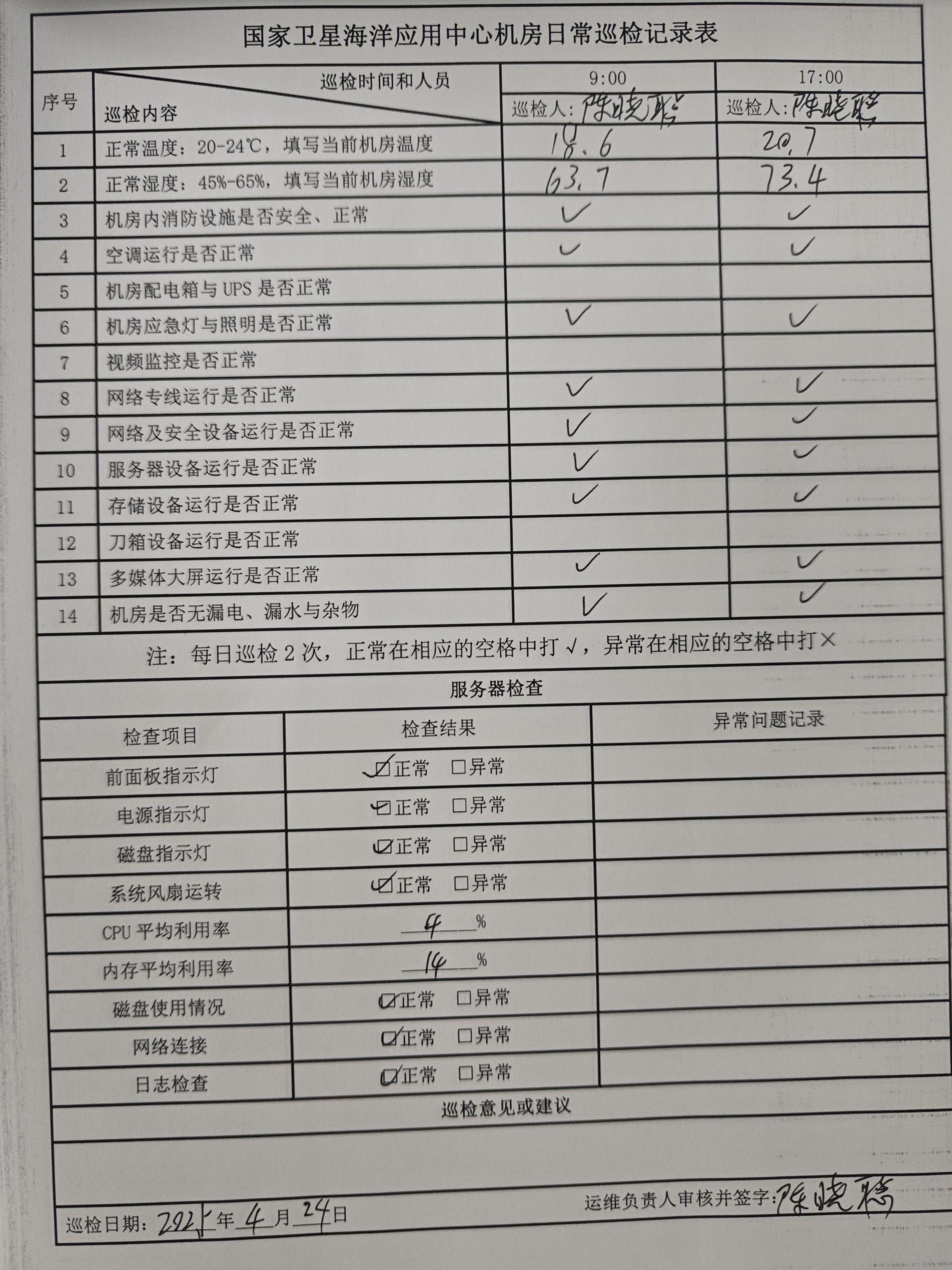 | 记录表-机房日常巡检 | 原图 | 水印1 | 水印2 | 陈晓聪 | 工作照 | 2025-04-02 17:00:00 |