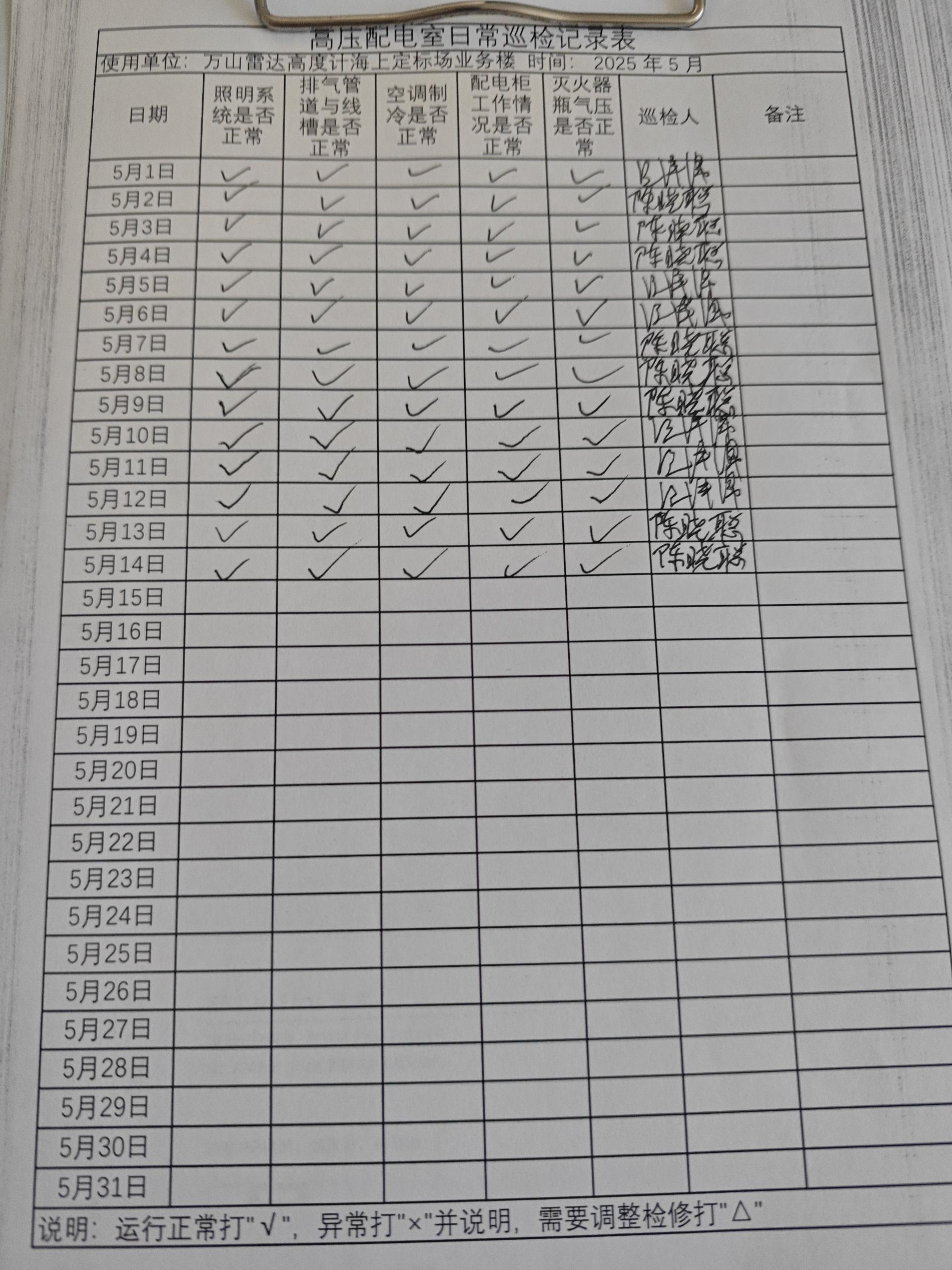 | 记录表-高压配电室日常巡检 | 原图 | 水印1 | 水印2 | 陈晓聪 | 工作照 | 2025-04-02 17:00:00 |