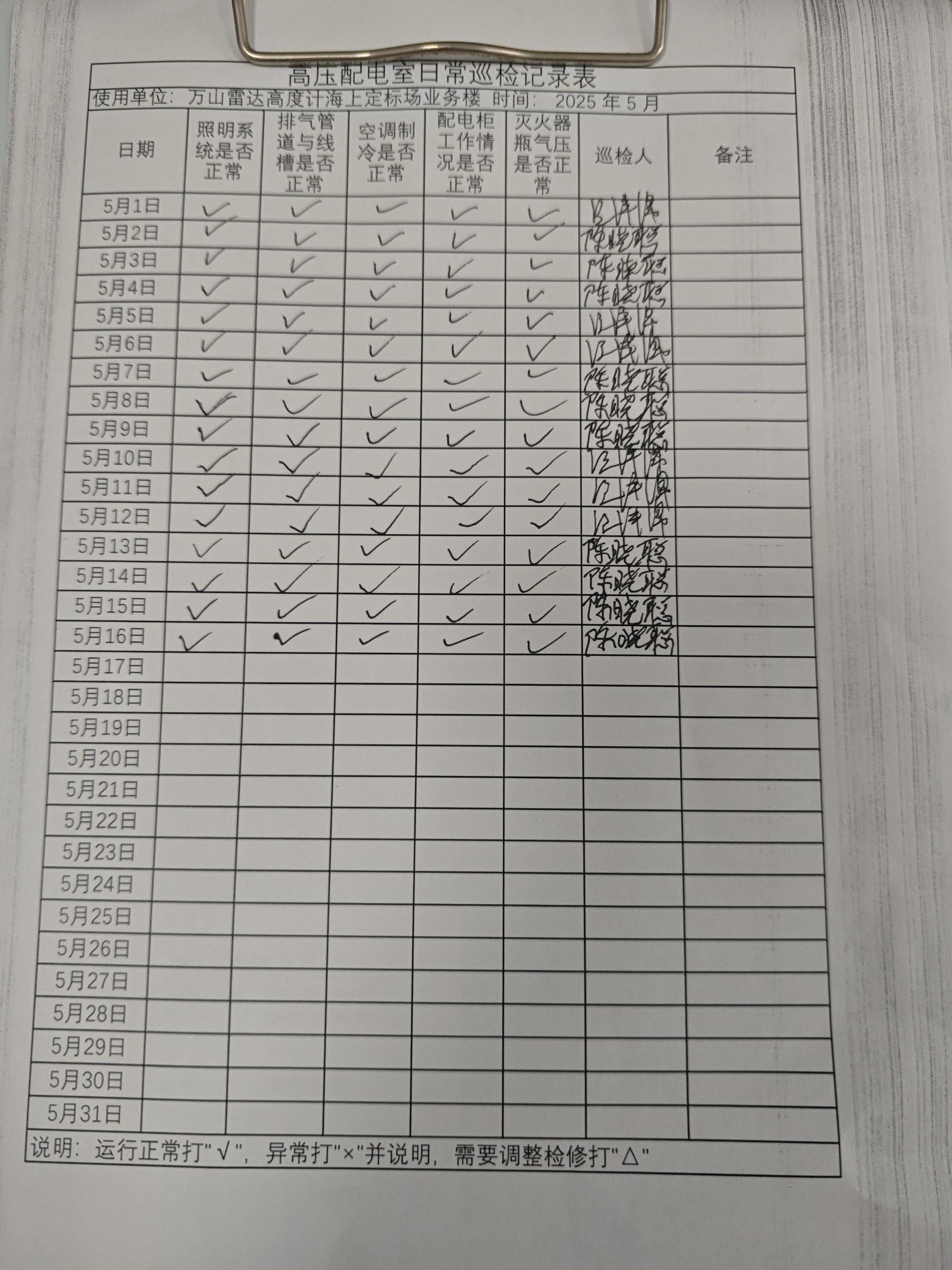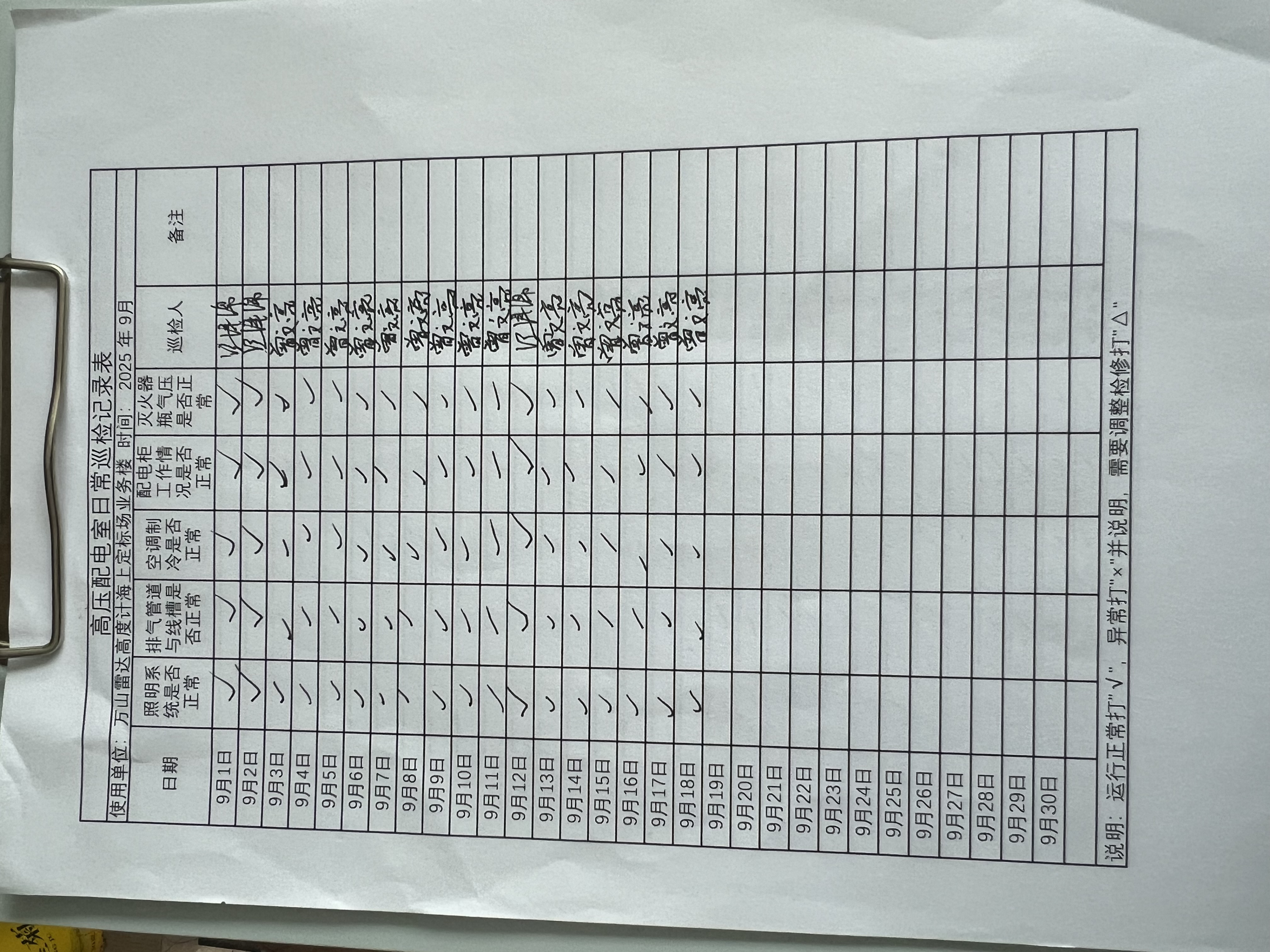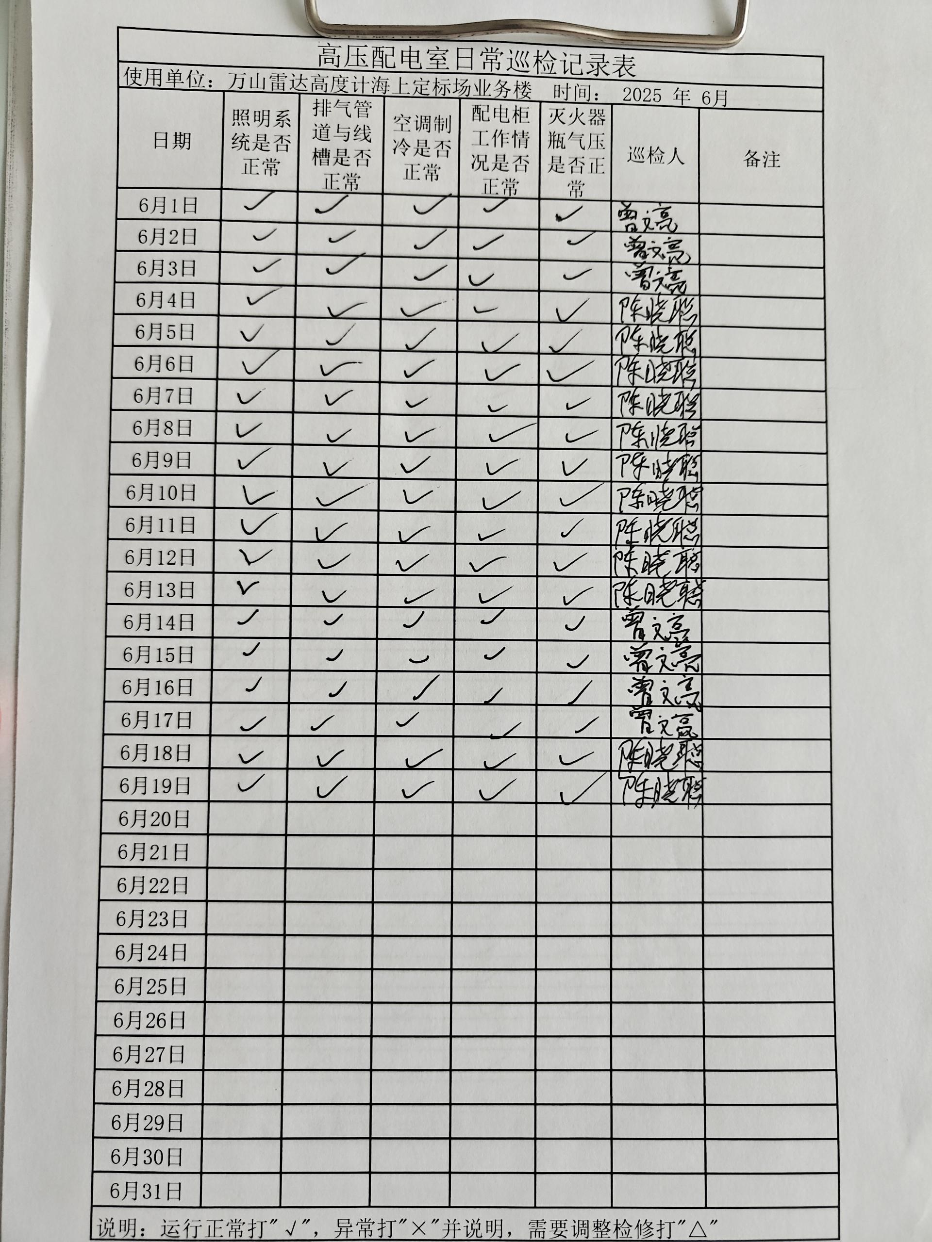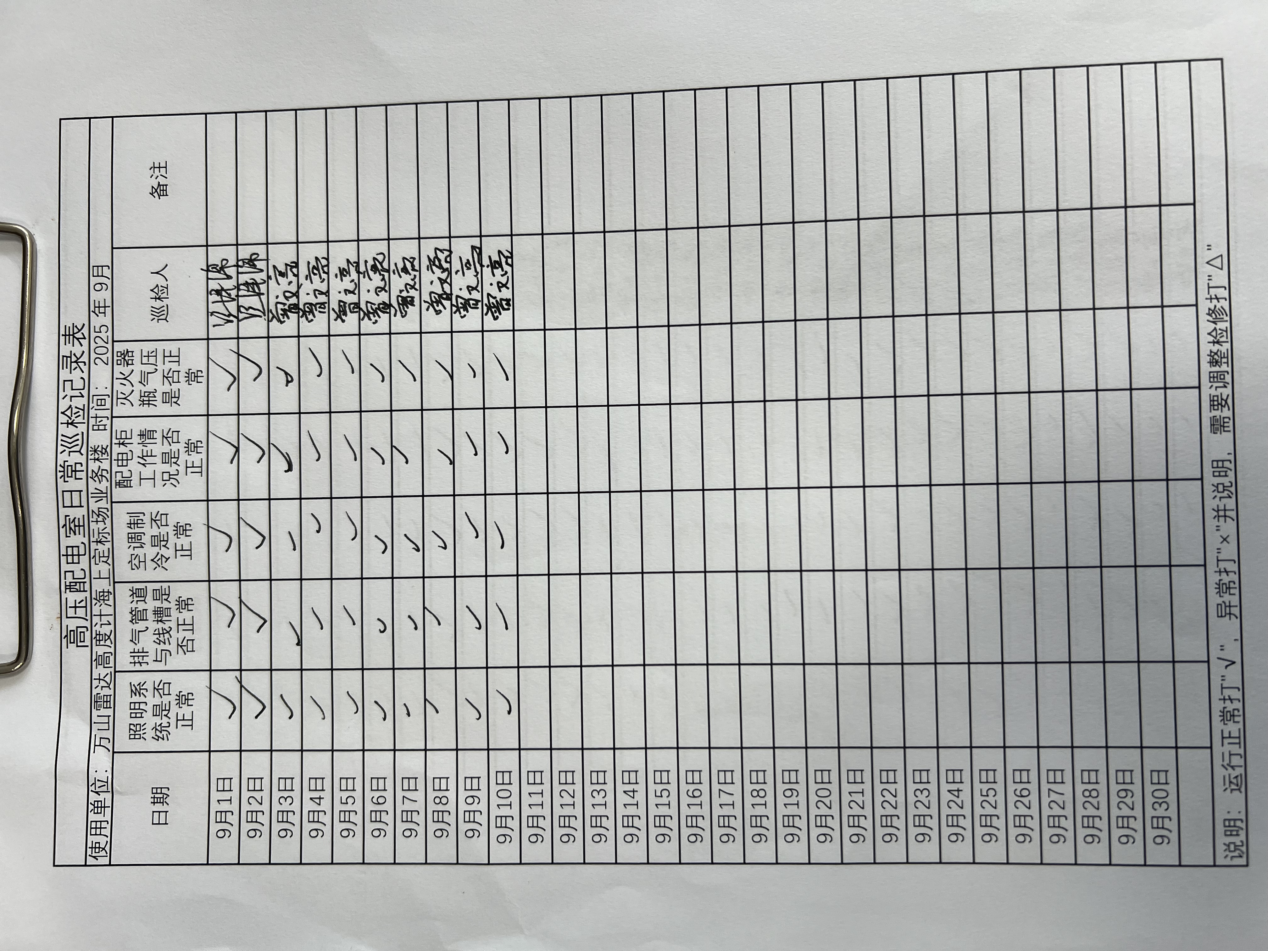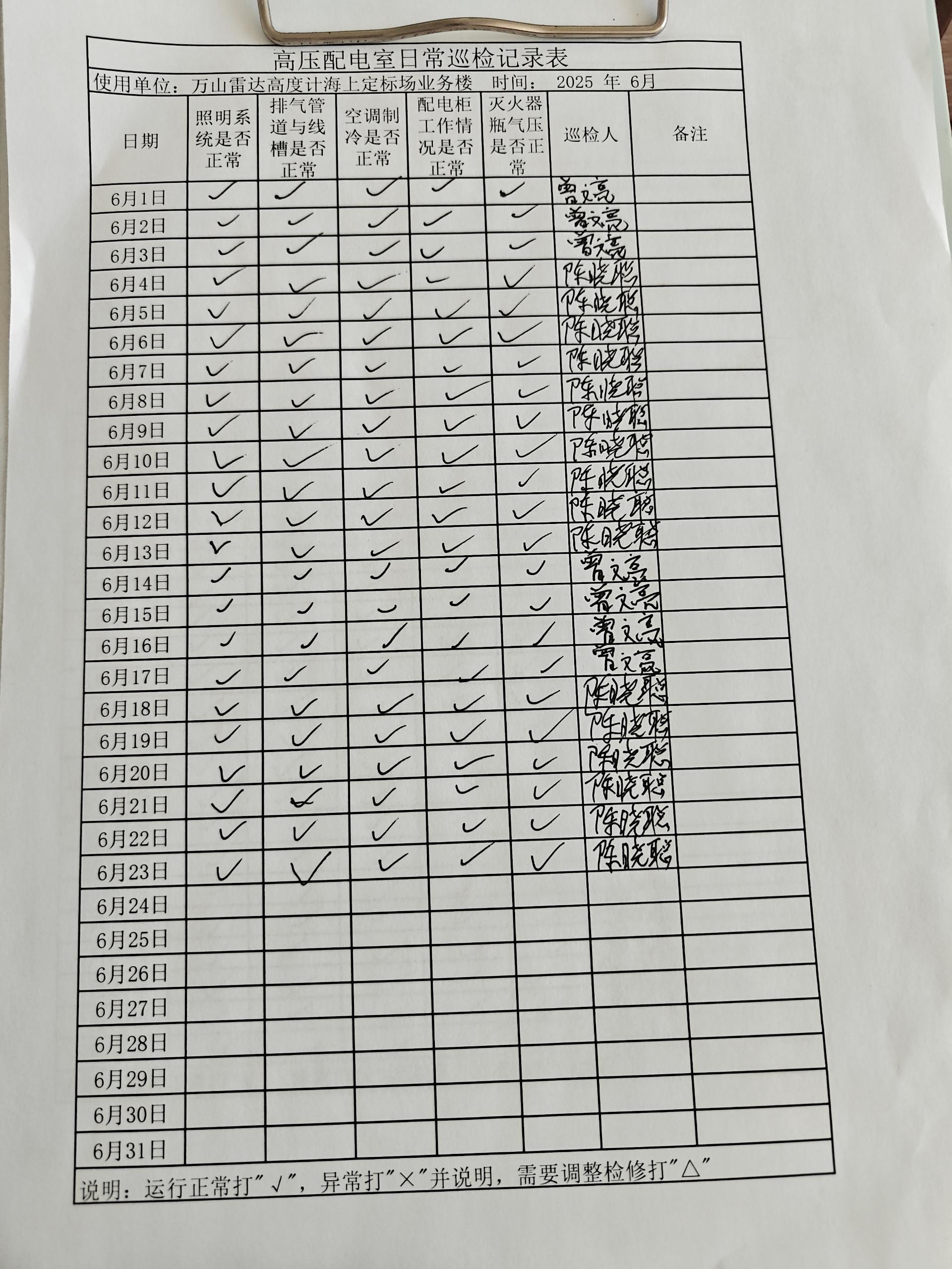 | 记录表-高压配电室日常巡检 | 原图 | 水印1 | 水印2 | 曾文亮 | 工作照 | 2025-09-23 15:40:29 |