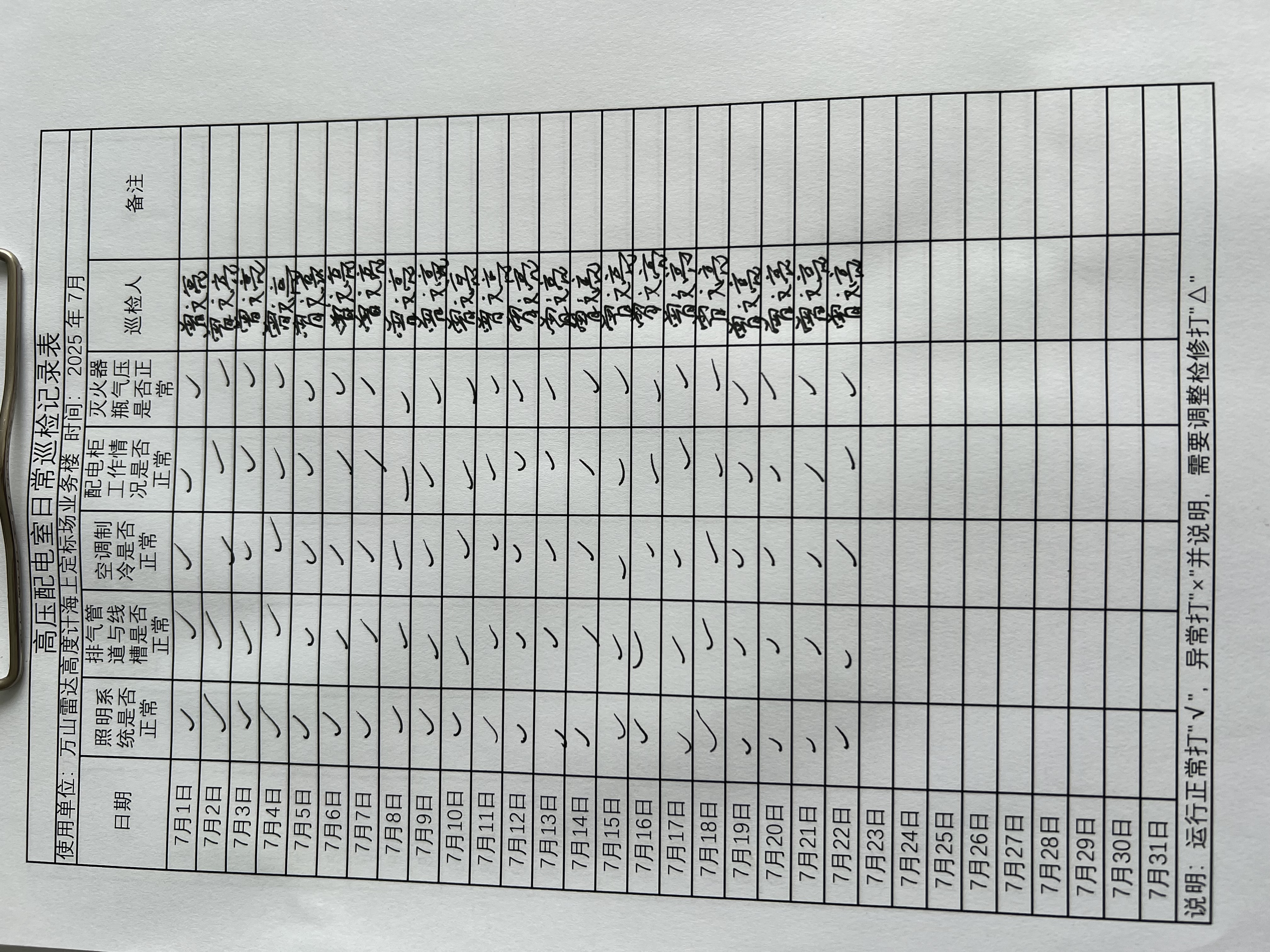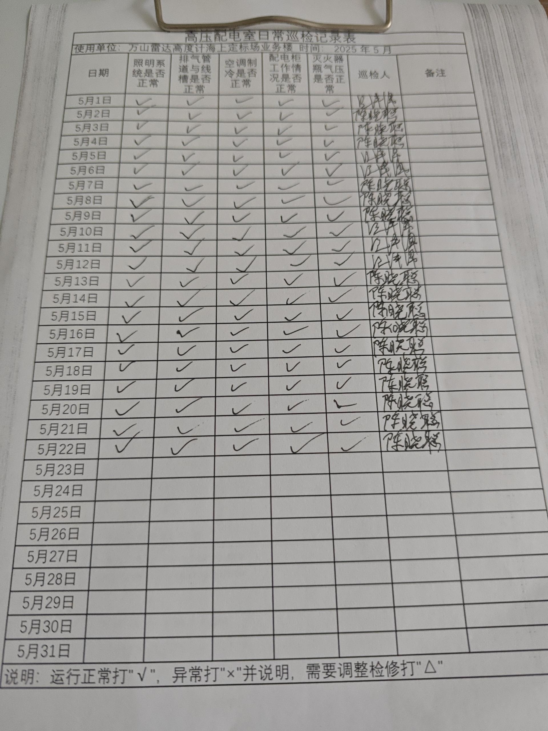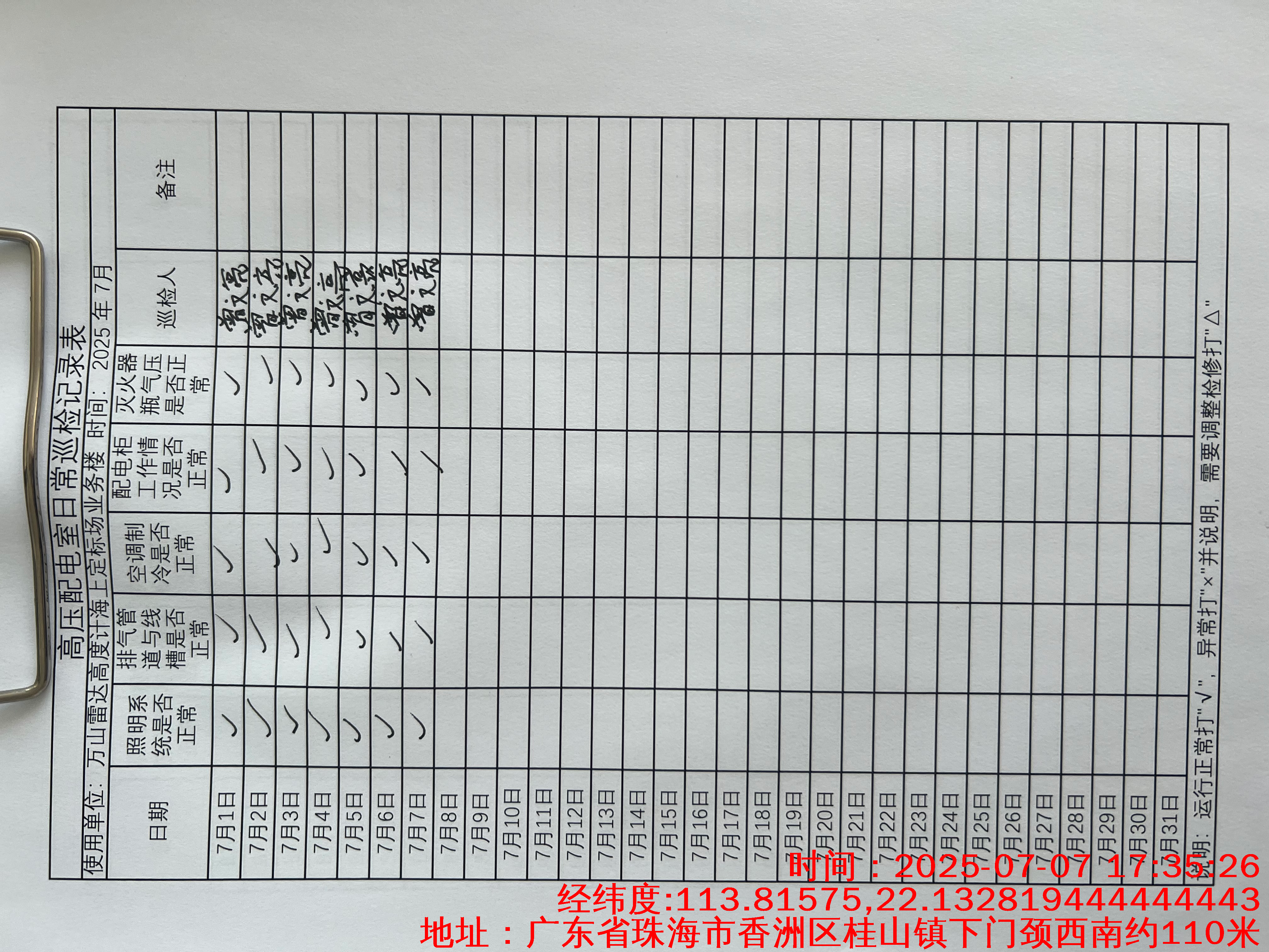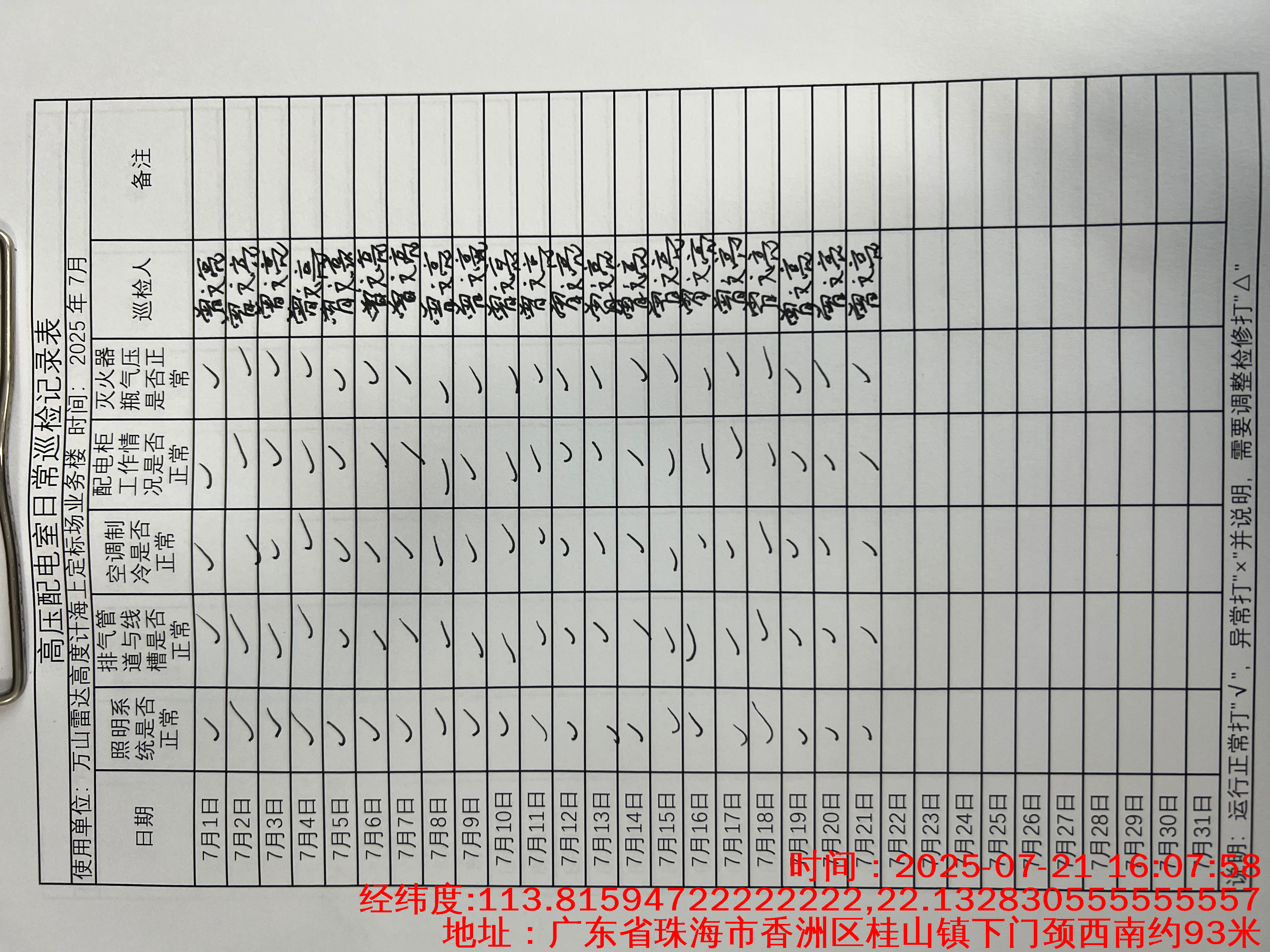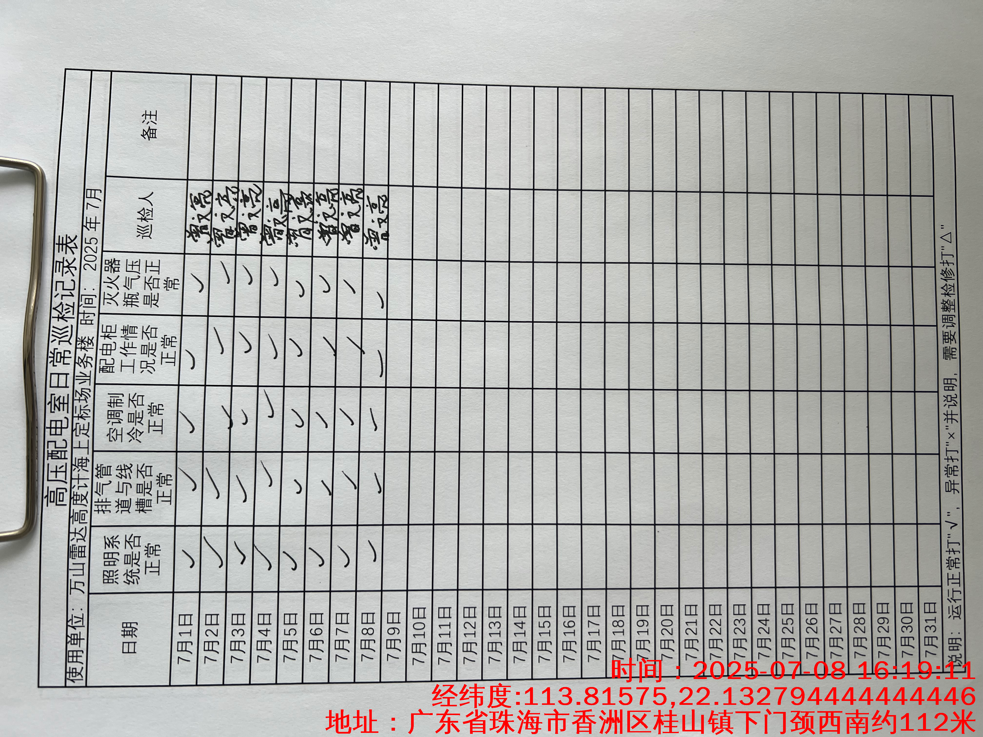 | 记录表-高压配电室日常巡检 | 原图 | 水印1 | 水印2 | 曾文亮 | 工作照 | 2025-09-22 15:37:46 |