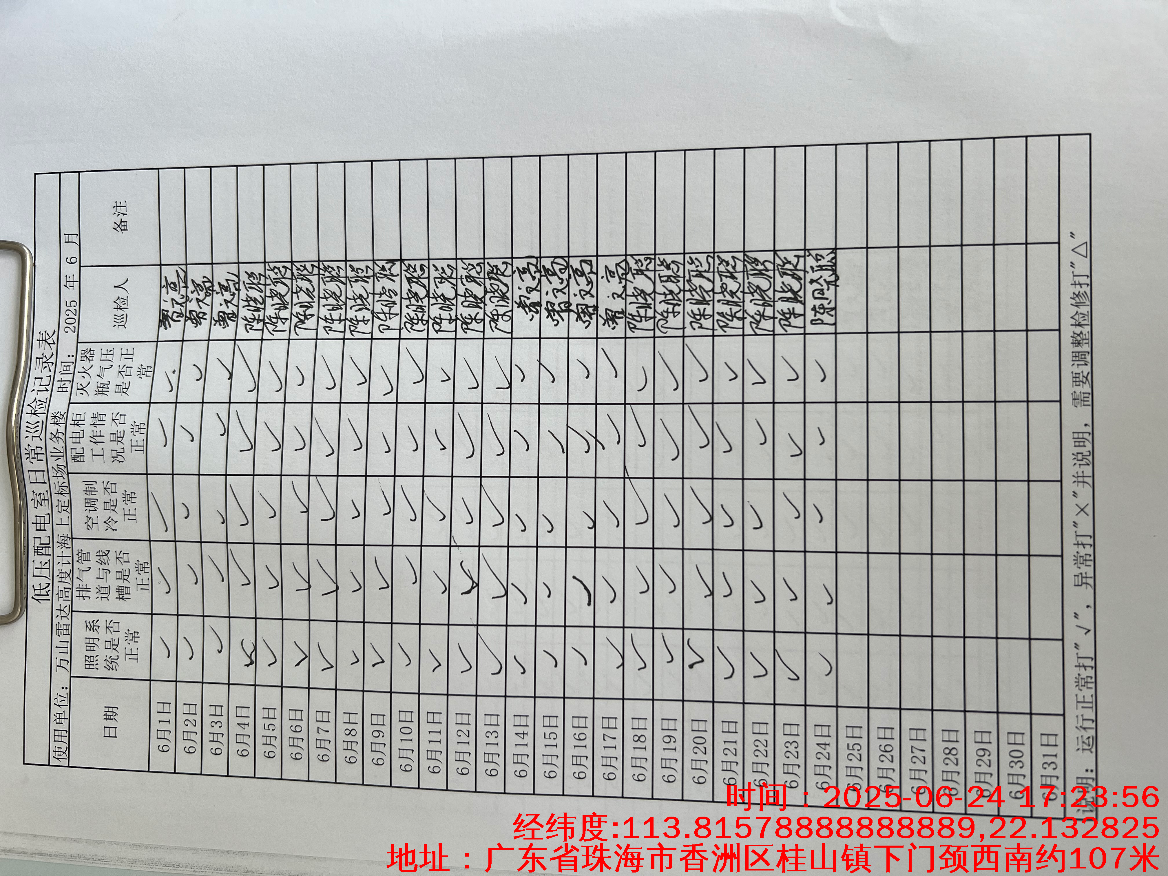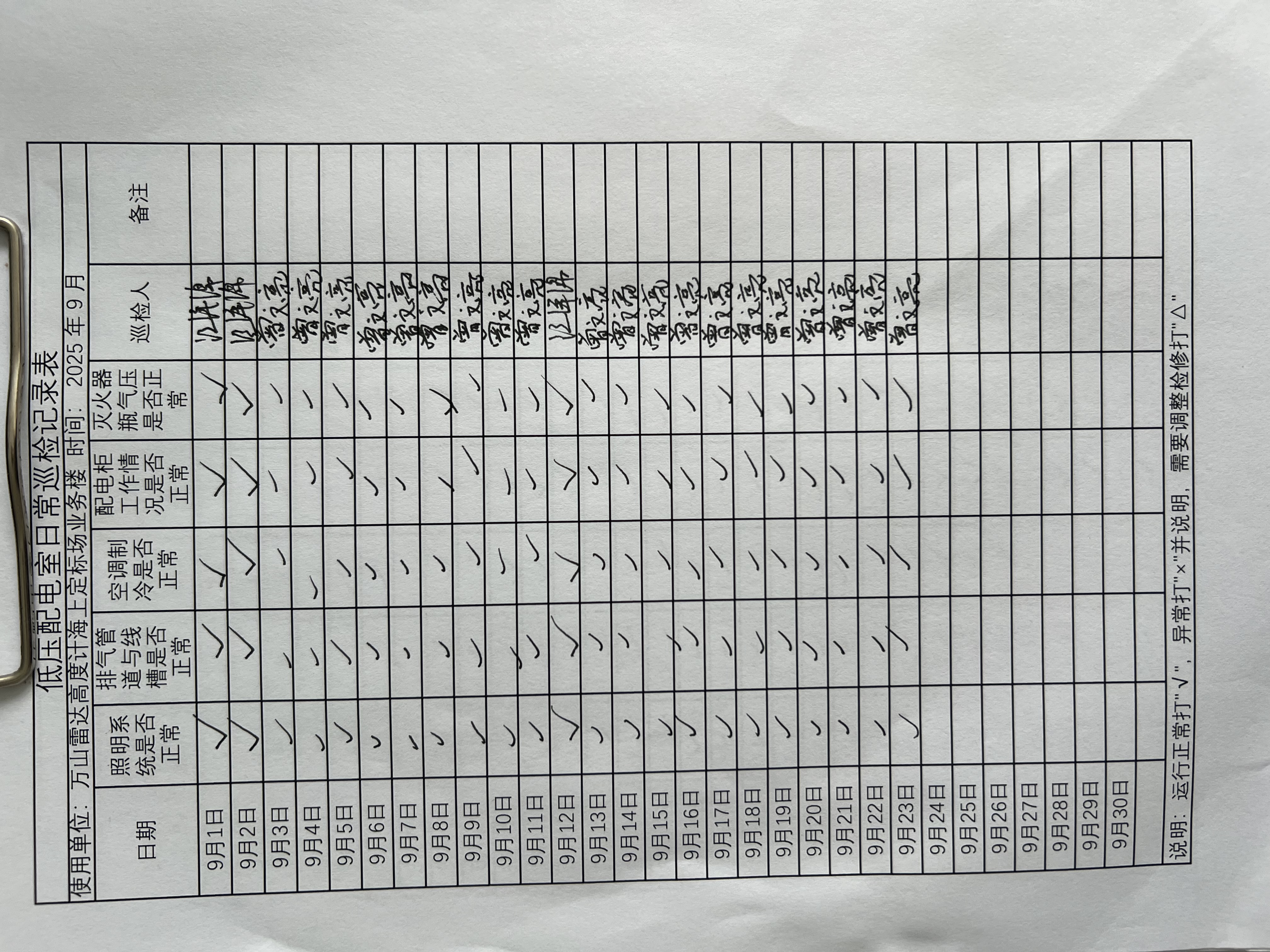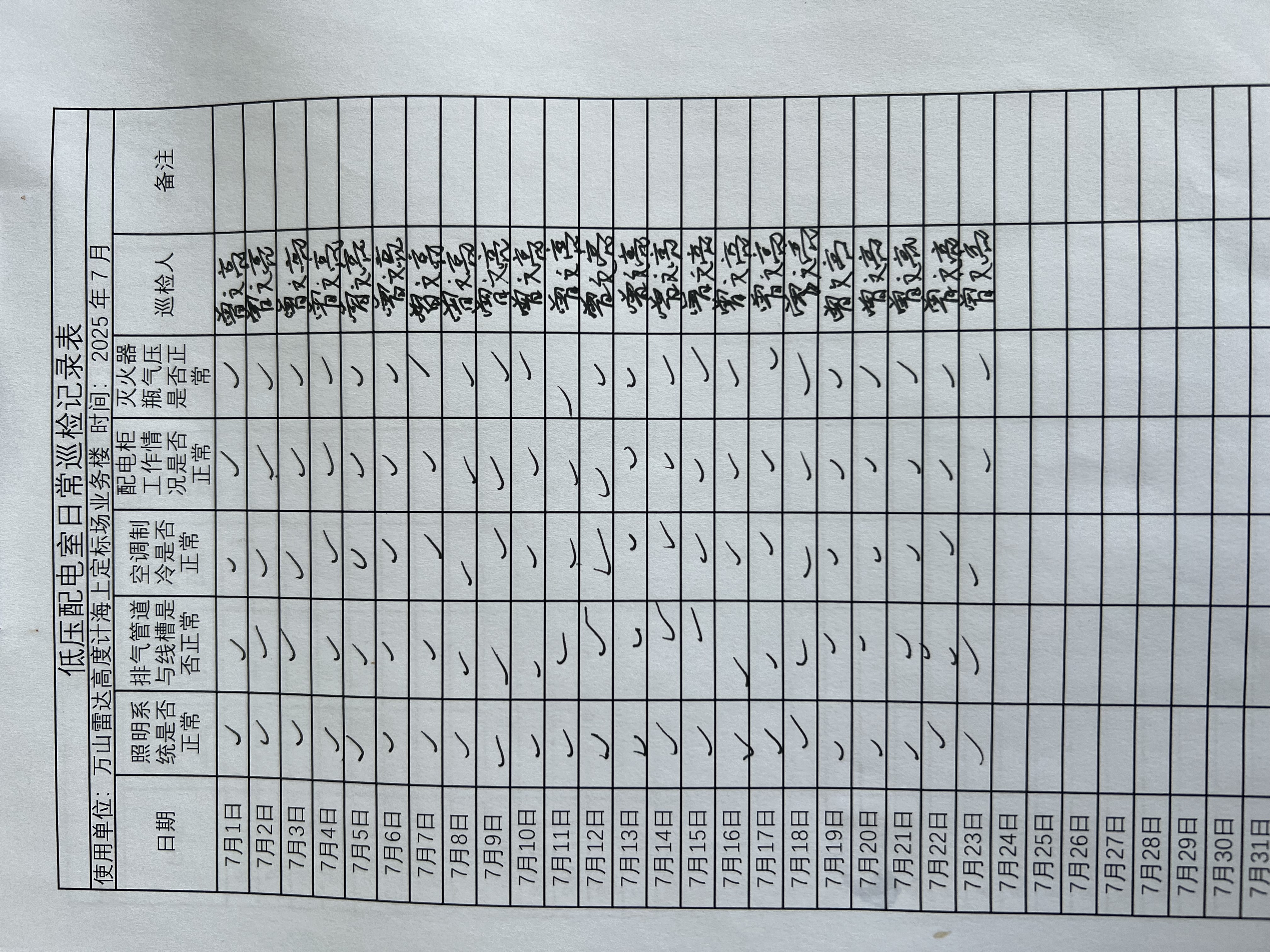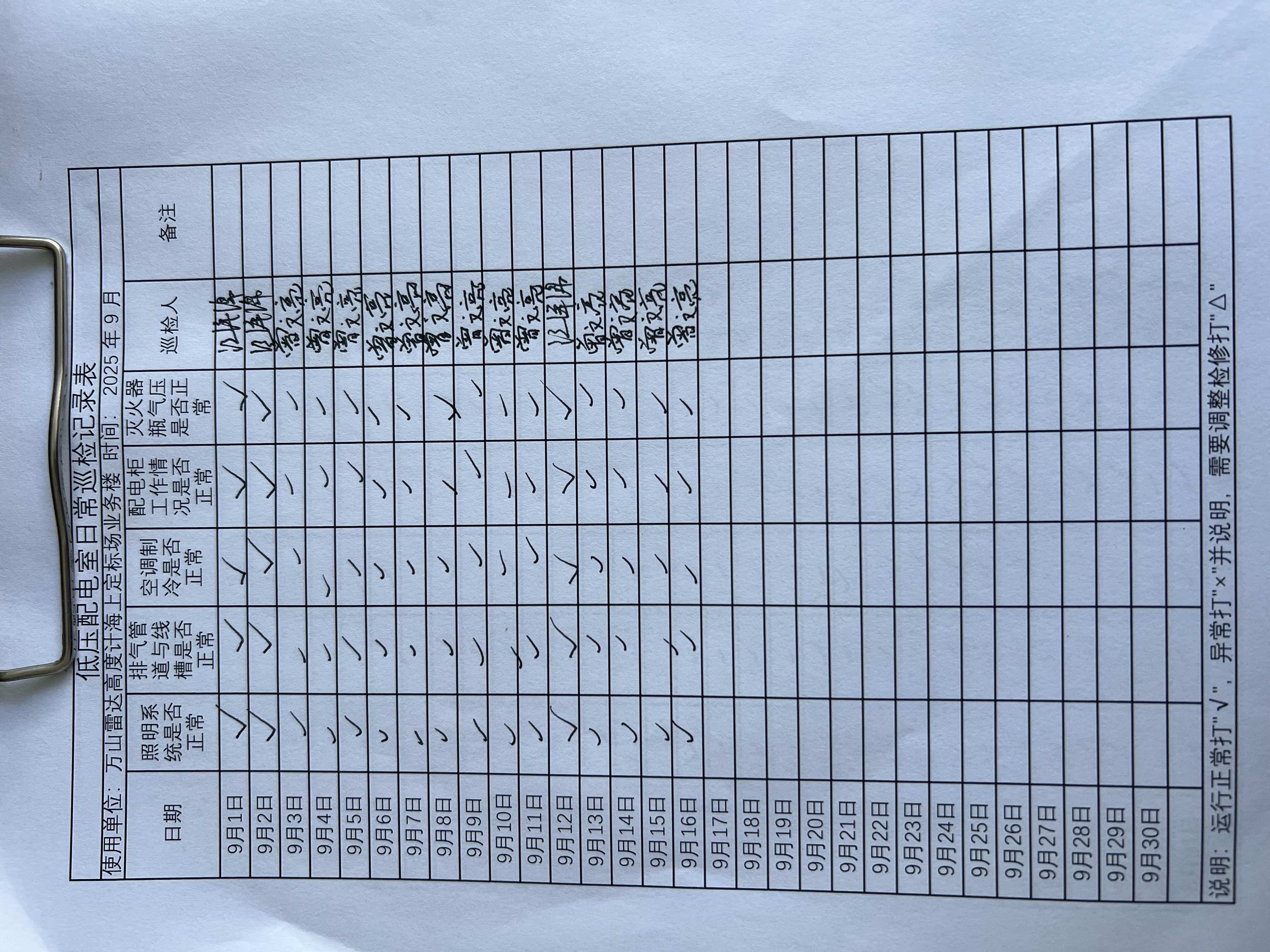 | 记录表-低压配电室日常巡检 | 原图 | 水印1 | 水印2 | 曾文亮 | 工作照 | 2025-09-23 15:40:13 |