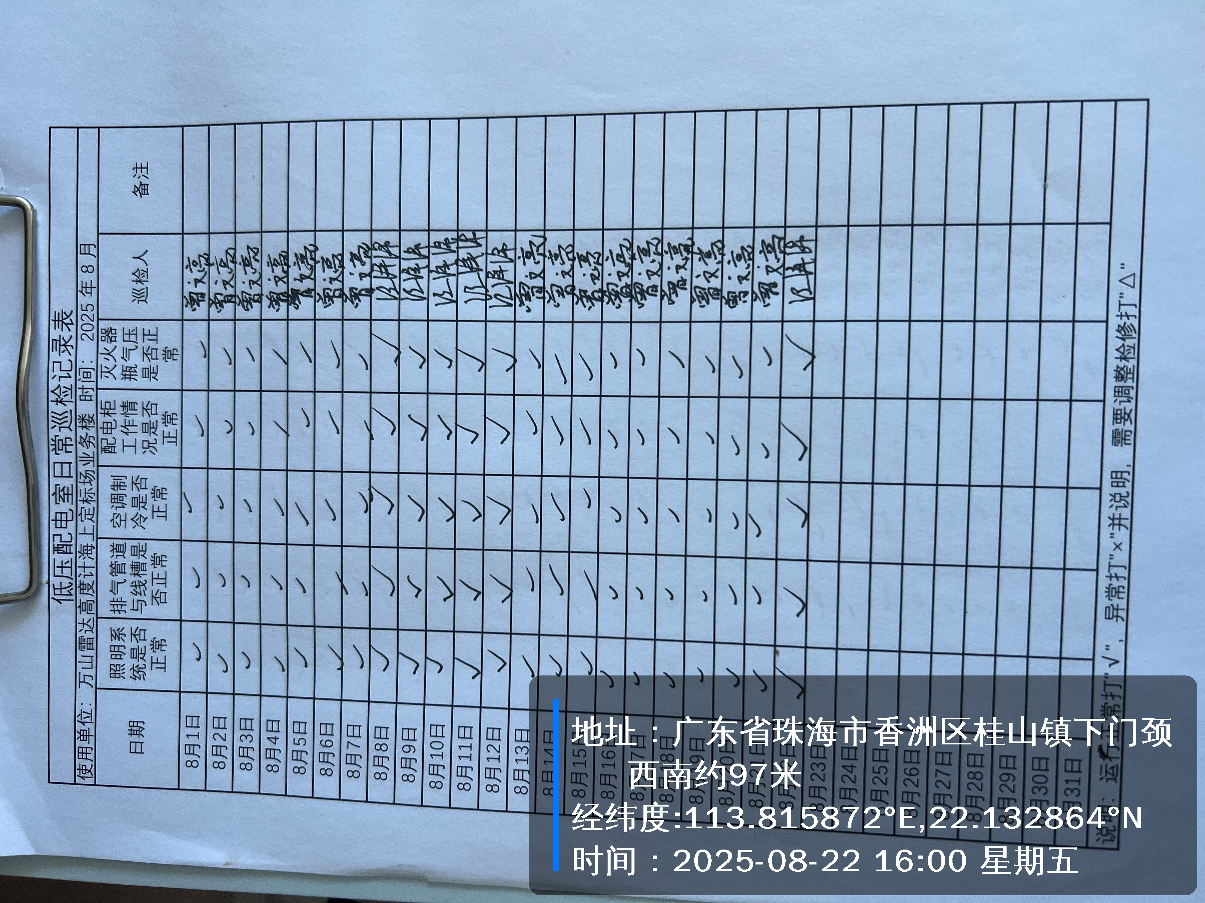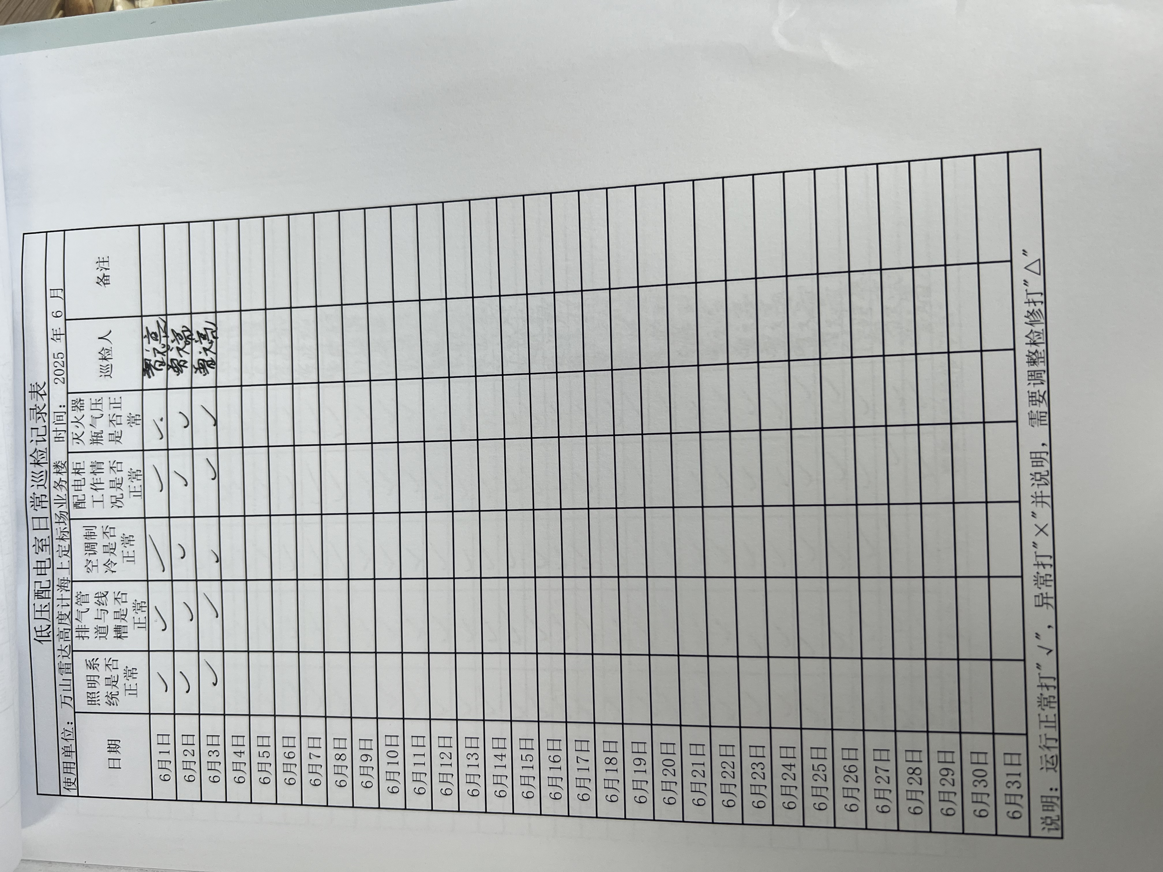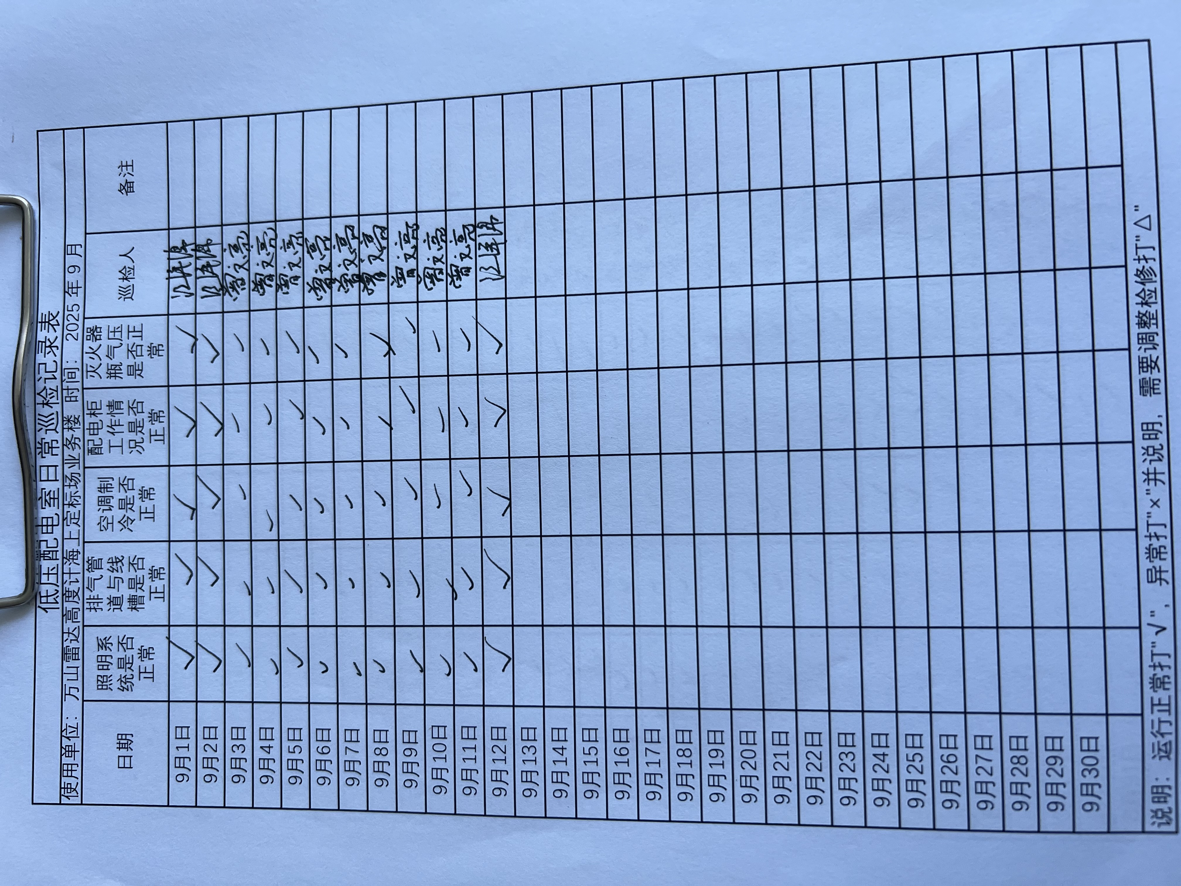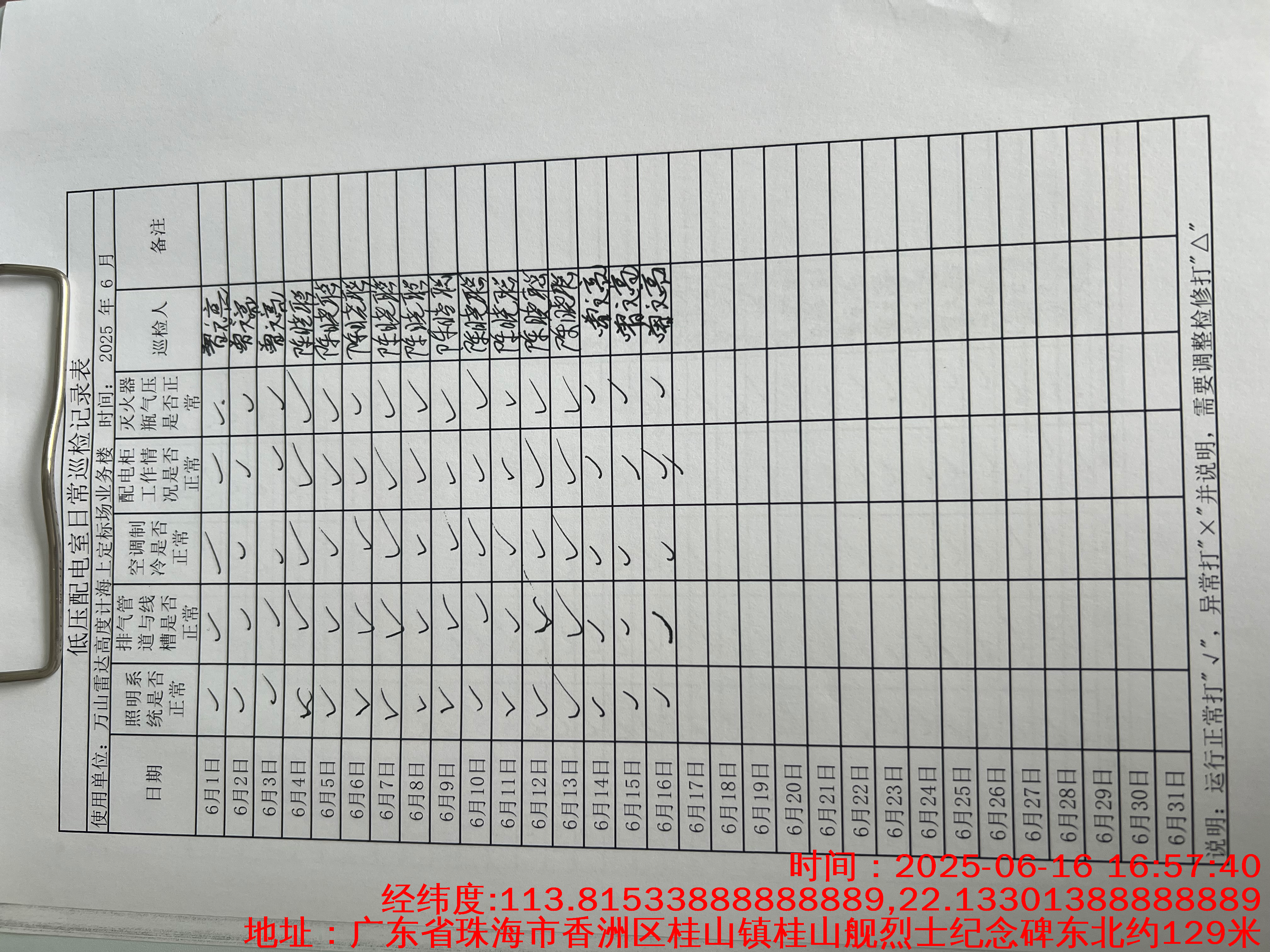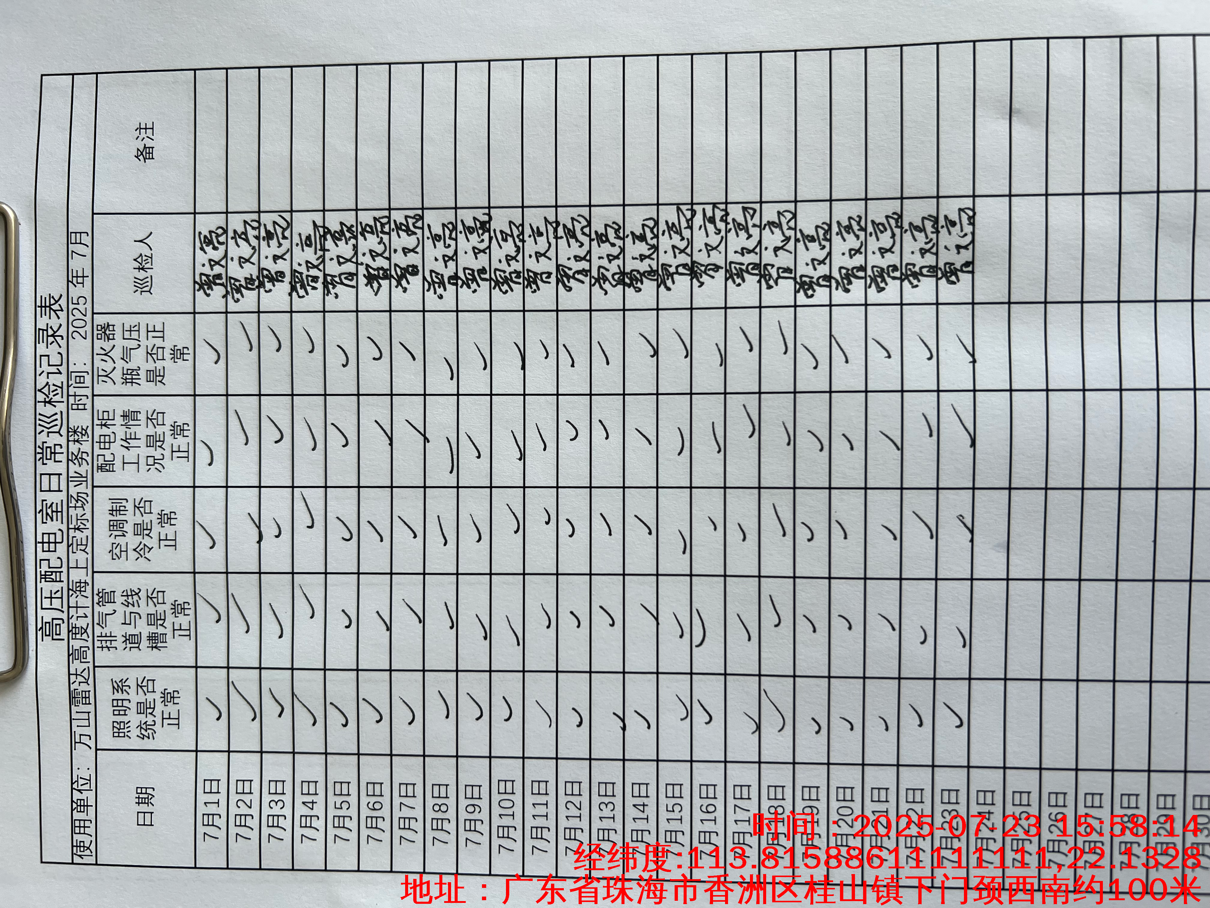 | 记录表-低压配电室日常巡检 | 原图 | 水印1 | 水印2 | 曾文亮 | 工作照 | 2025-09-23 15:40:13 |