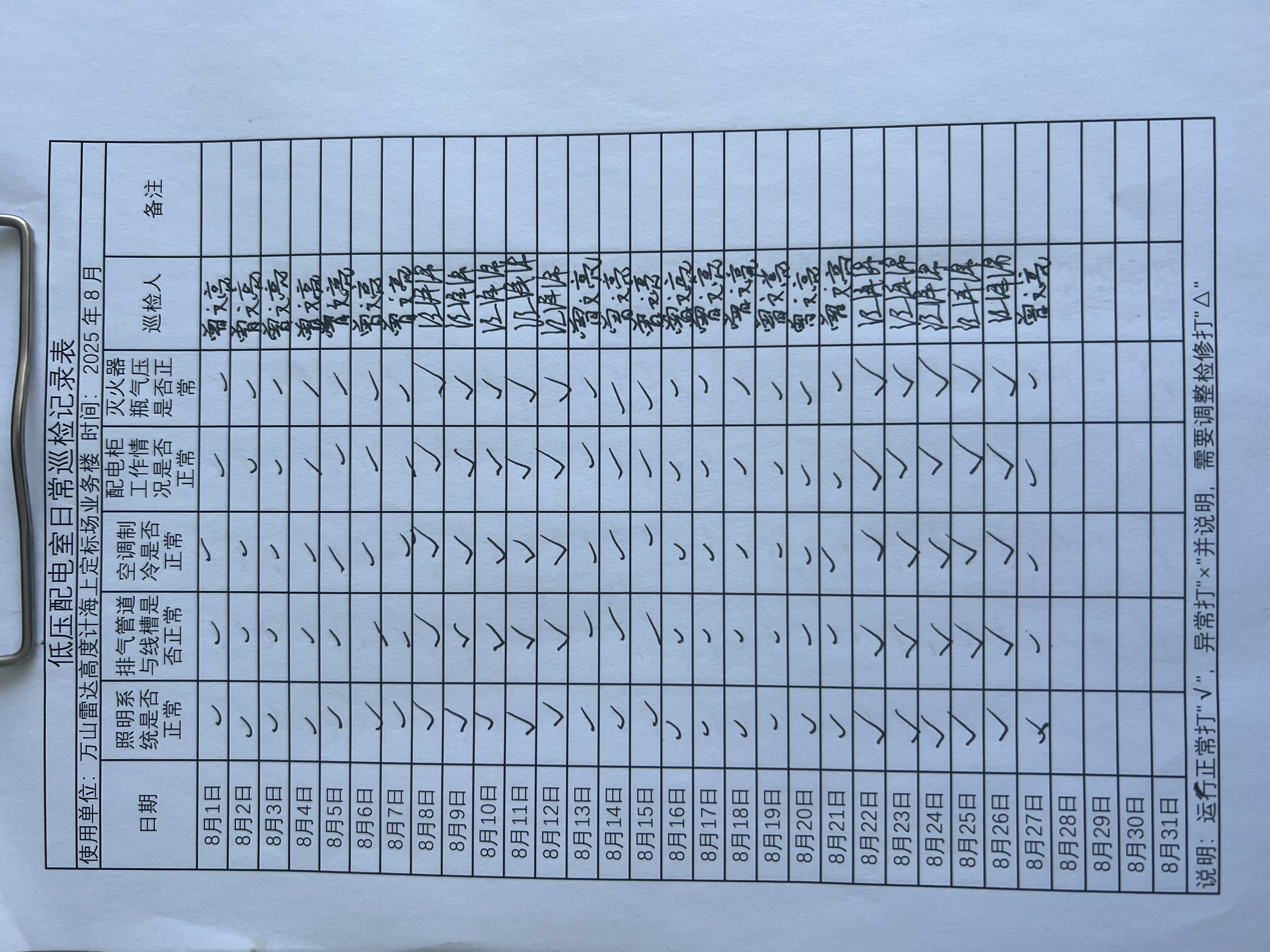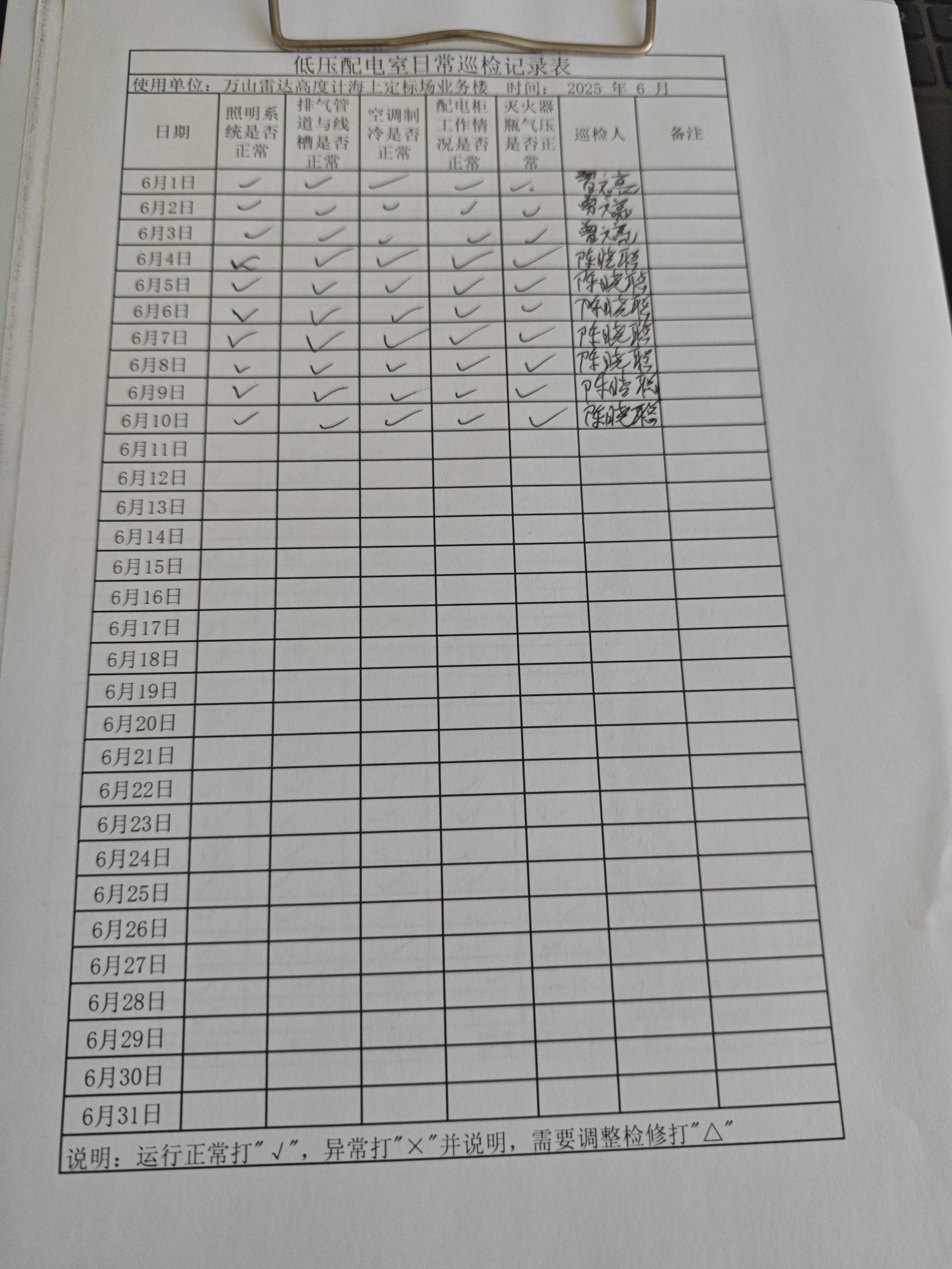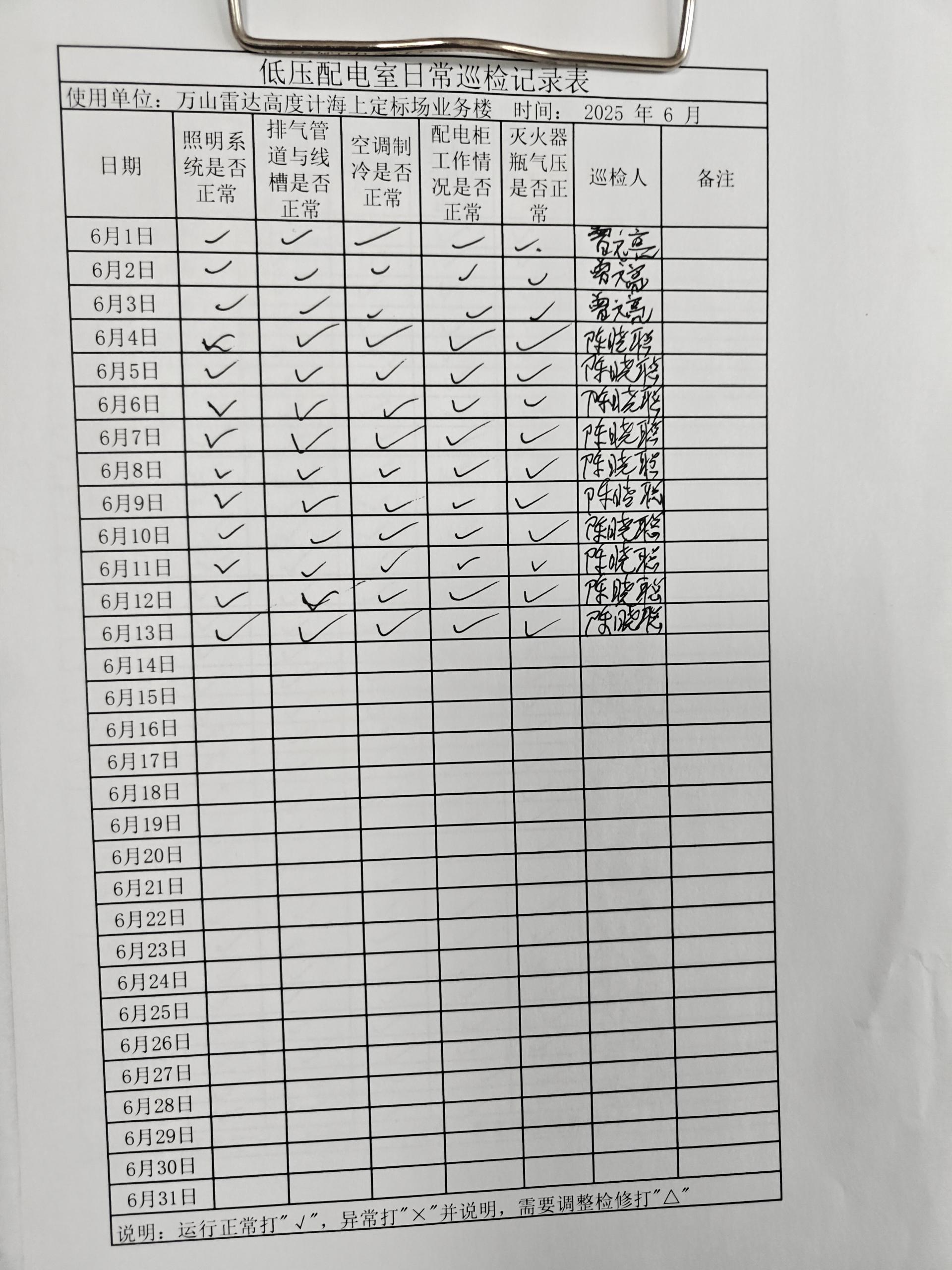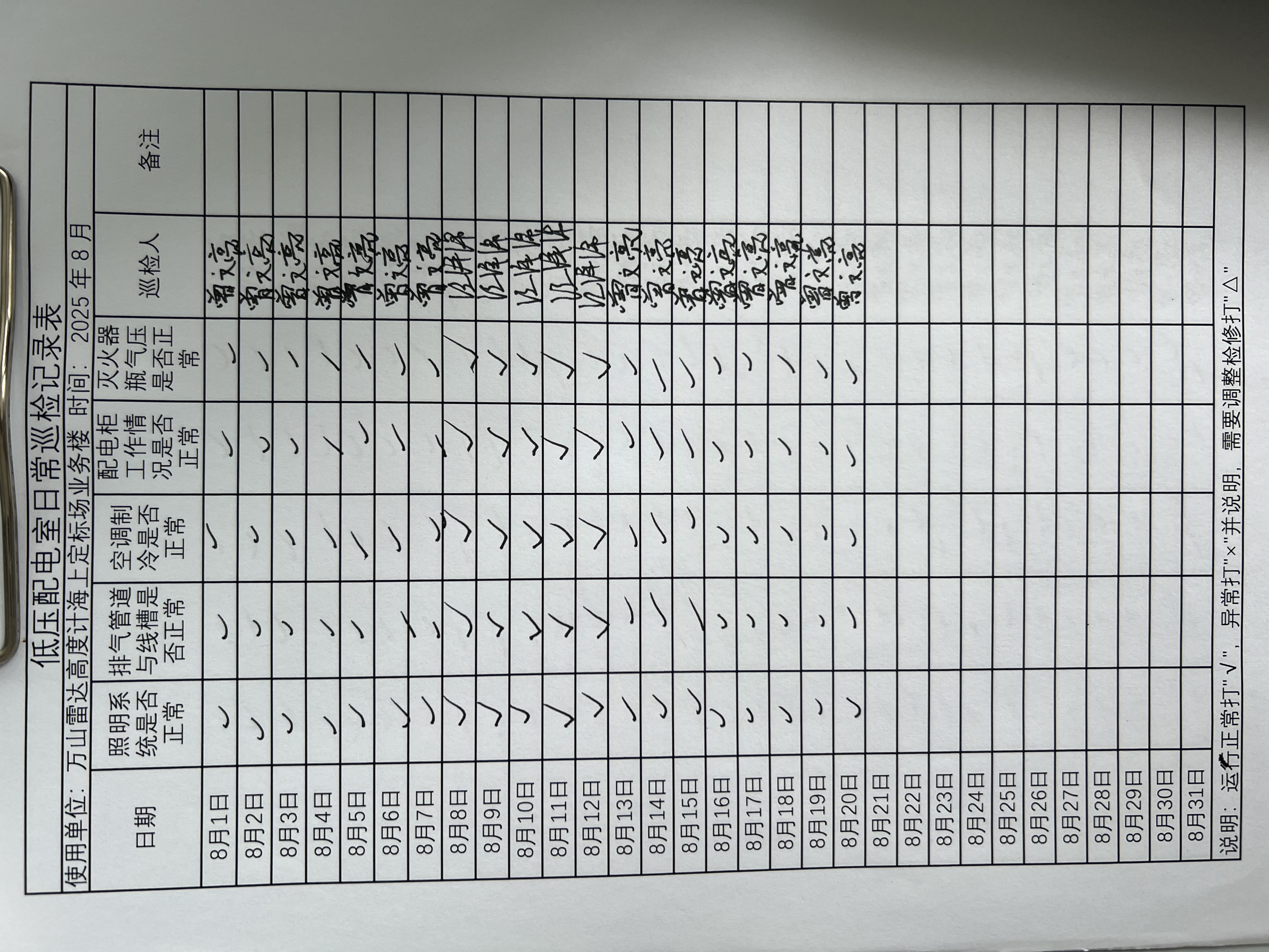| 记录表-低压配电室日常巡检 | 原图 | 水印1 | 水印2 | 曾文亮 | 工作照 | 2025-09-23 15:40:13 |