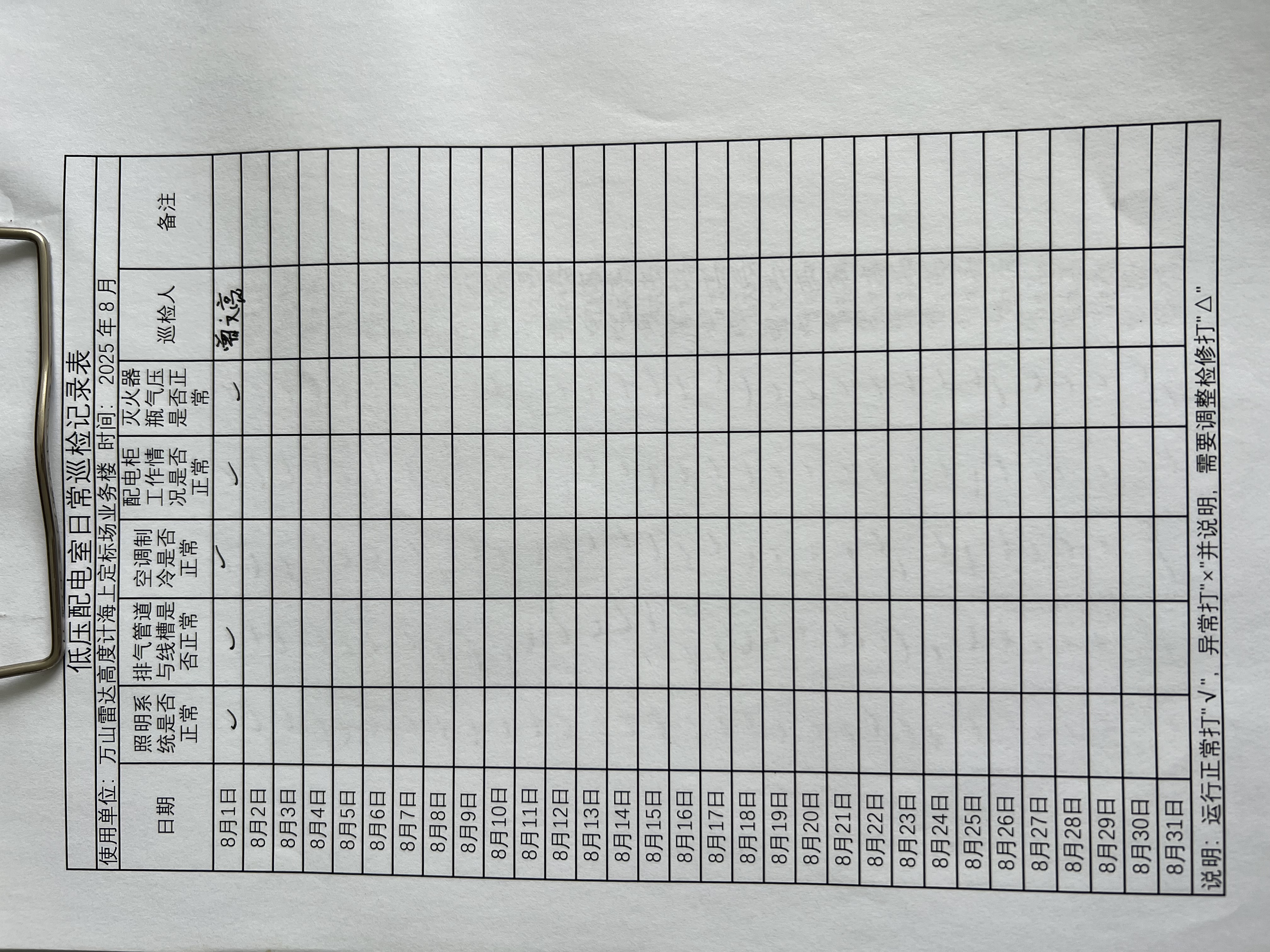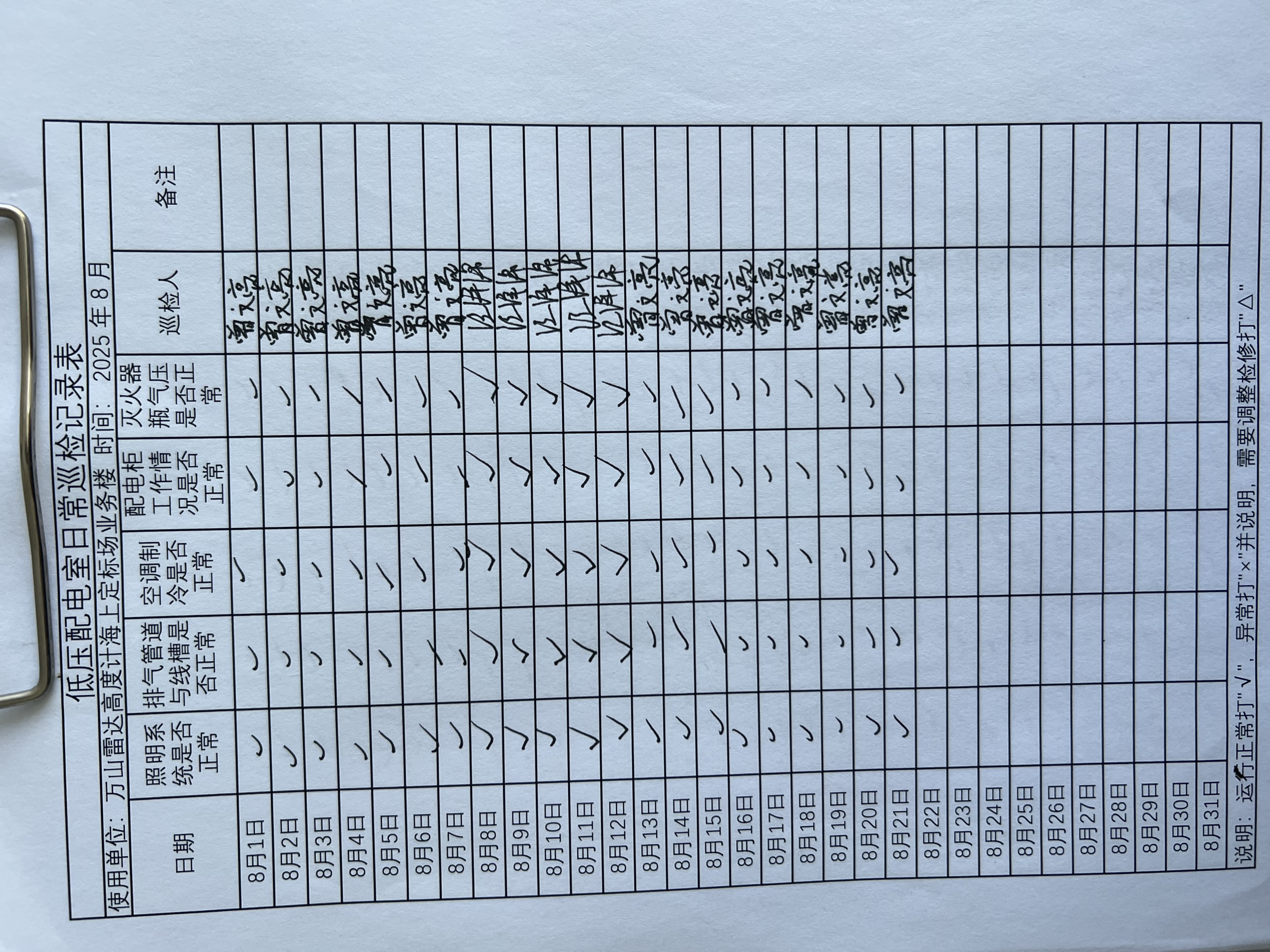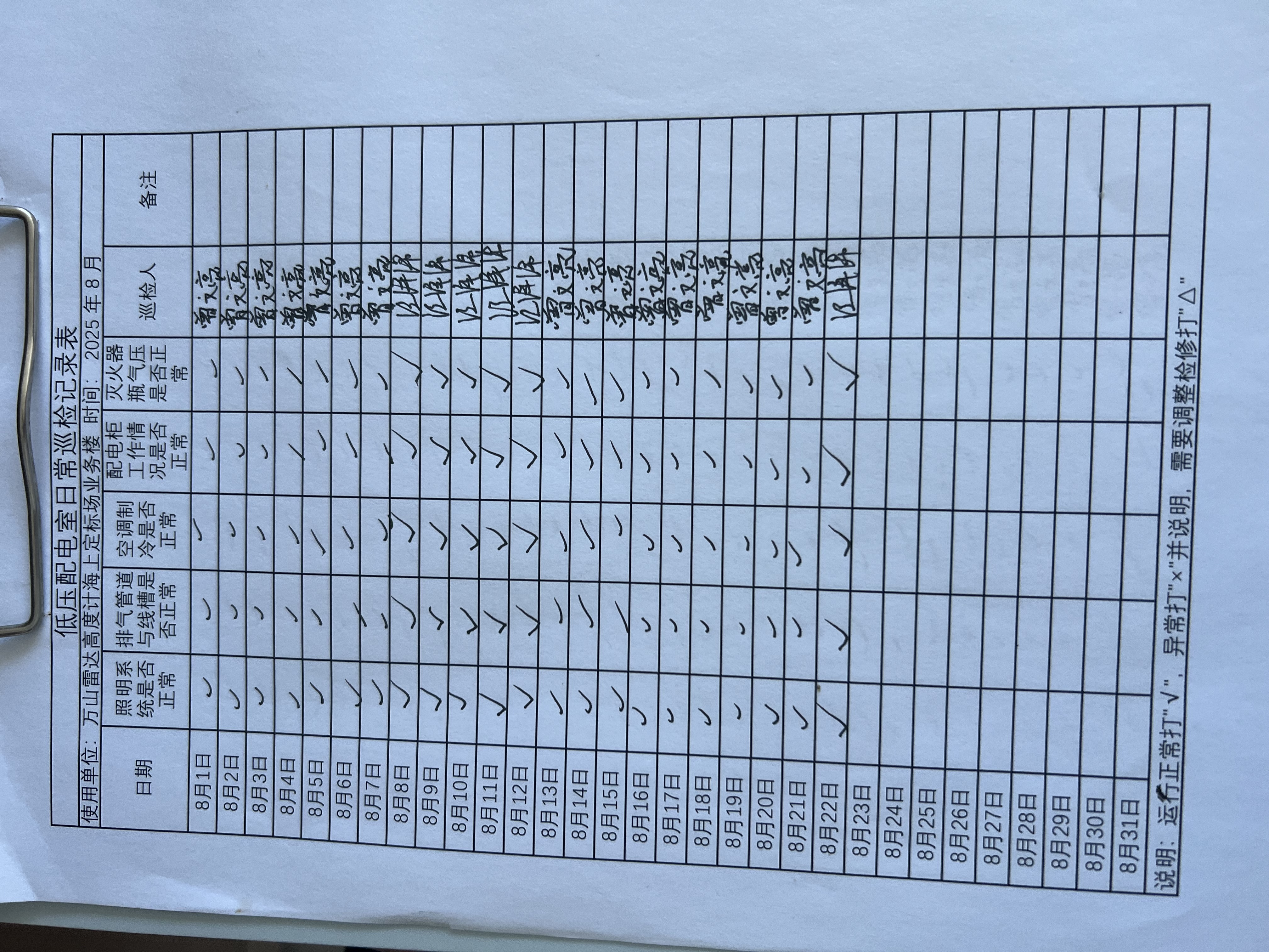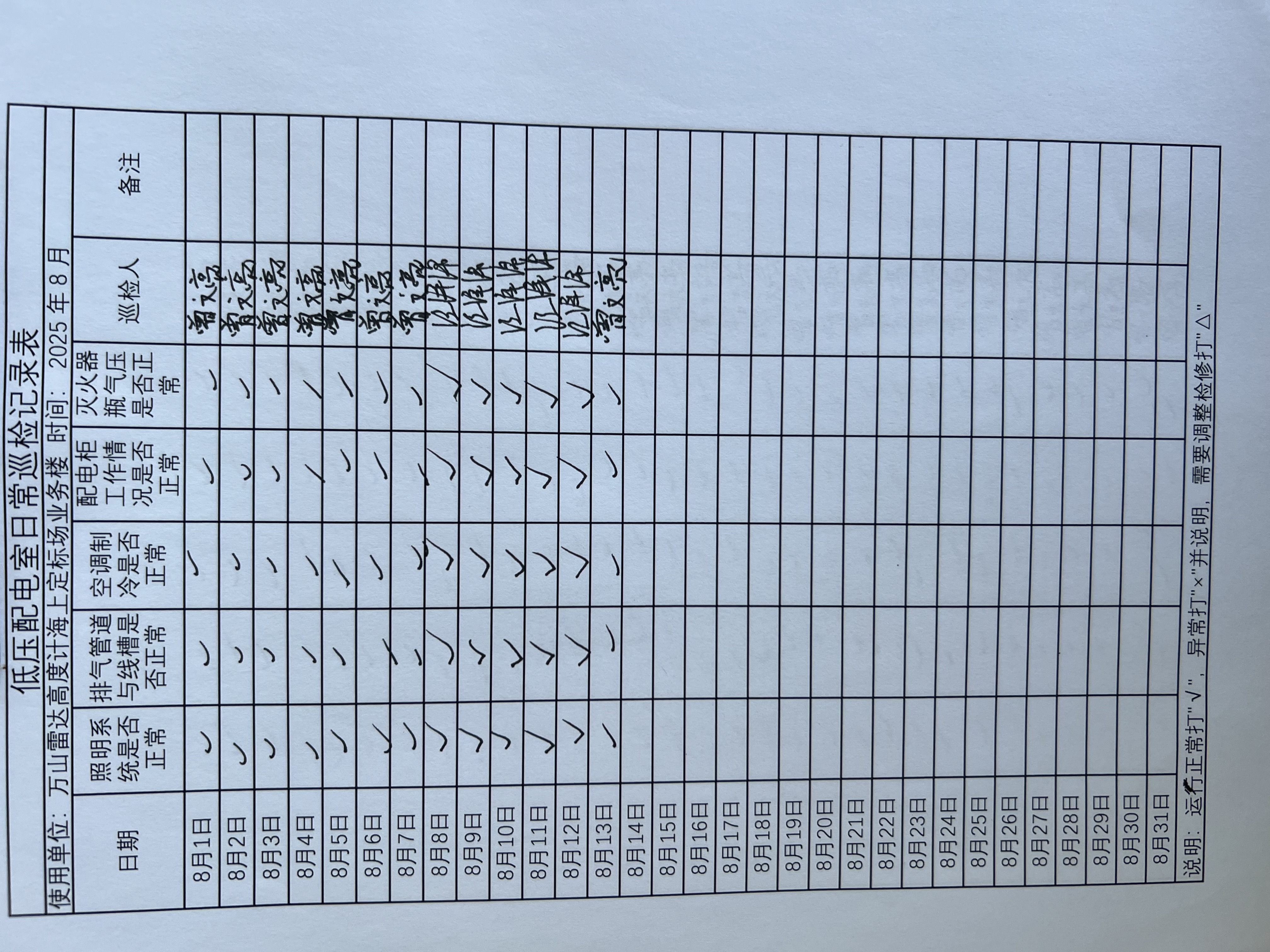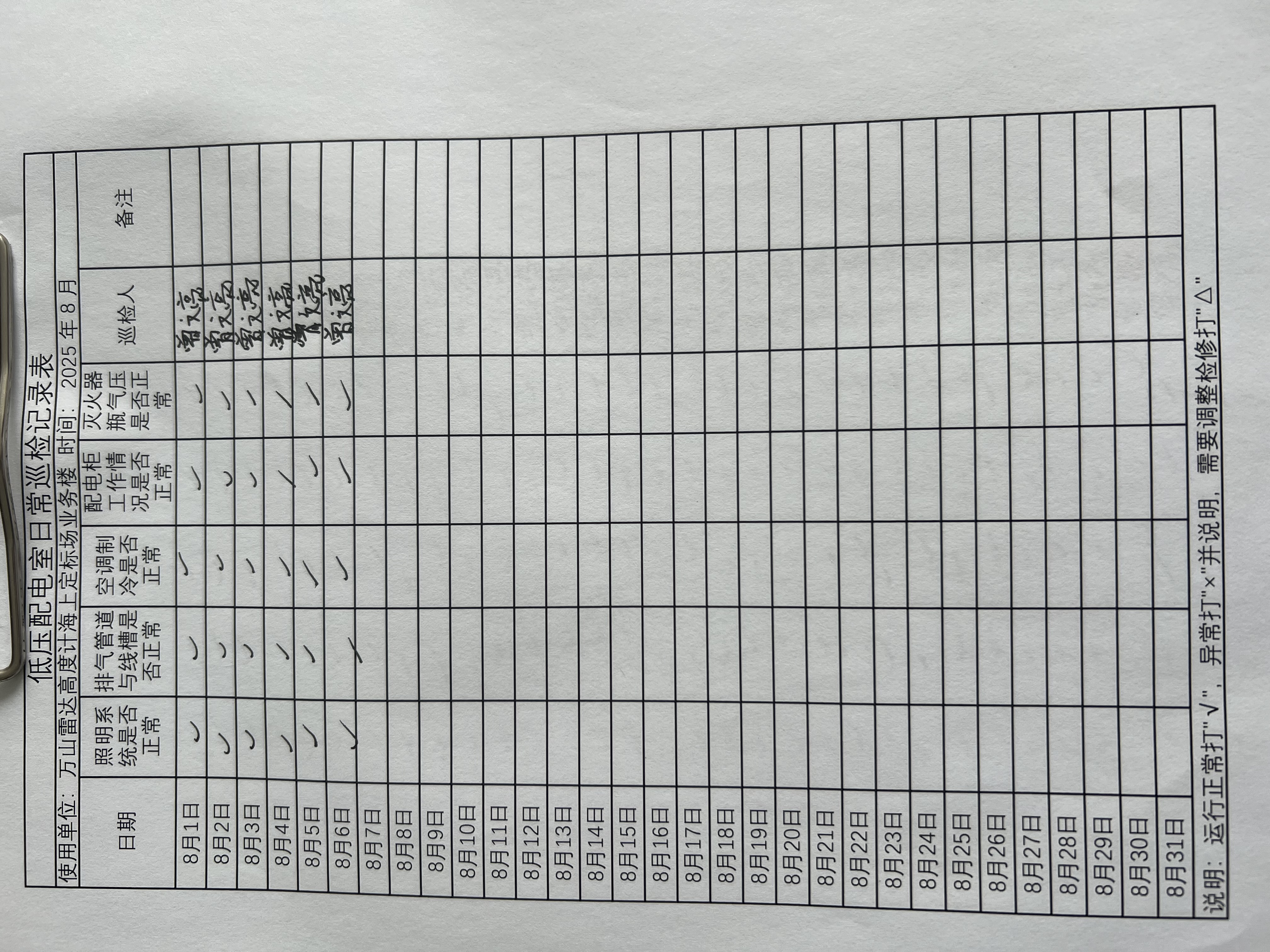 | 记录表-低压配电室日常巡检 | 原图 | 水印1 | 水印2 | 曾文亮 | 工作照 | 2025-09-23 15:40:13 |