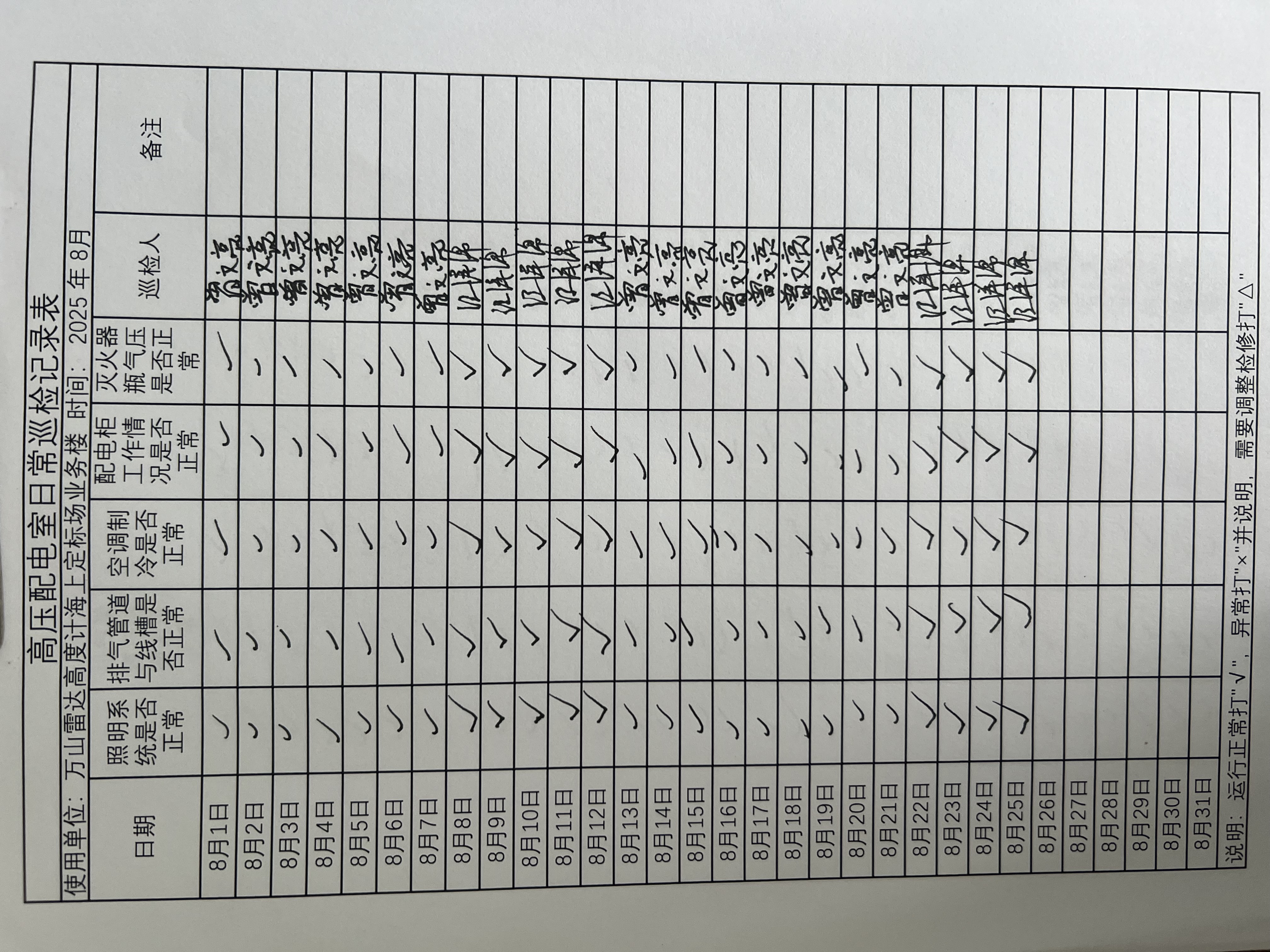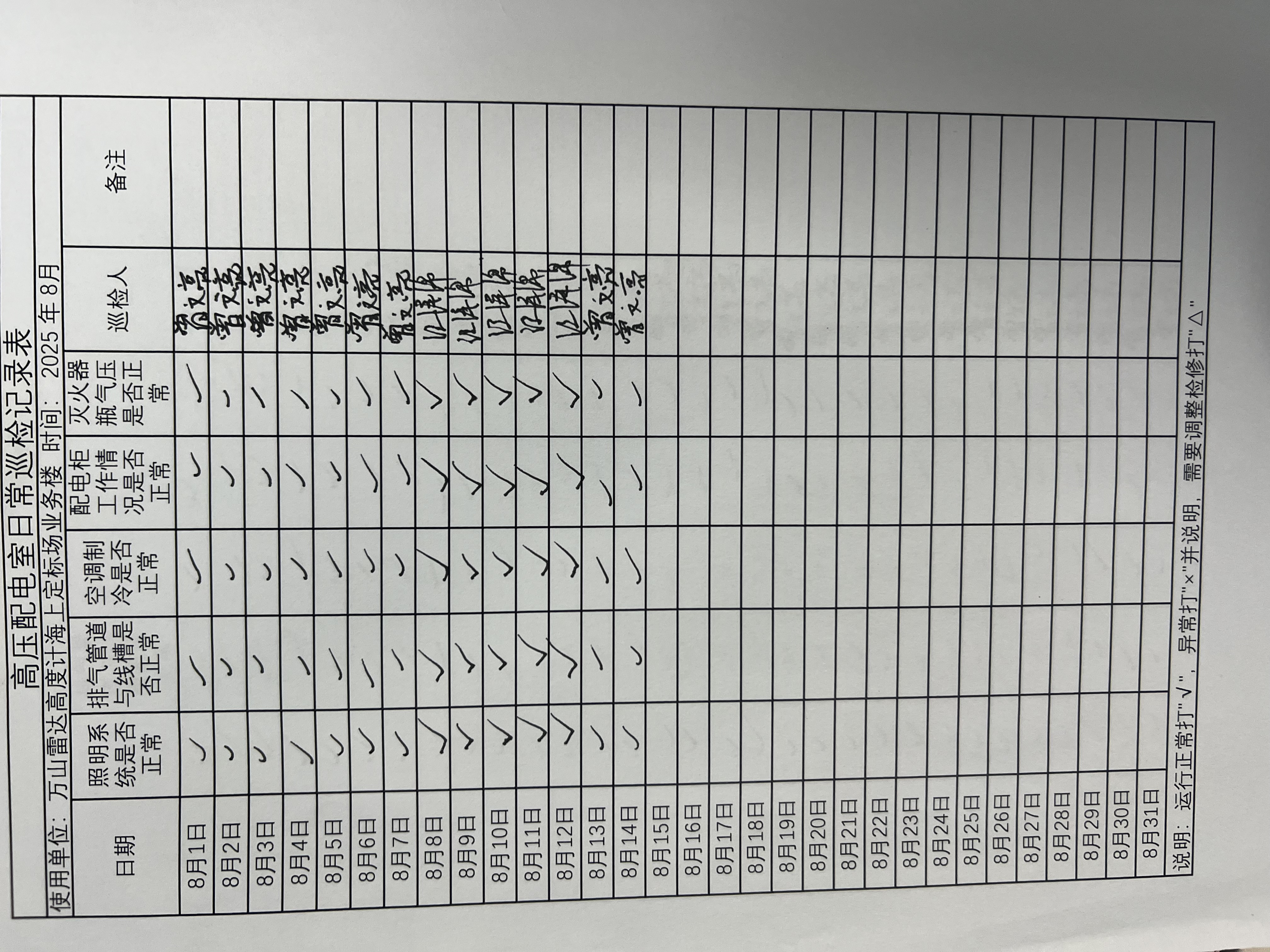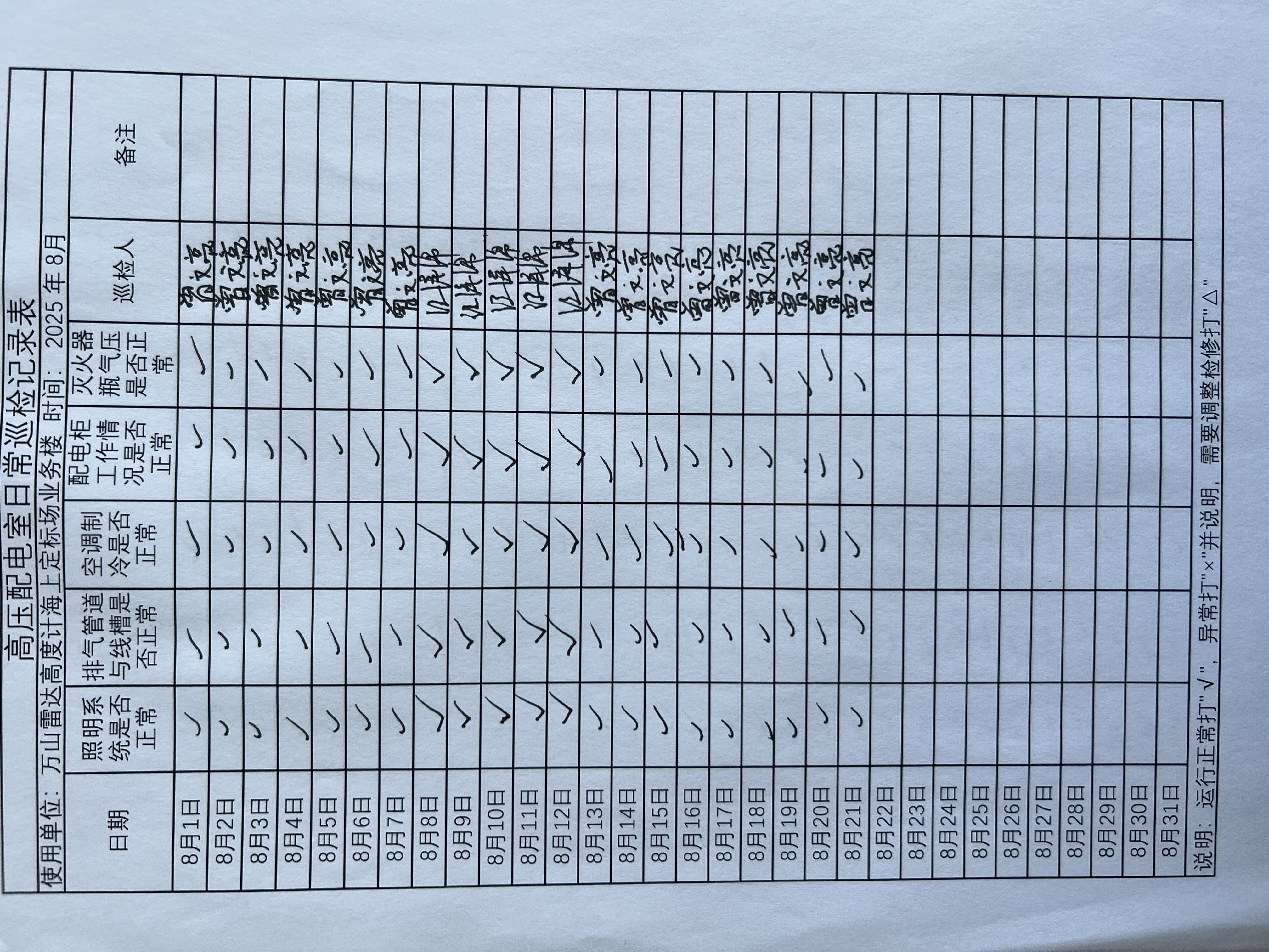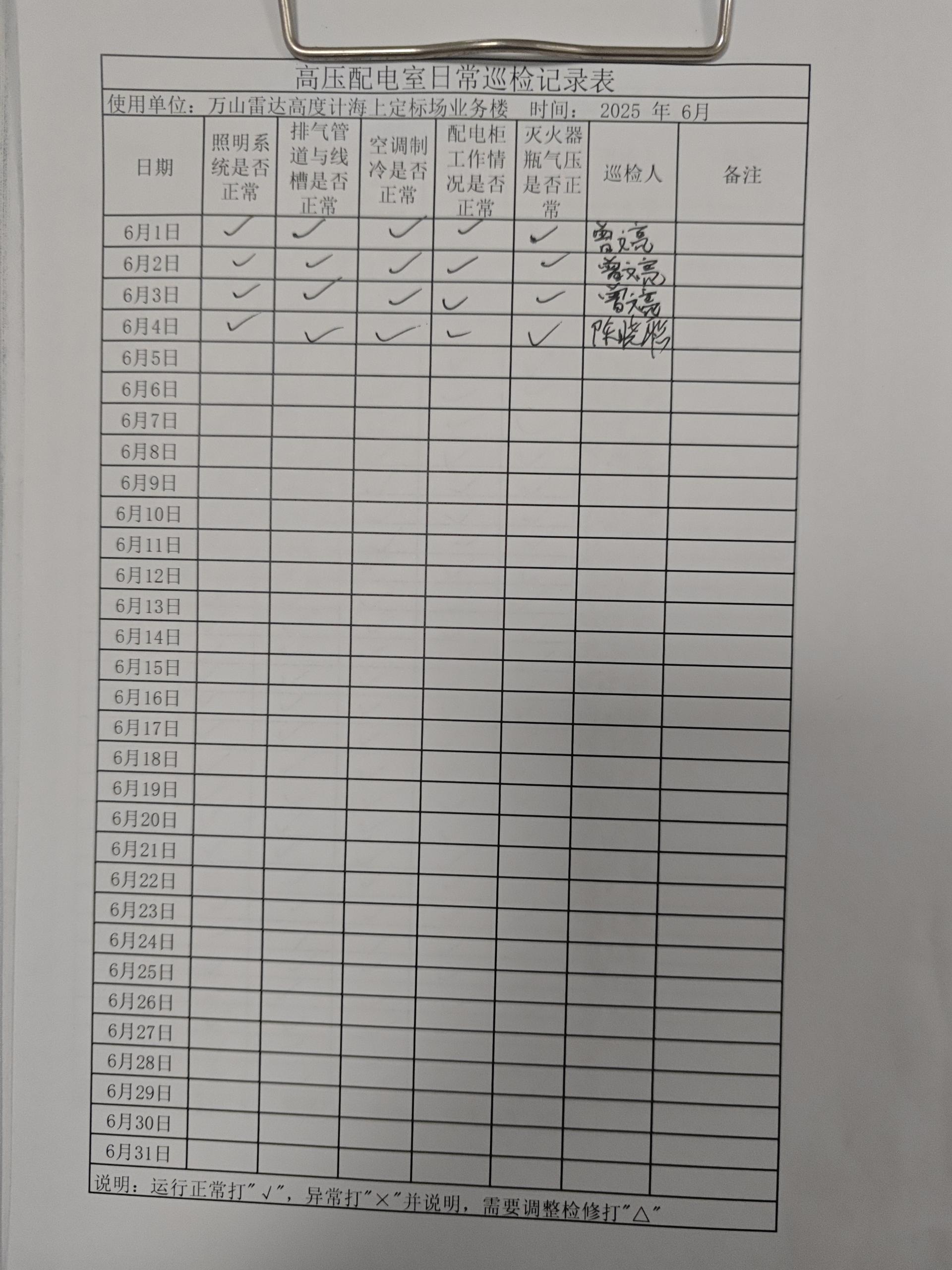 | 记录表-高压配电室日常巡检 | 原图 | 水印1 | 水印2 | 曾文亮 | 工作照 | 2025-09-25 15:35:14 |