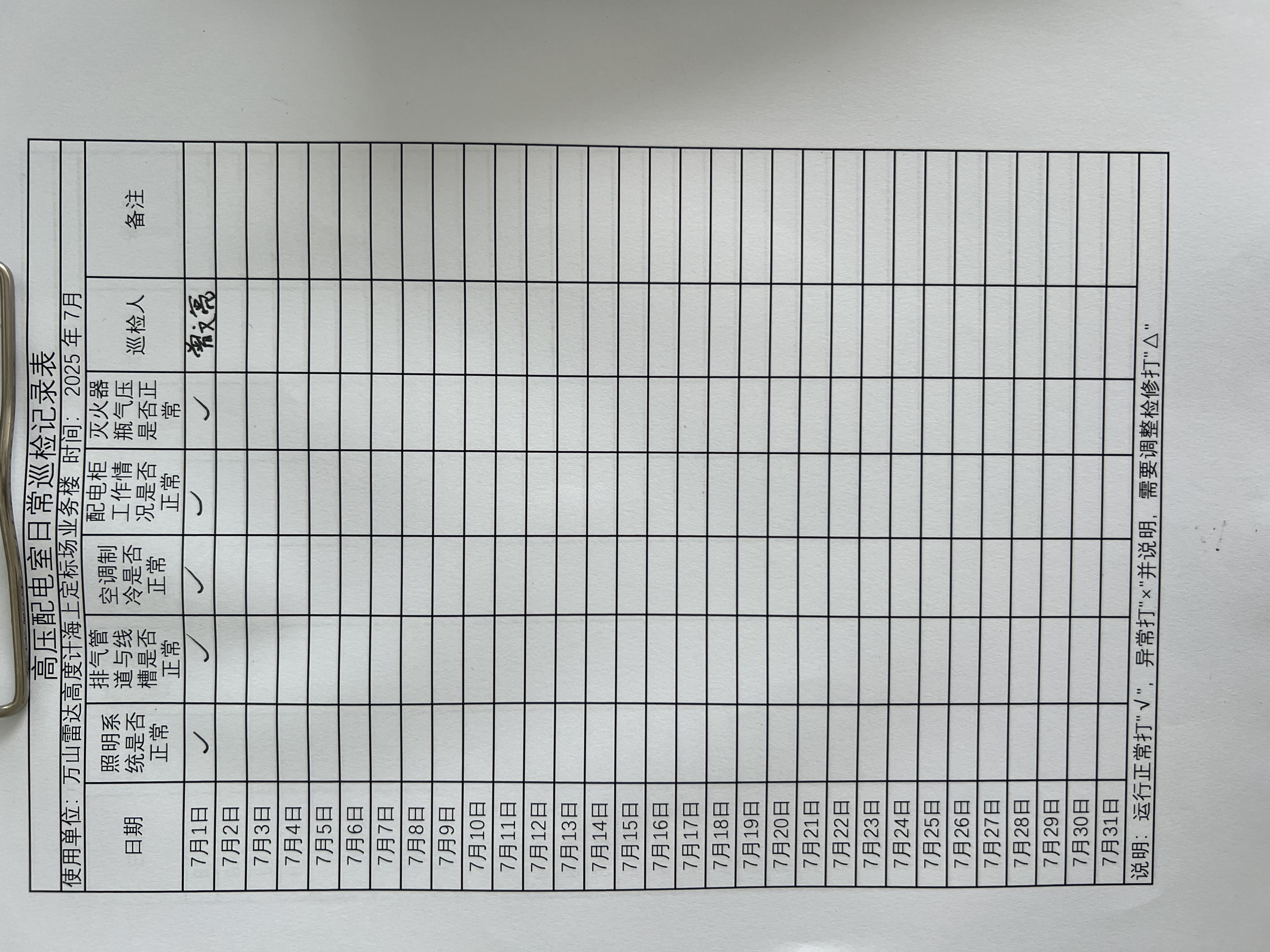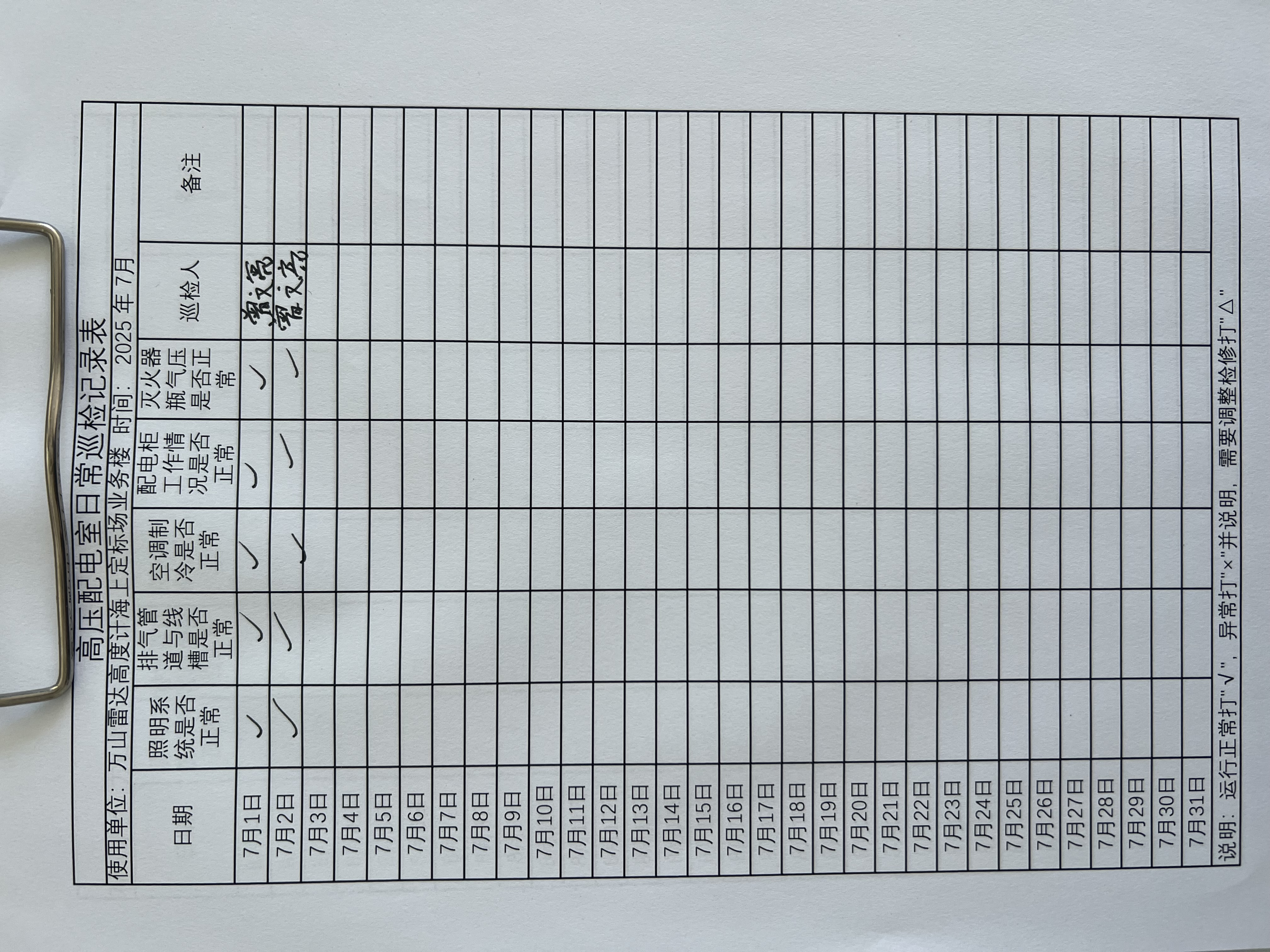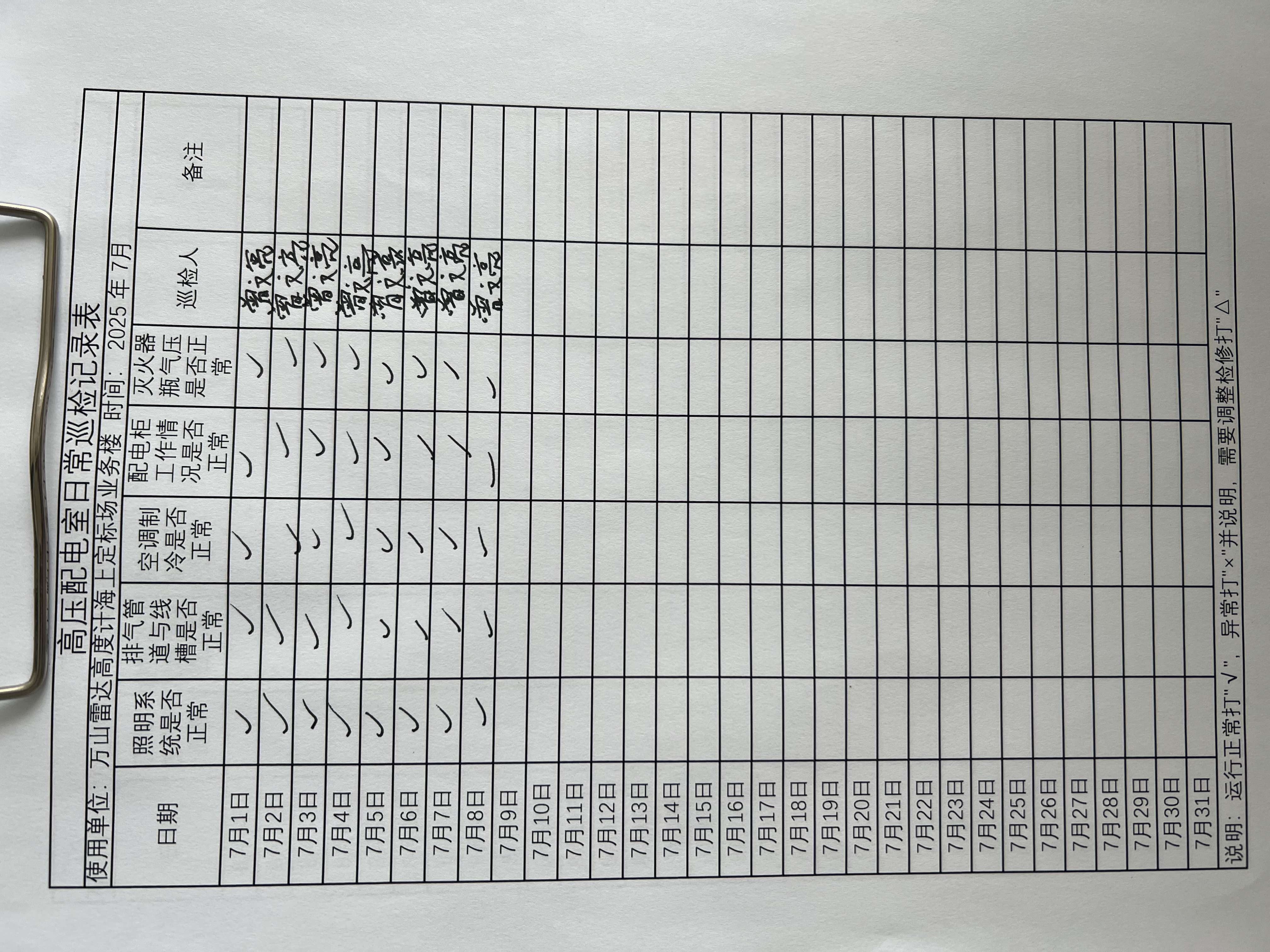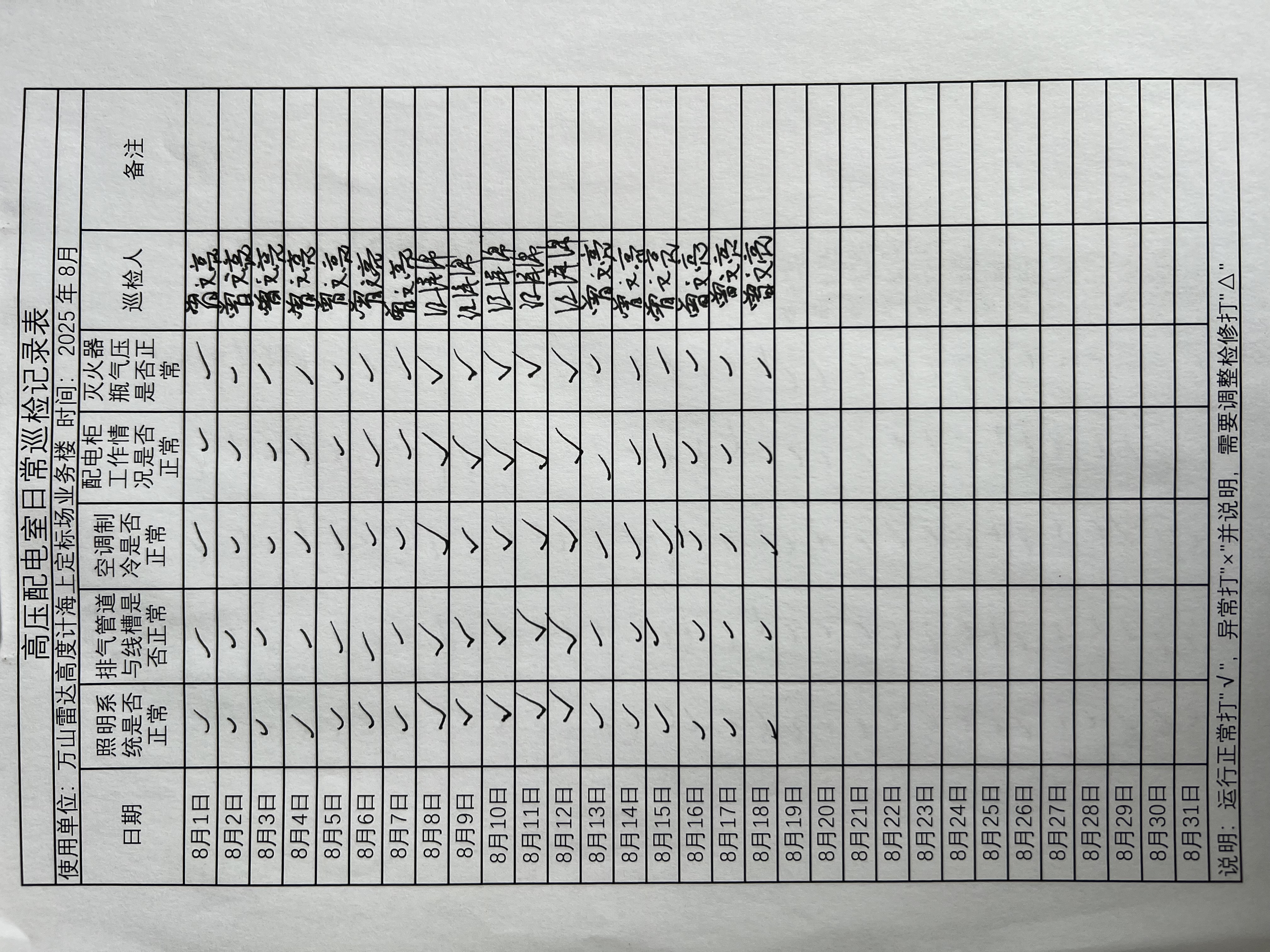 | 记录表-高压配电室日常巡检 | 原图 | 水印1 | 水印2 | 曾文亮 | 工作照 | 2025-09-25 15:35:14 |