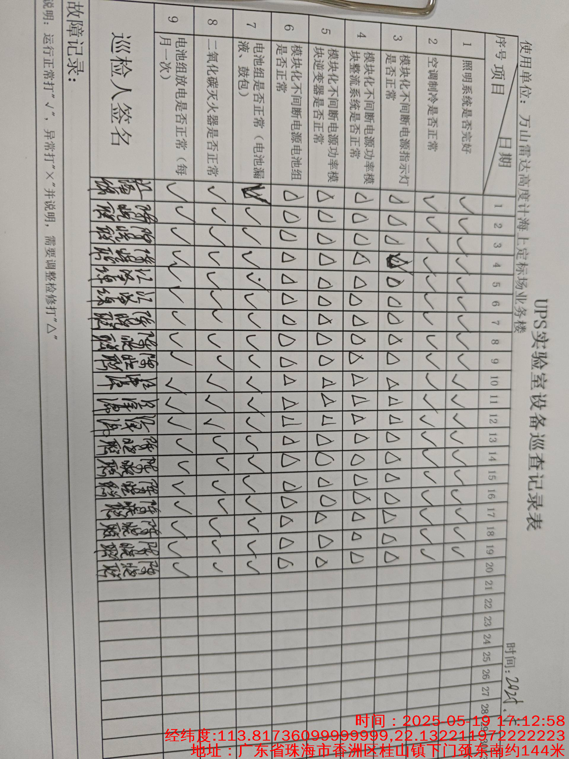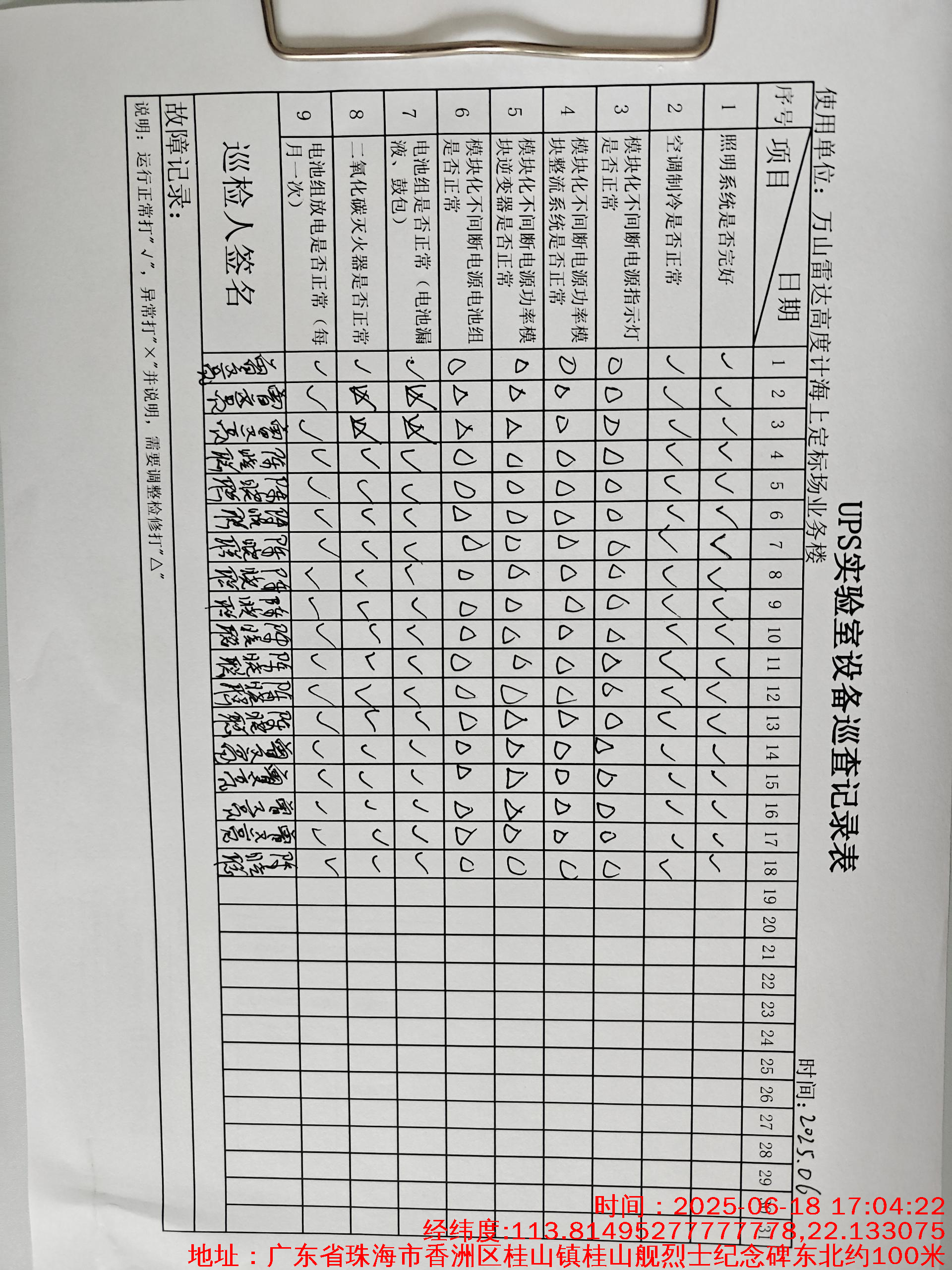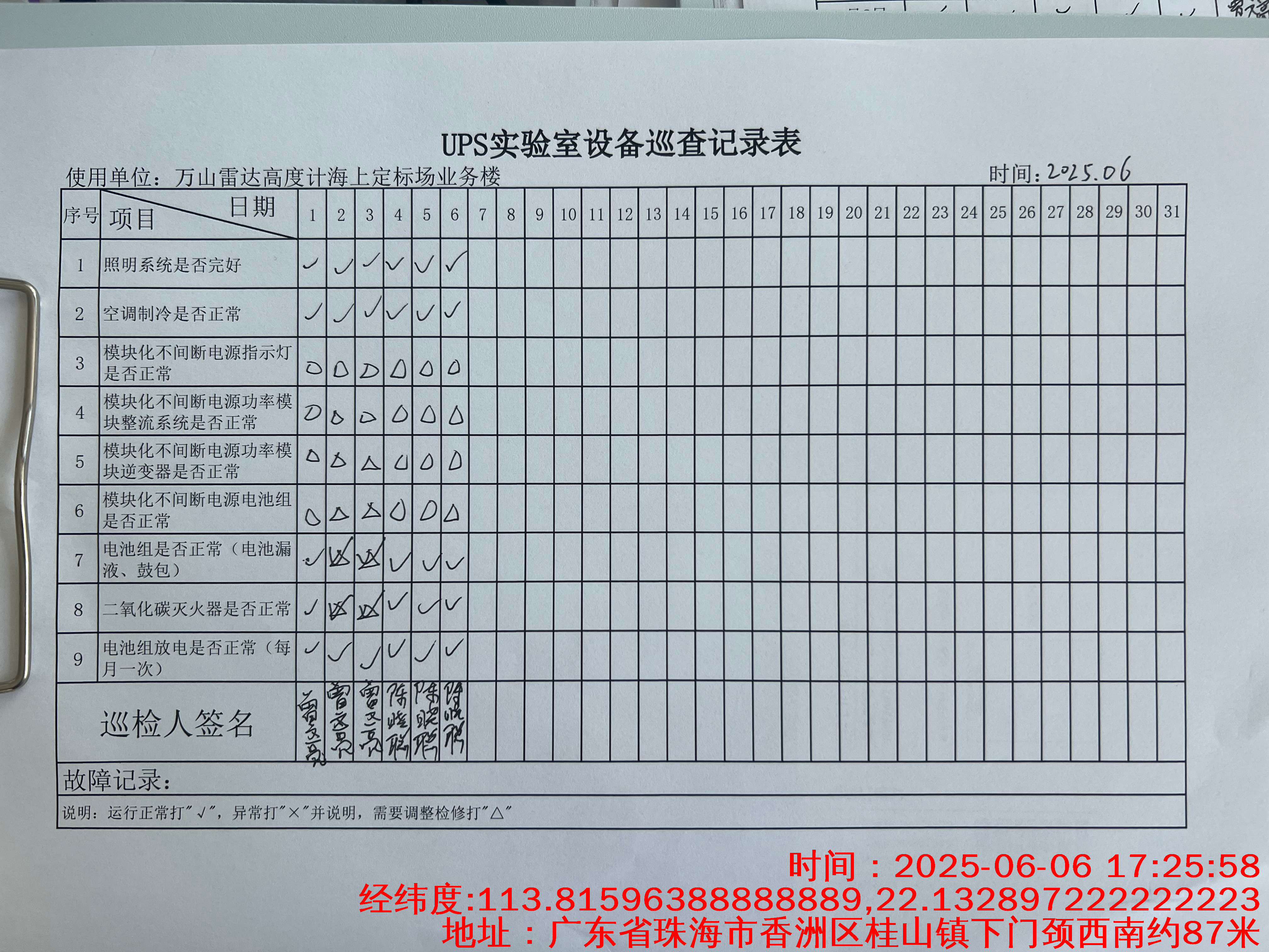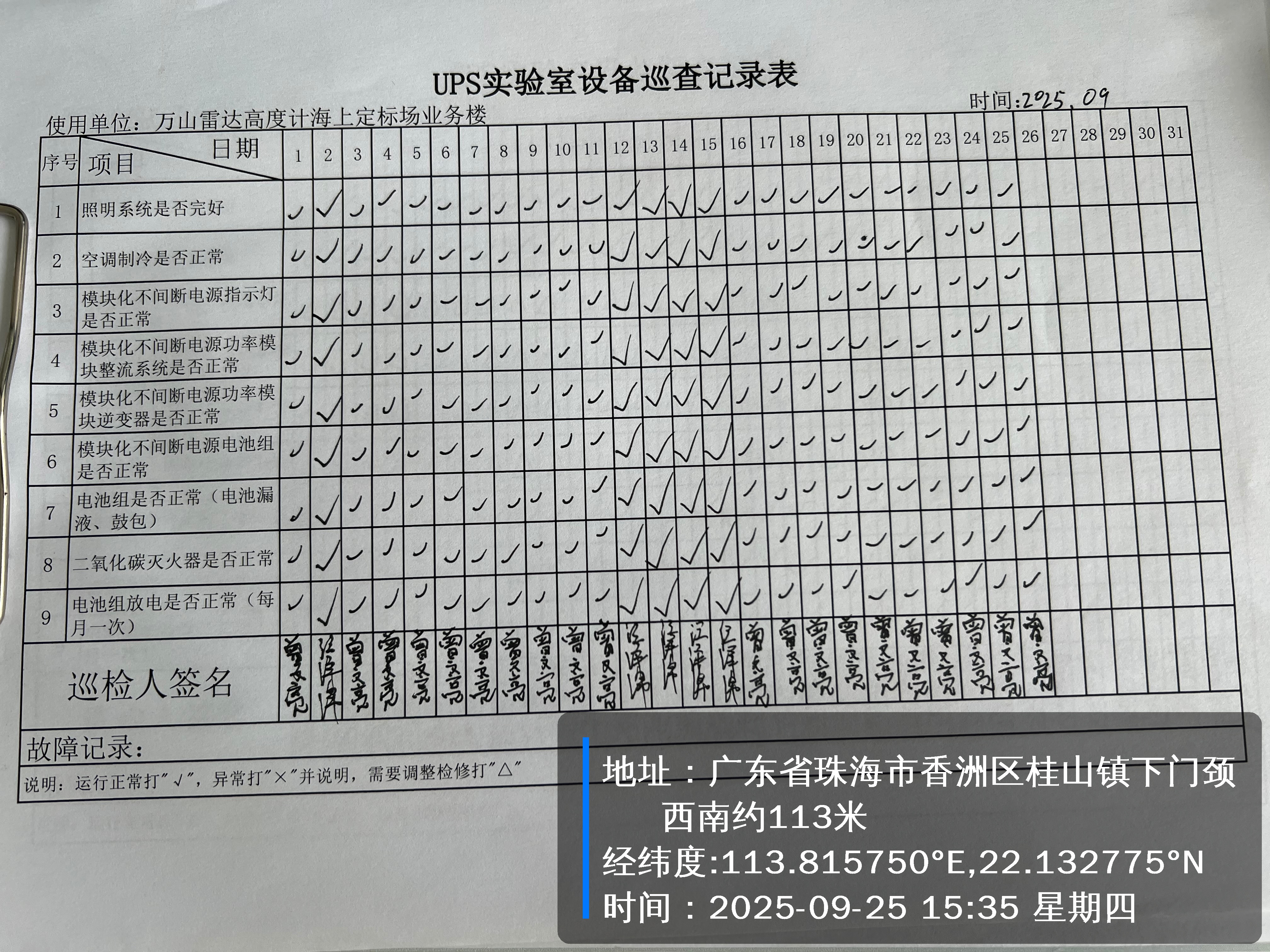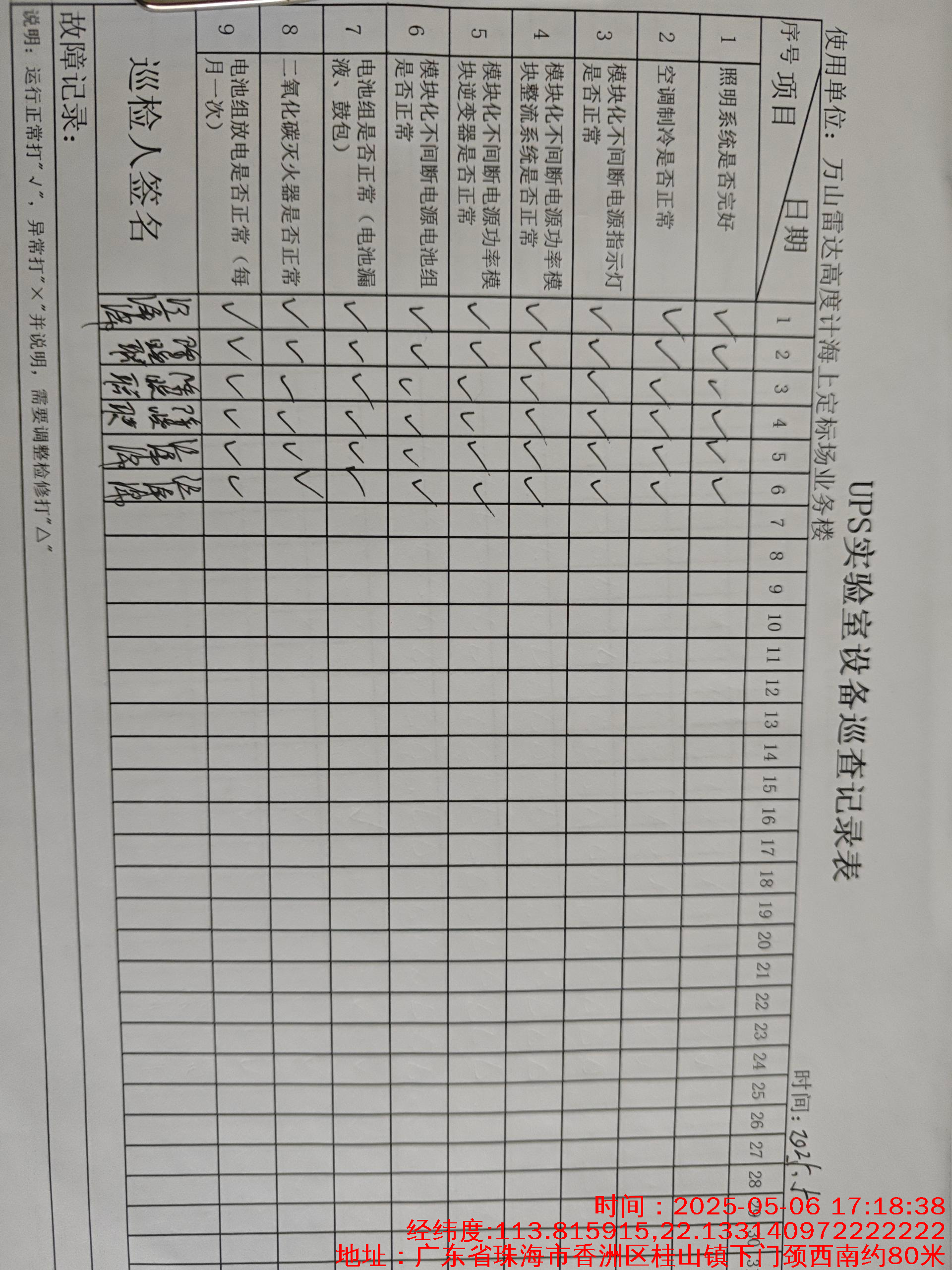 | 记录表-UPS实验室设备巡查 | 原图 | 水印1 | 水印2 | 曾文亮 | 工作照 | 2025-09-25 15:35:31 |