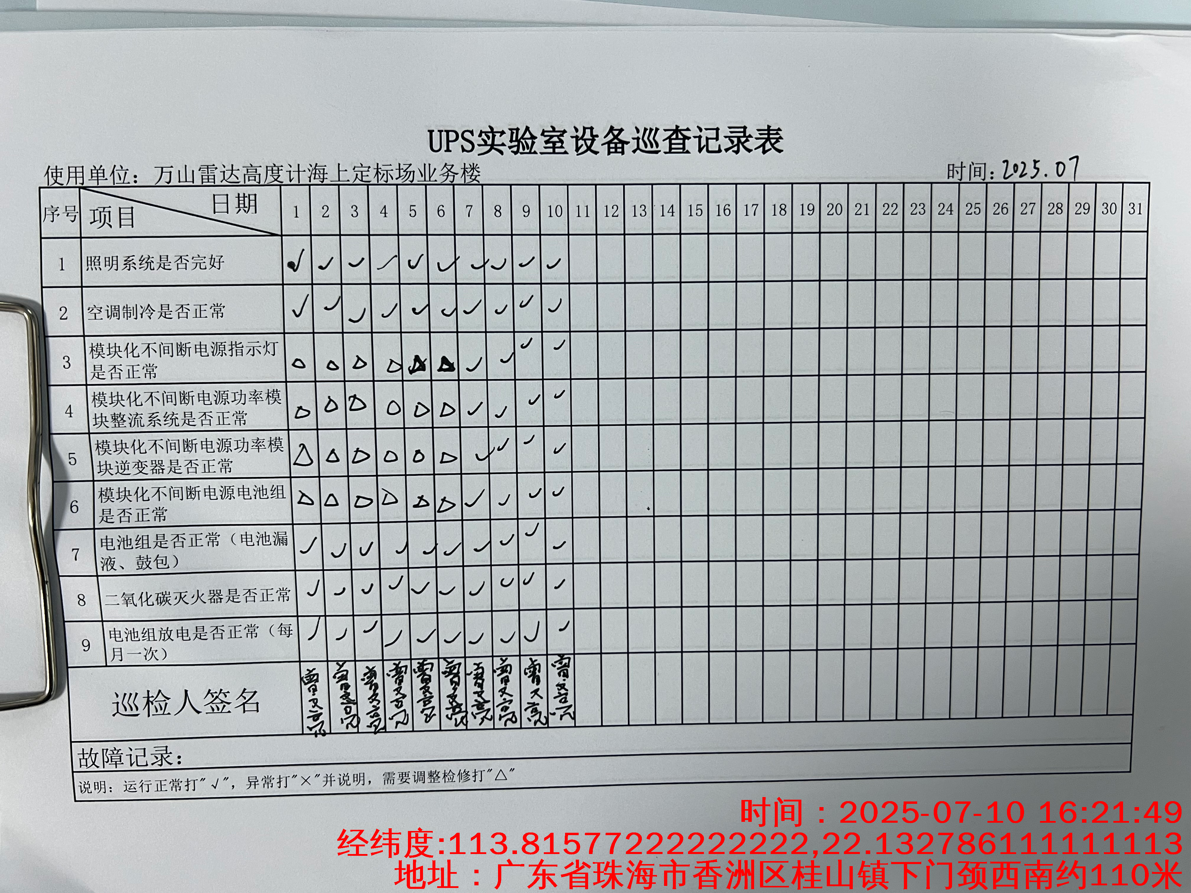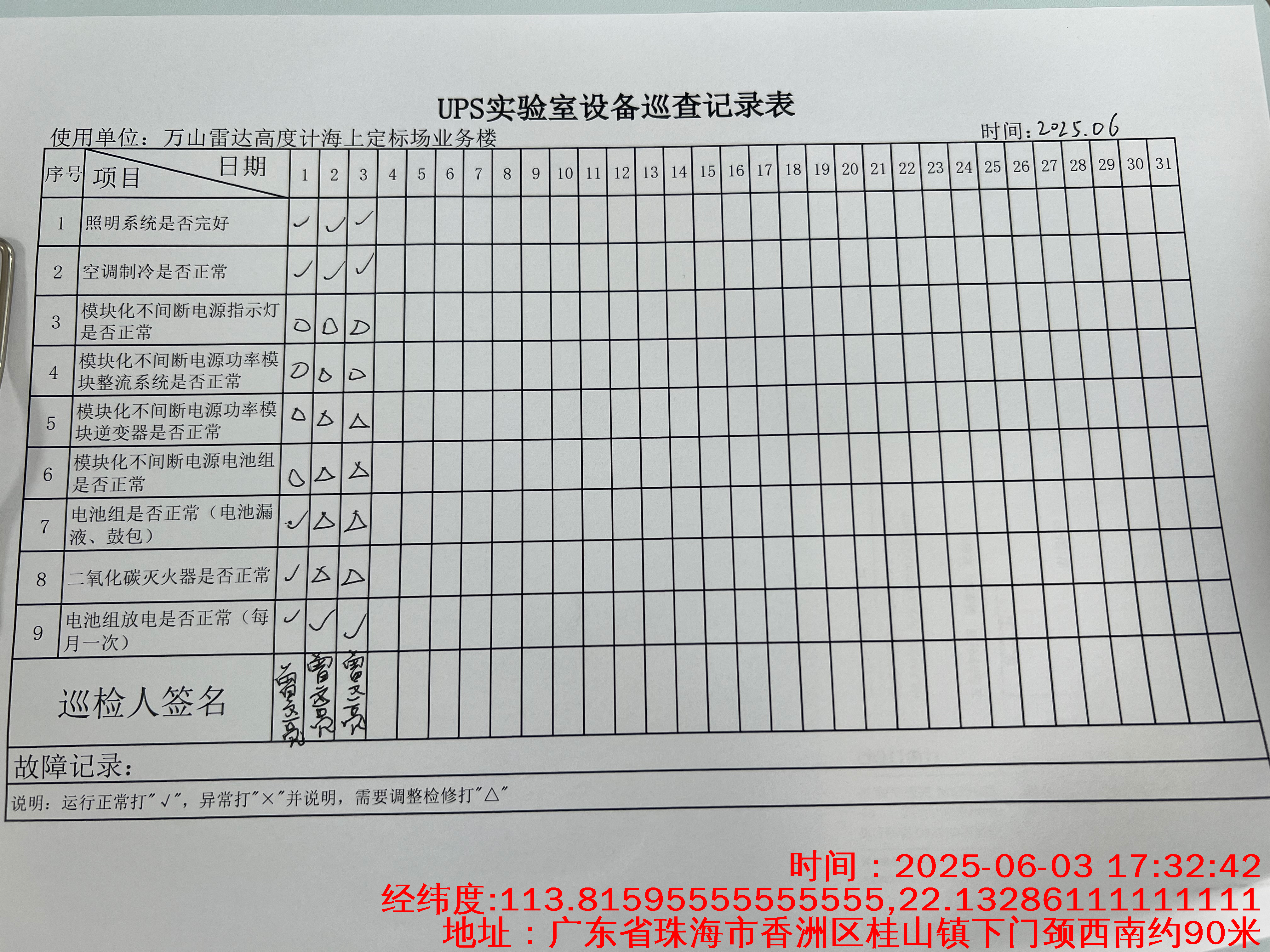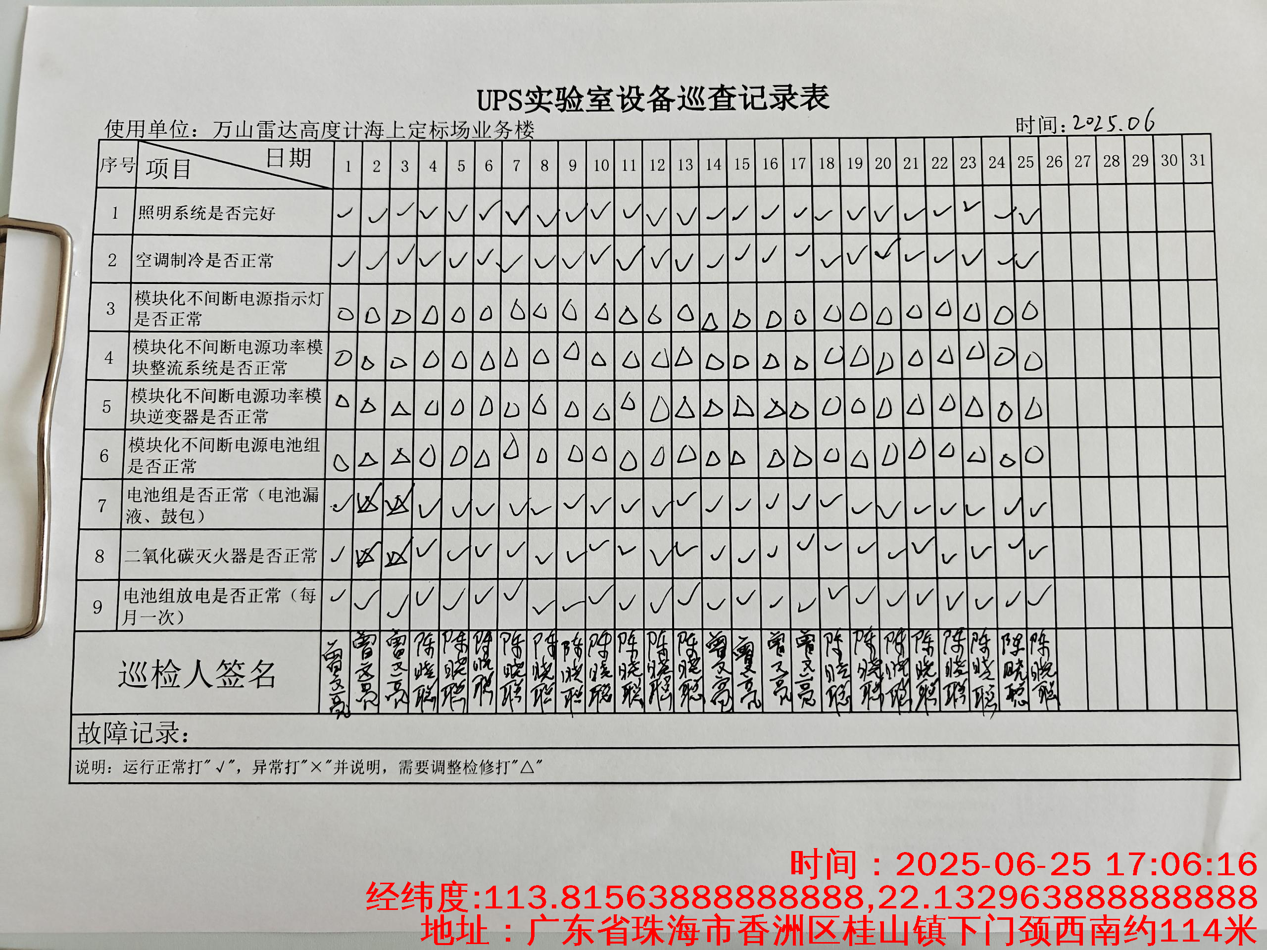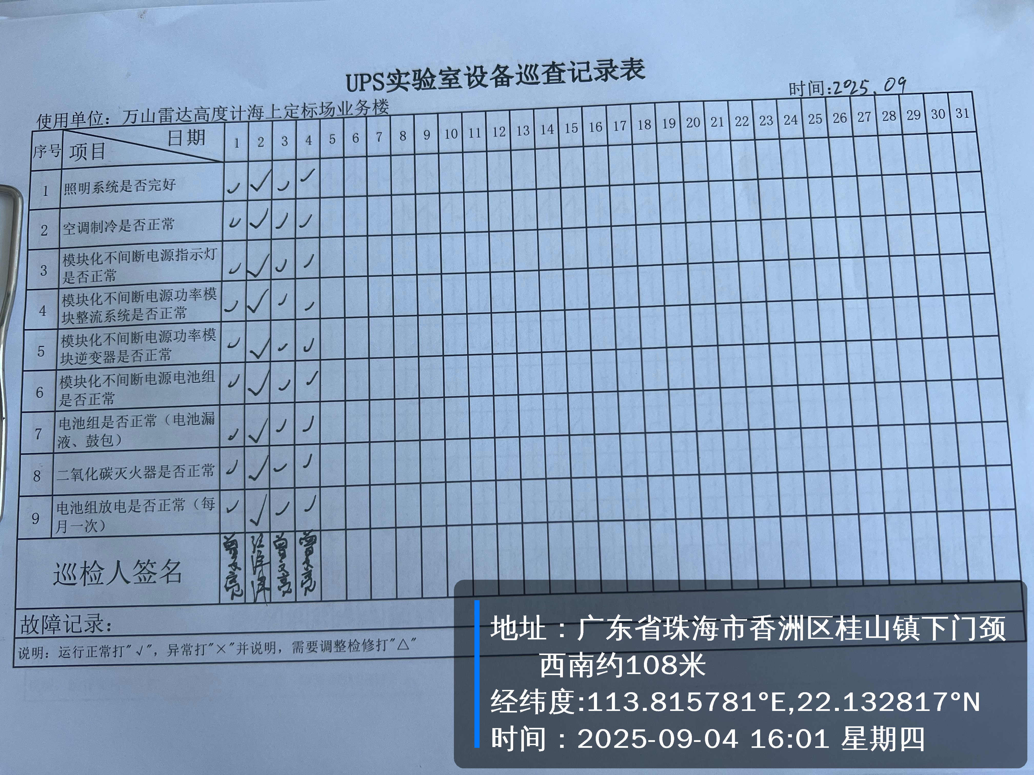 | 记录表-UPS实验室设备巡查 | 原图 | 水印1 | 水印2 | 曾文亮 | 工作照 | 2025-09-25 15:35:31 |