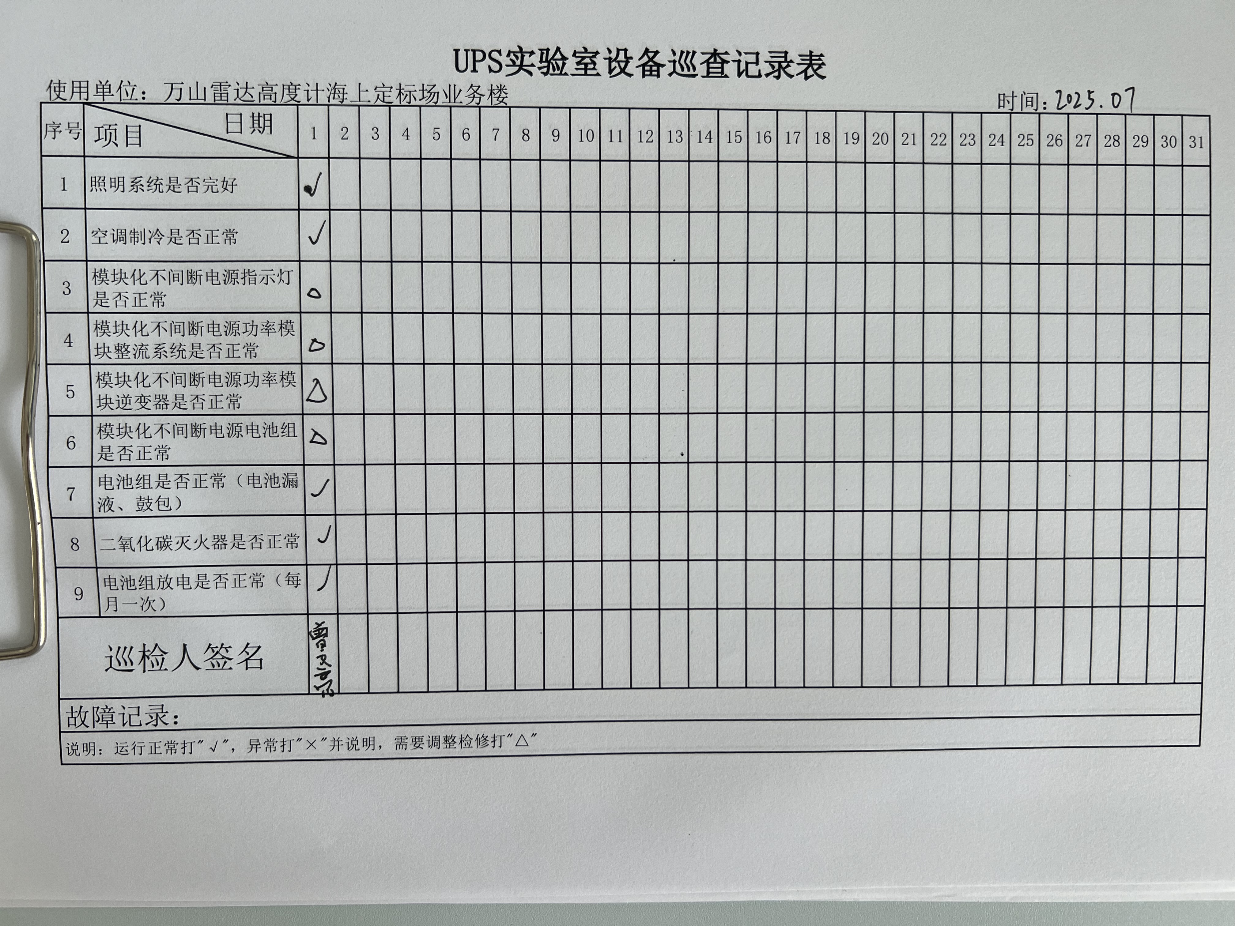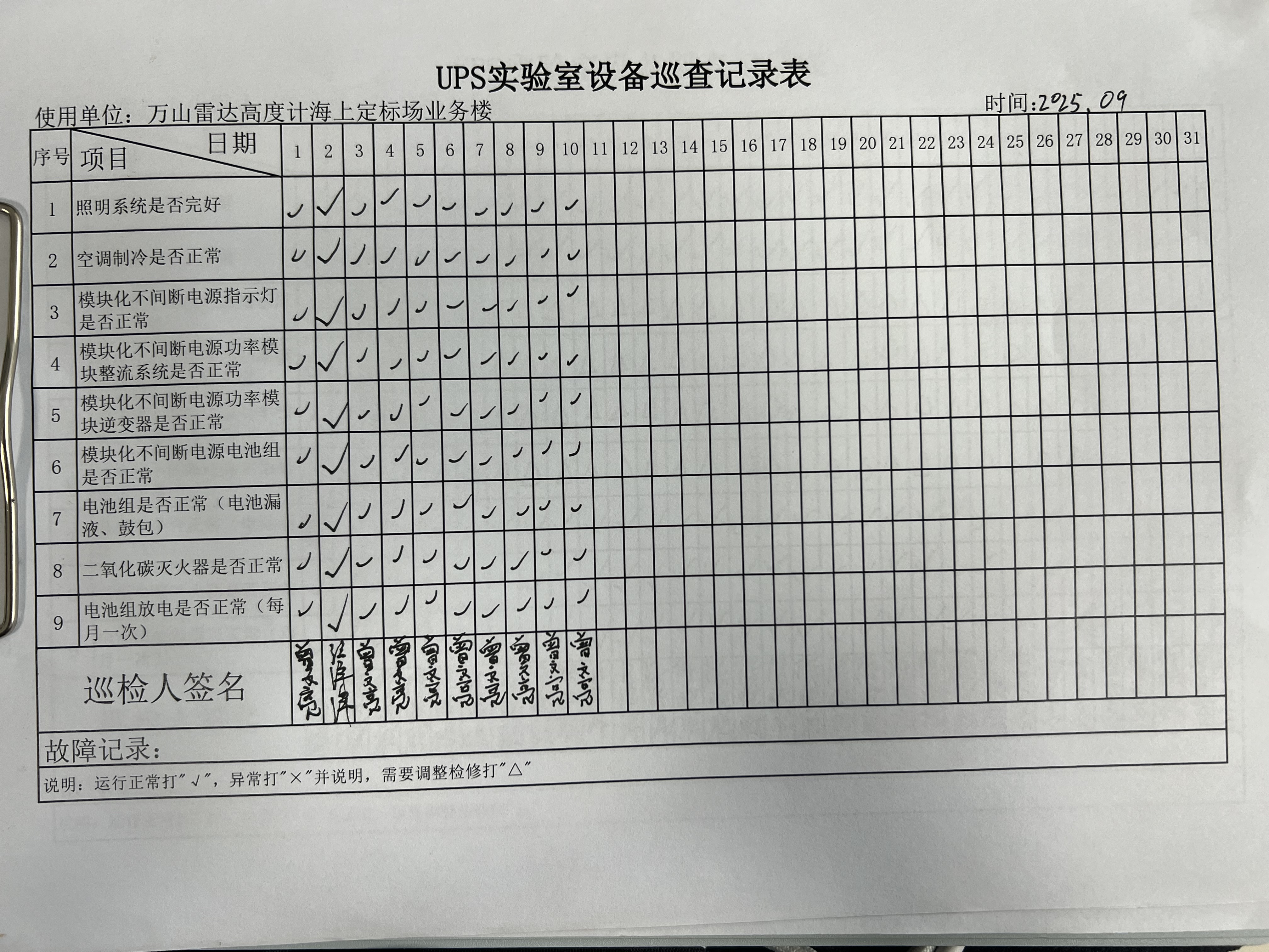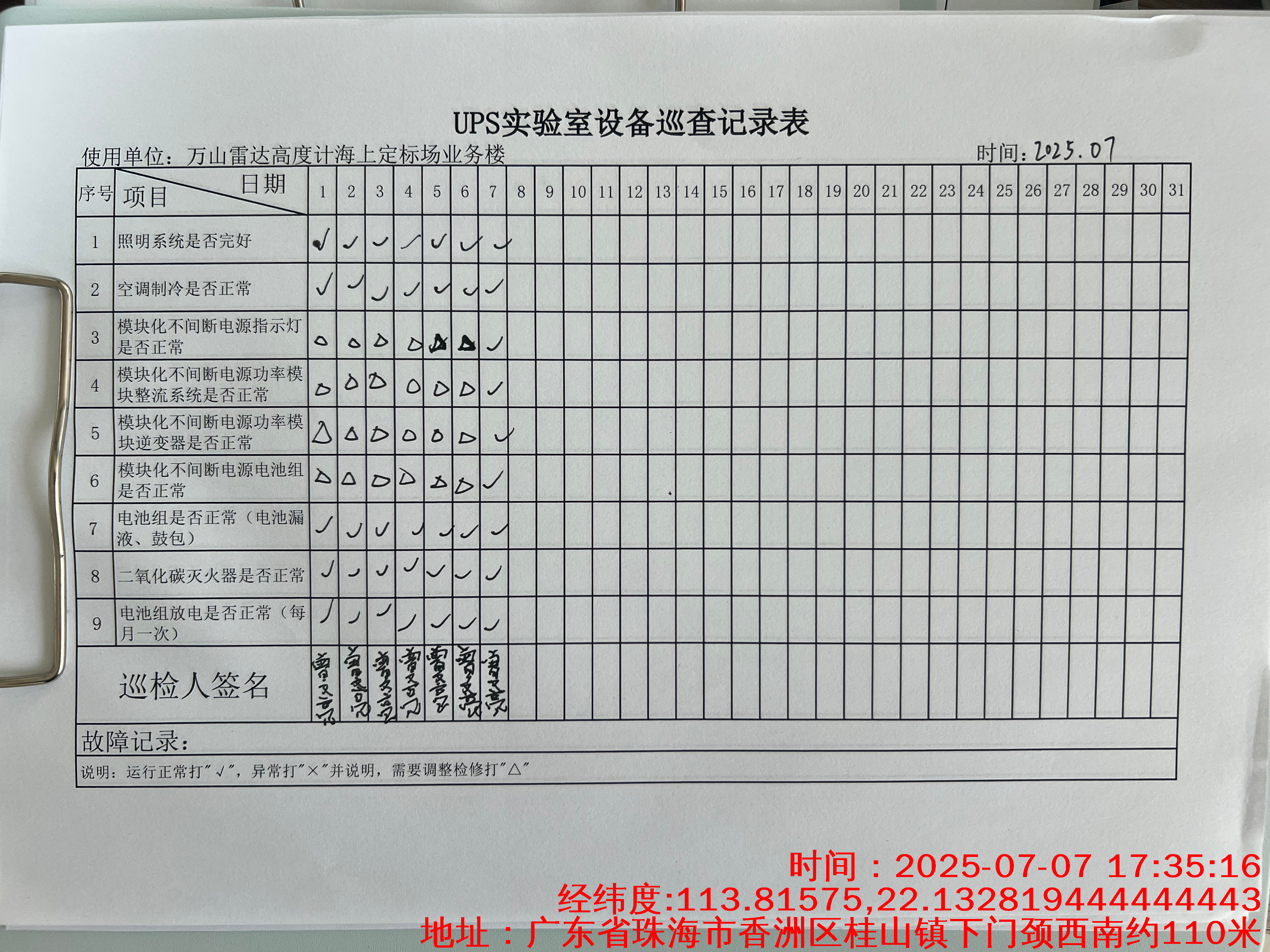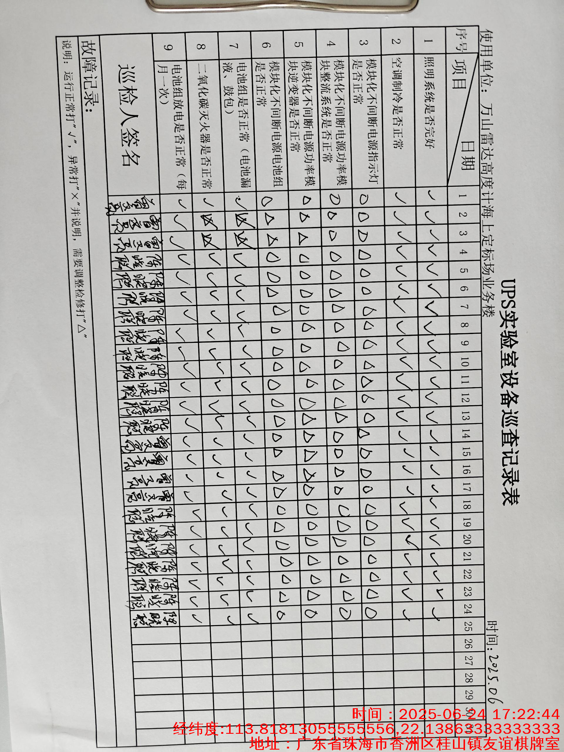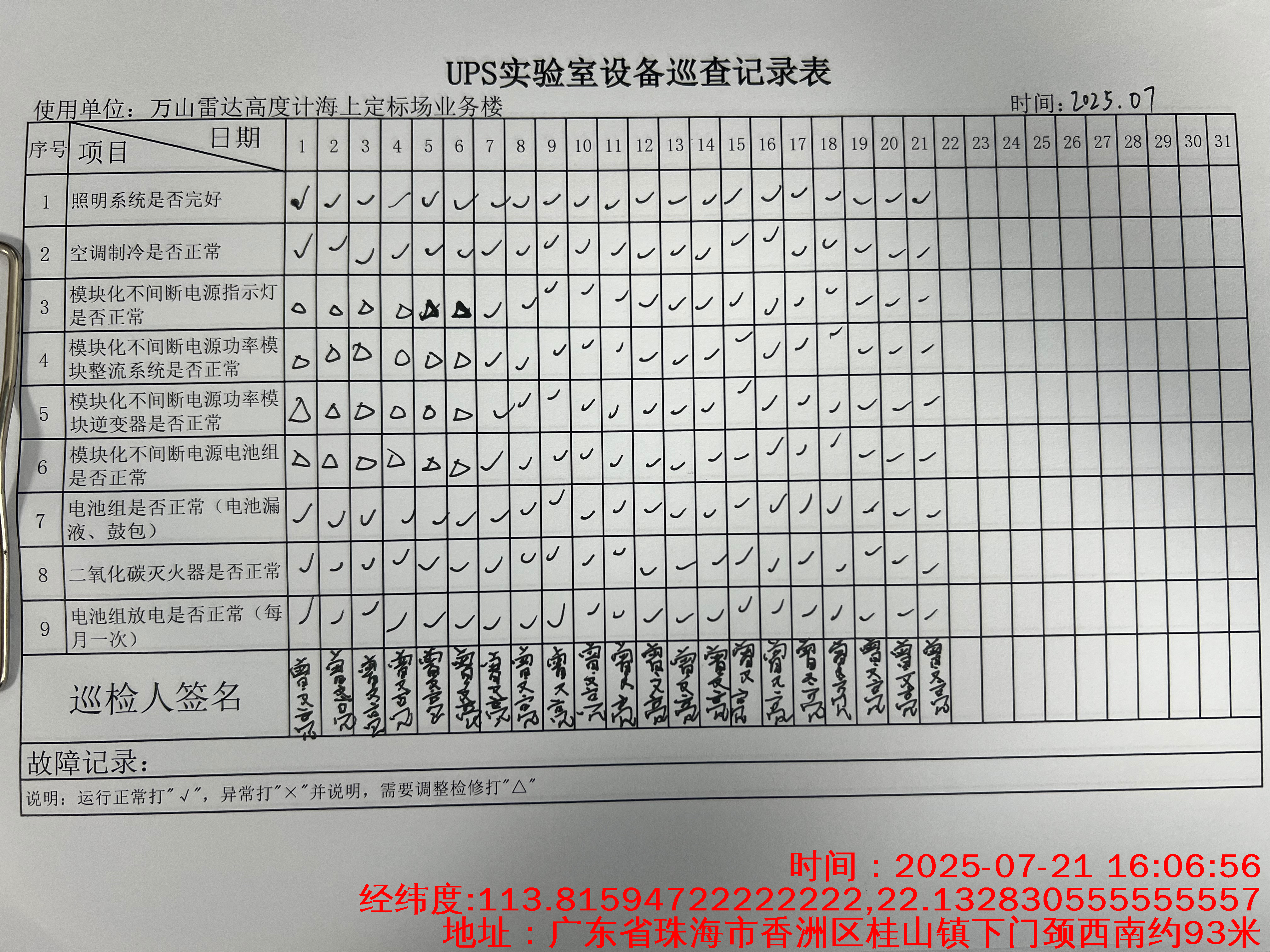 | 记录表-UPS实验室设备巡查 | 原图 | 水印1 | 水印2 | 曾文亮 | 工作照 | 2025-09-25 15:35:31 |