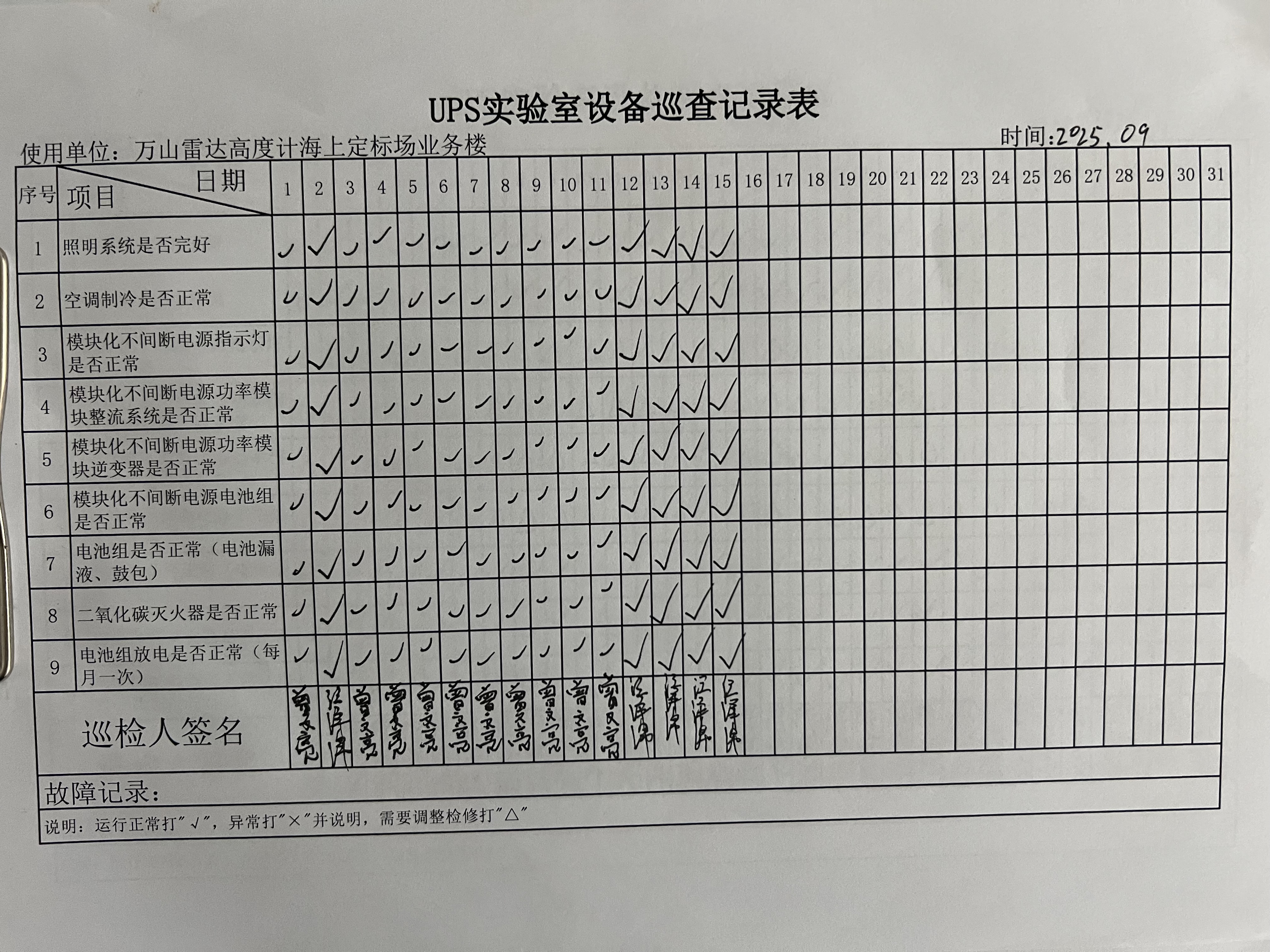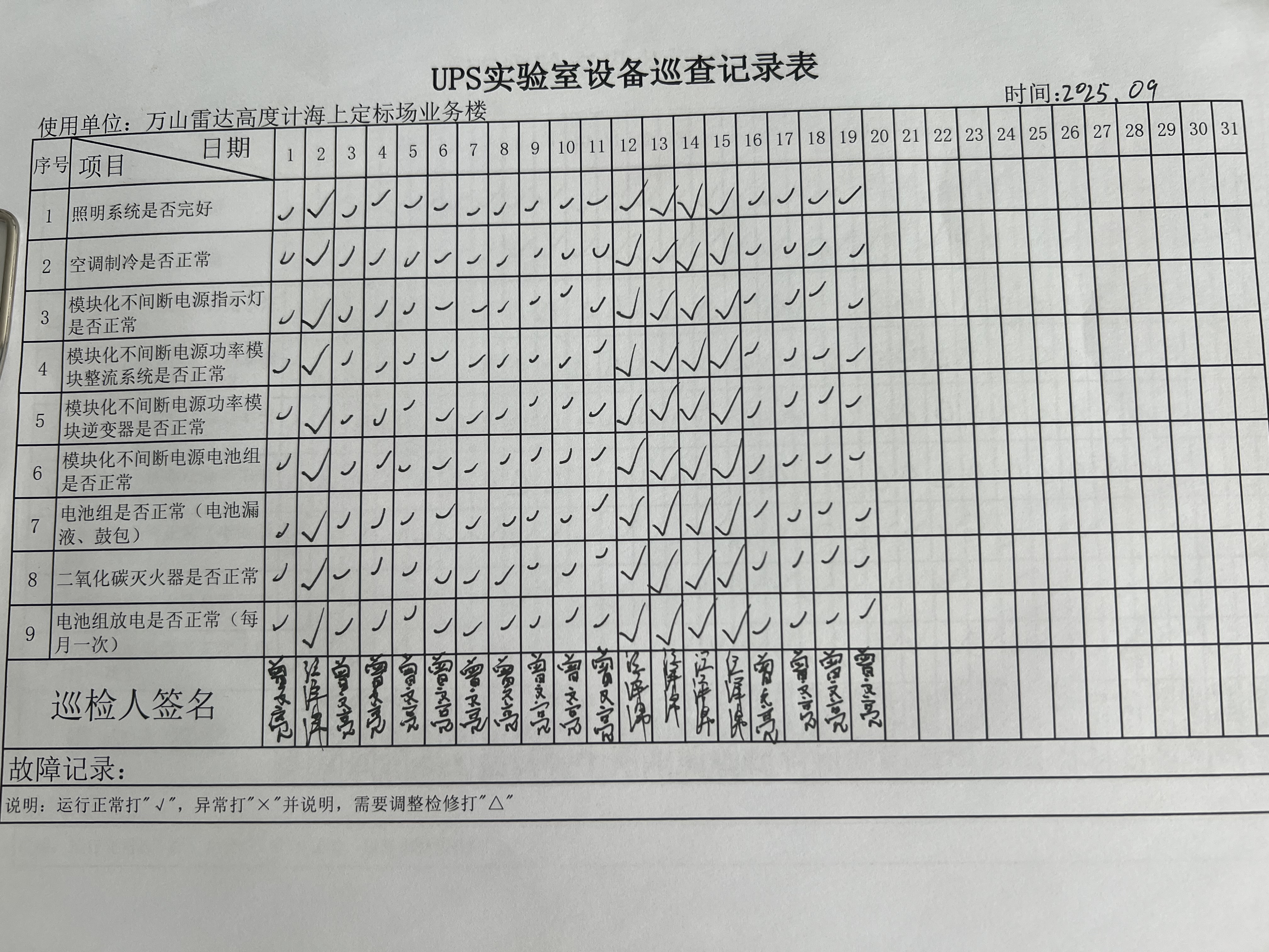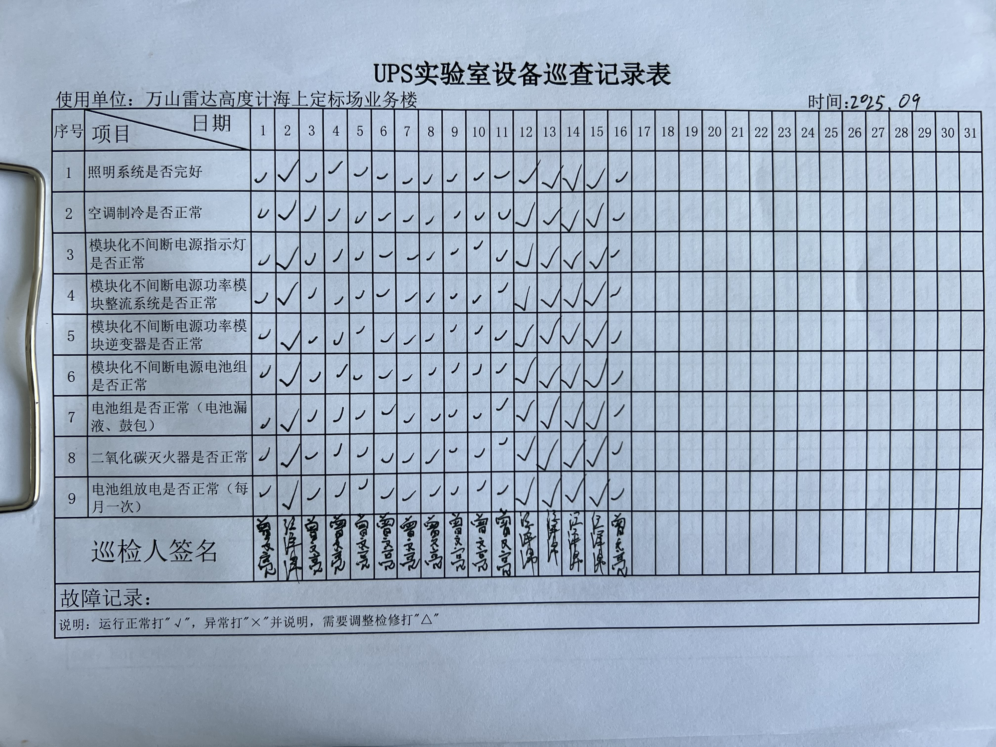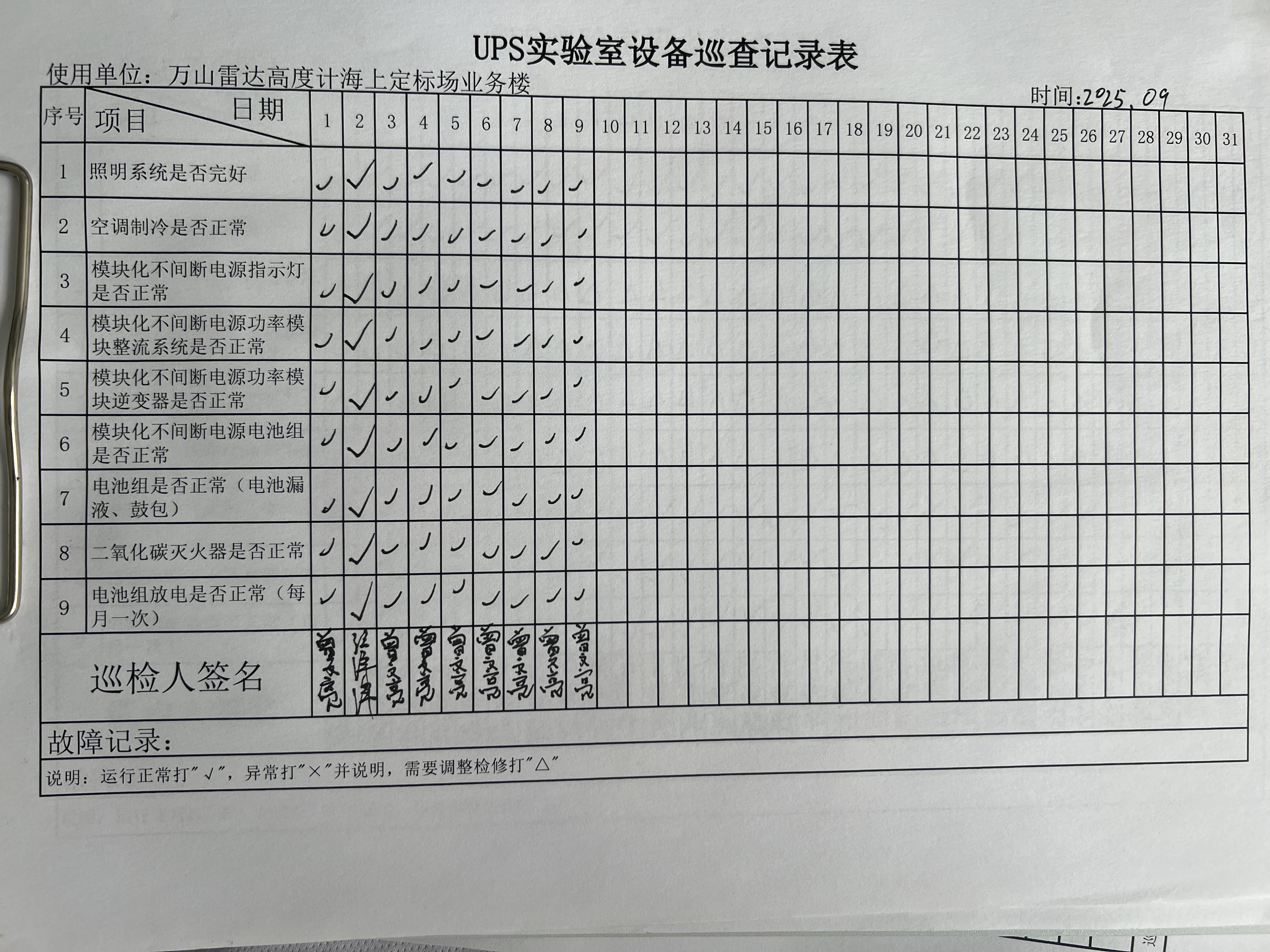 | 记录表-UPS实验室设备巡查 | 原图 | 水印1 | 水印2 | 曾文亮 | 工作照 | 2025-09-25 15:35:31 |