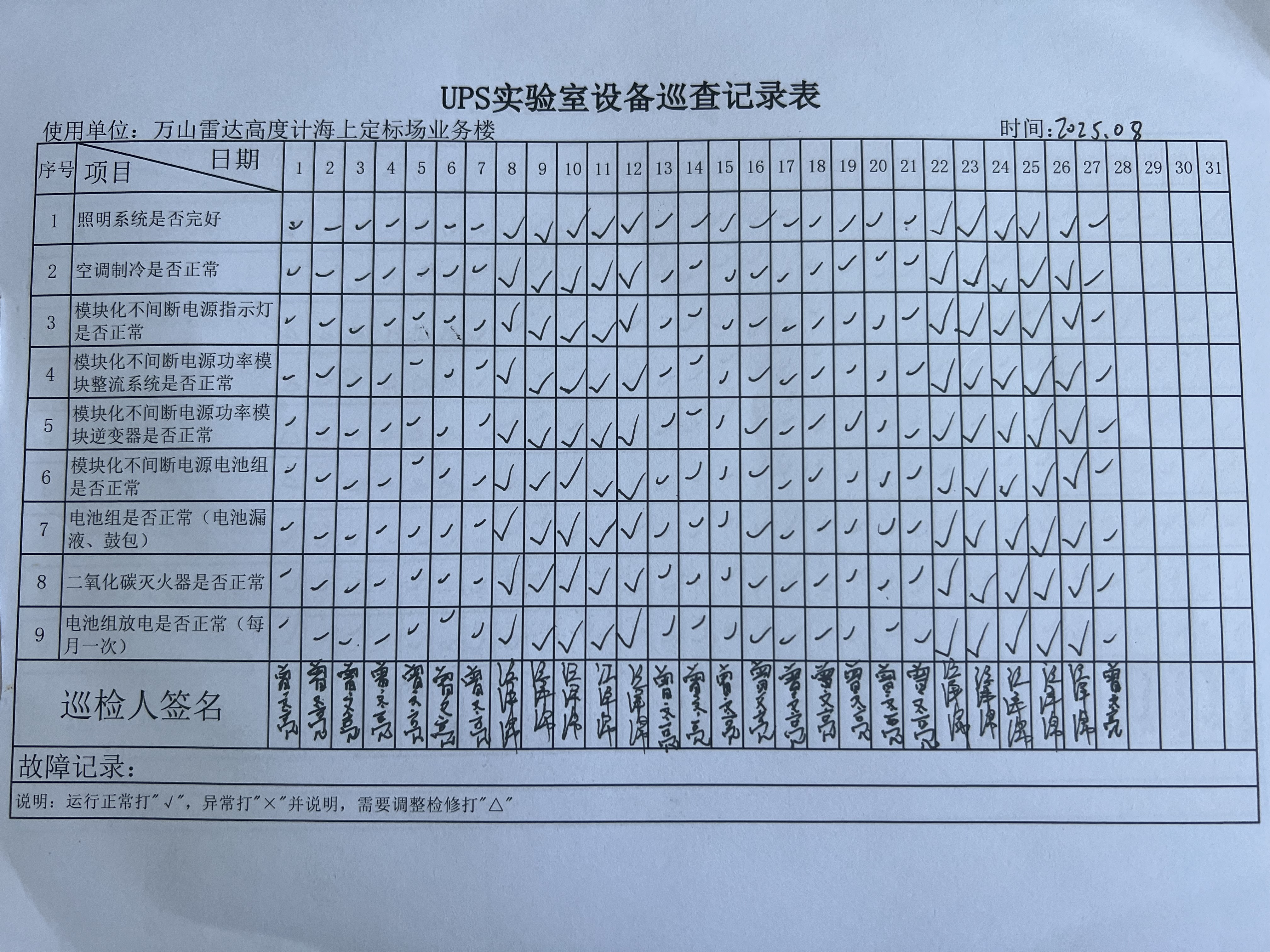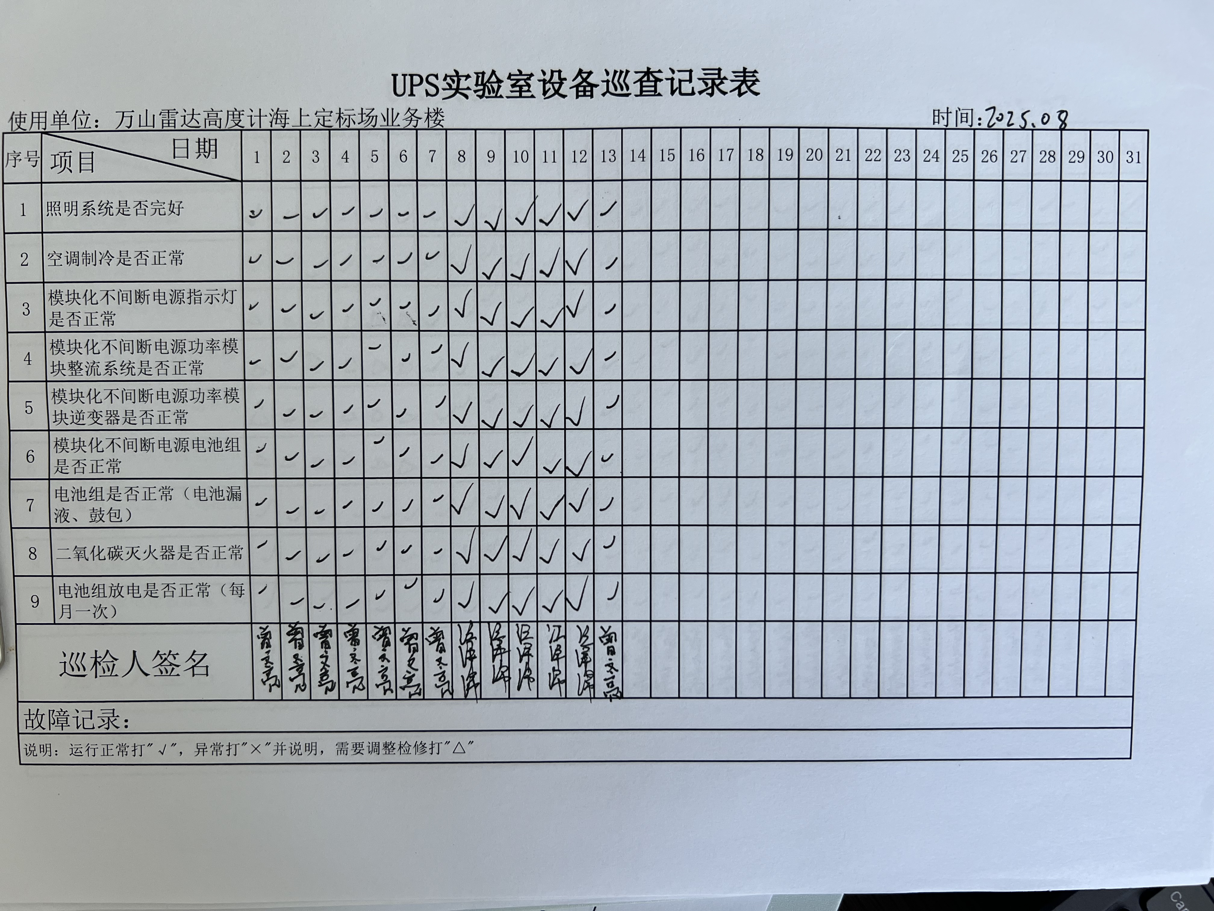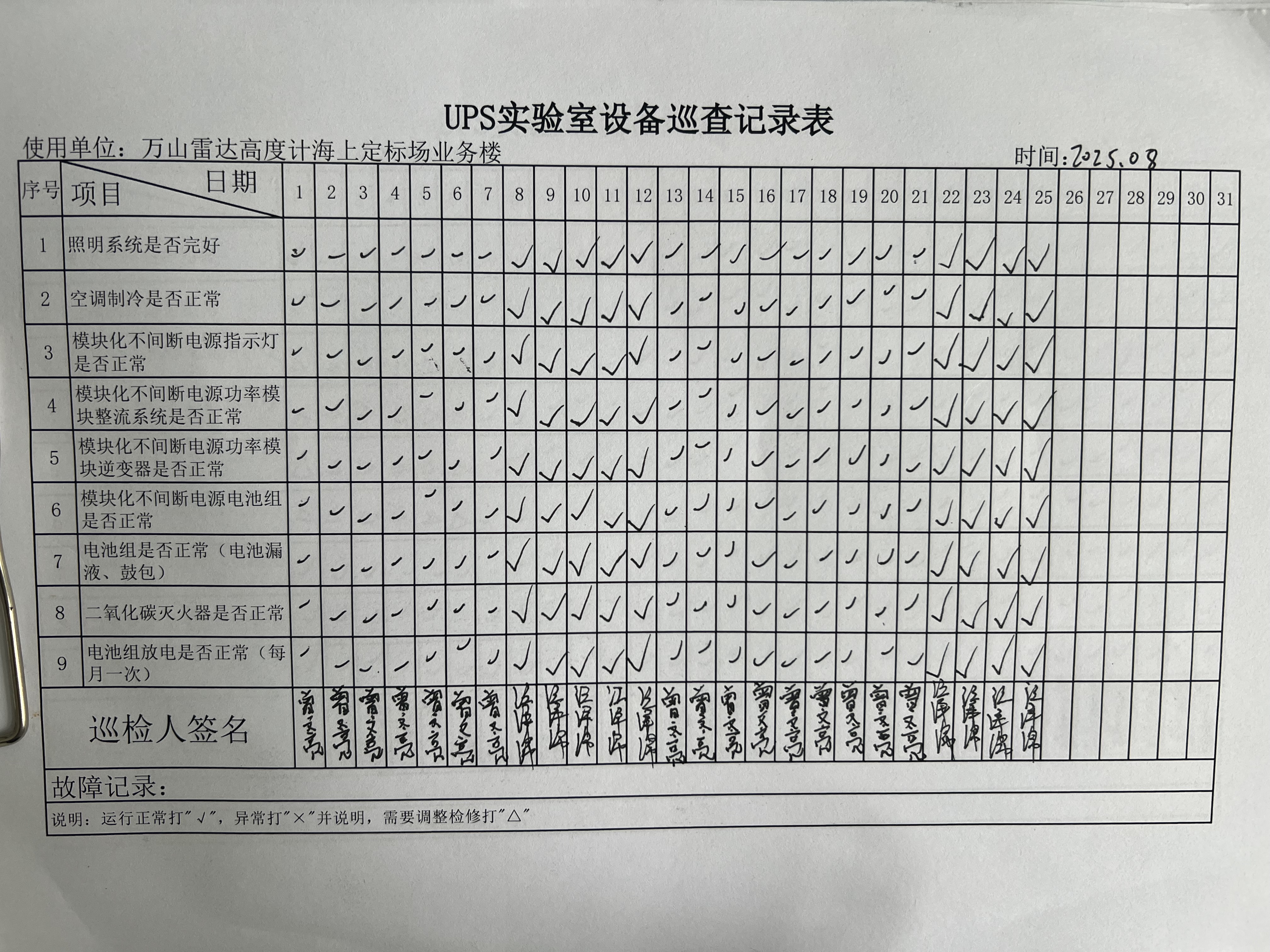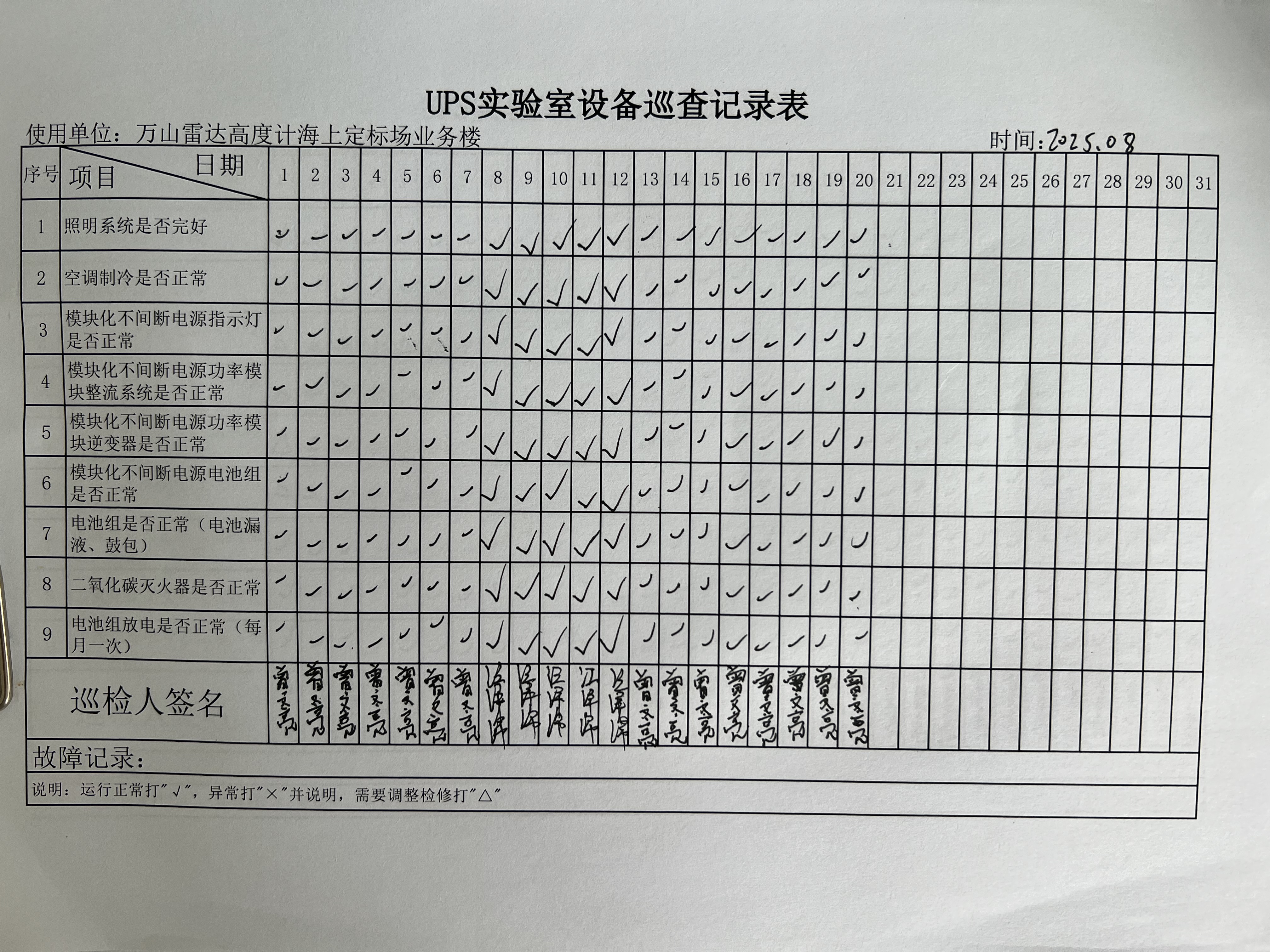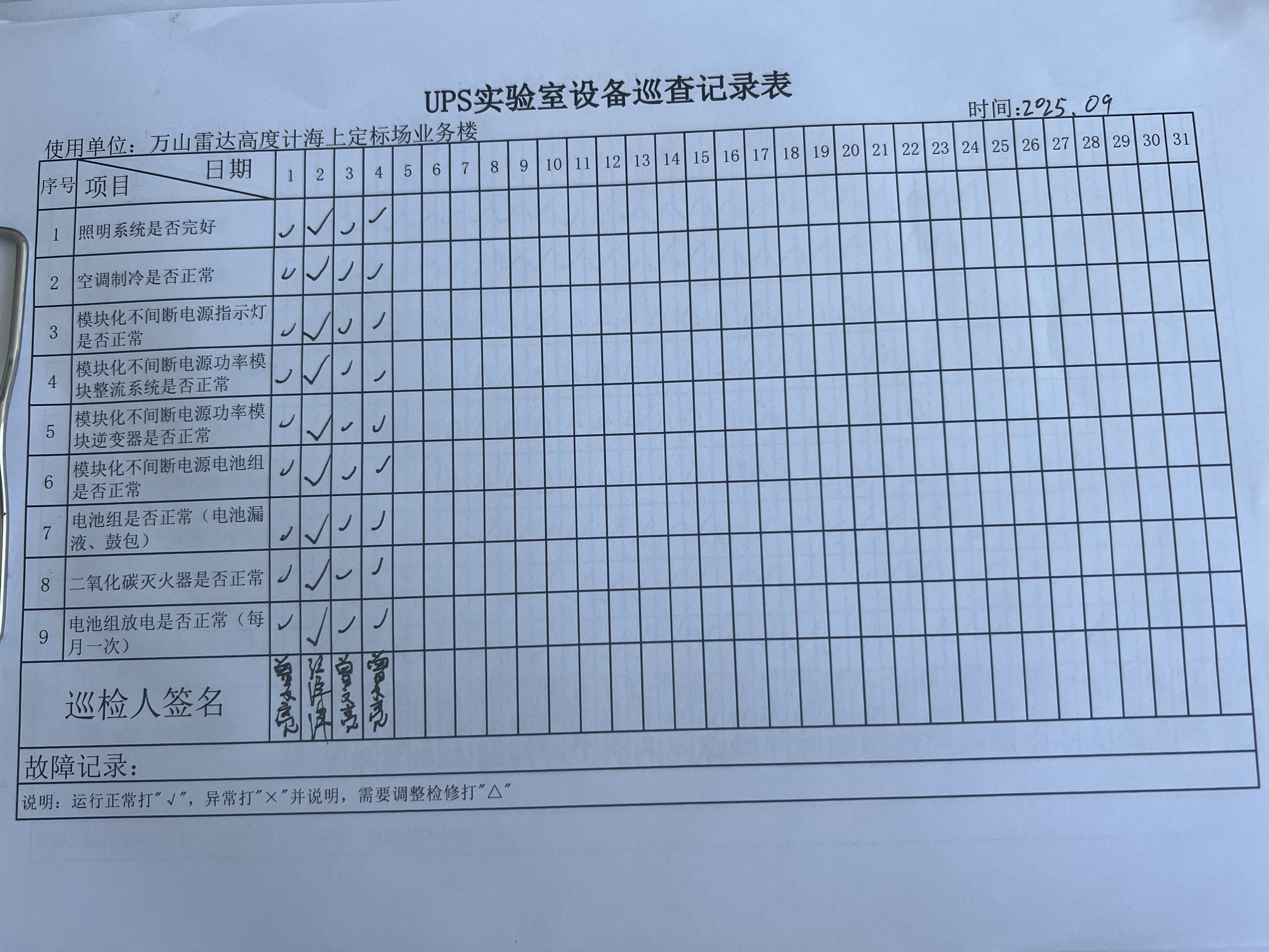 | 记录表-UPS实验室设备巡查 | 原图 | 水印1 | 水印2 | 曾文亮 | 工作照 | 2025-09-25 15:35:31 |