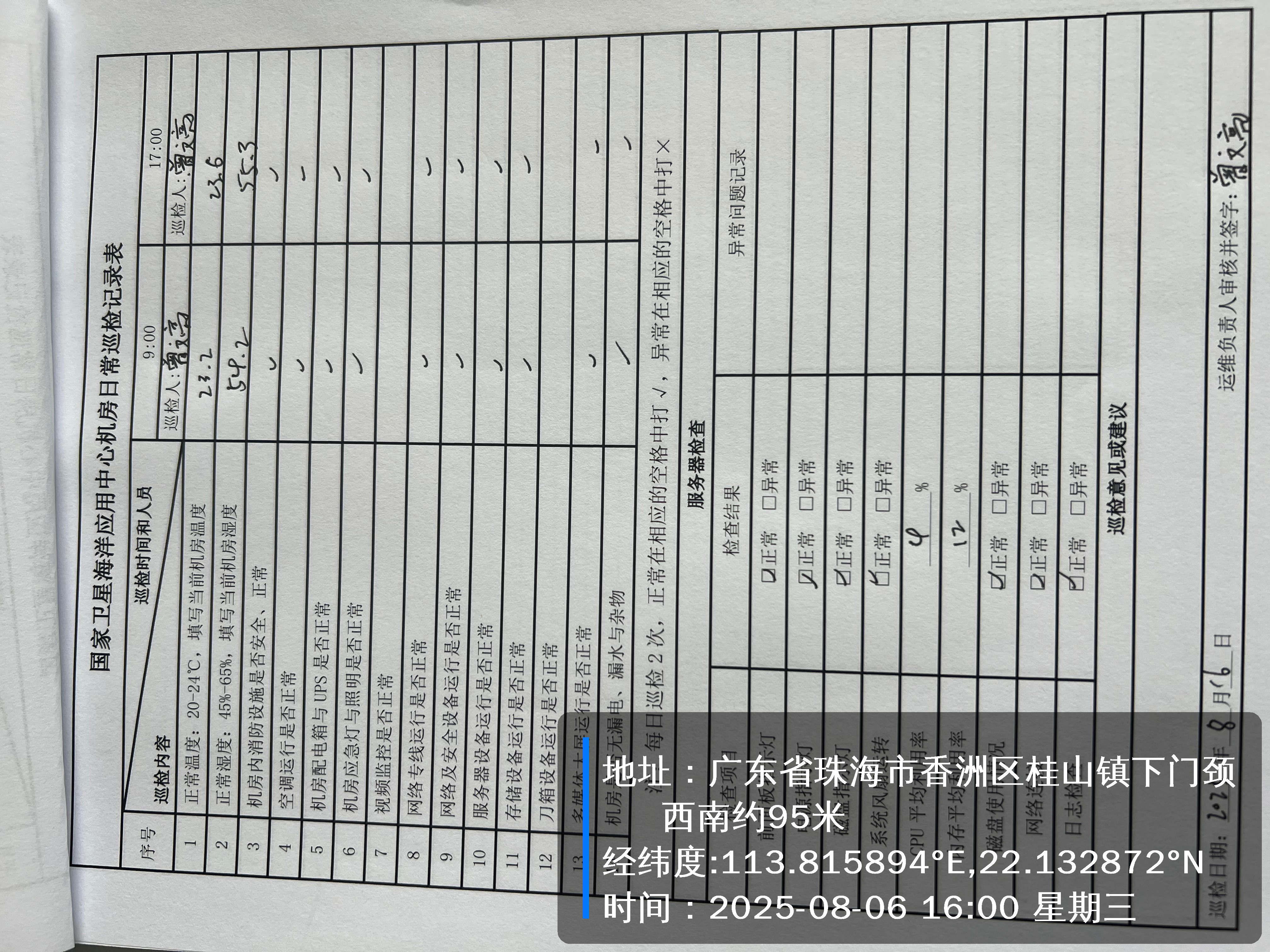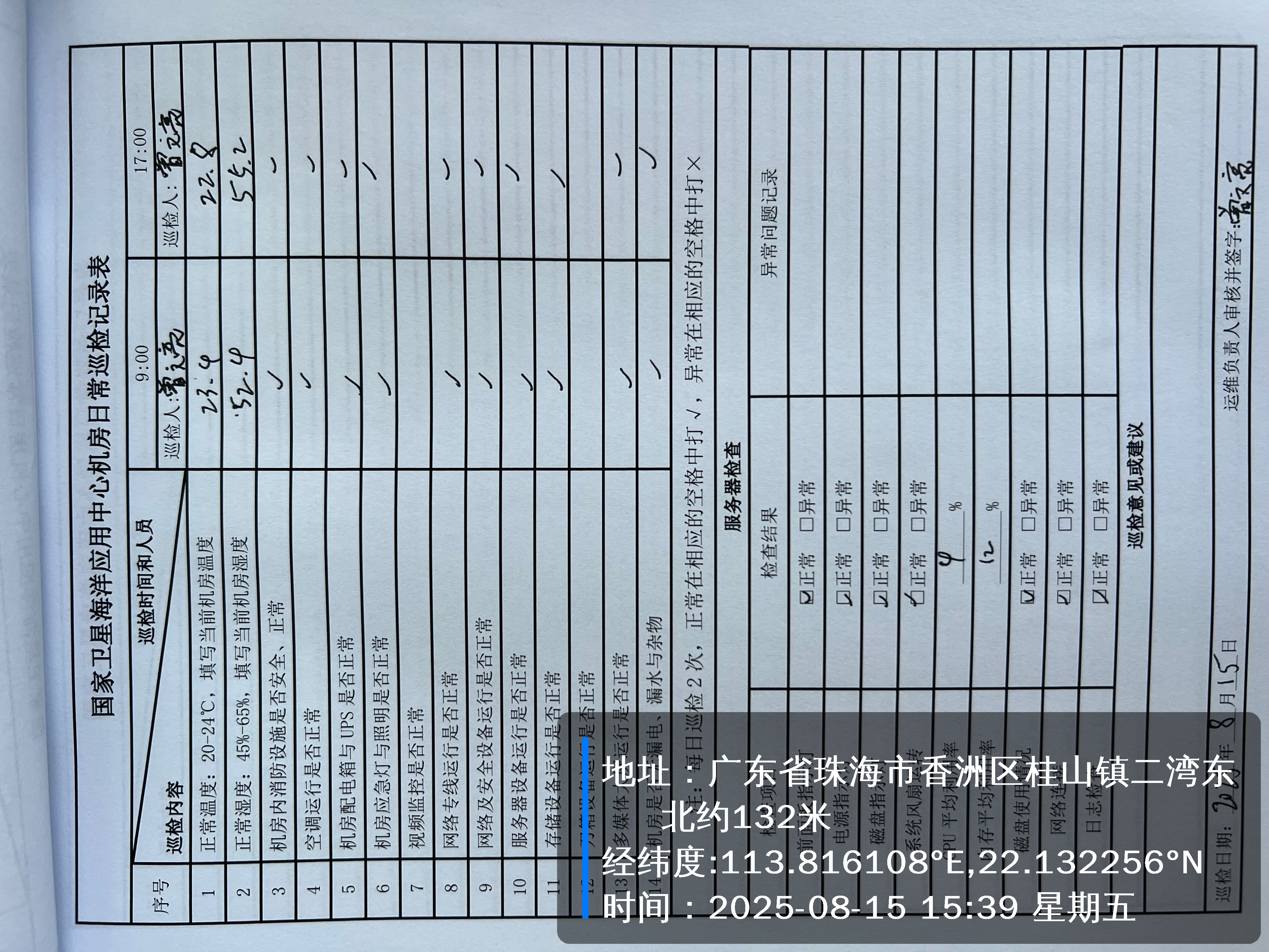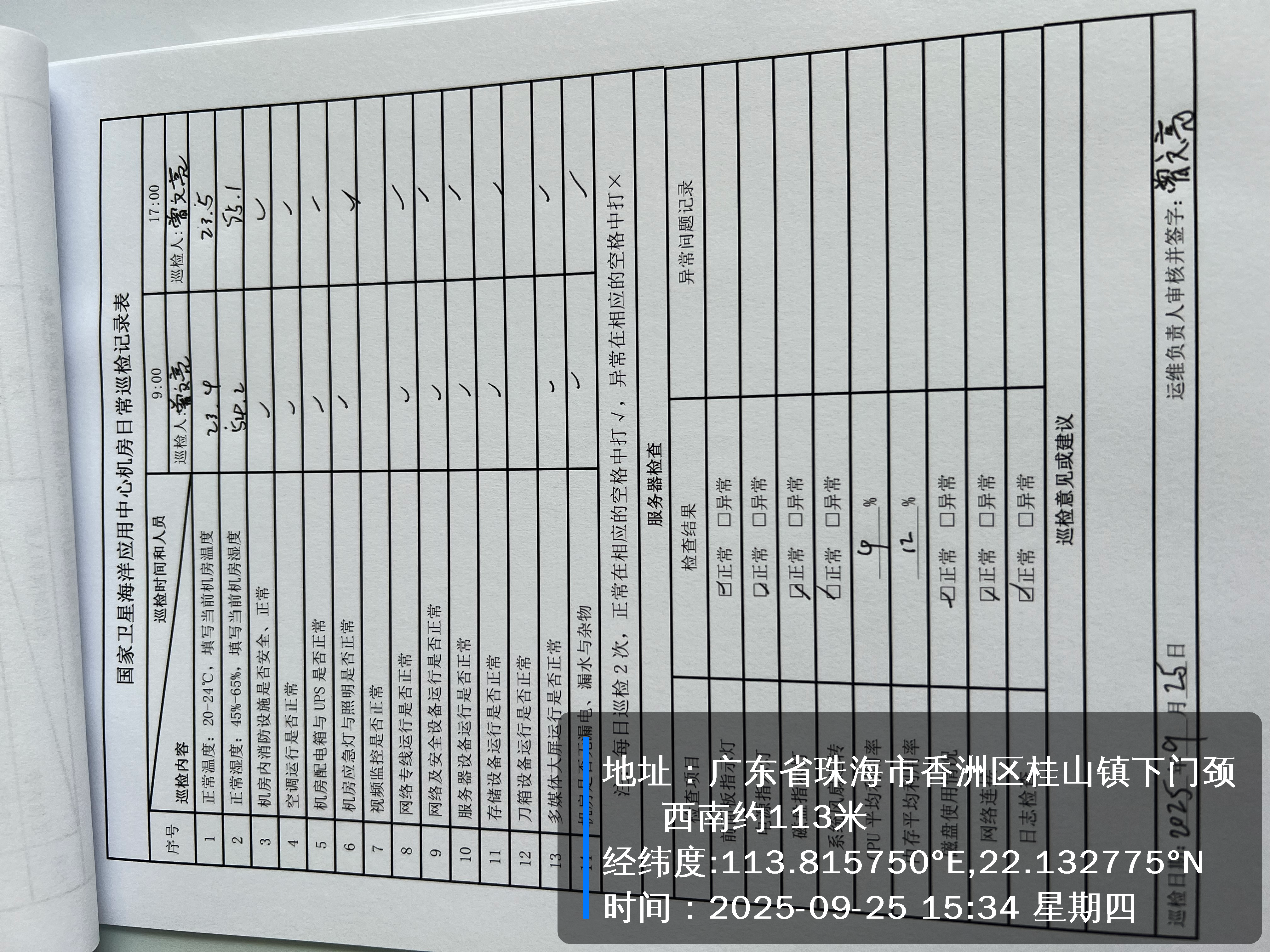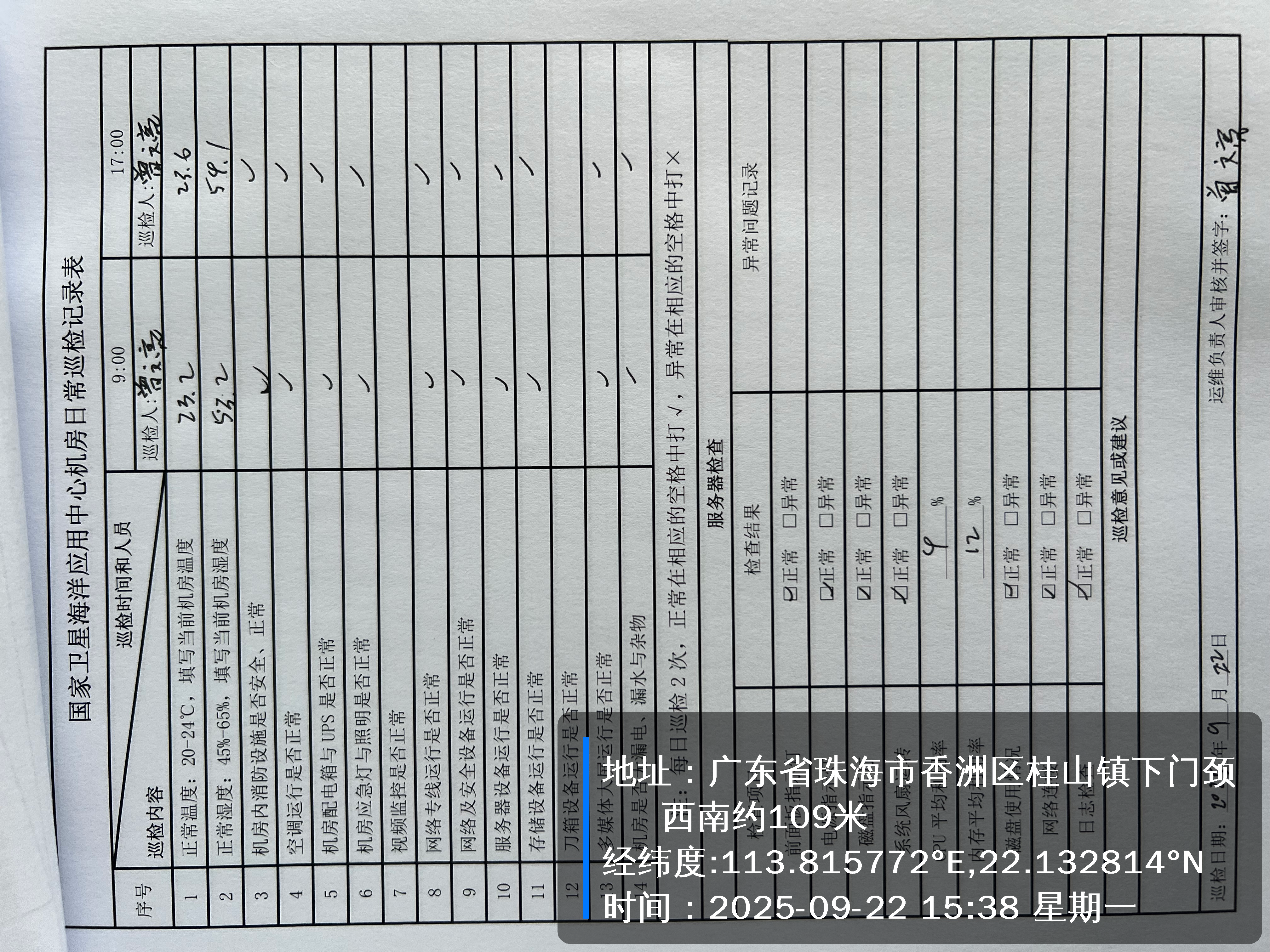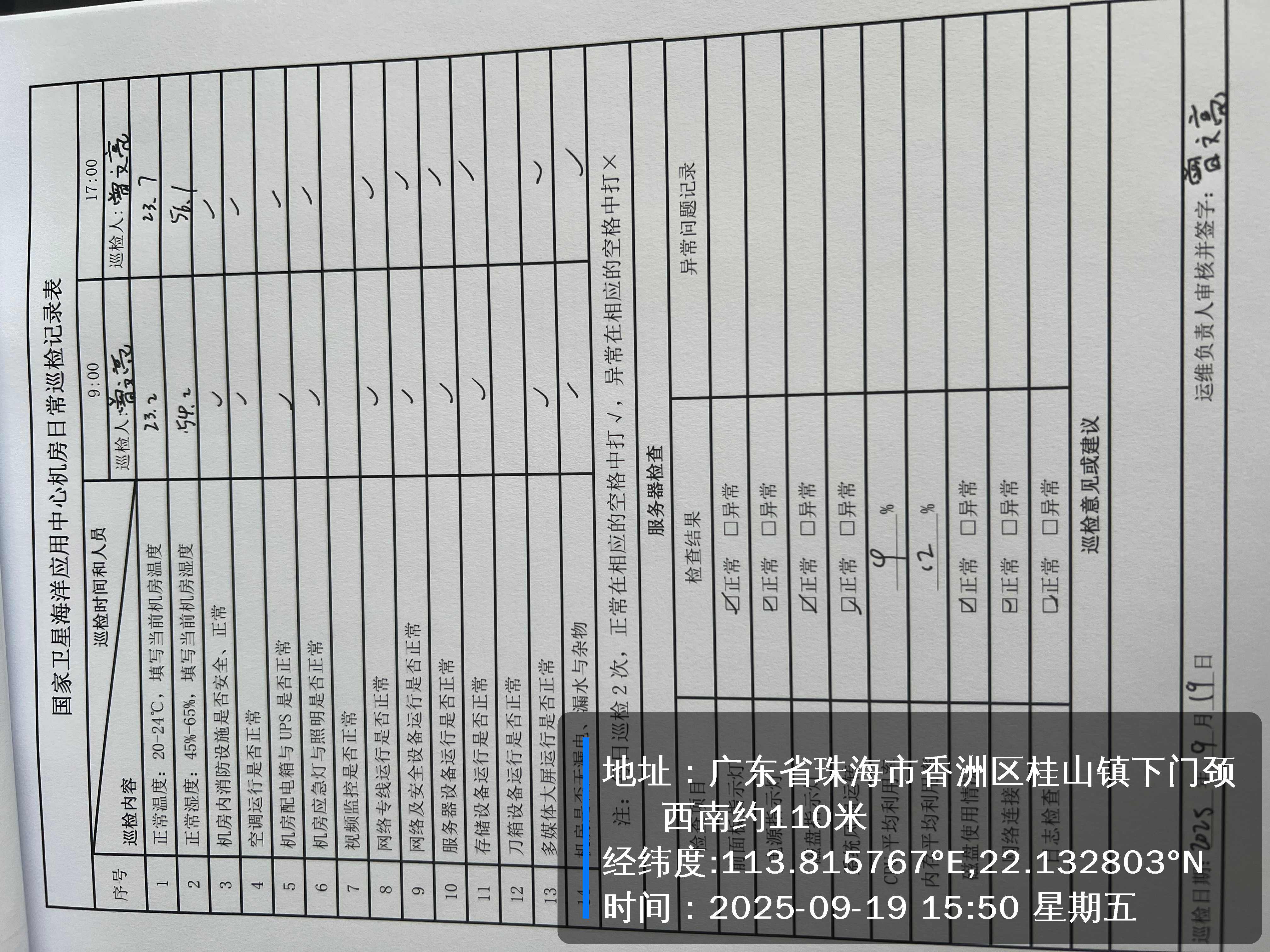 | 记录表-机房日常巡检 | 原图 | 水印1 | 水印2 | 曾文亮 | 工作照 | 2025-09-23 15:40:45 |