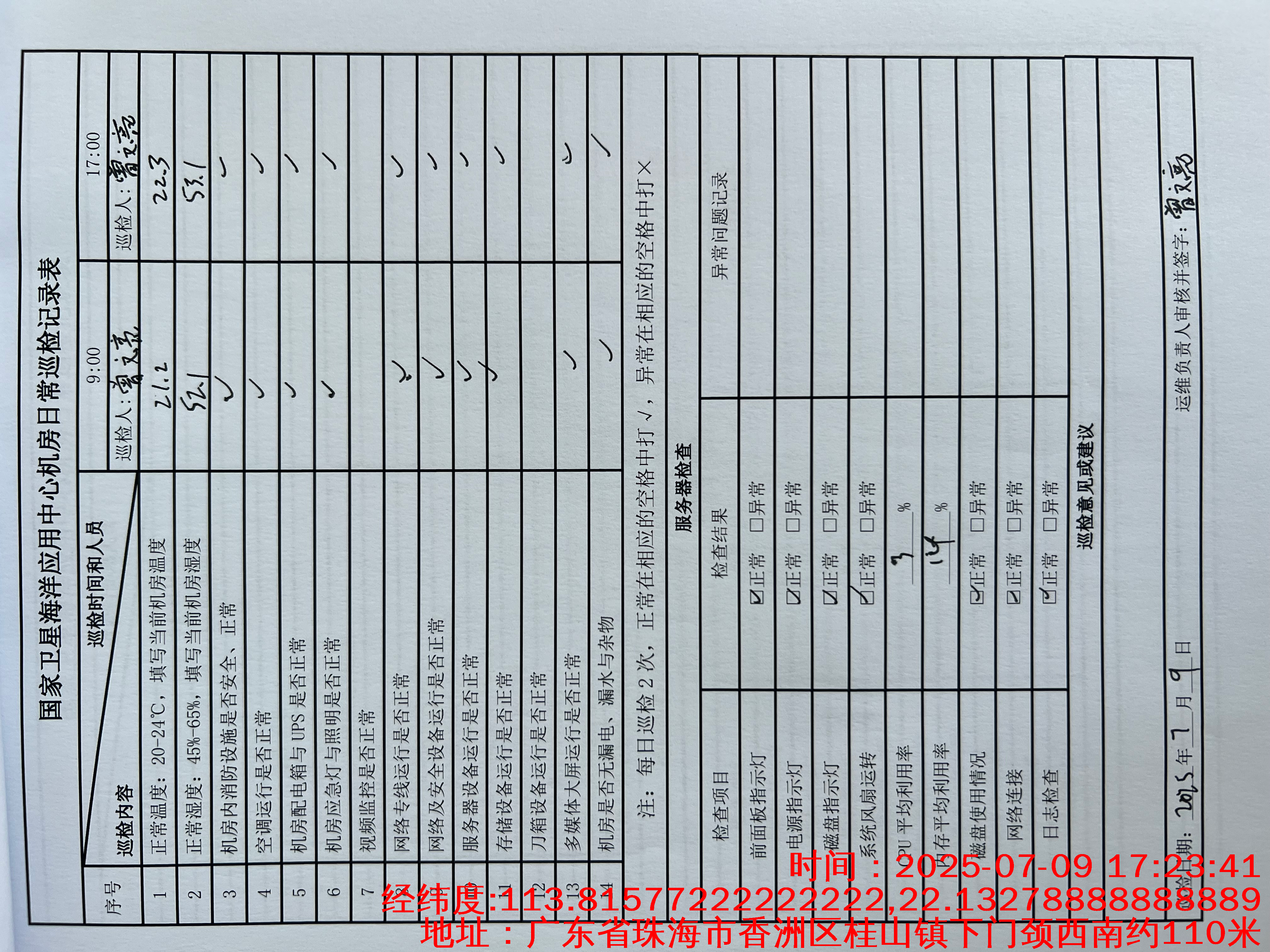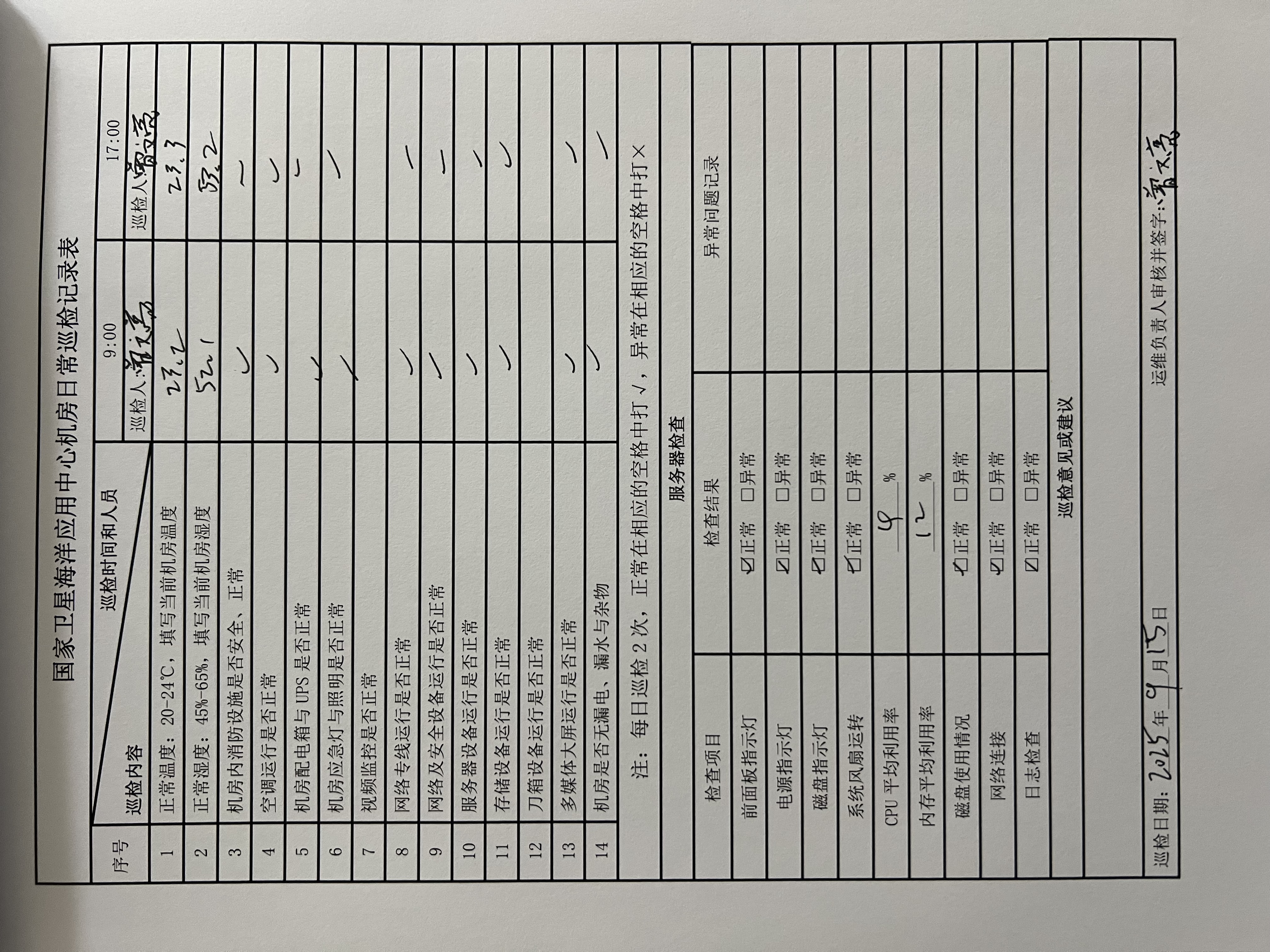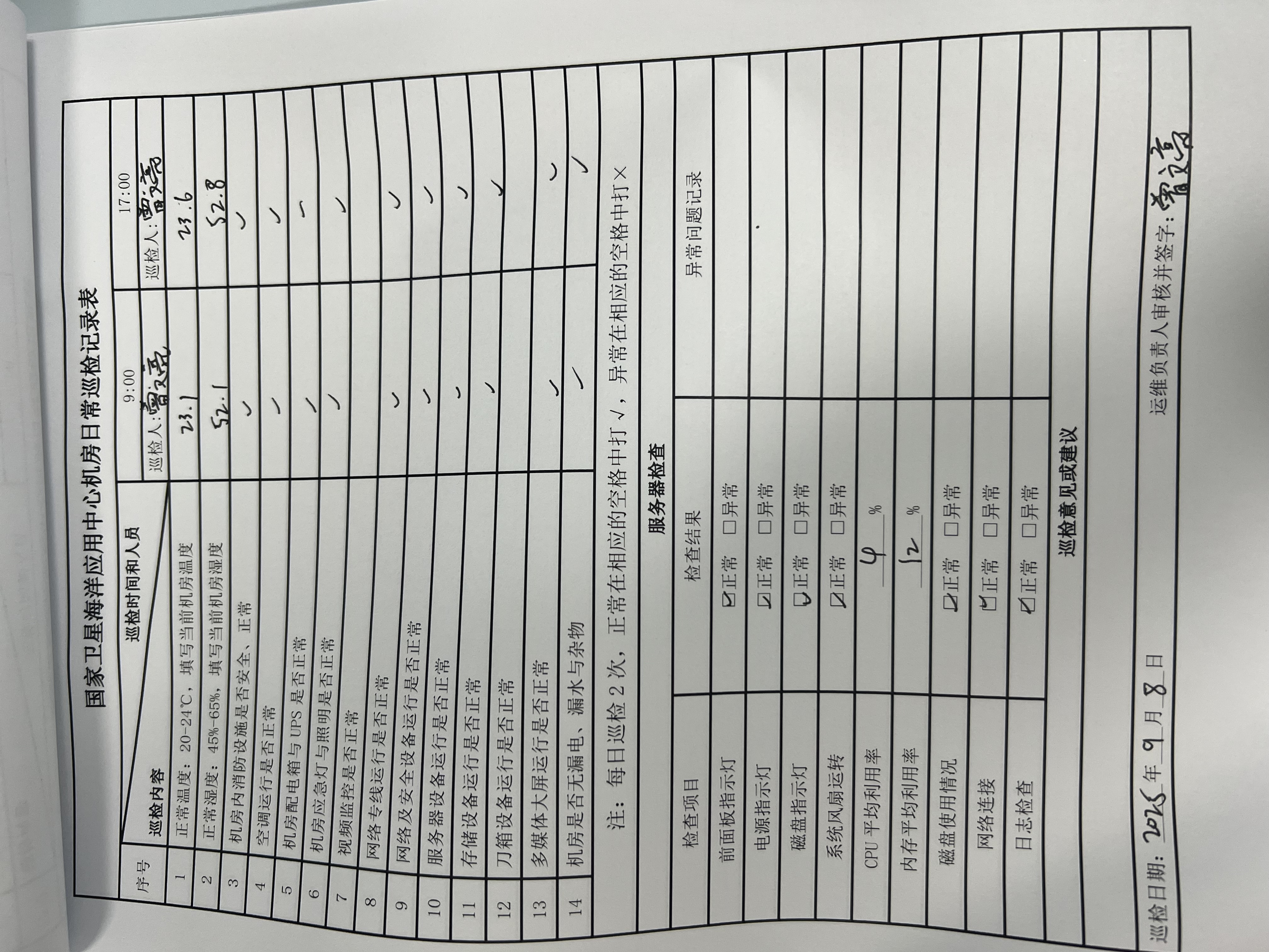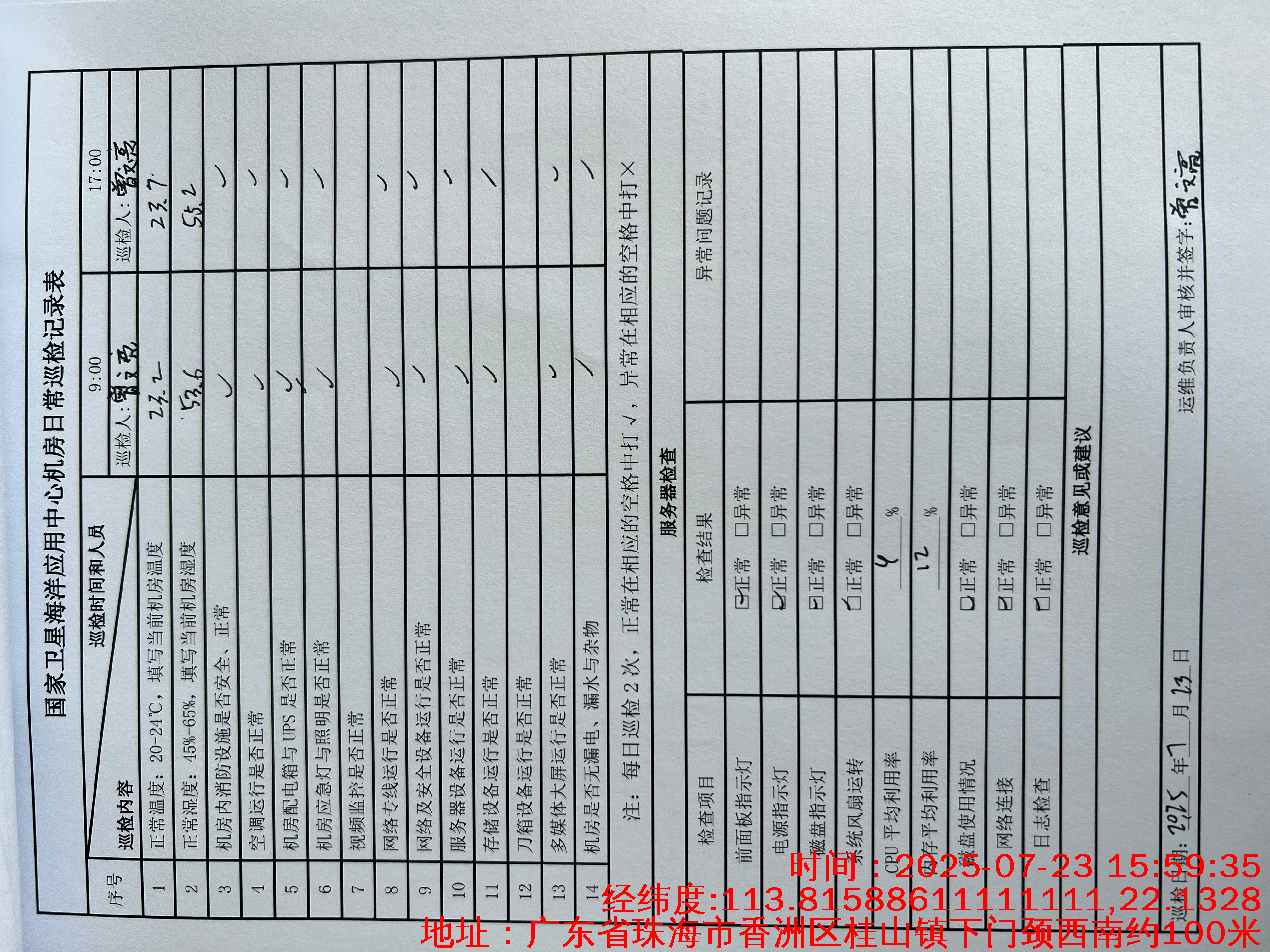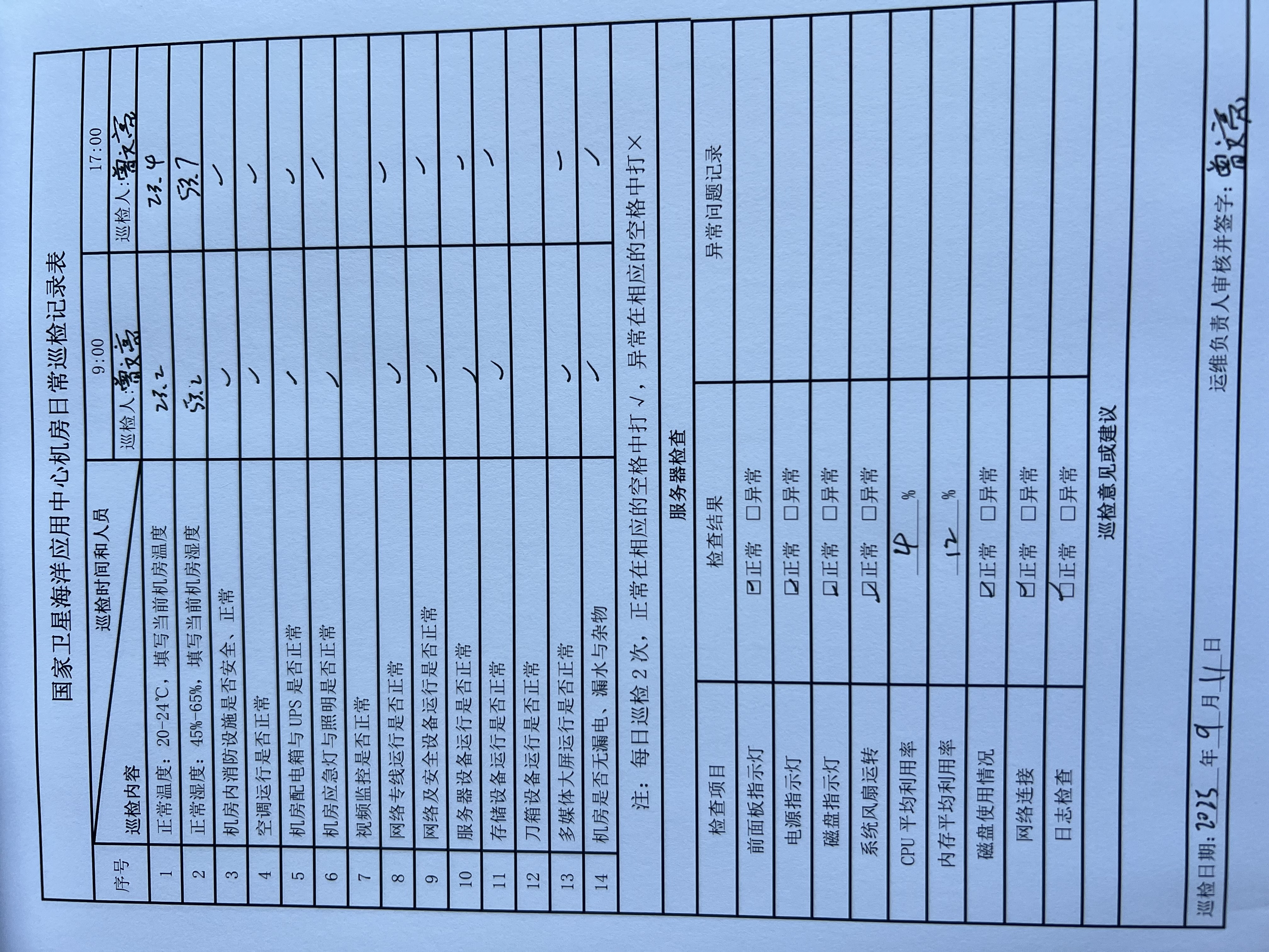 | 记录表-机房日常巡检 | 原图 | 水印1 | 水印2 | 曾文亮 | 工作照 | 2025-09-23 15:40:45 |
