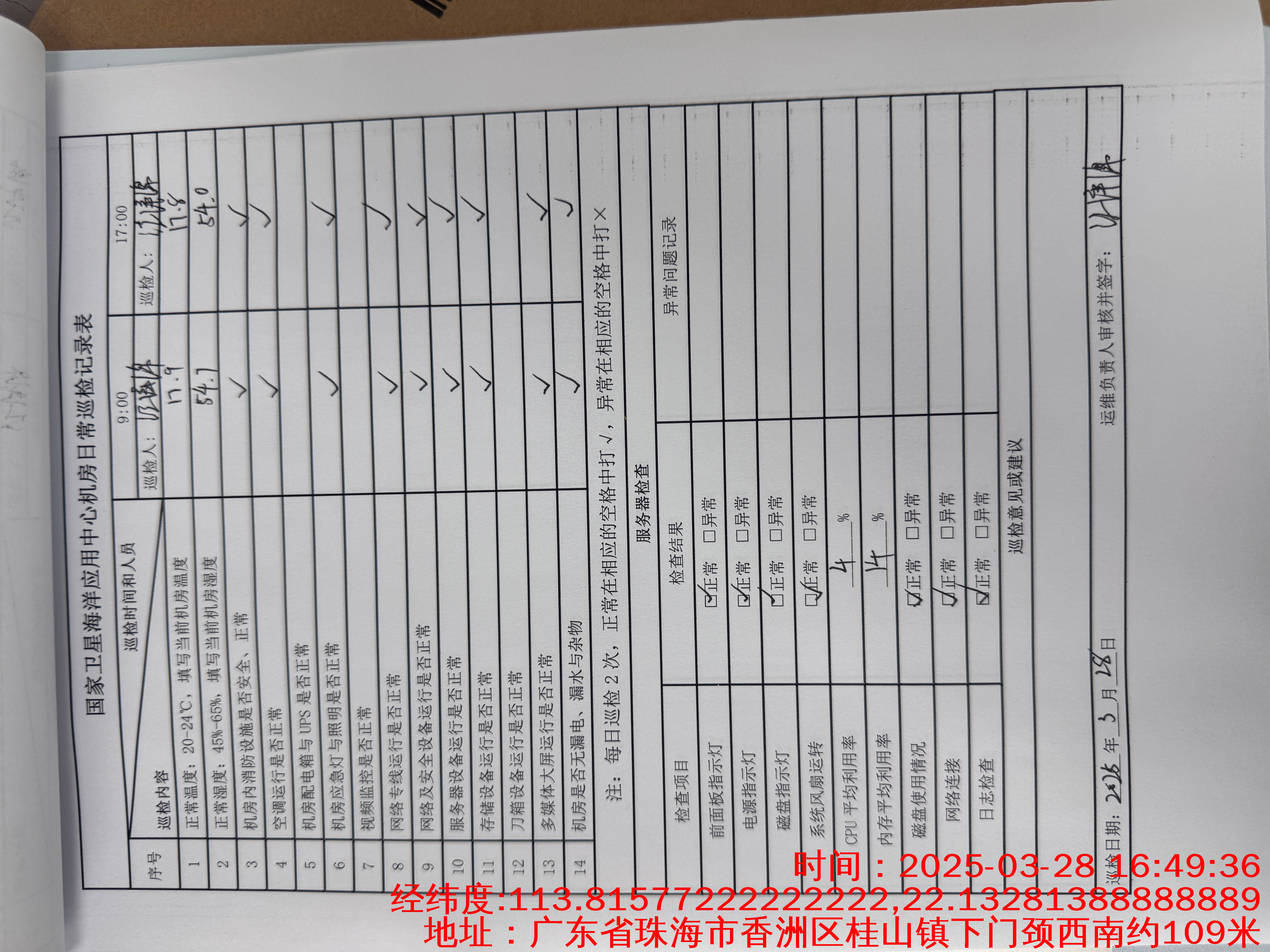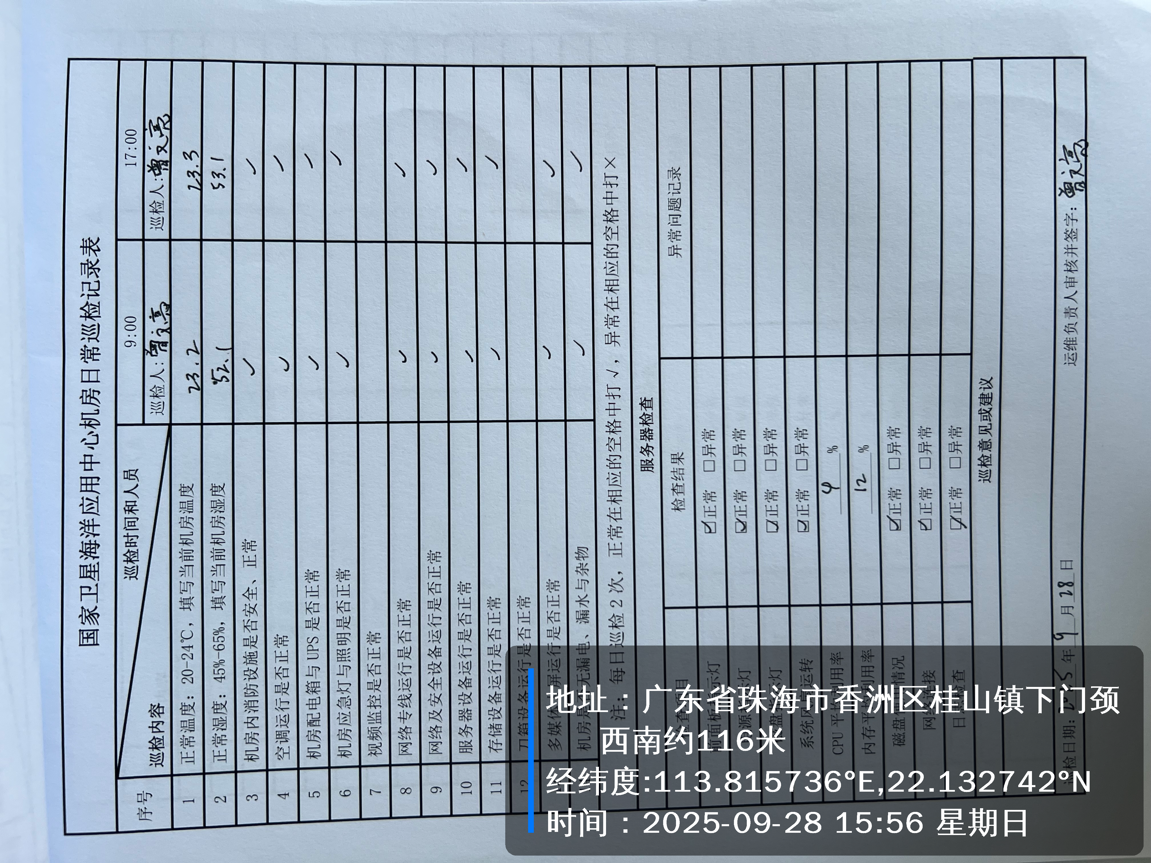 | 记录表-机房日常巡检 | 原图 | 水印1 | 水印2 | 曾文亮 | 工作照 | 2025-09-28 15:56:25 |