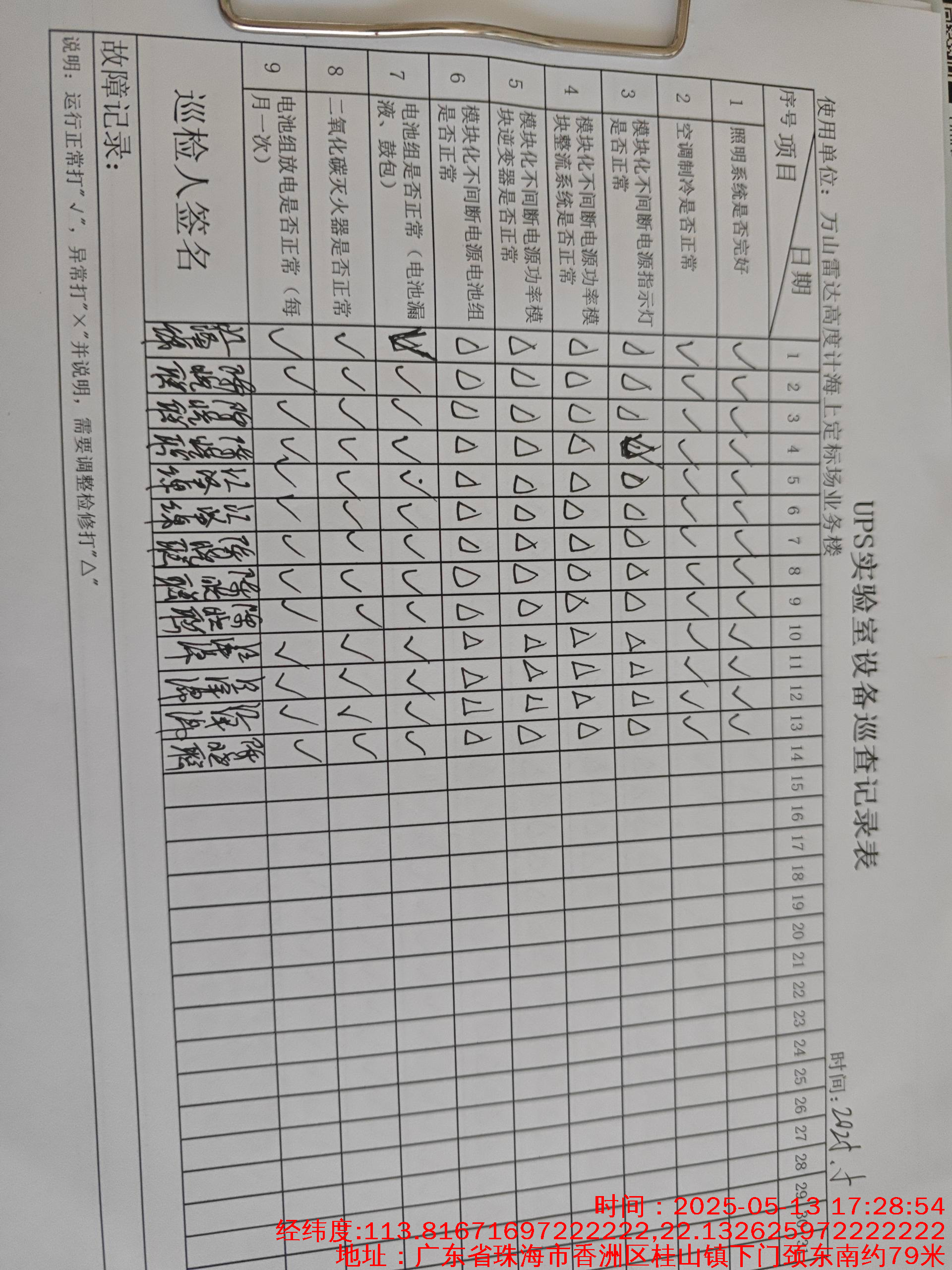 | 记录表-UPS实验室设备巡查 | 原图 | 水印1 | 水印2 | 曾文亮 | 工作照 | 2025-09-28 15:55:42 |