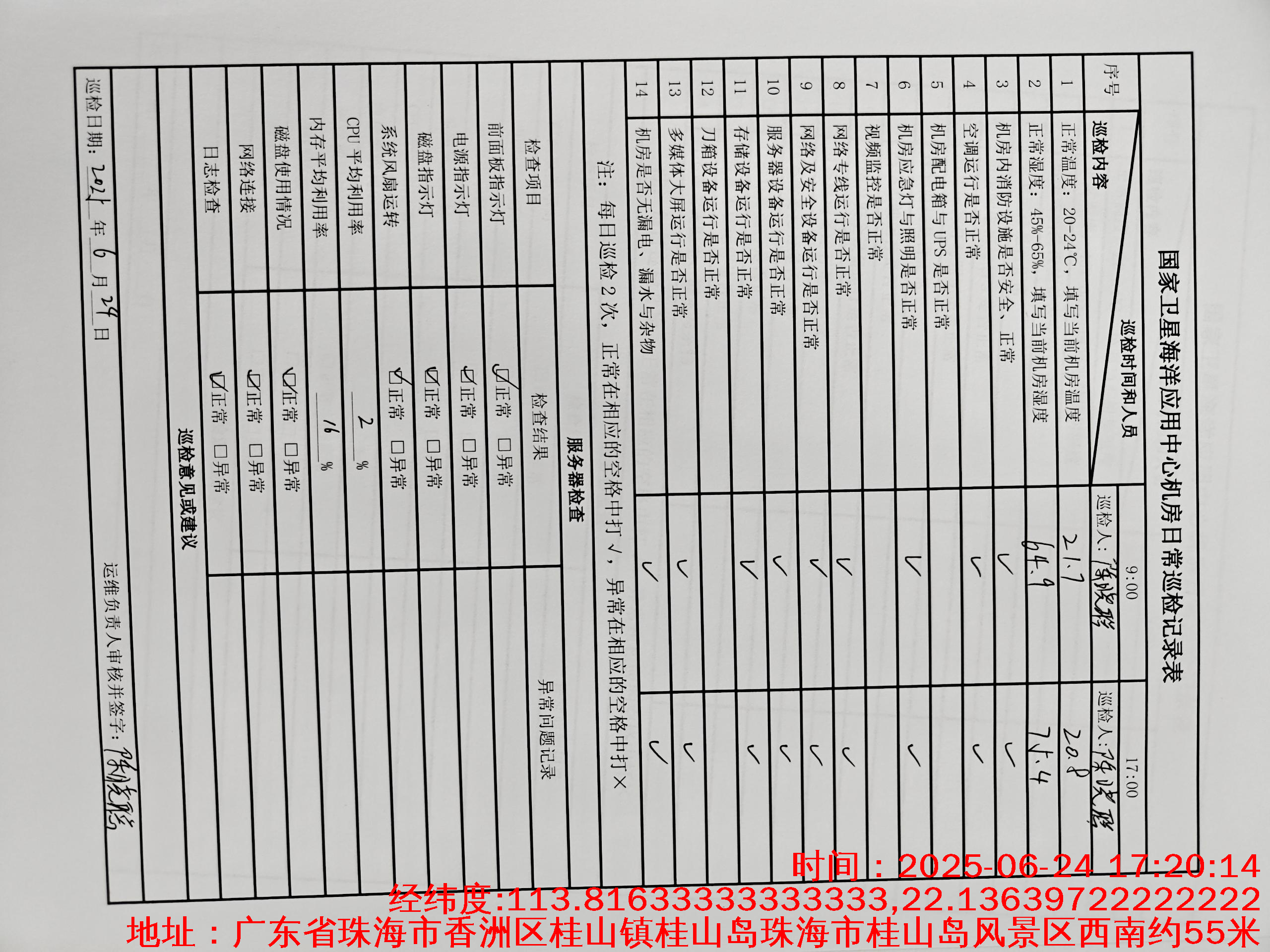 | 记录表-机房日常巡检 | 原图 | 水印1 | 水印2 | 曾文亮 | 工作照 | 2025-09-24 15:51:16 |