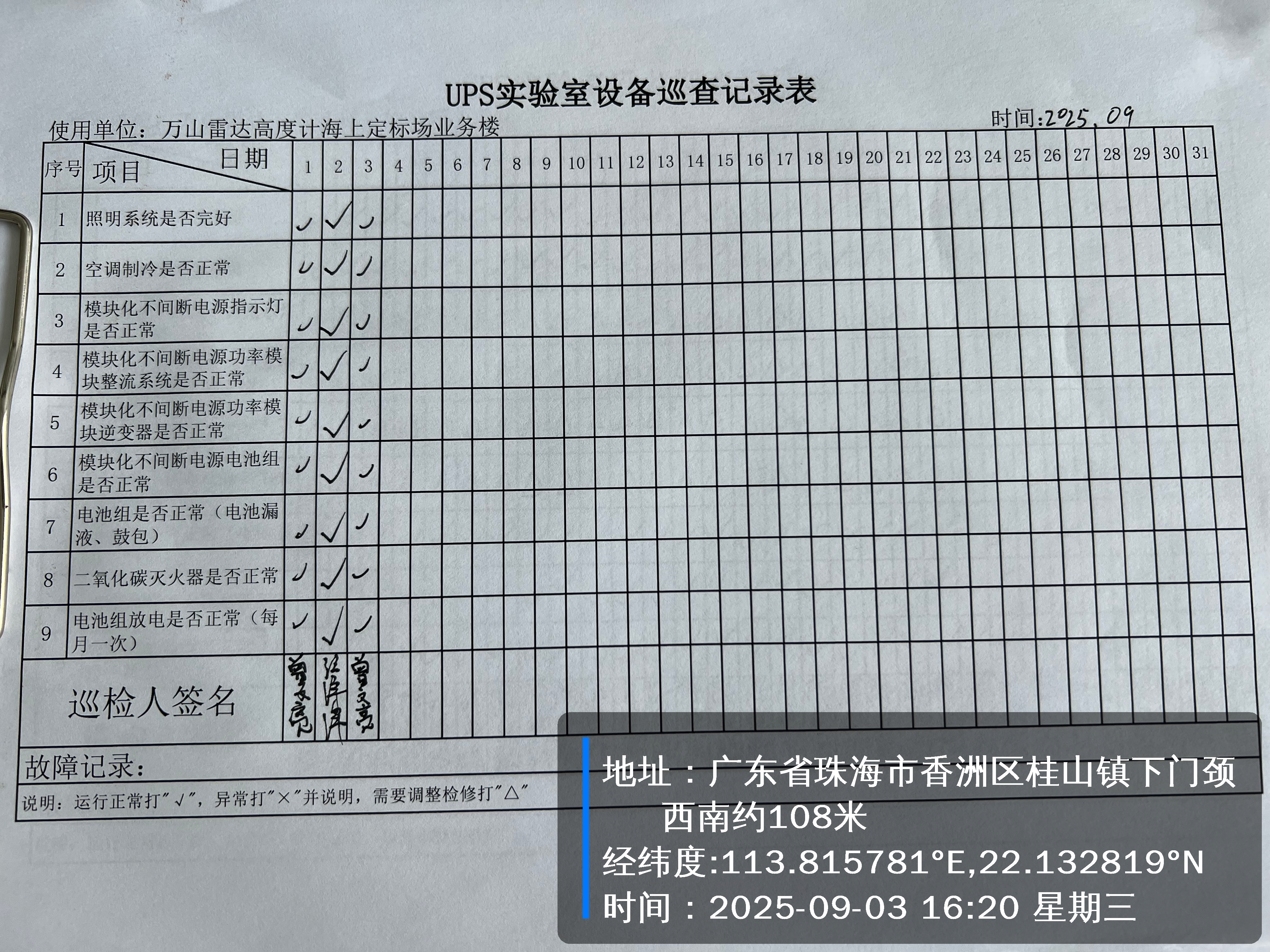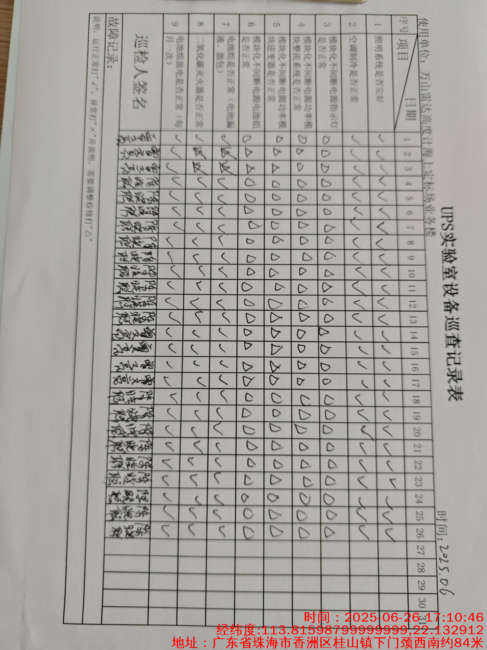 | 记录表-UPS实验室设备巡查 | 原图 | 水印1 | 水印2 | 曾文亮 | 工作照 | 2025-09-26 16:52:30 |