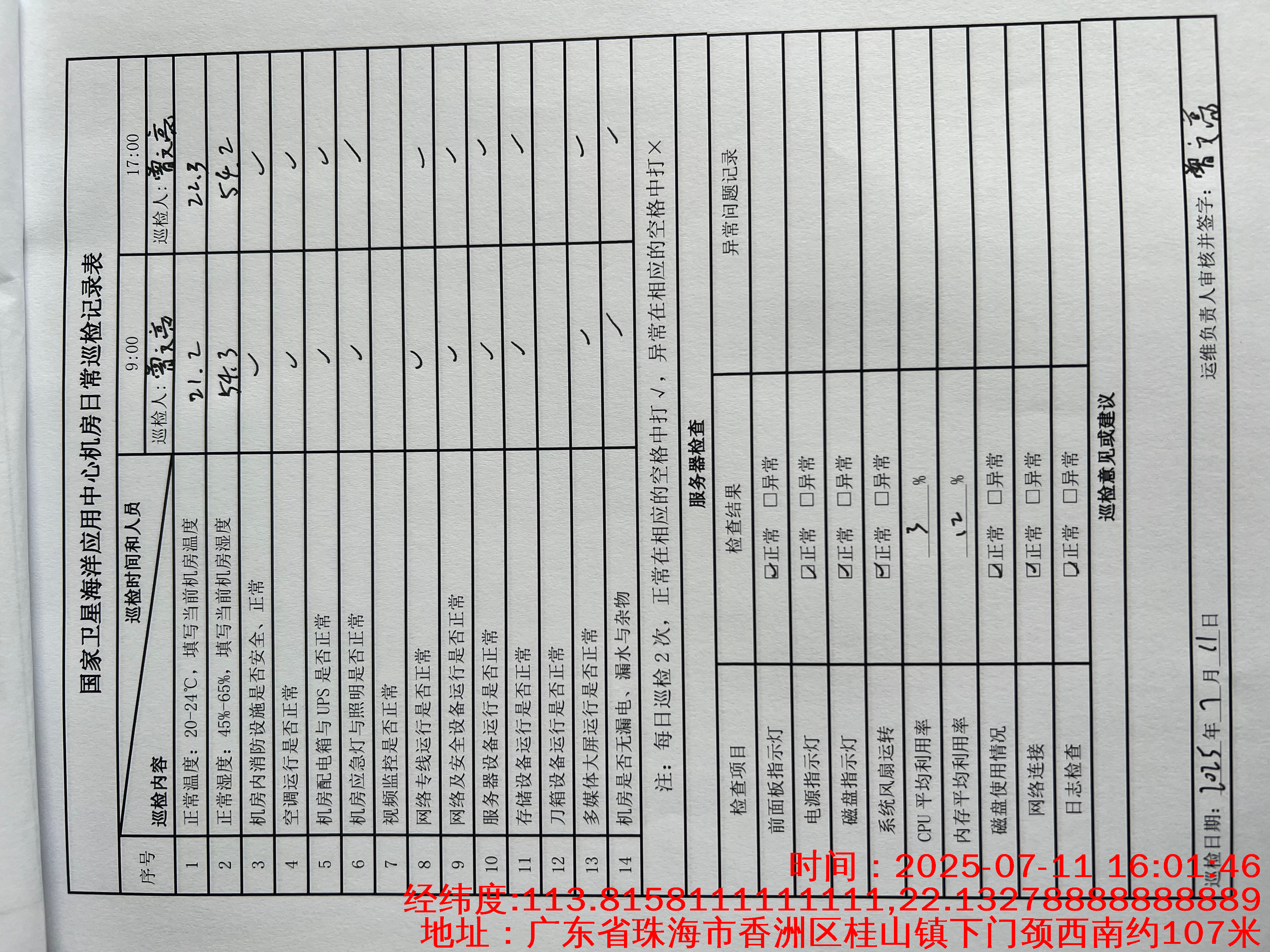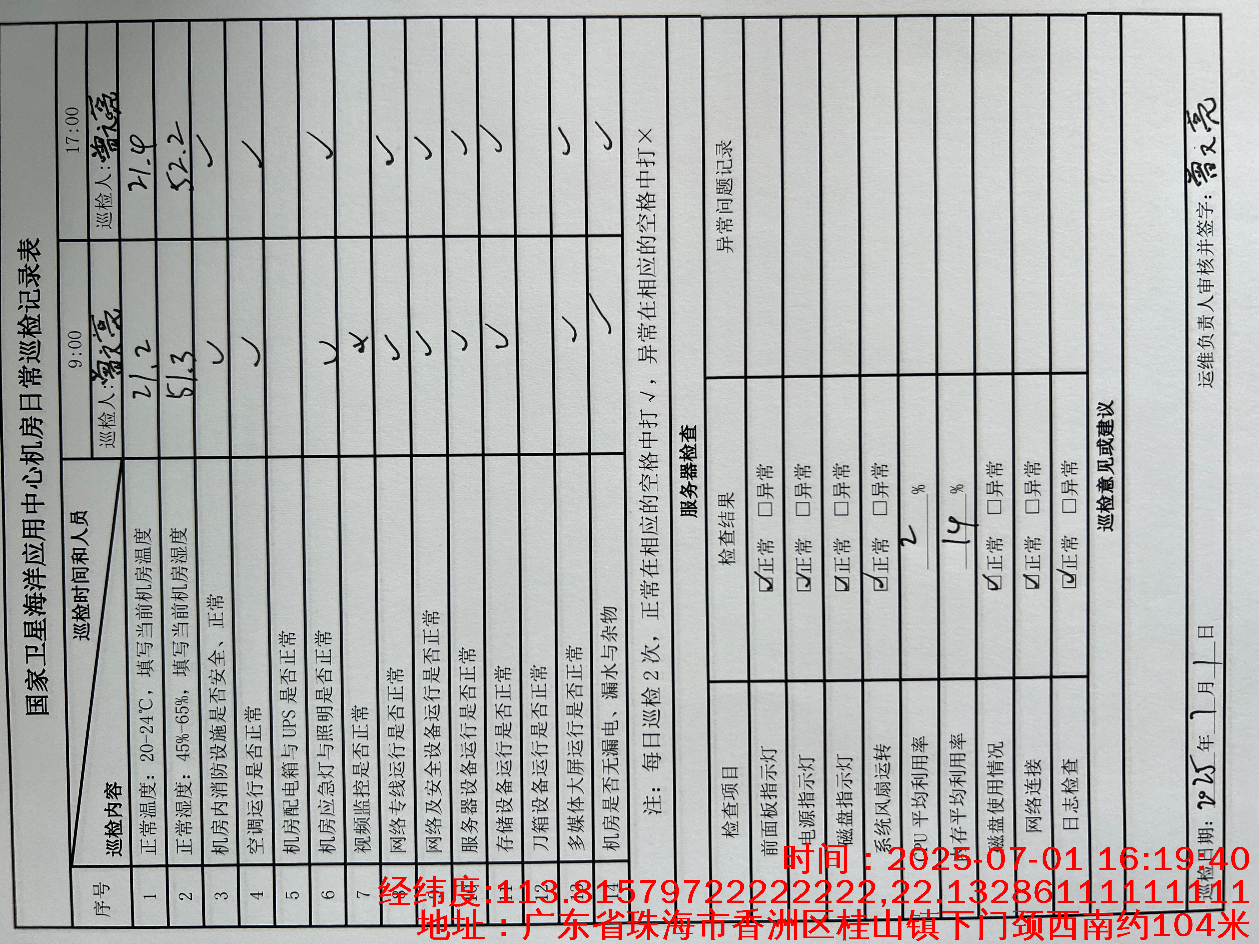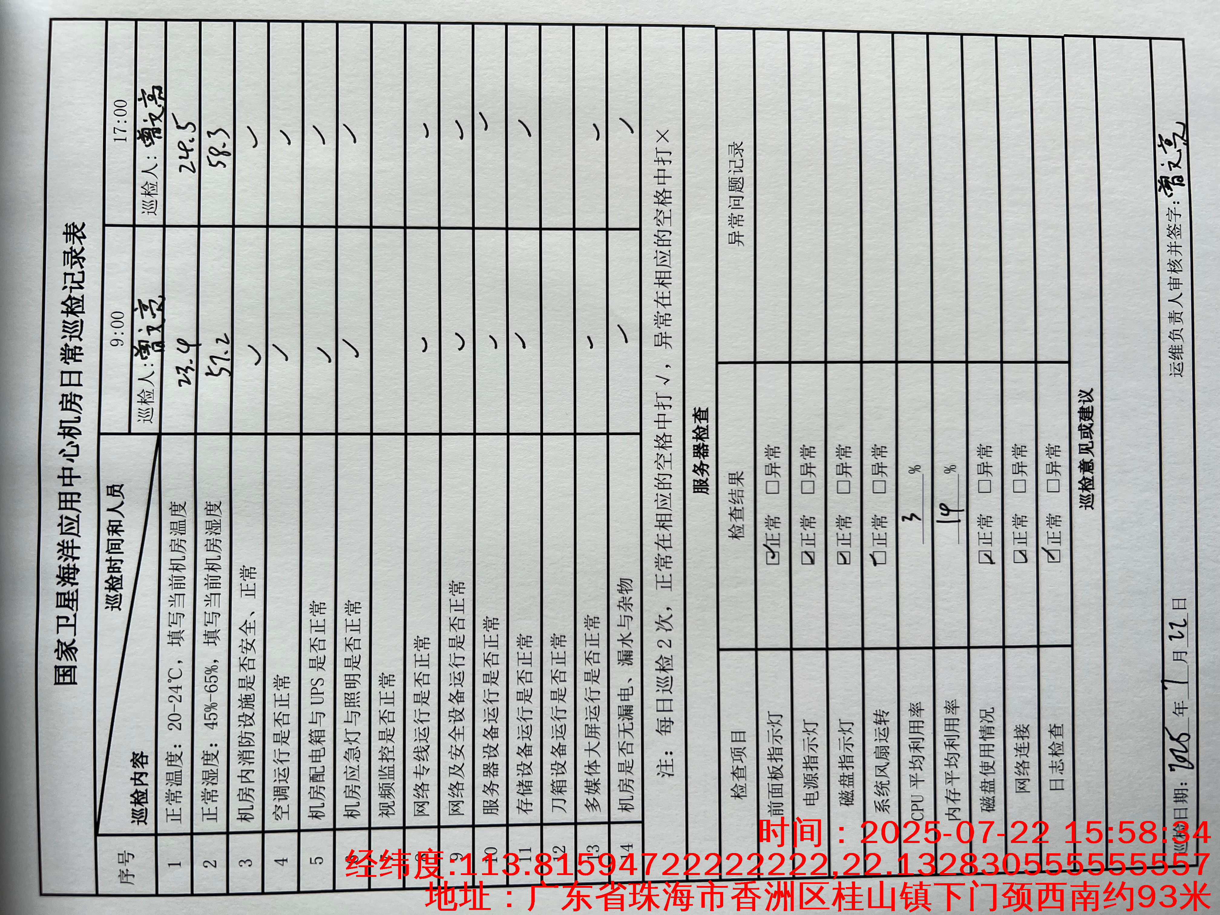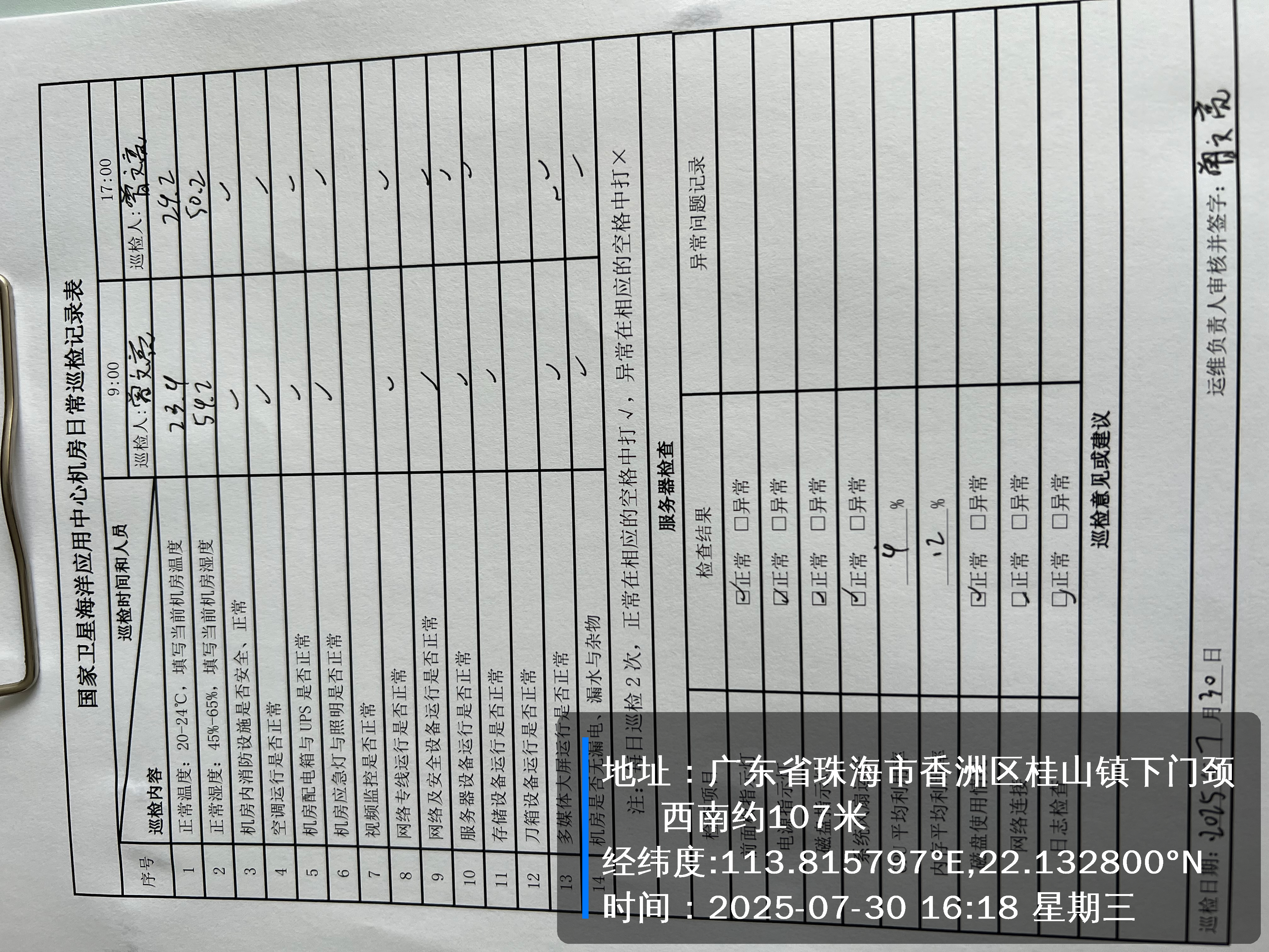 | 记录表-机房日常巡检 | 原图 | 水印1 | 水印2 | 曾文亮 | 工作照 | 2025-09-25 15:34:59 |