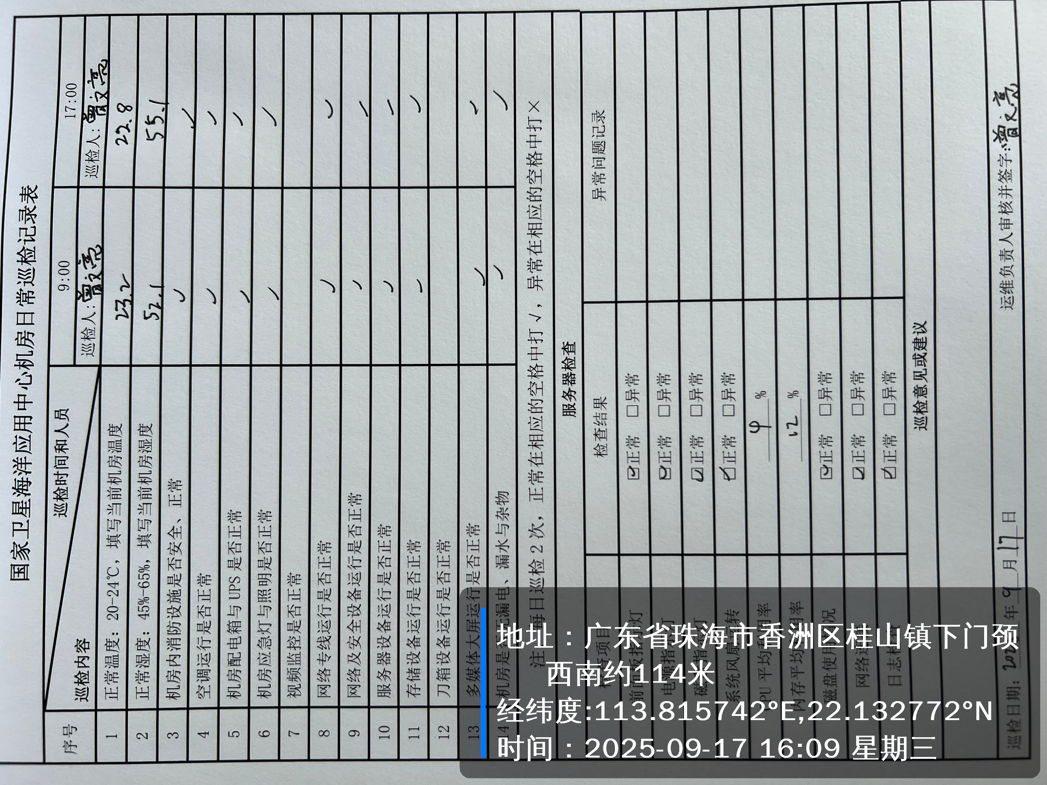 | 记录表-机房日常巡检 | 原图 | 水印1 | 水印2 | 曾文亮 | 工作照 | 2025-09-22 15:38:04 |