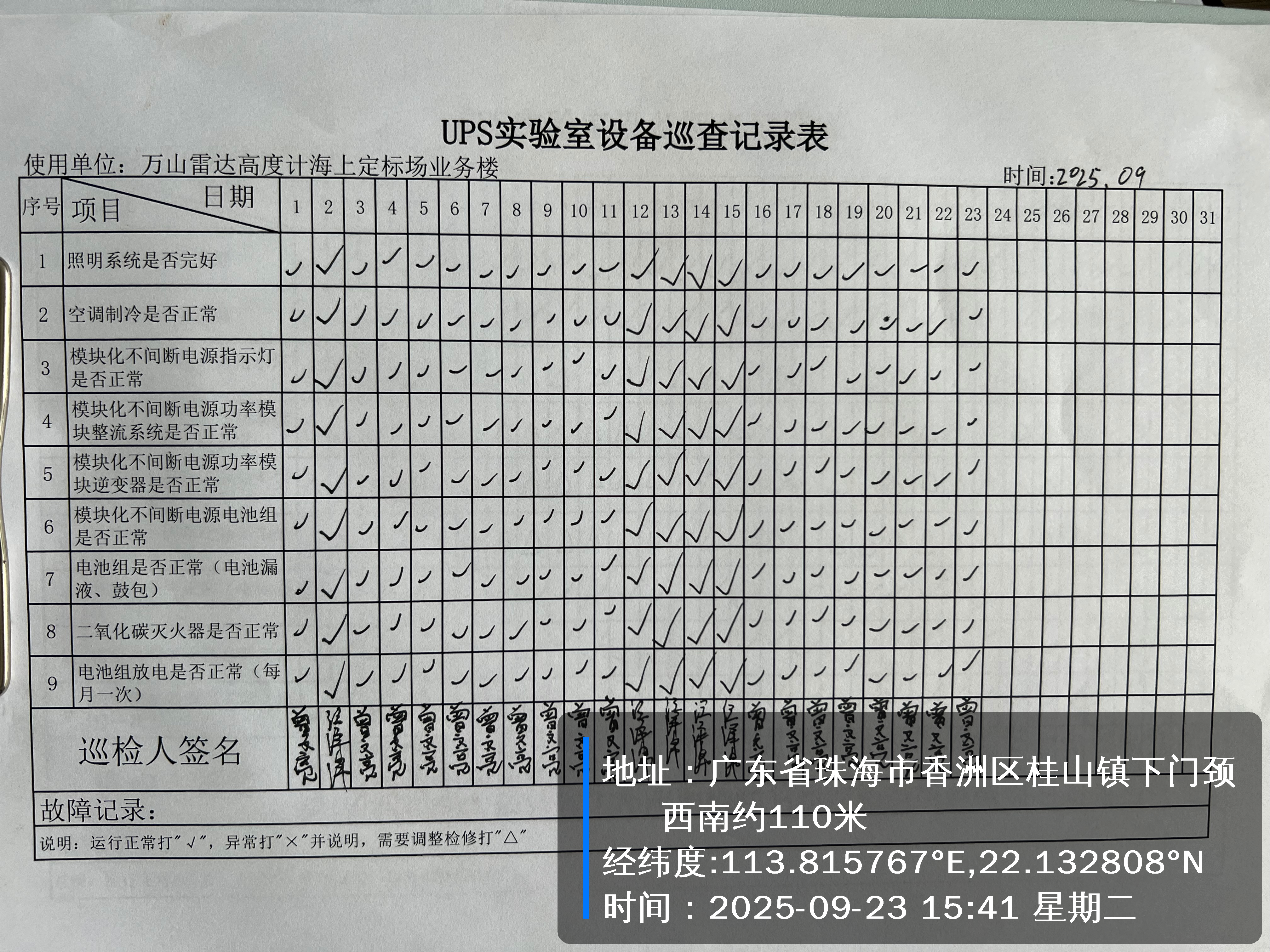| 记录表-UPS实验室设备巡查 | 原图 | 水印1 | 水印2 | 曾文亮 | 工作照 | 2025-09-23 15:41:00 |