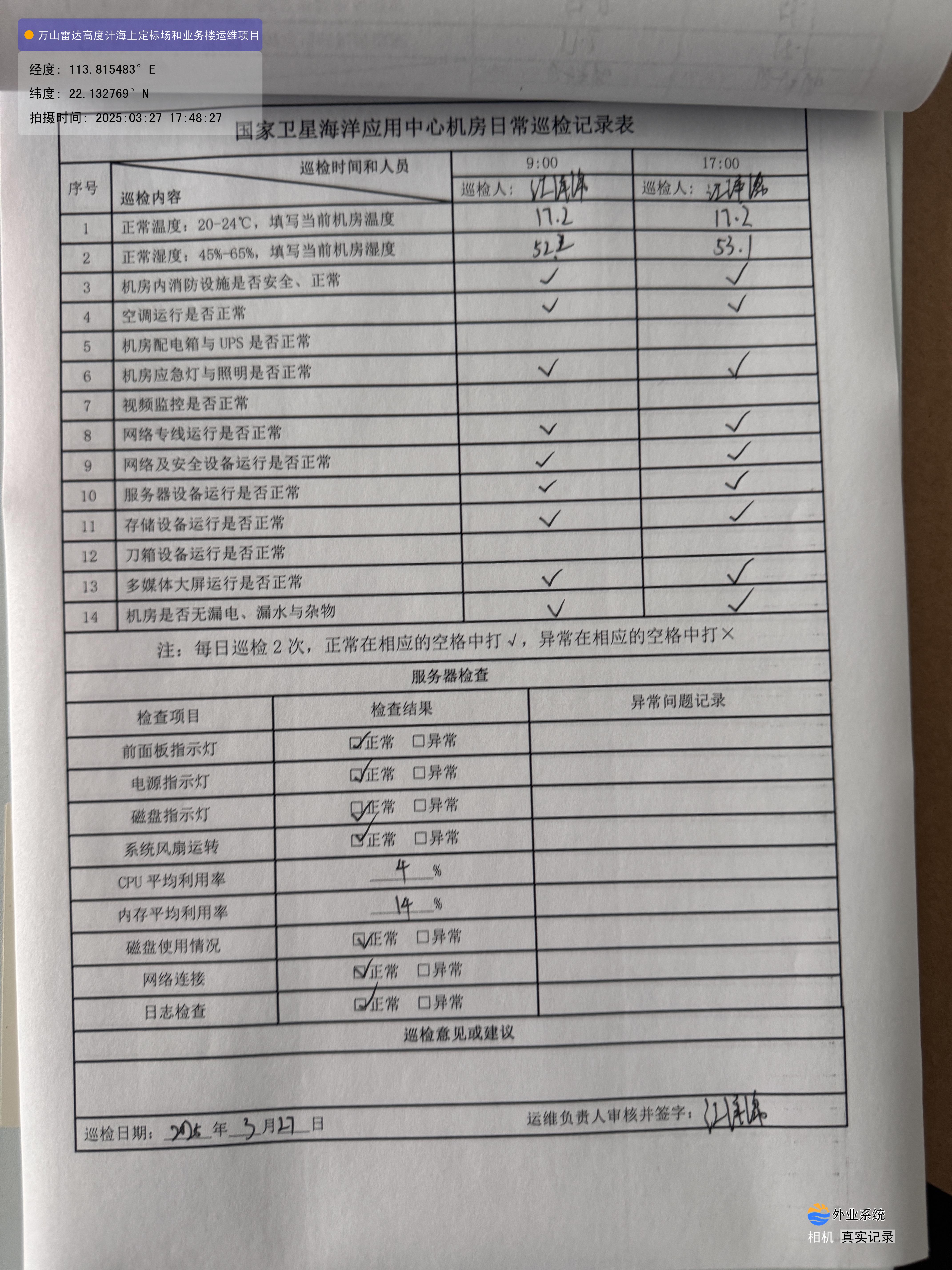 | 记录表-机房日常巡检 | 原图 | 水印1 | 水印2 | 江泽绵 | 工作照 | 2025-03-27 17:48:27 |