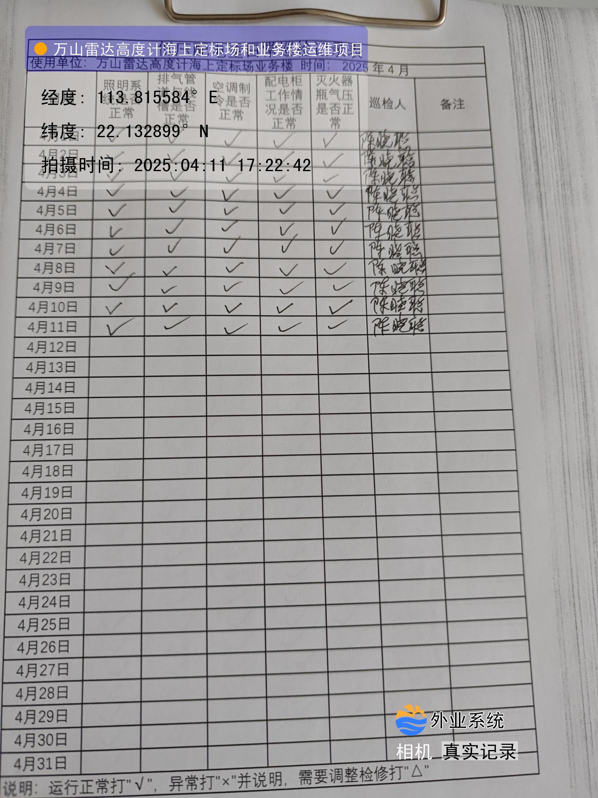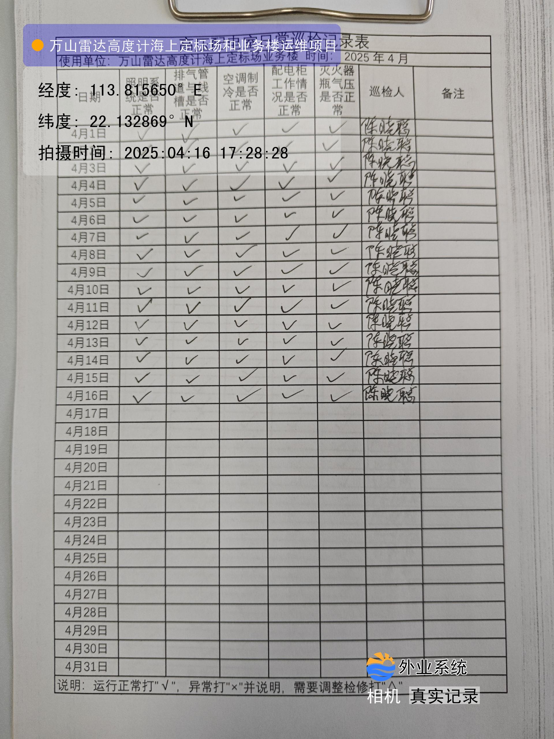 | 记录表-机房日常巡检 | 原图 | 水印1 | 水印2 | 陈晓聪 | 工作照 | 2025-04-01 17:00:00 |