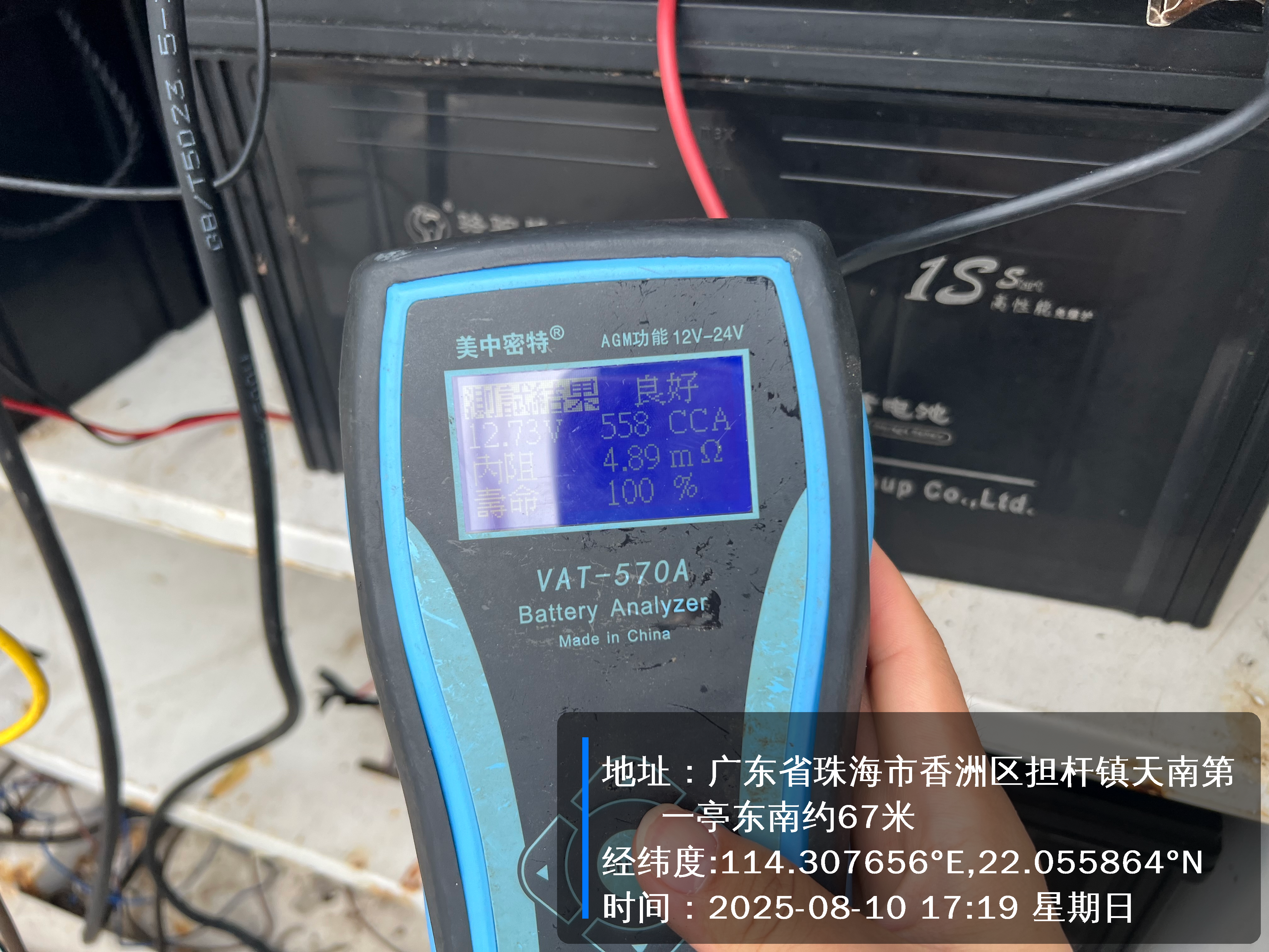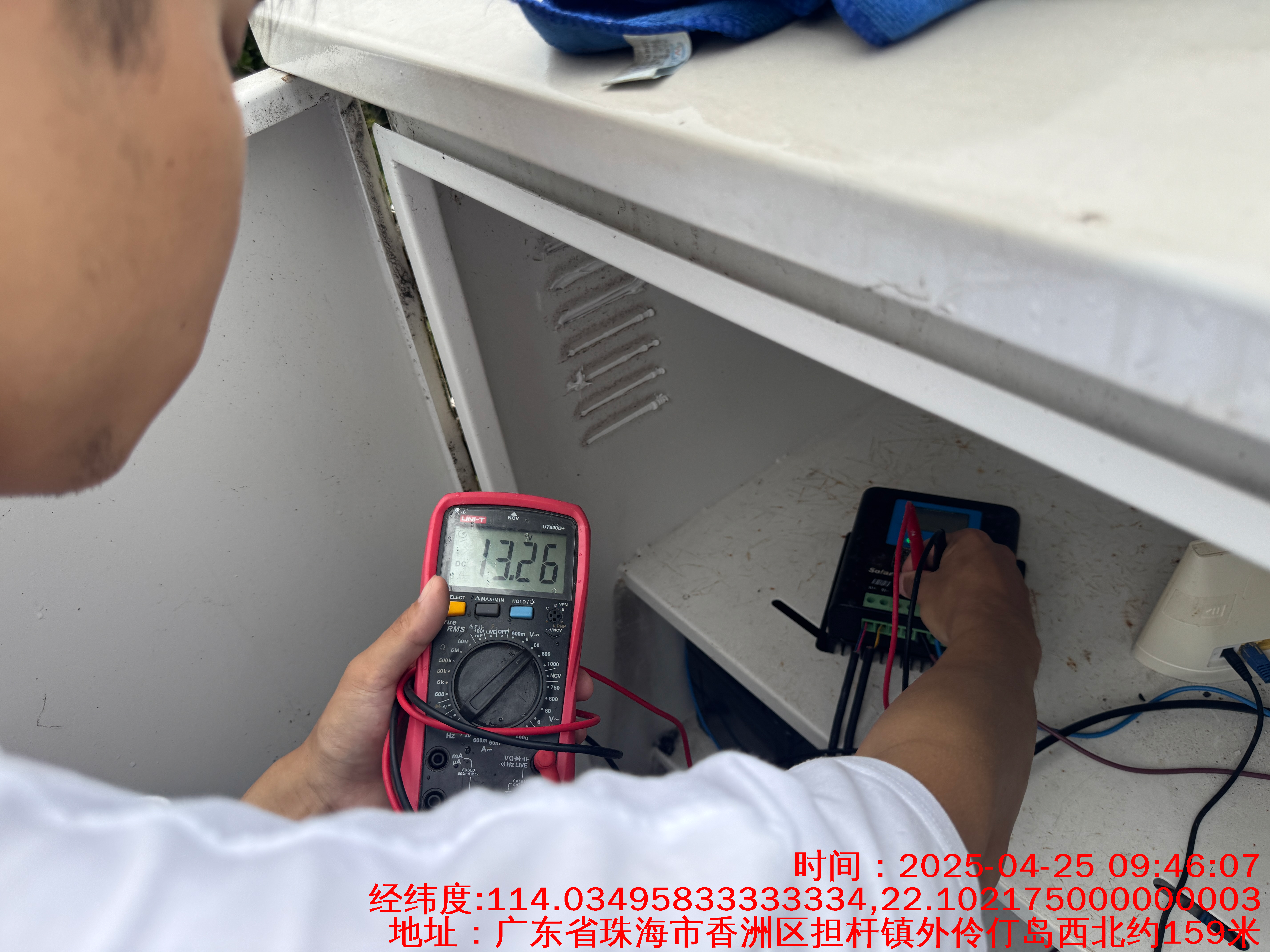 | 外伶仃岛验潮站-蓄电池电能检查 | 原图 | 水印1 | 水印2 | 赖珍锋 | 工作照 | 2025-04-22 16:42:06 |